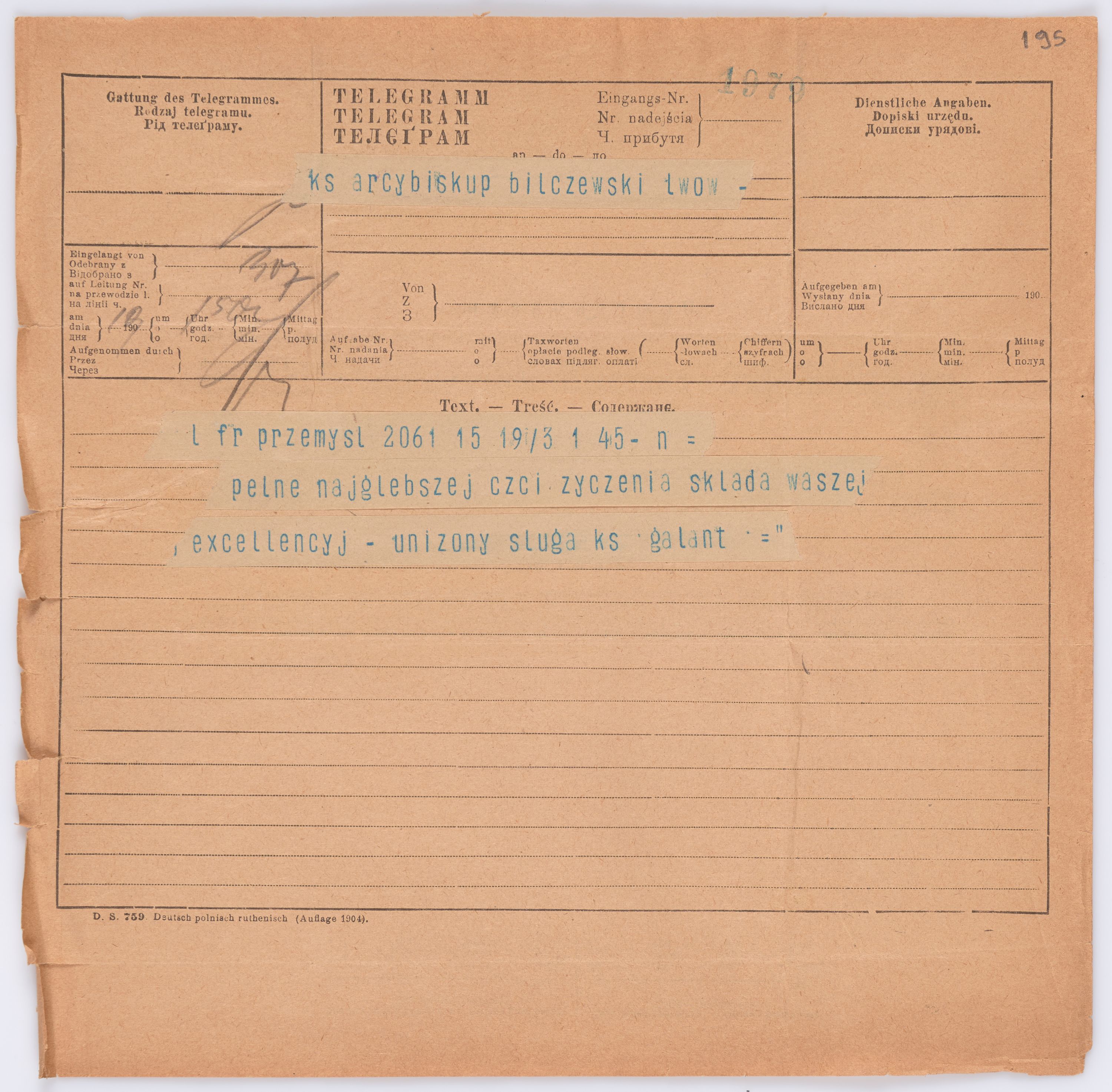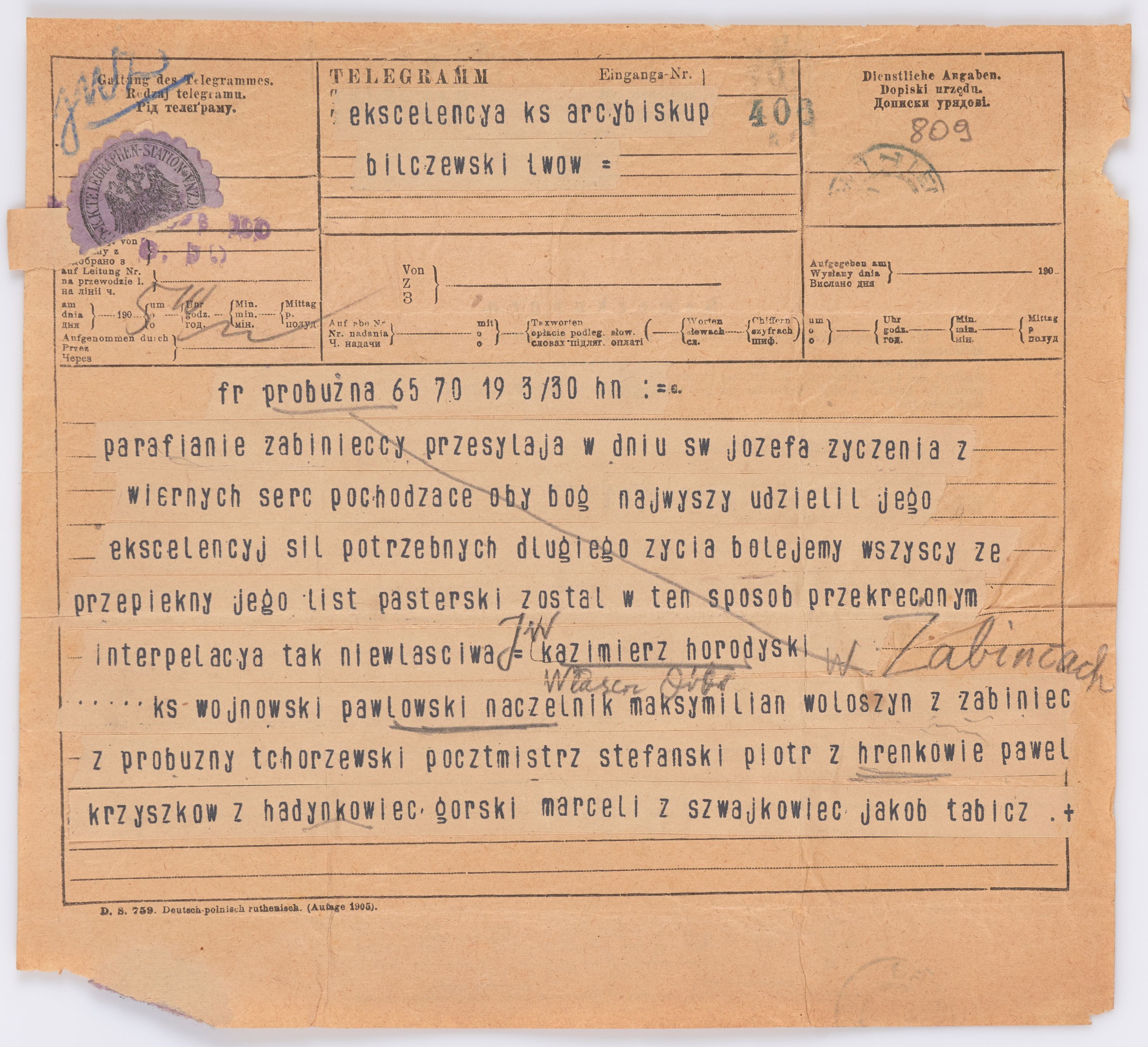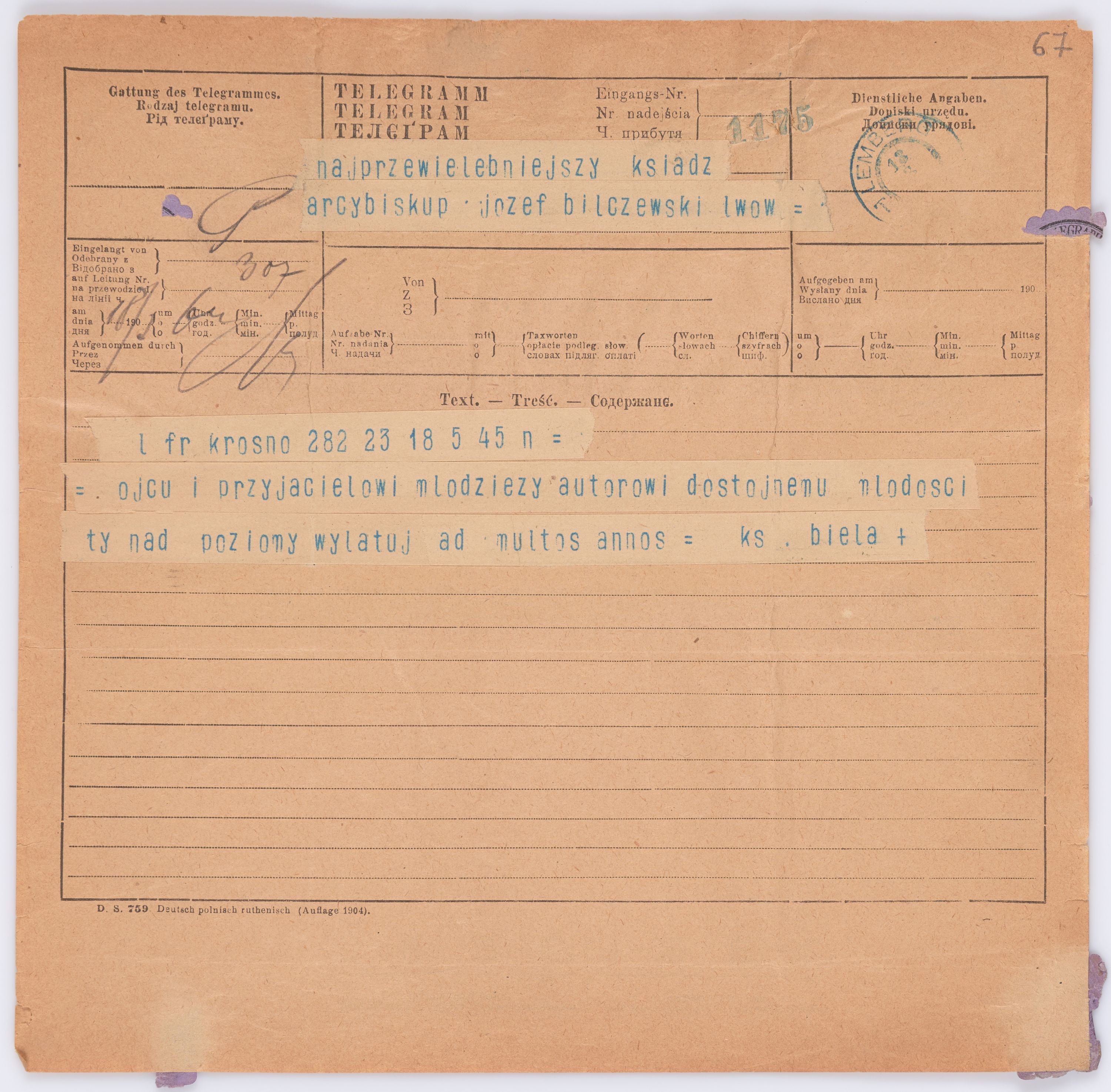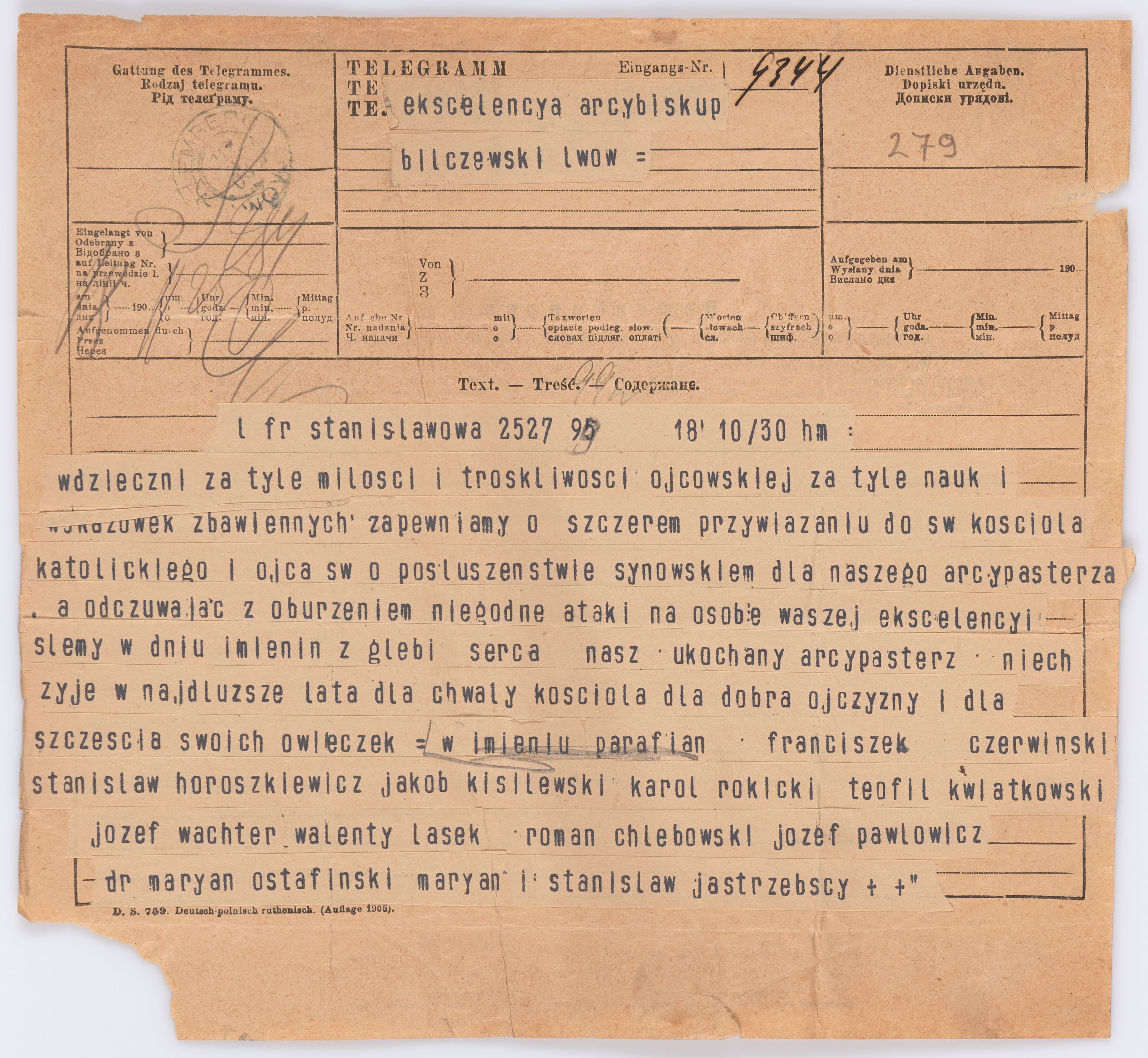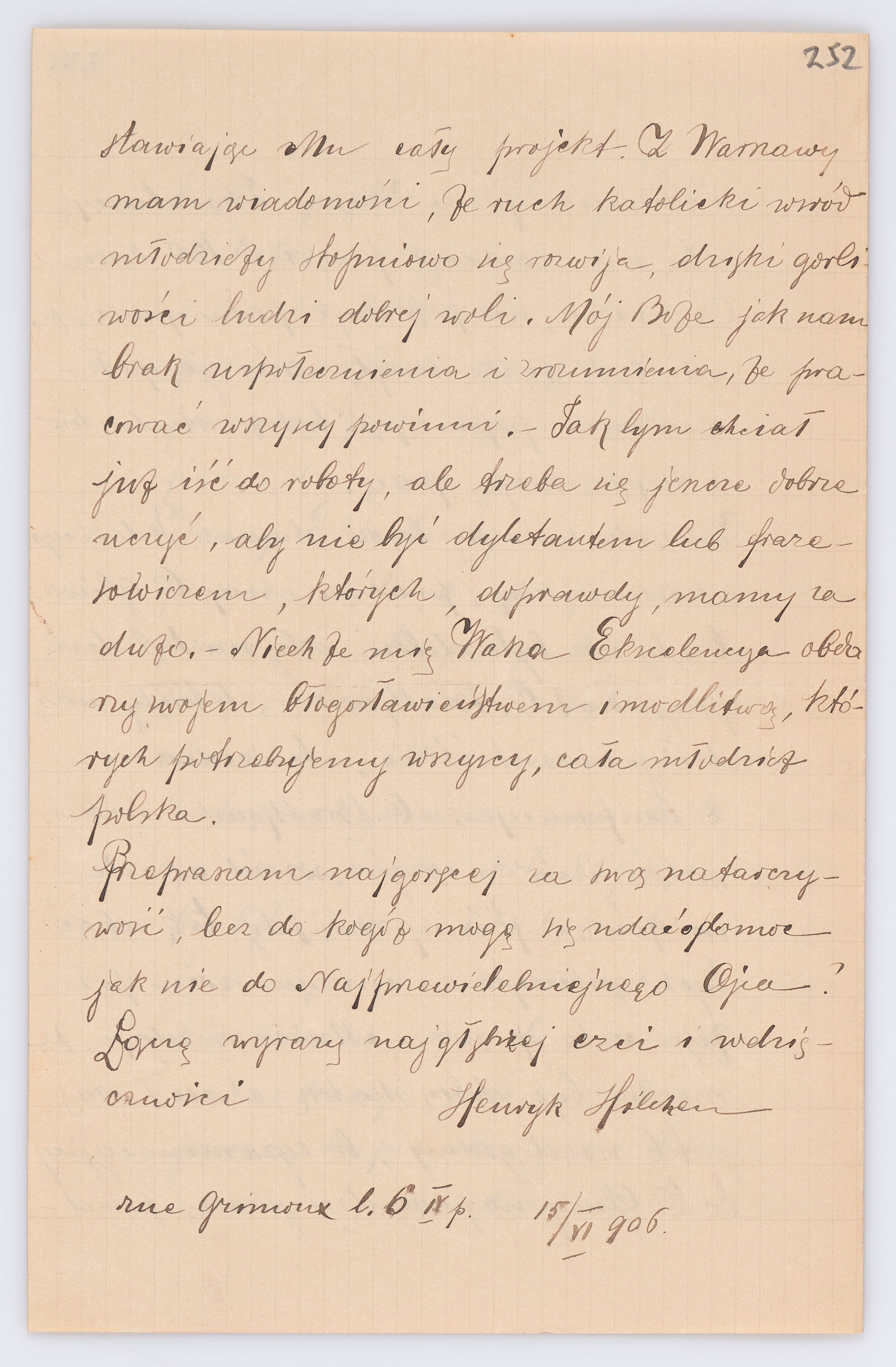Jednostka zawiera kolekcję 195 listów kierowanych w roku 1906 (01.01.1906-31.12.1906) do arcybiskupa ks. Józefa Bilczewskiego.