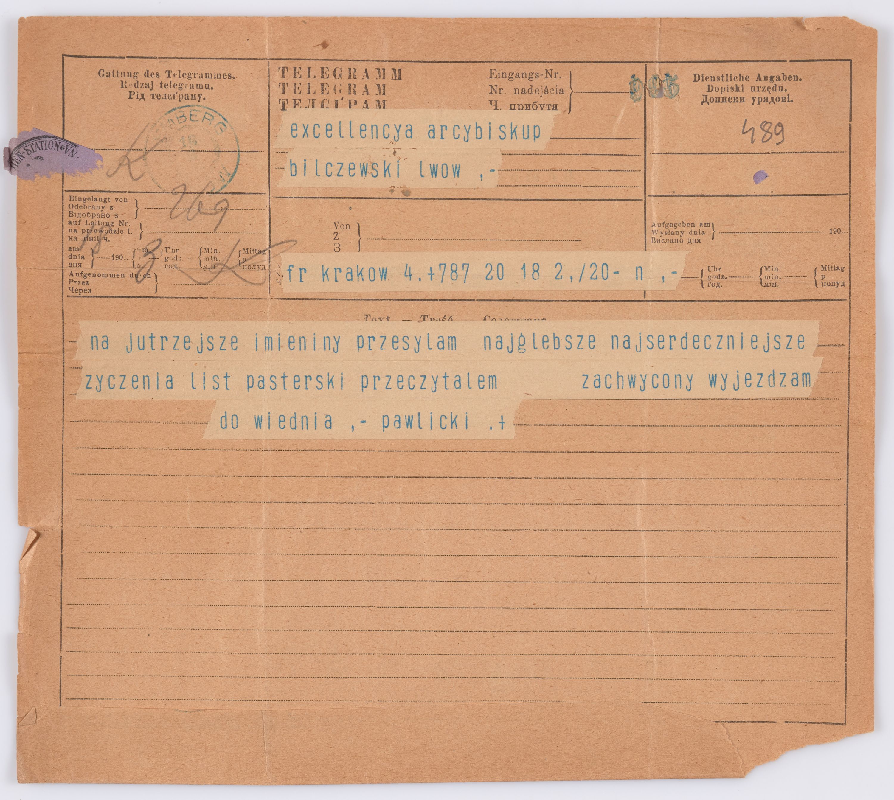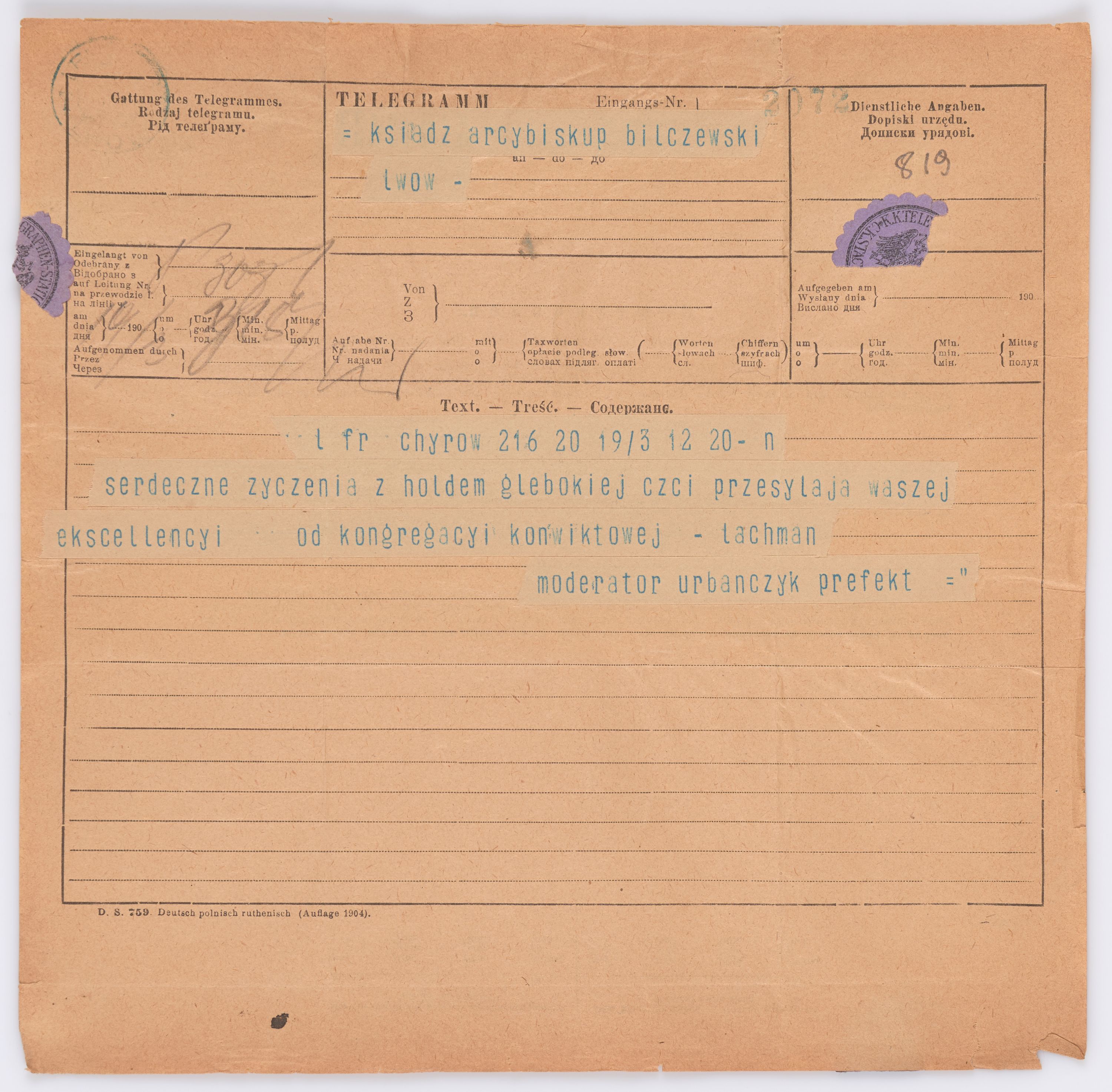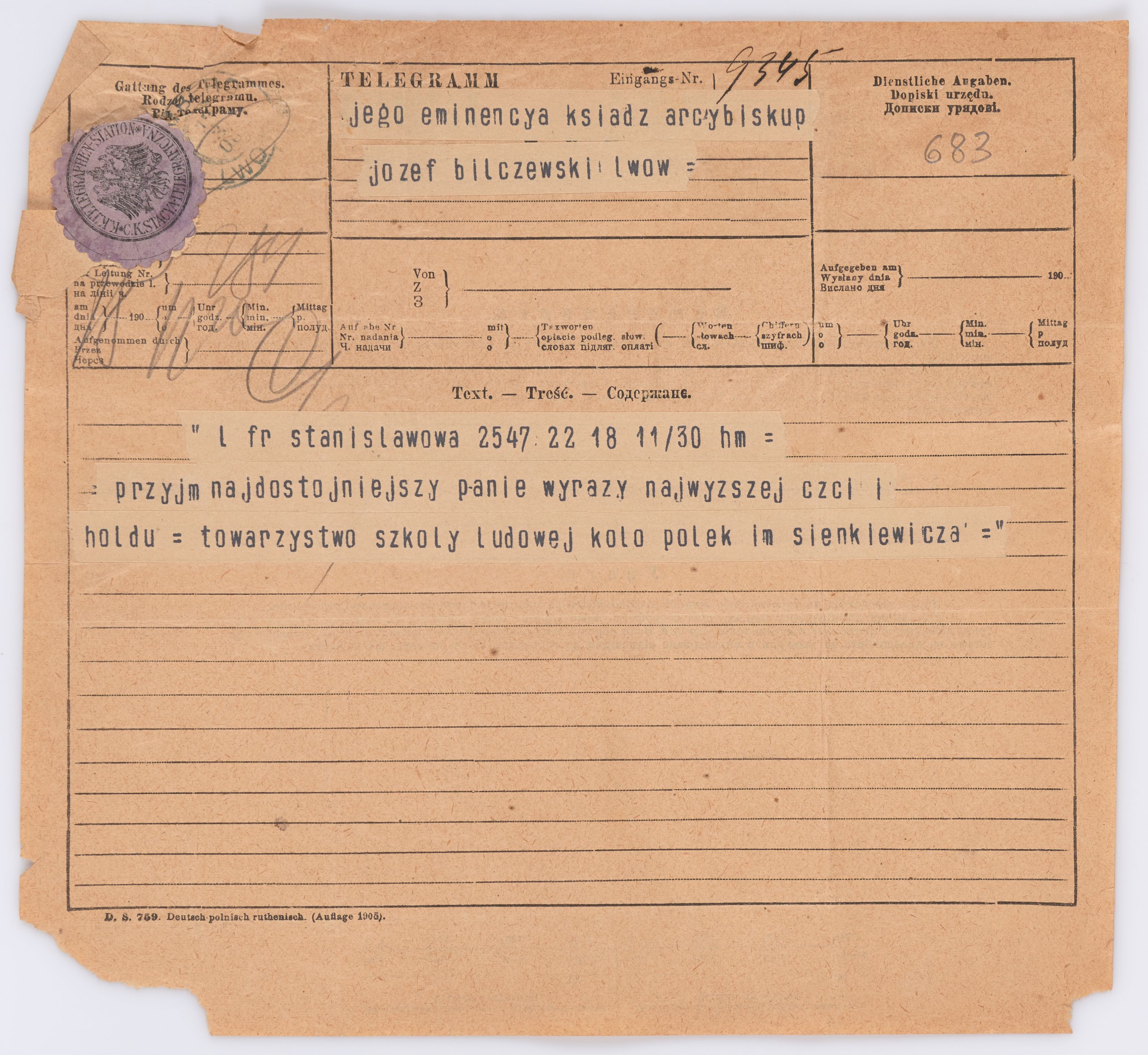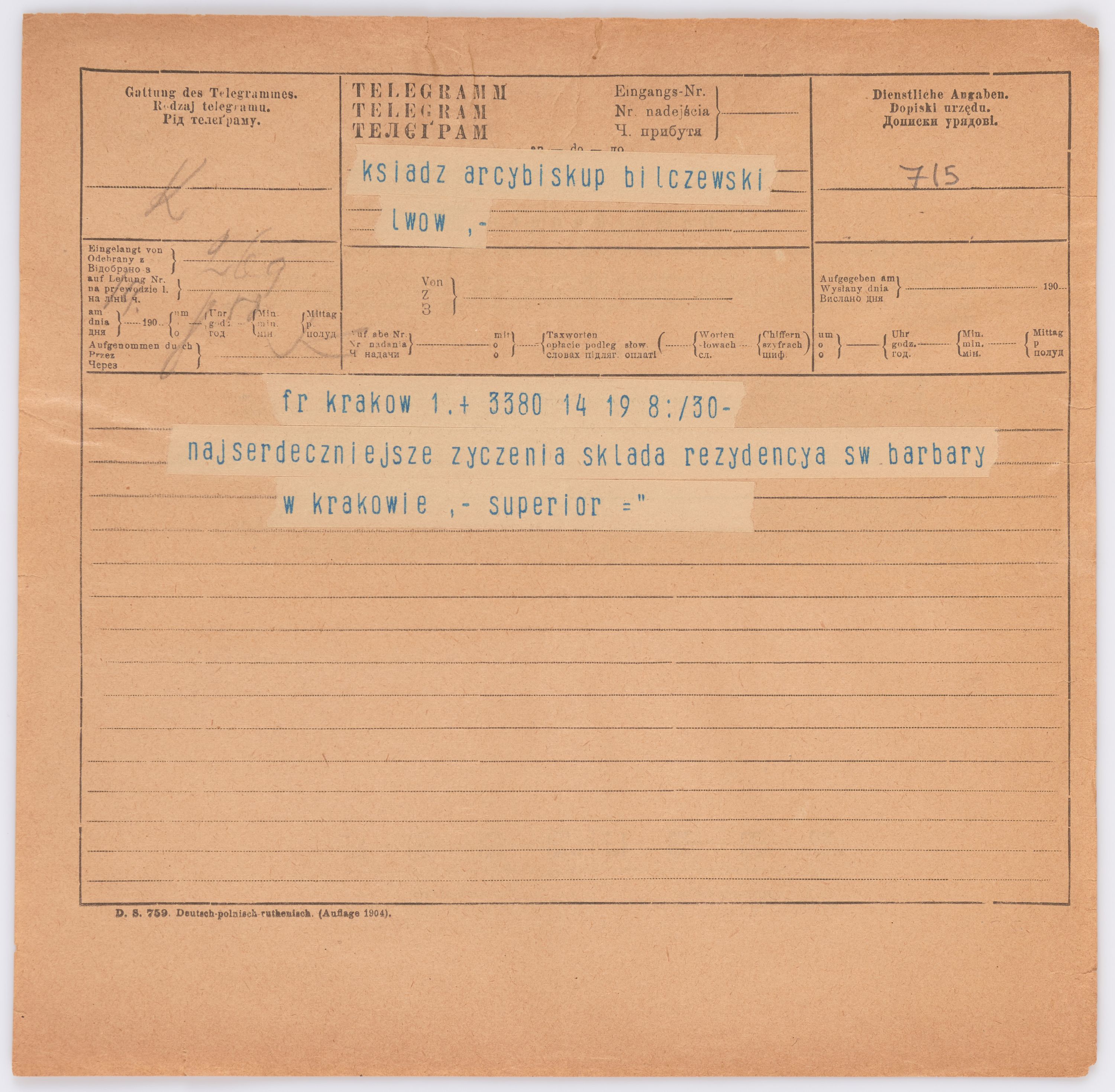 Jednostka zawiera kolekcję 195 listów kierowanych w roku 1906 (01.01.1906-31.12.1906) do arcybiskupa ks. Józefa Bilczewskiego.