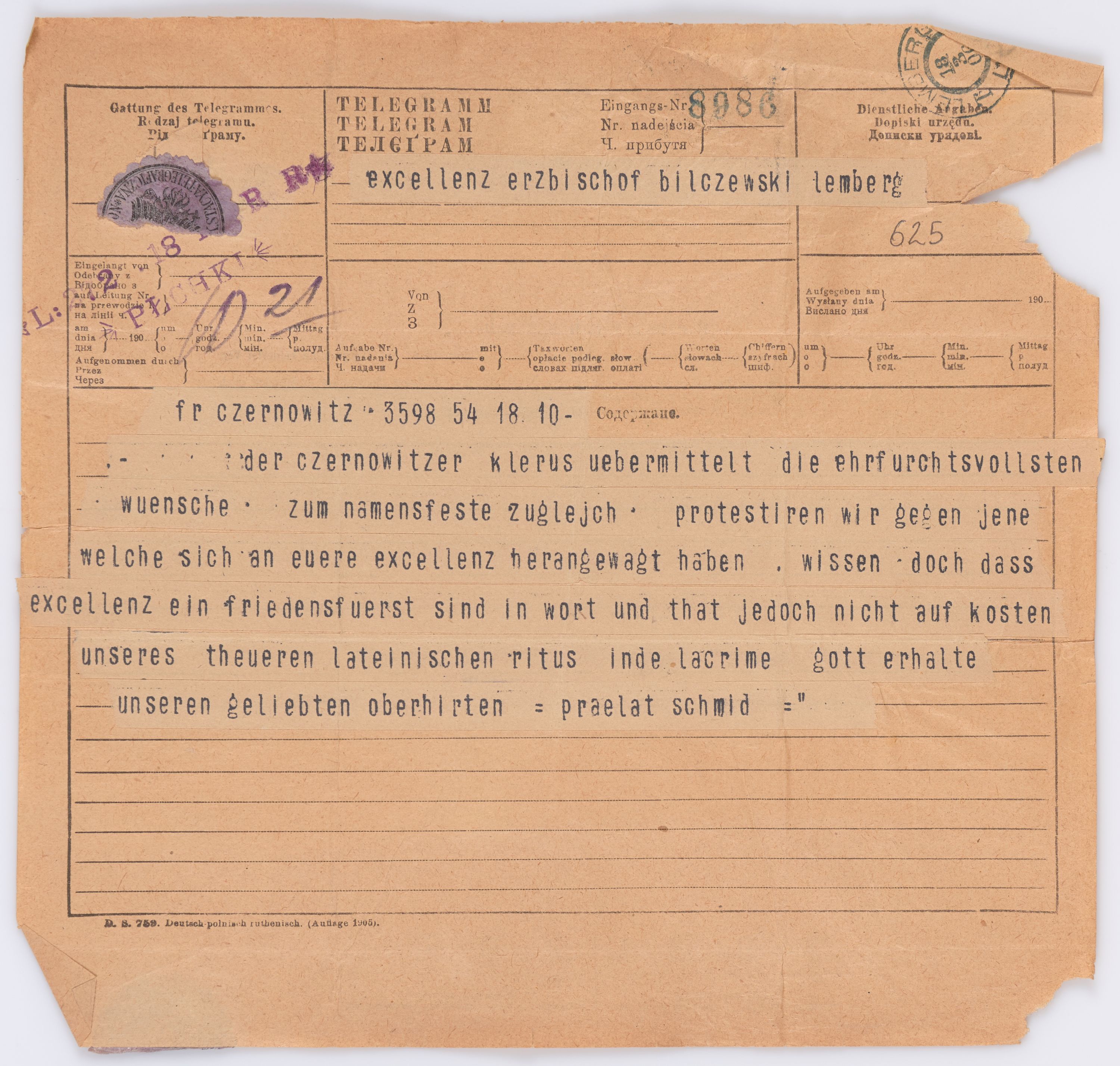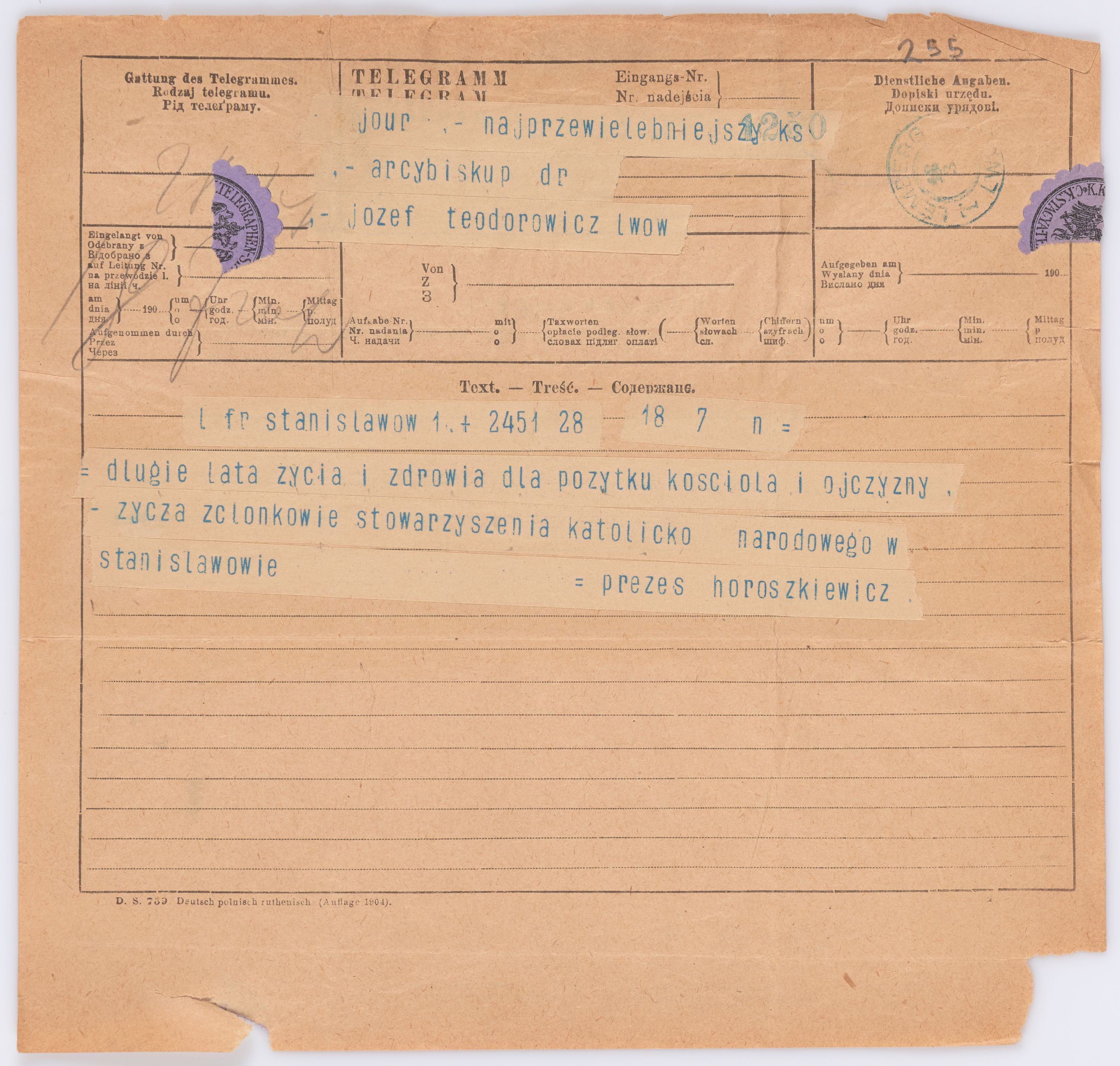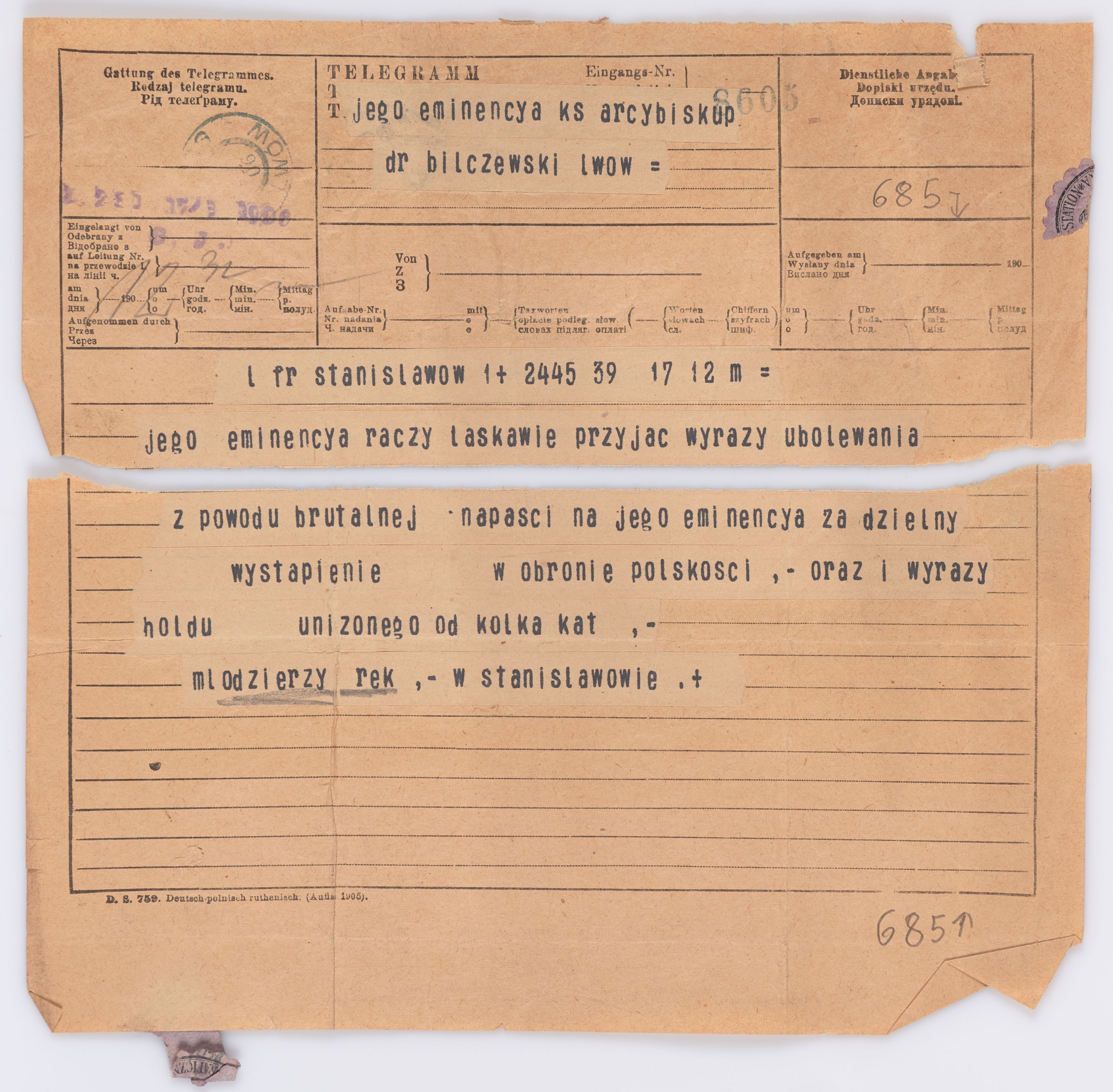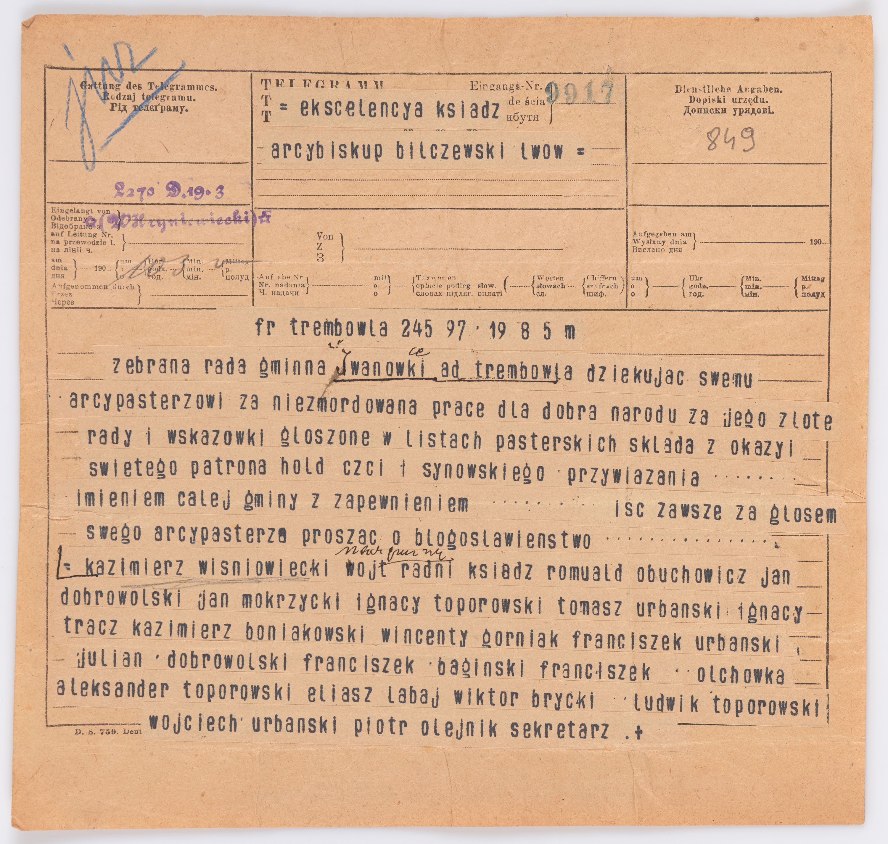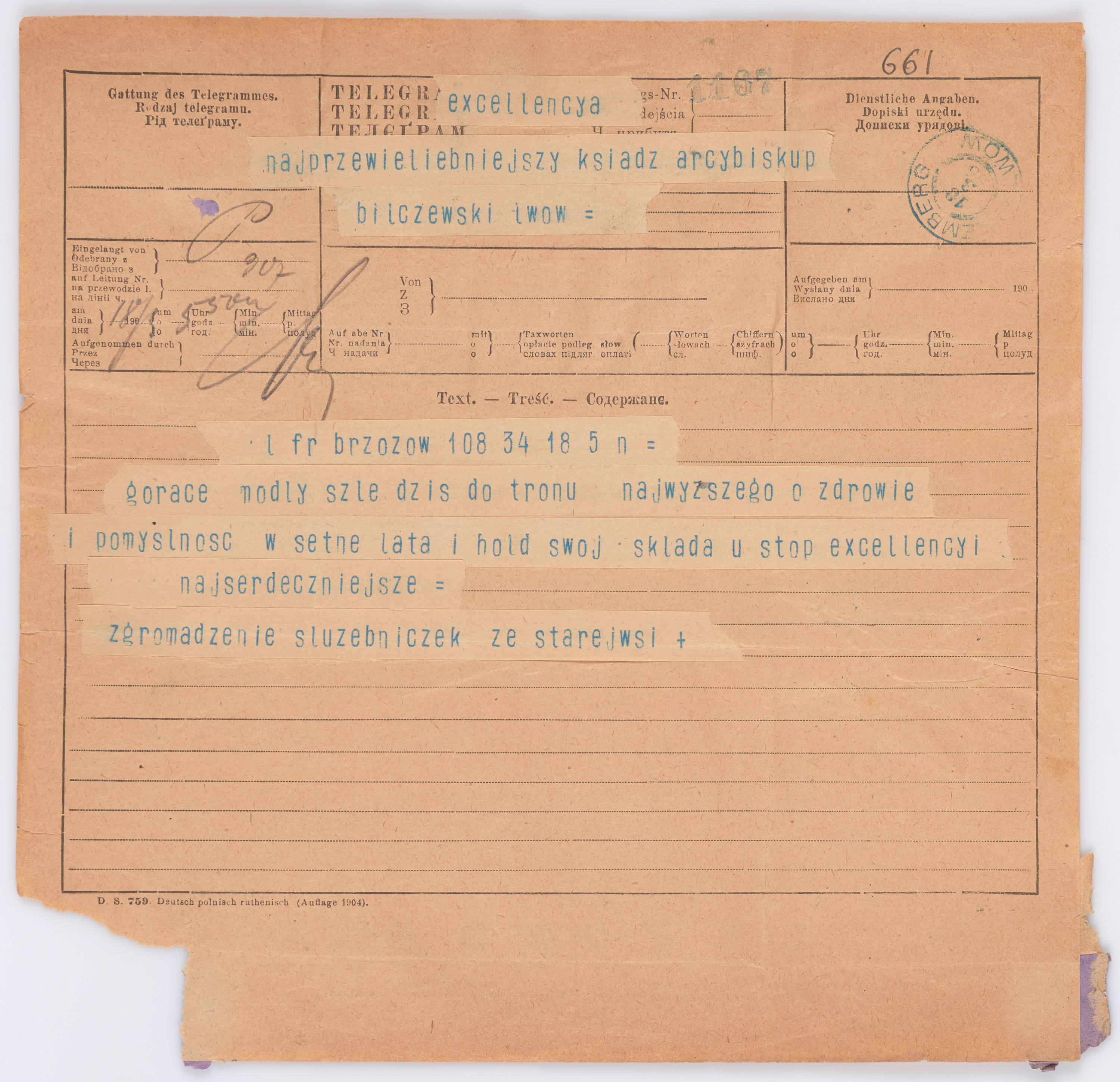 Jednostka zawiera kolekcję 195 listów kierowanych w roku 1906 (01.01.1906-31.12.1906) do arcybiskupa ks. Józefa Bilczewskiego.