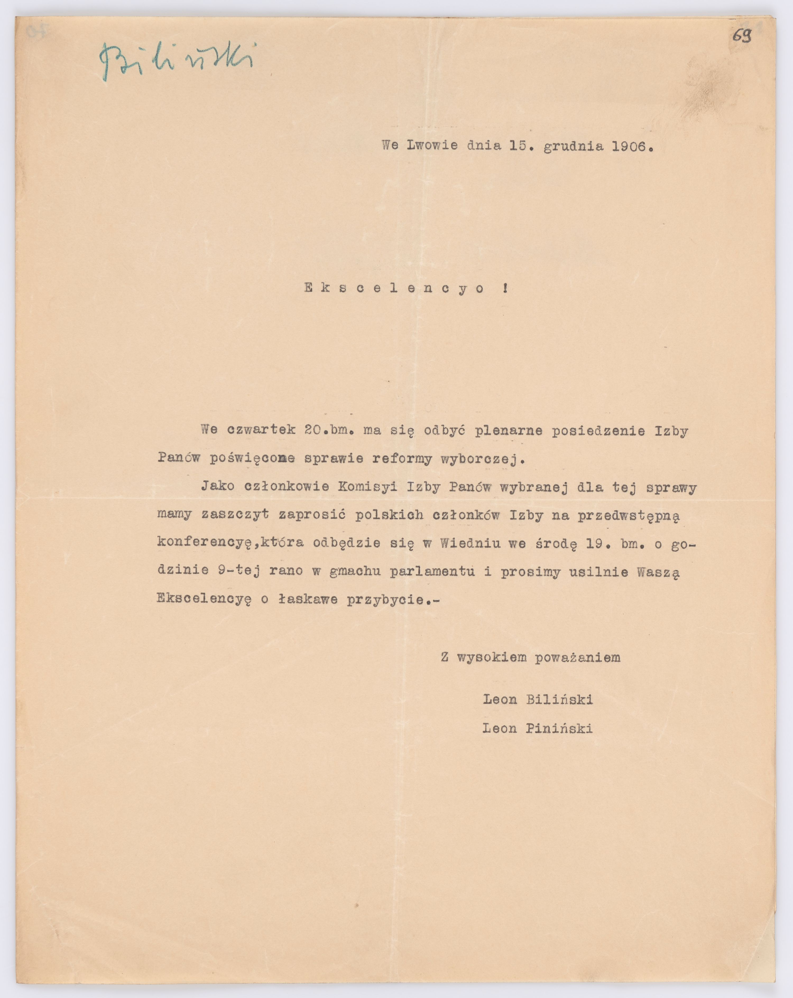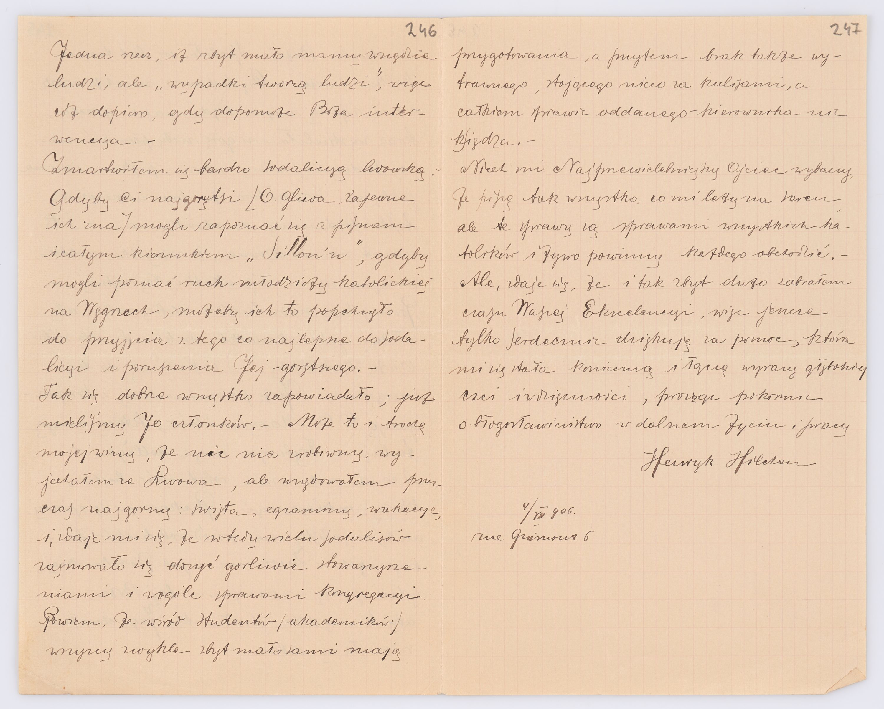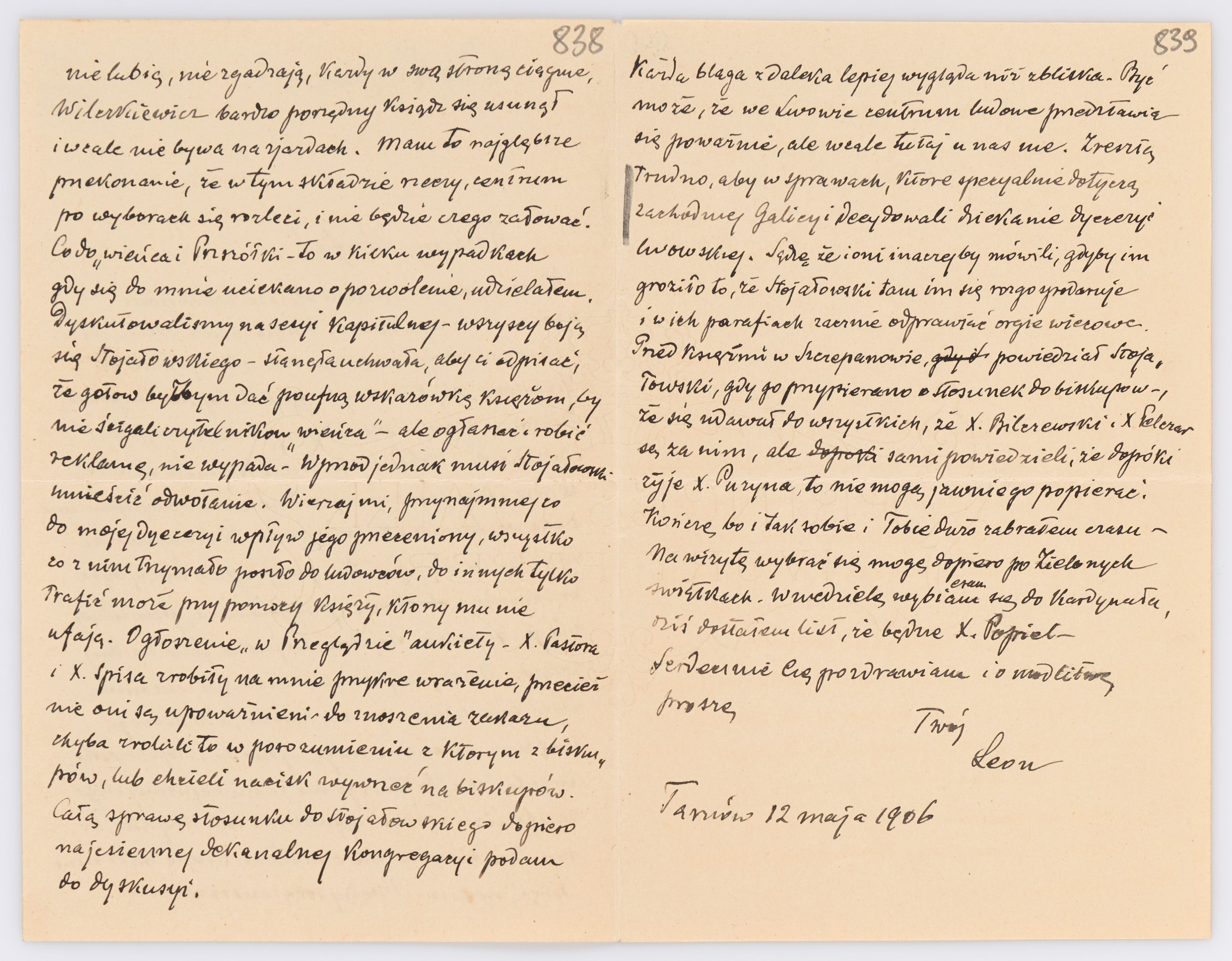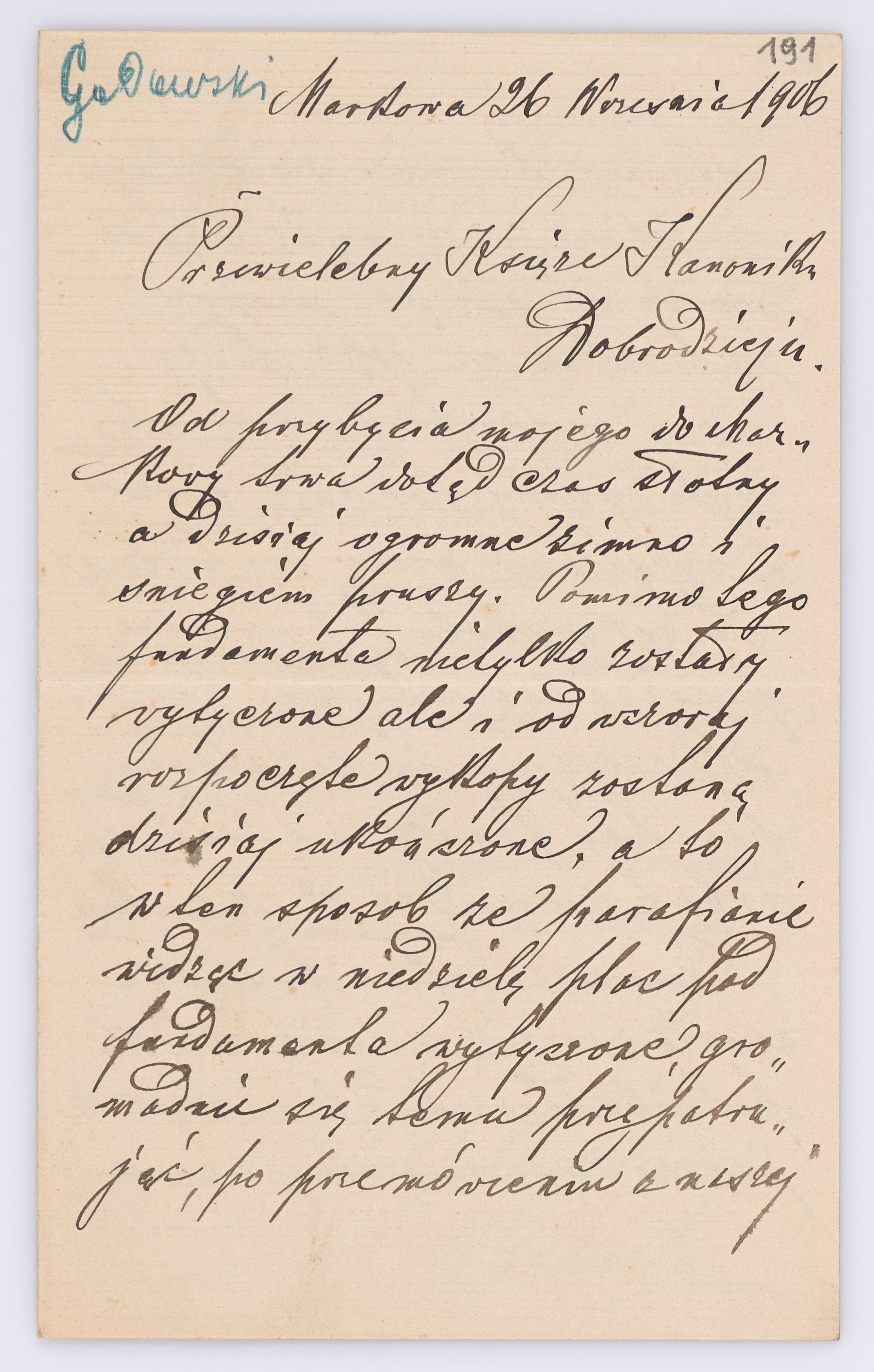 Listy kierowane do Józefa Bilczewskiego w roku 1906