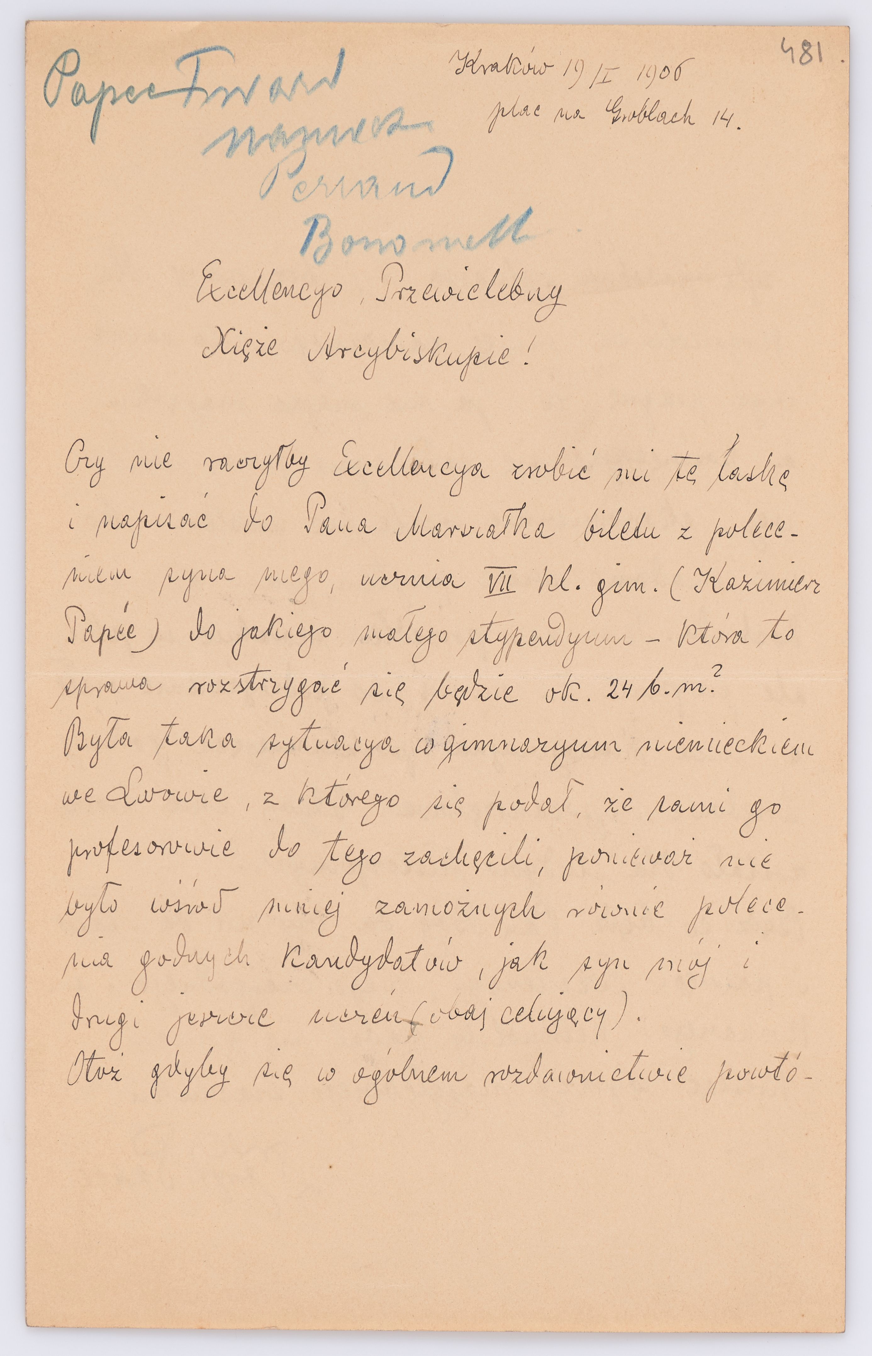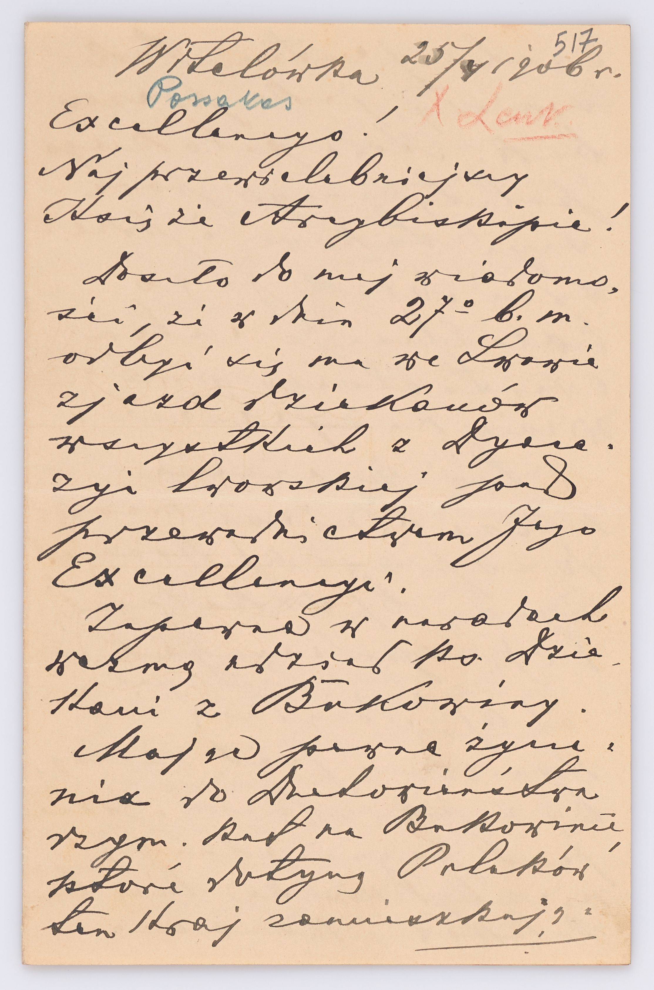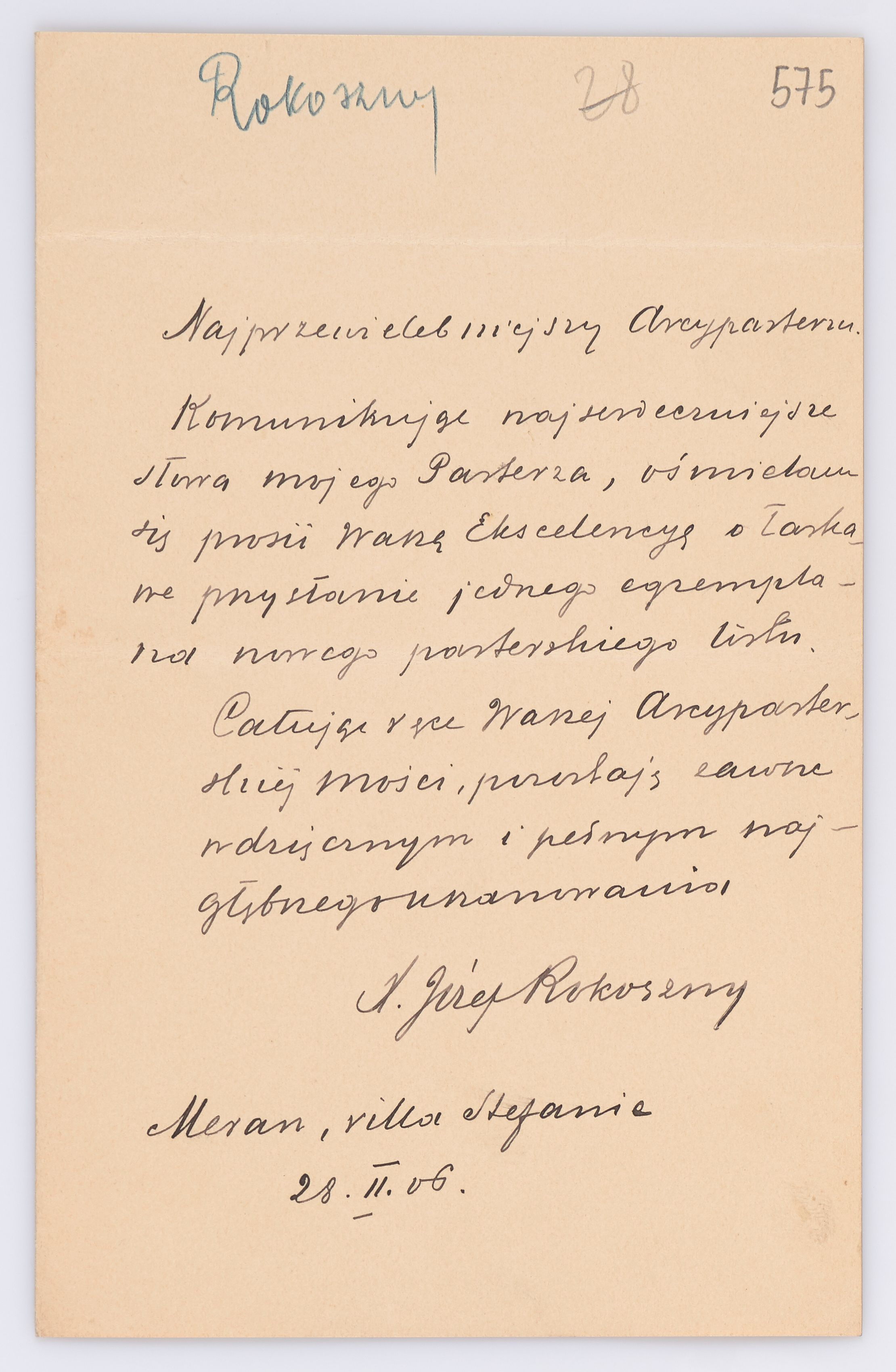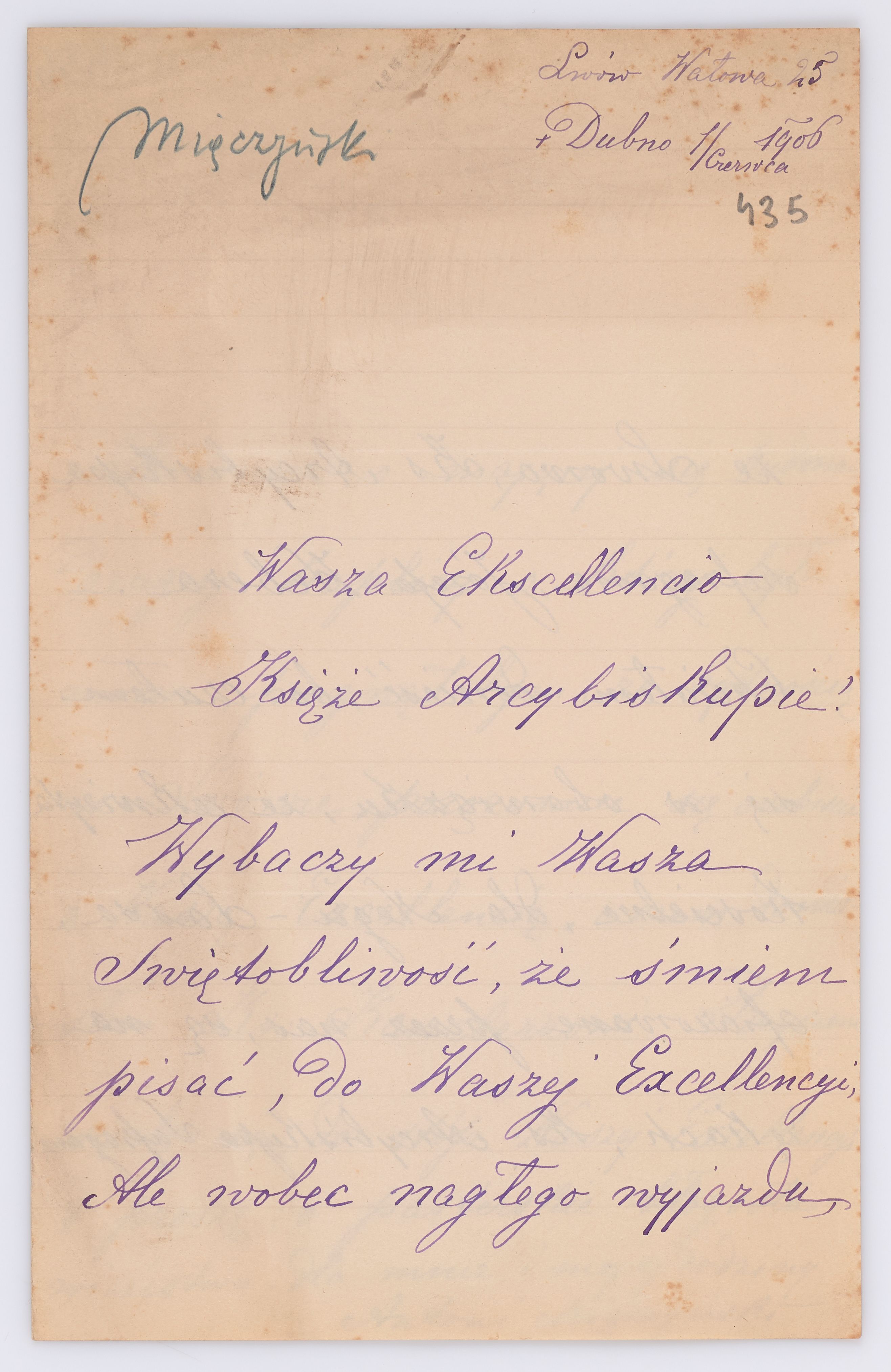 Listy kierowane do Józefa Bilczewskiego w roku 1906