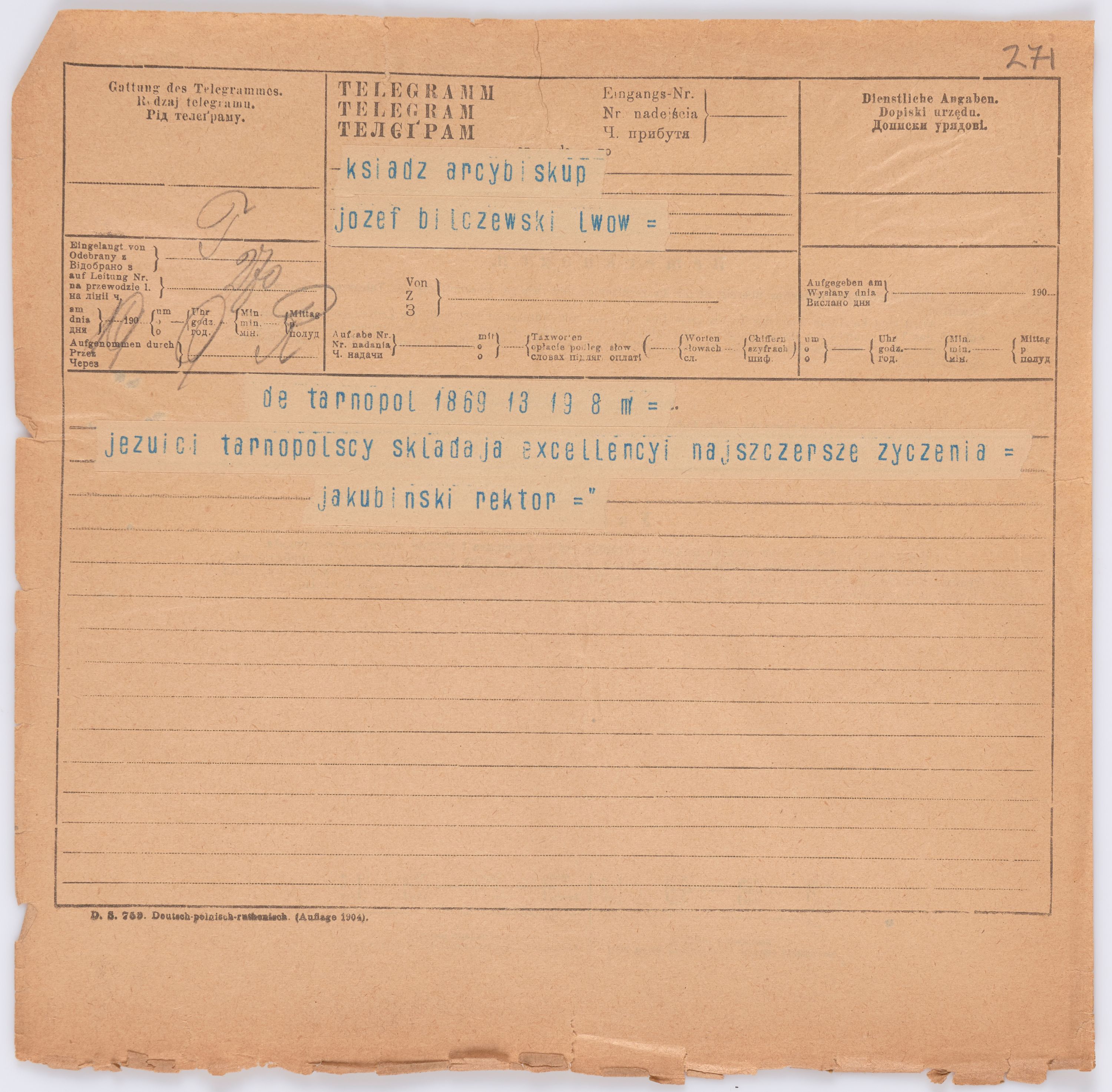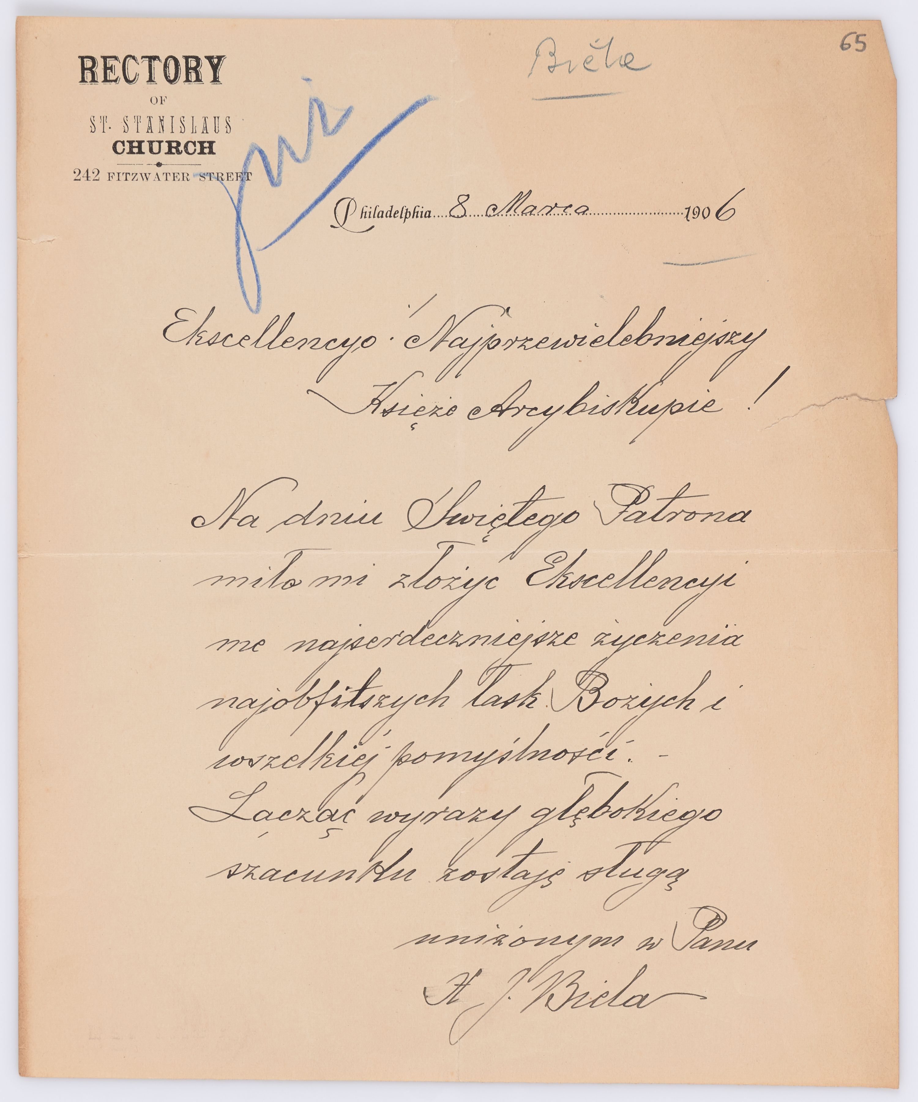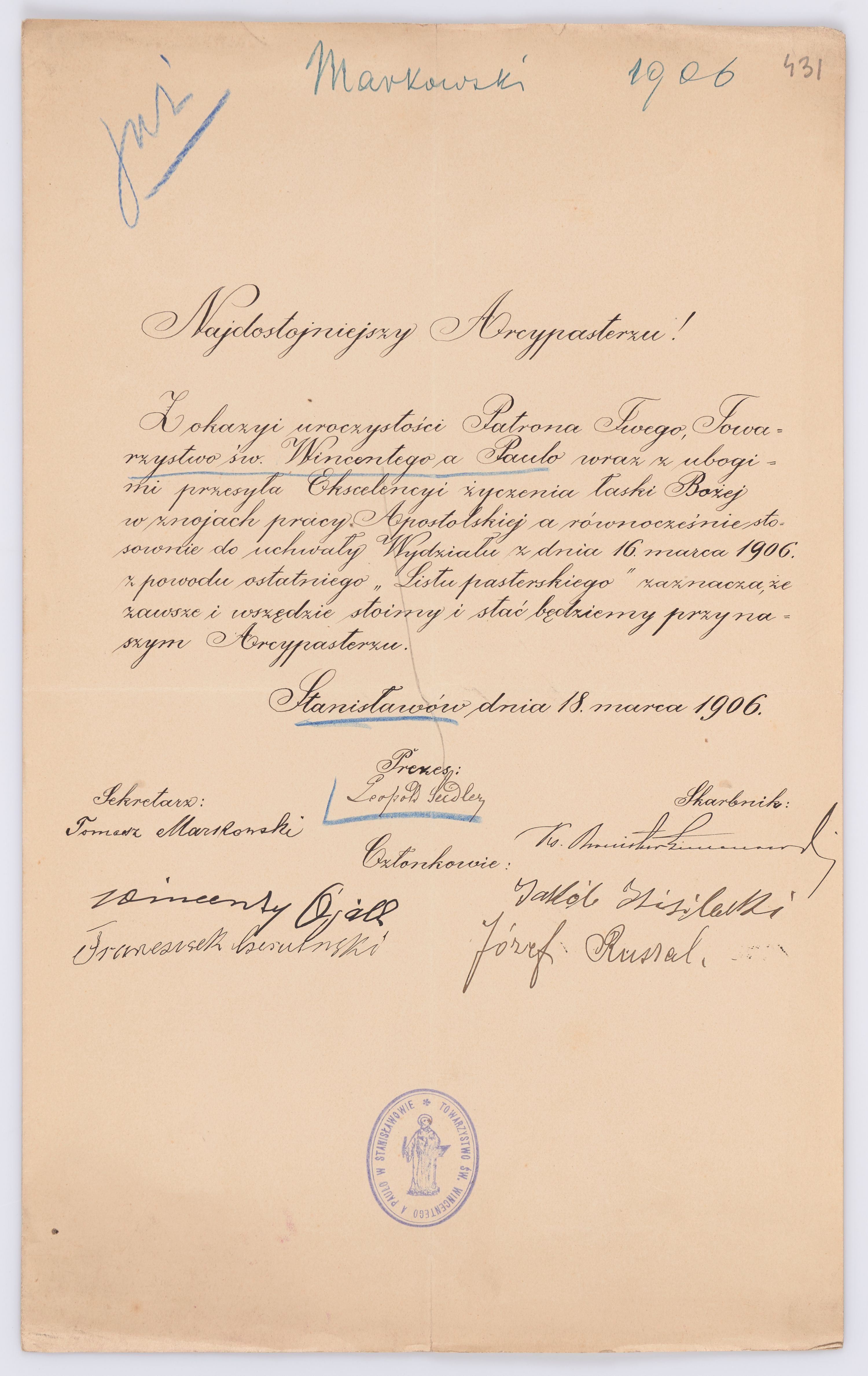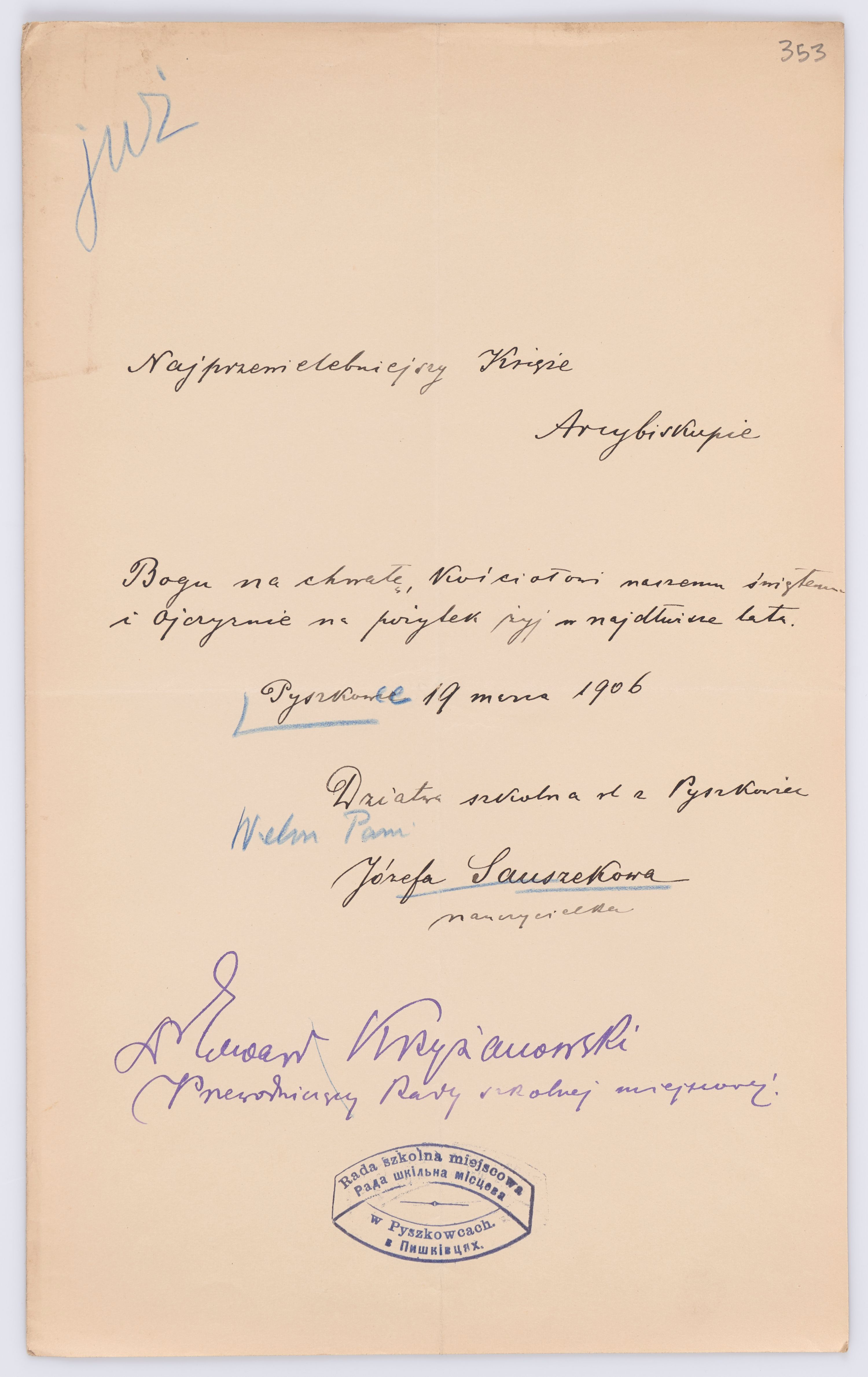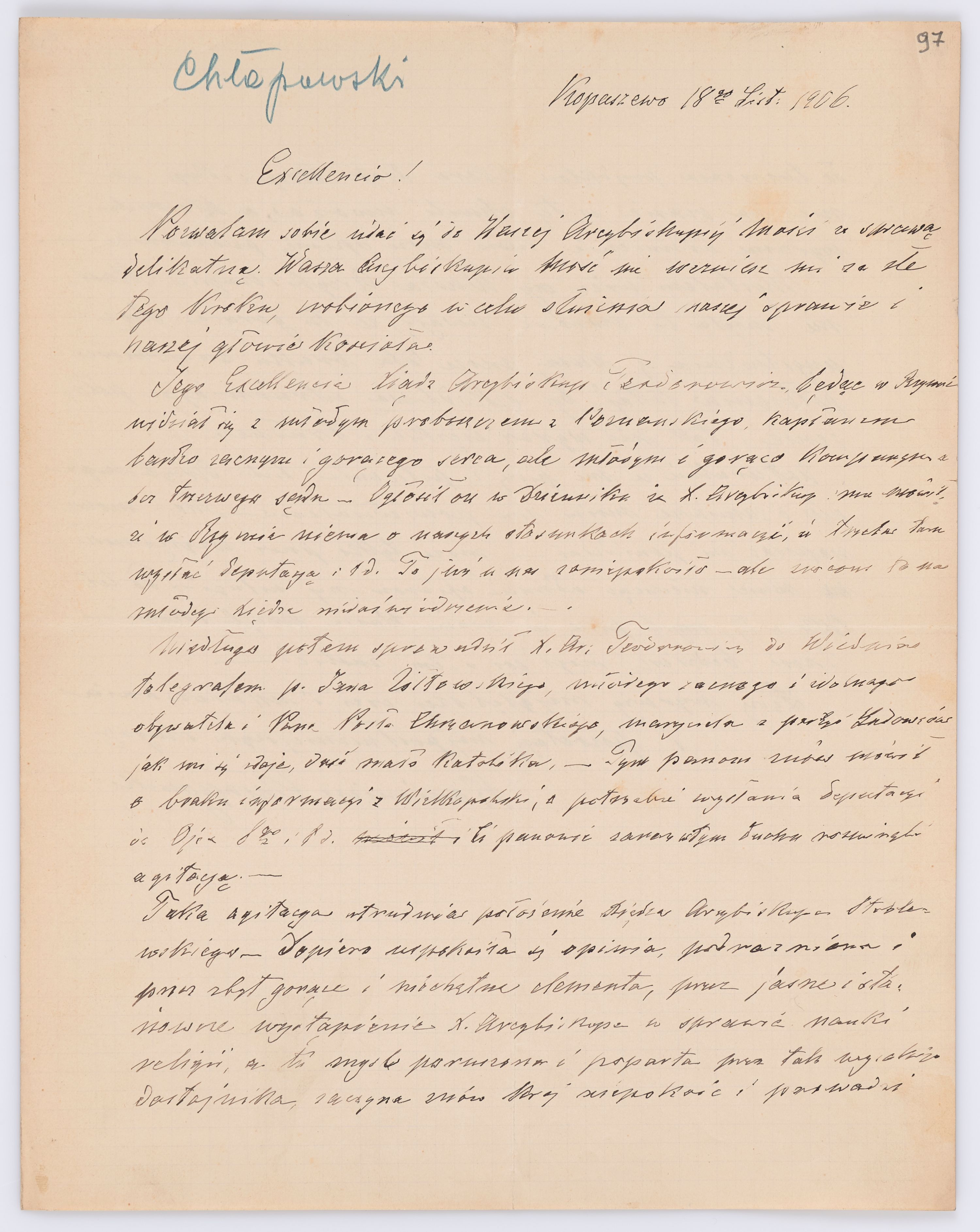 Listy kierowane do Józefa Bilczewskiego w roku 1906