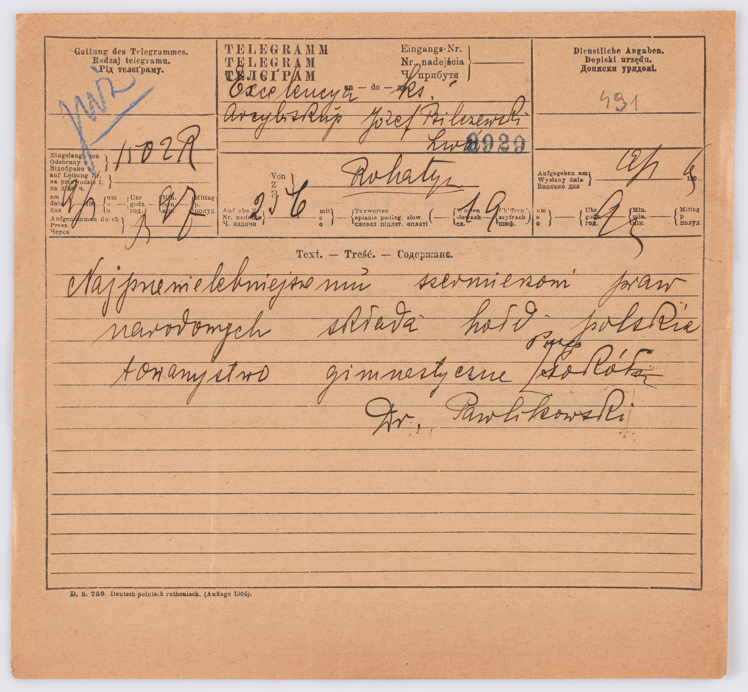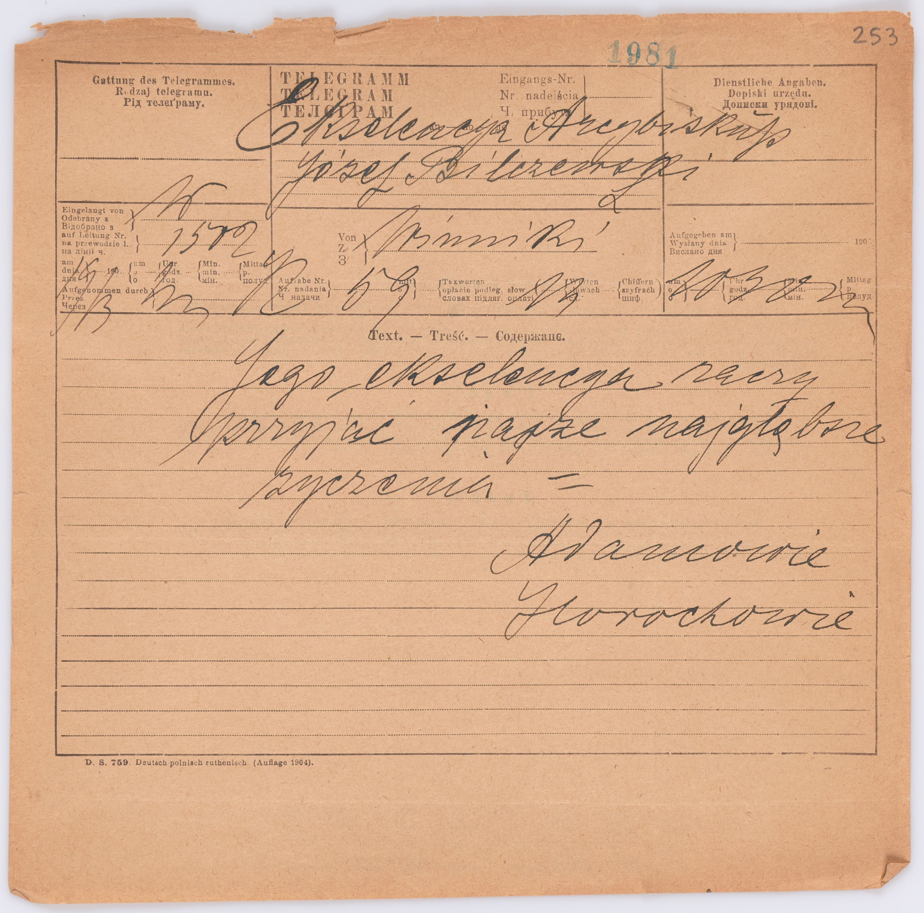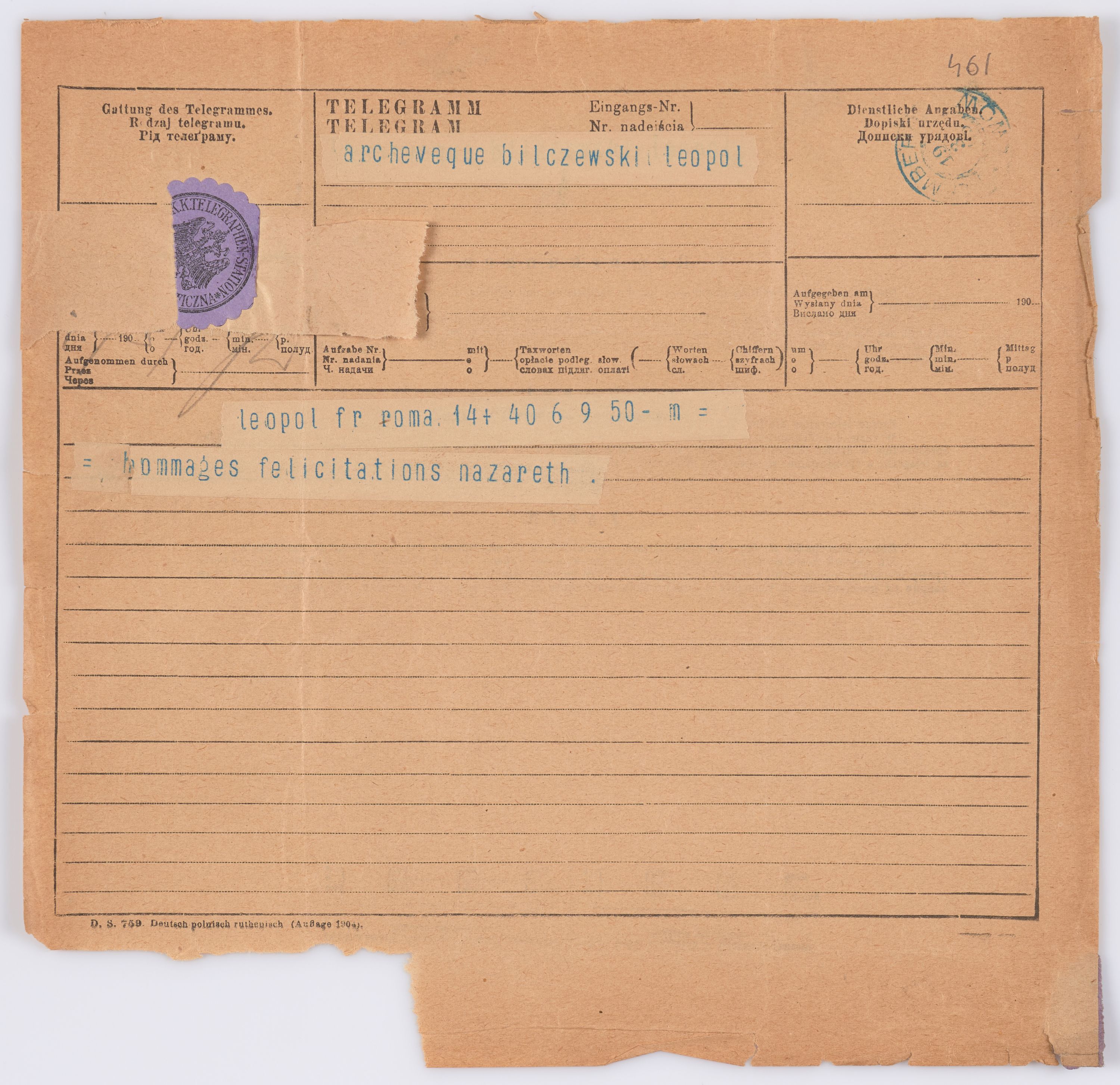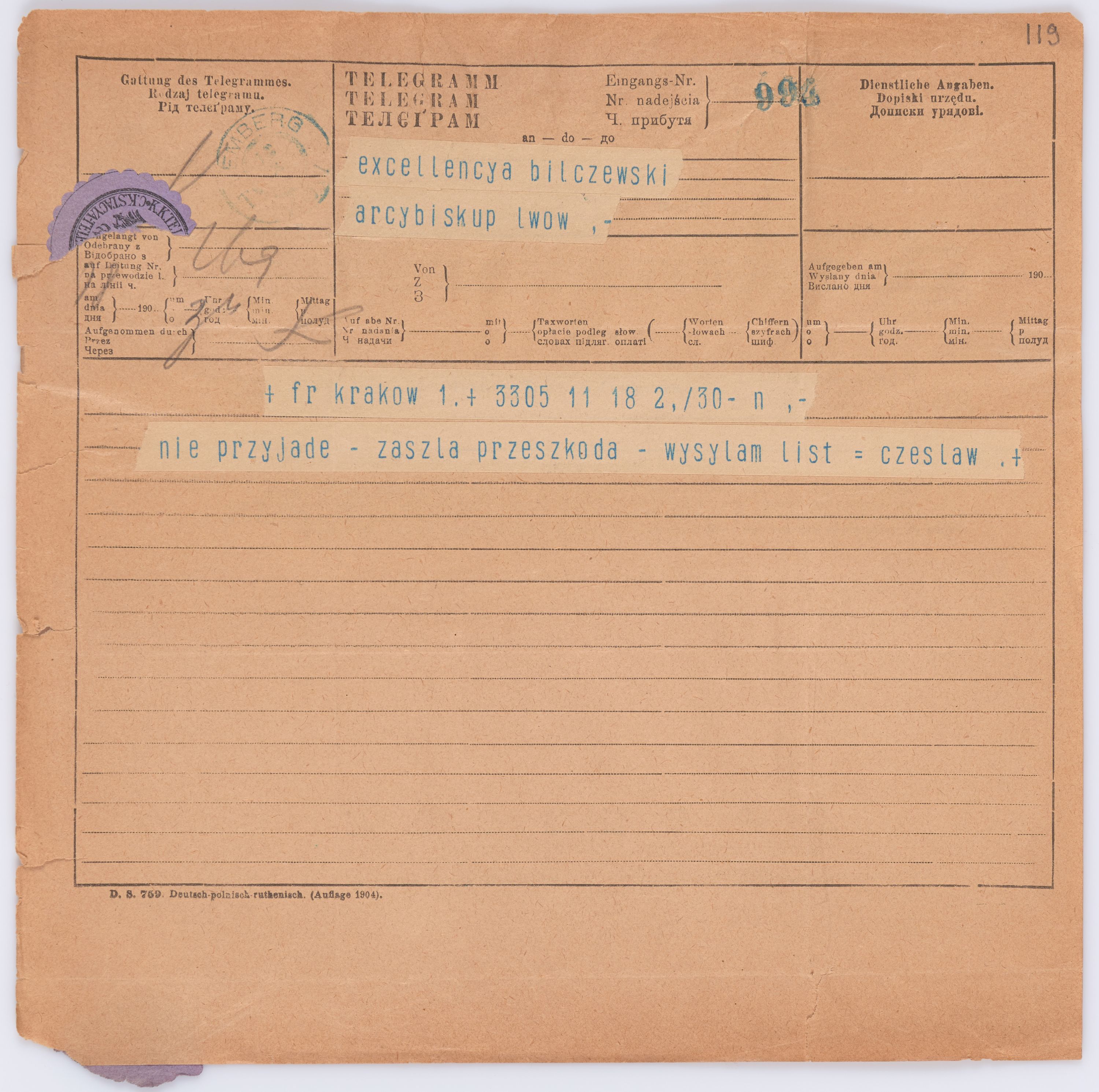 Listy kierowane do Józefa Bilczewskiego w roku 1906