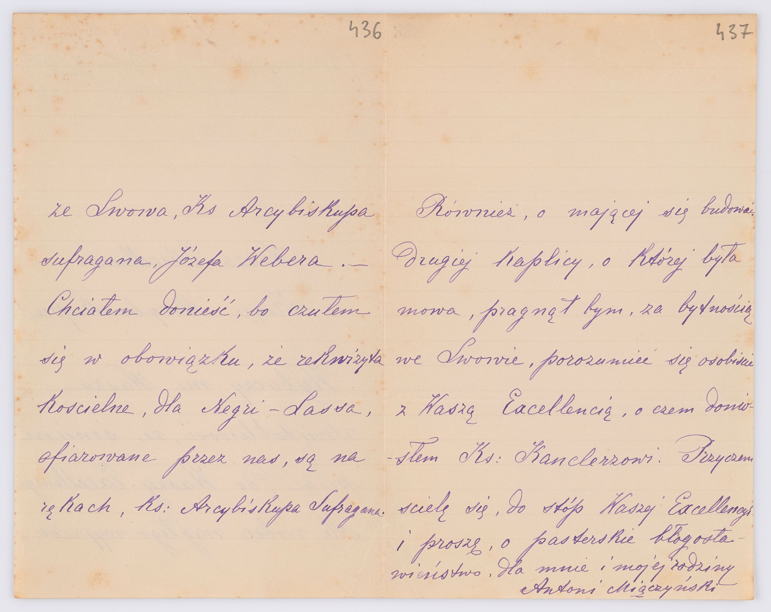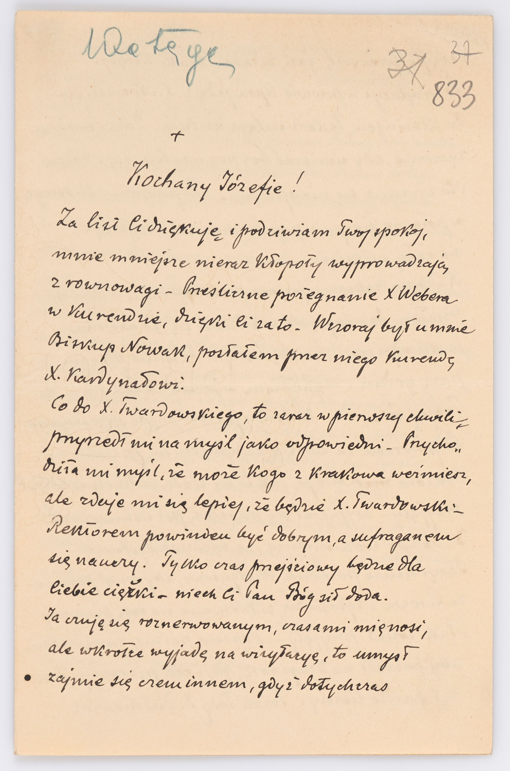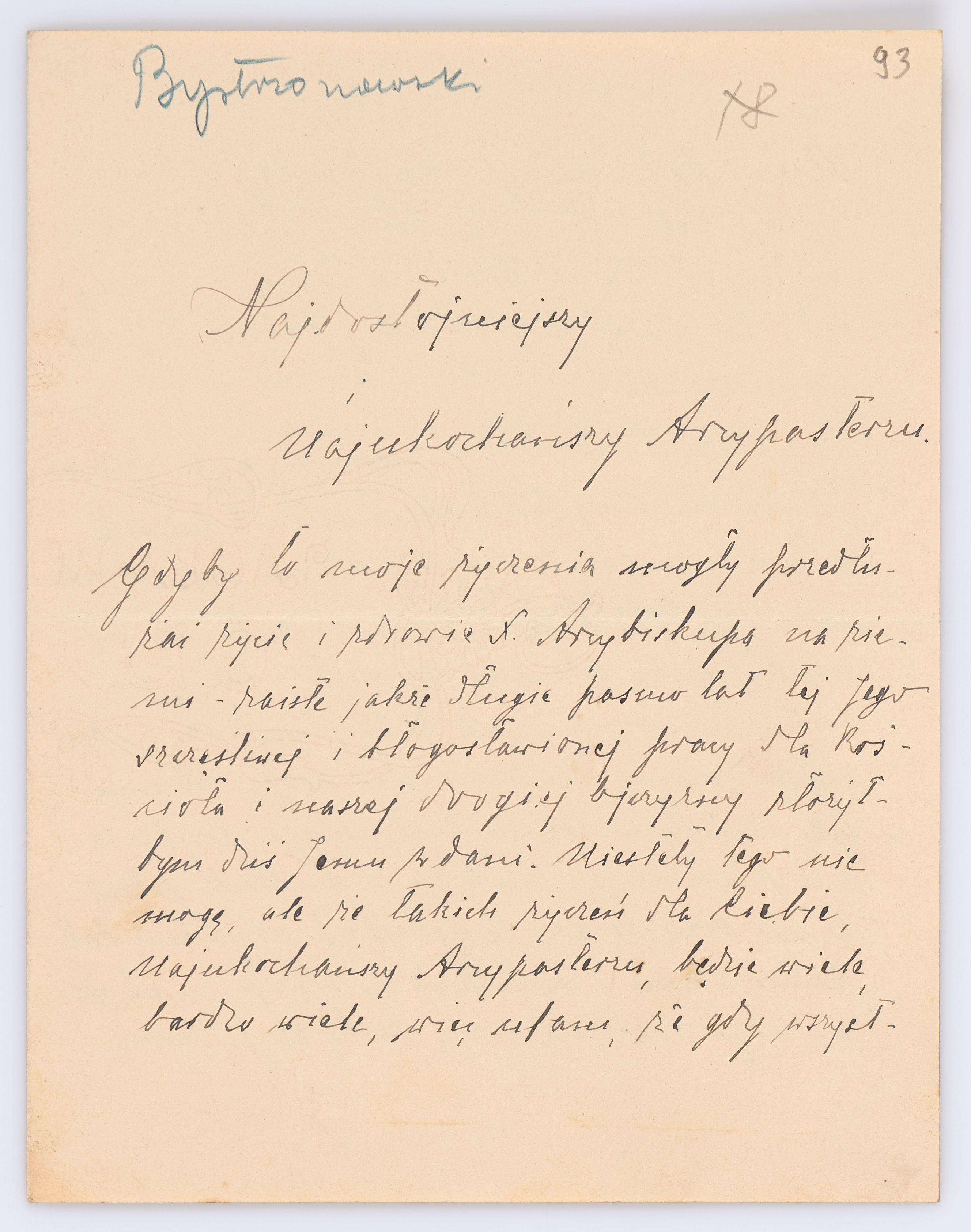 Adresatem wszystkich listów jest św. Józef Bilczewski (1860-1923), arcybiskup lwowski obrządku łacińskiego (1901-1923). Św. Józef Bilczewski powszechnie znany jest z działalności duszpasterskiej, administracyjnej i patriotycznej, którą prowadził przewodząc archidiecezji lwowskiej przez 23 lata, jego zasługi na tym polu są niepodważalne, a świadectwem aktywności tych działań jest właśnie bogata korespondencja z tego okresu.