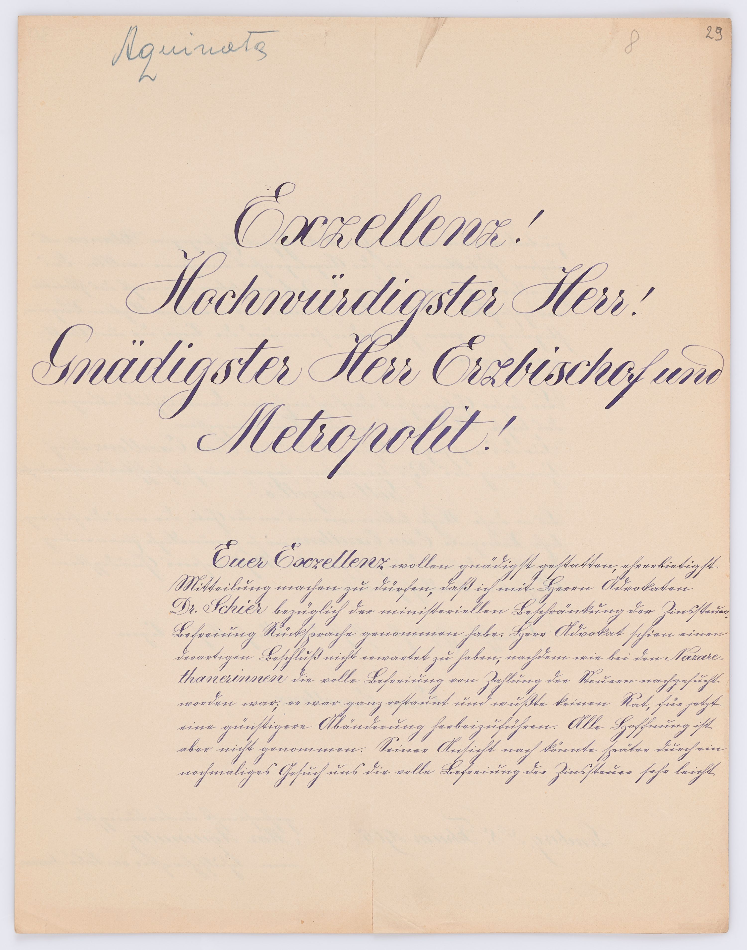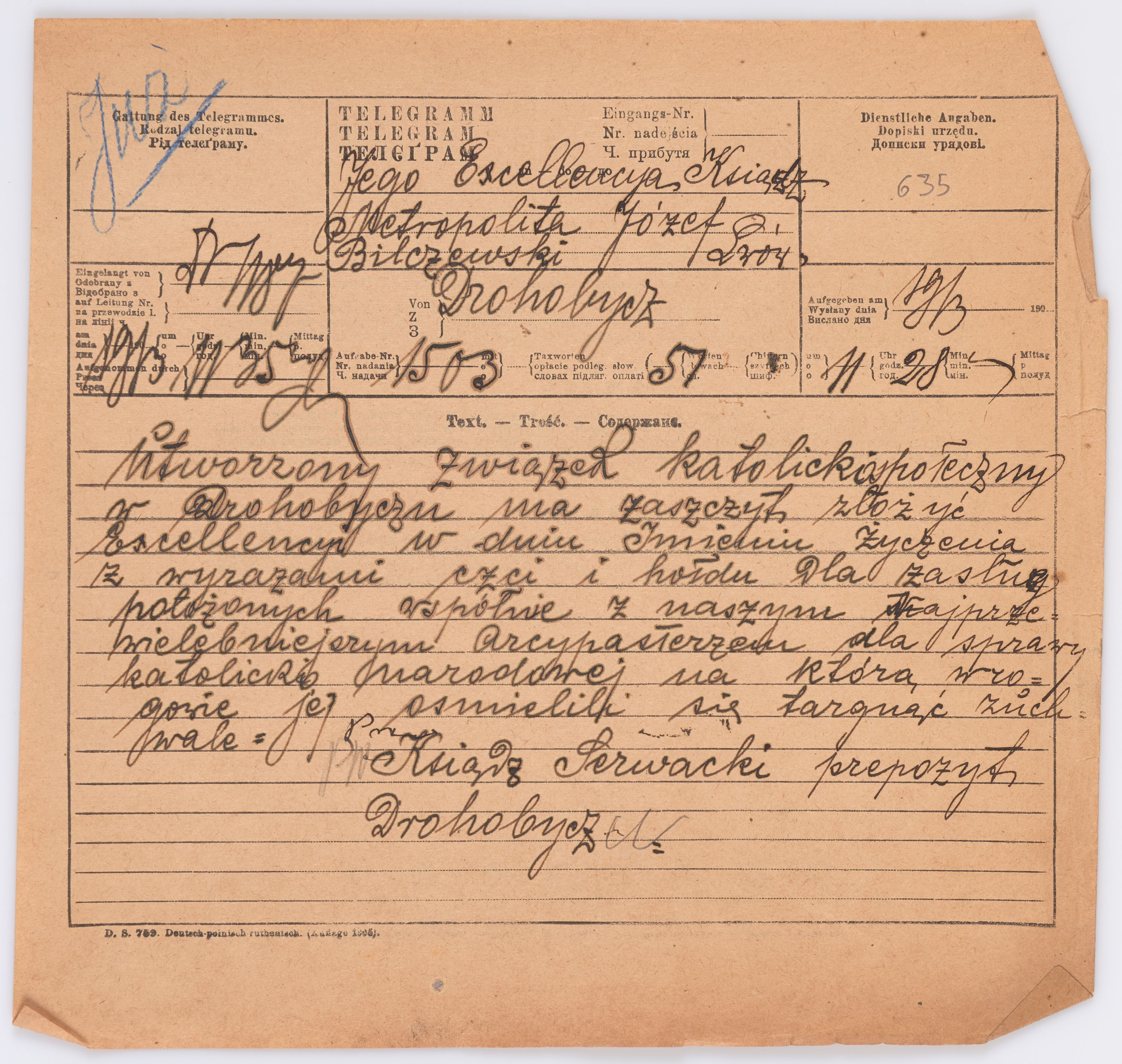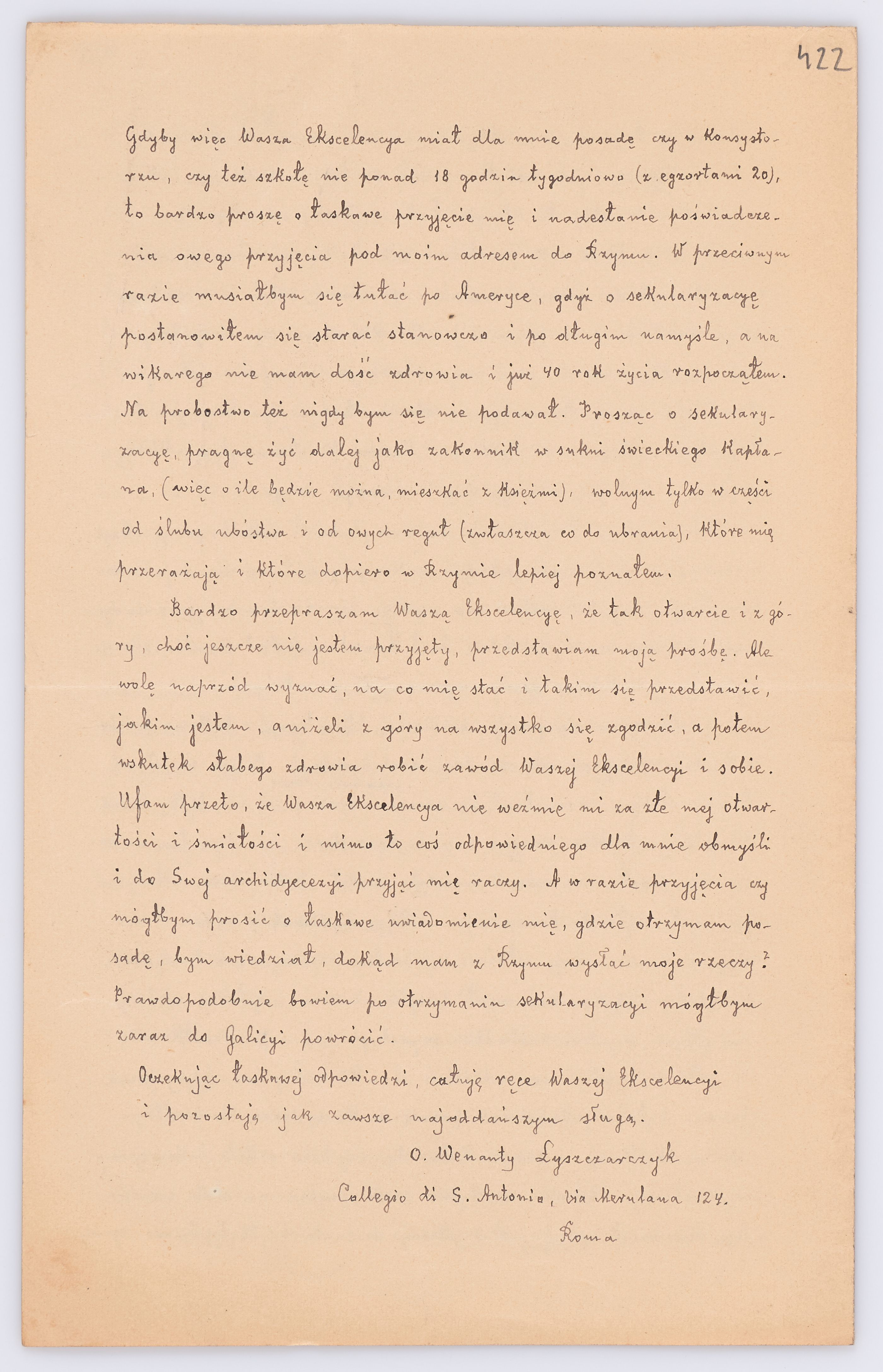 Adresatem wszystkich listów jest św. Józef Bilczewski (1860-1923), arcybiskup lwowski obrządku łacińskiego (1901-1923). Św. Józef Bilczewski powszechnie znany jest z działalności duszpasterskiej, administracyjnej i patriotycznej, którą prowadził przewodząc archidiecezji lwowskiej przez 23 lata, jego zasługi na tym polu są niepodważalne, a świadectwem aktywności tych działań jest właśnie bogata korespondencja z tego okresu.