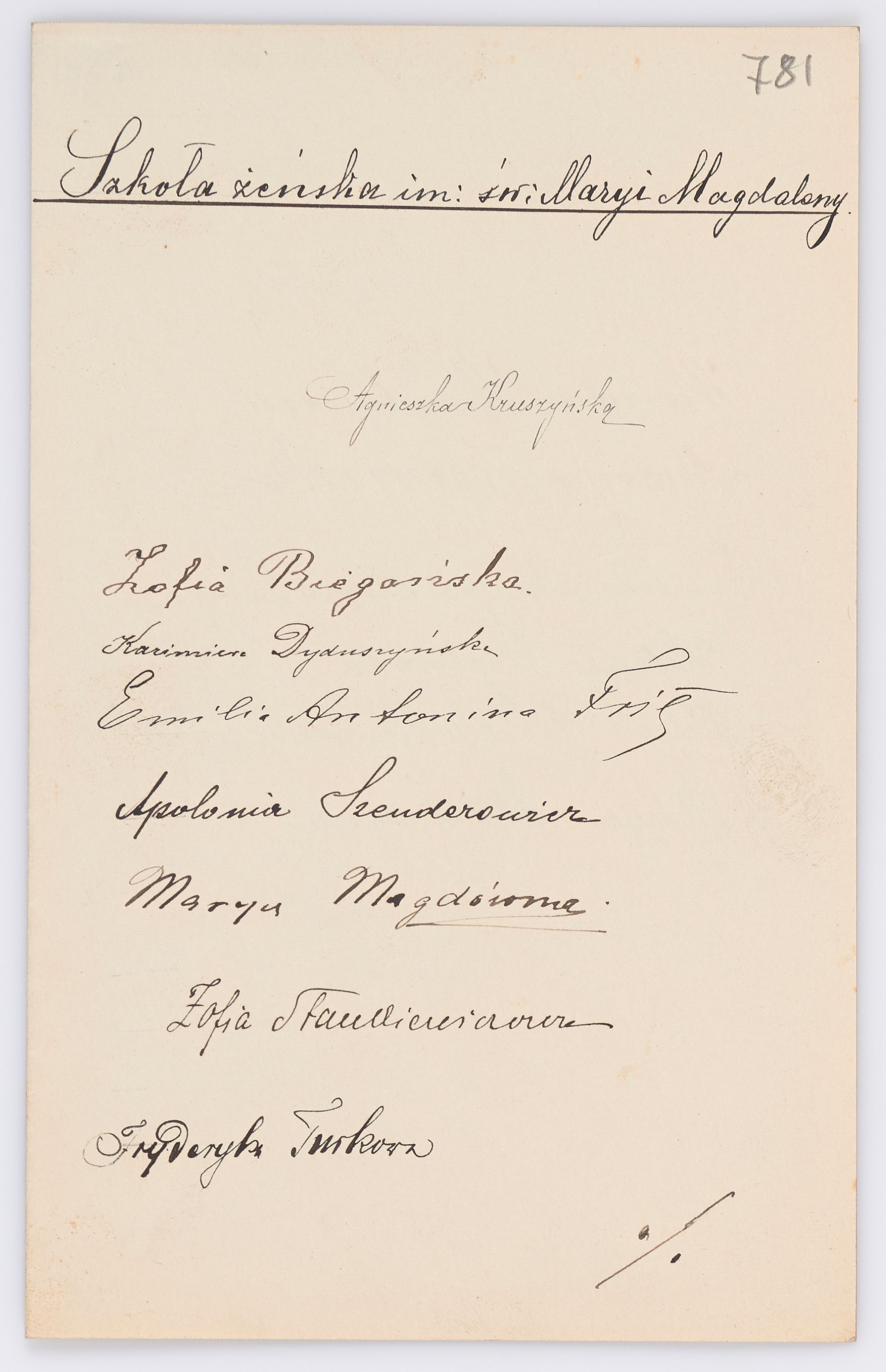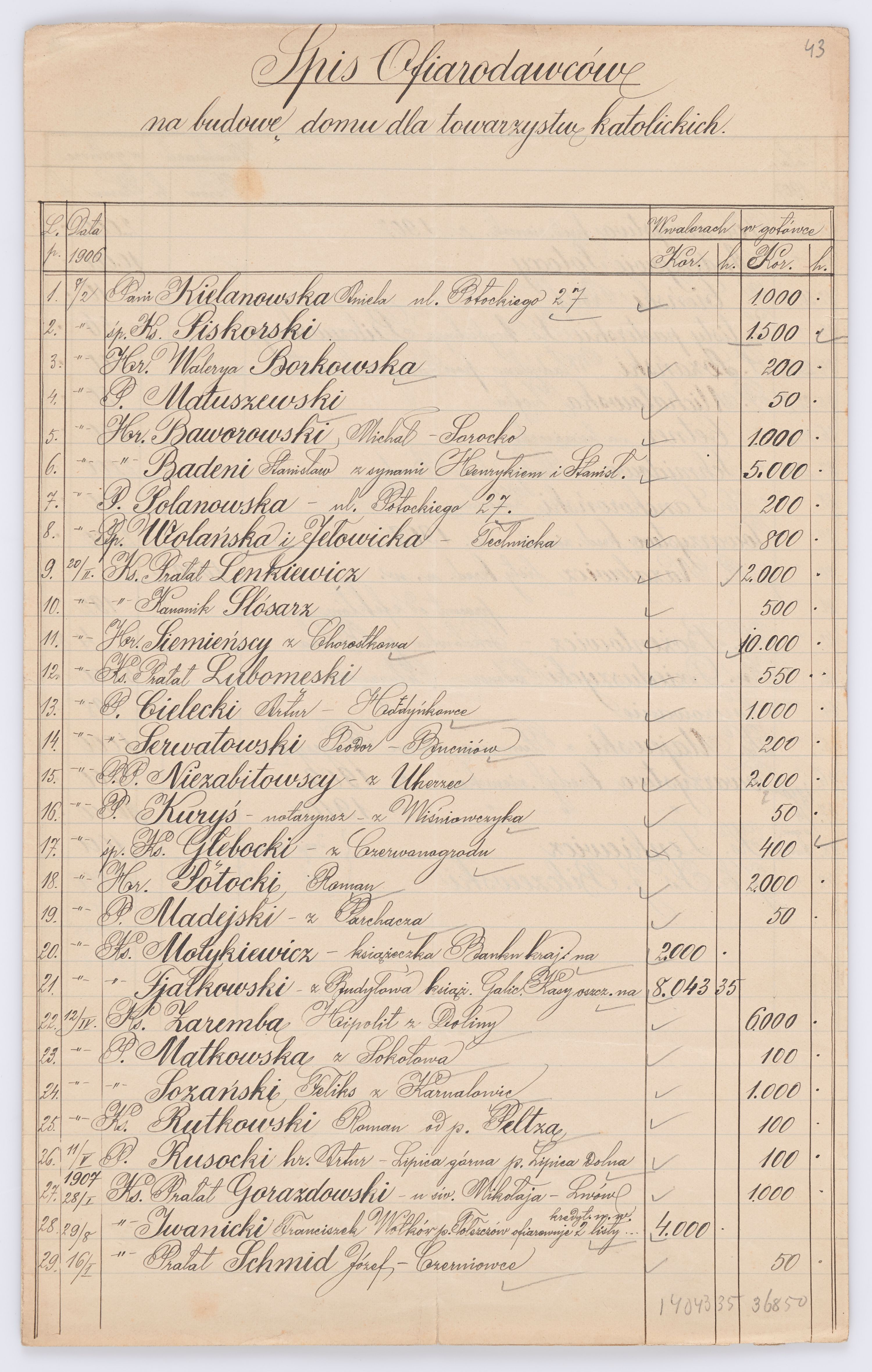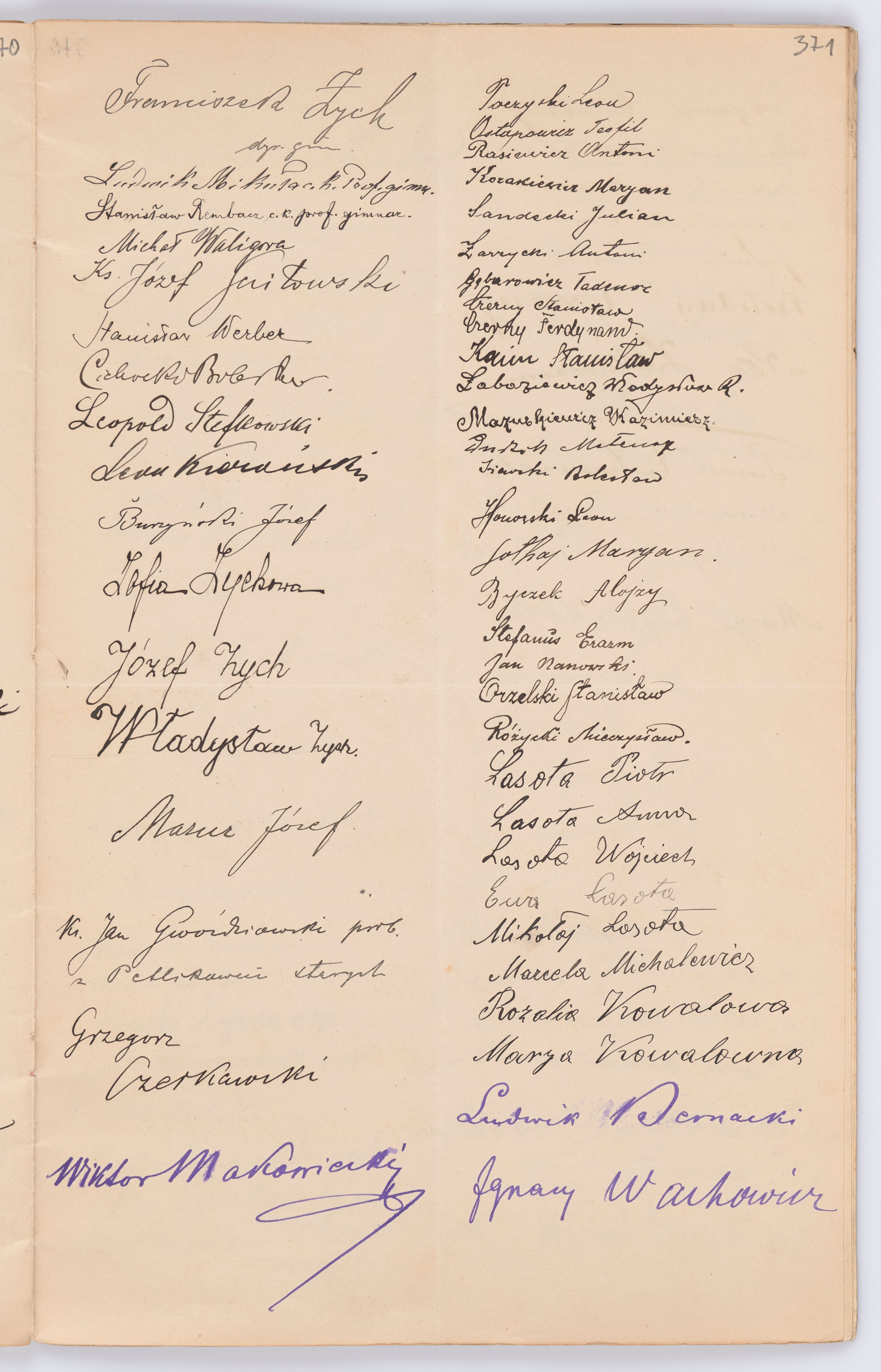 Listy ułożone zostały w porządku alfabetycznym - zgodnie z kluczem nazwisk, nazw zgromadzeń, cz instytucji.