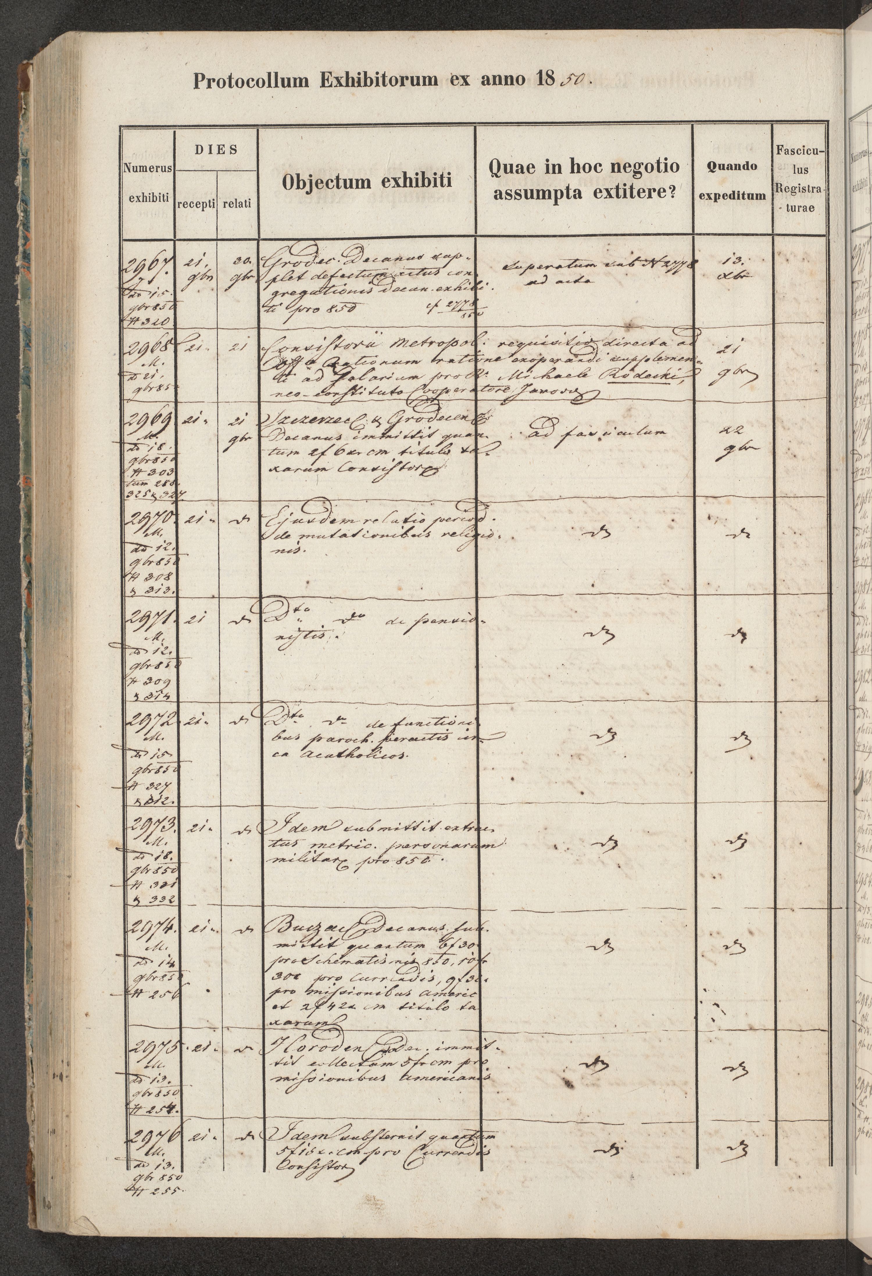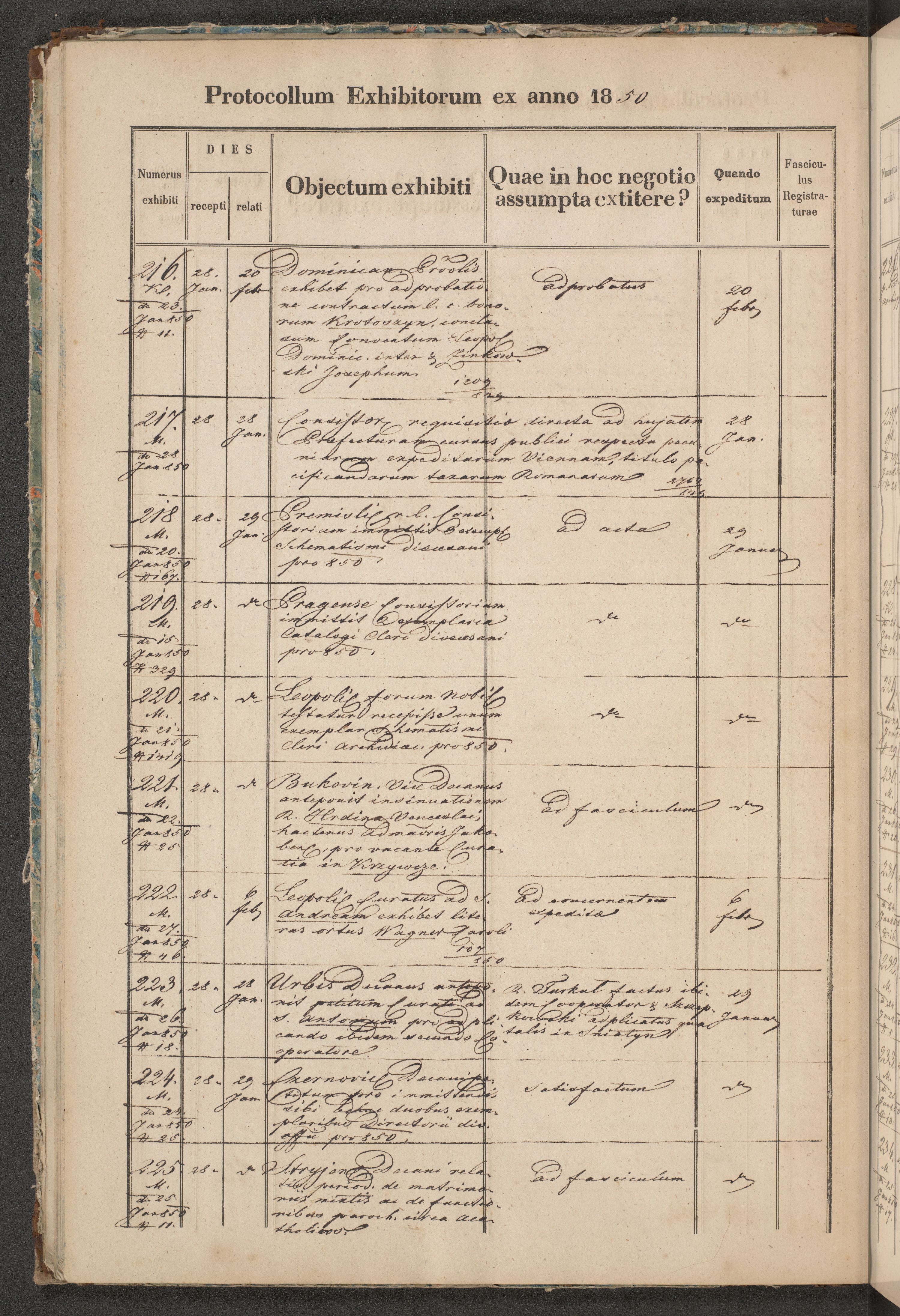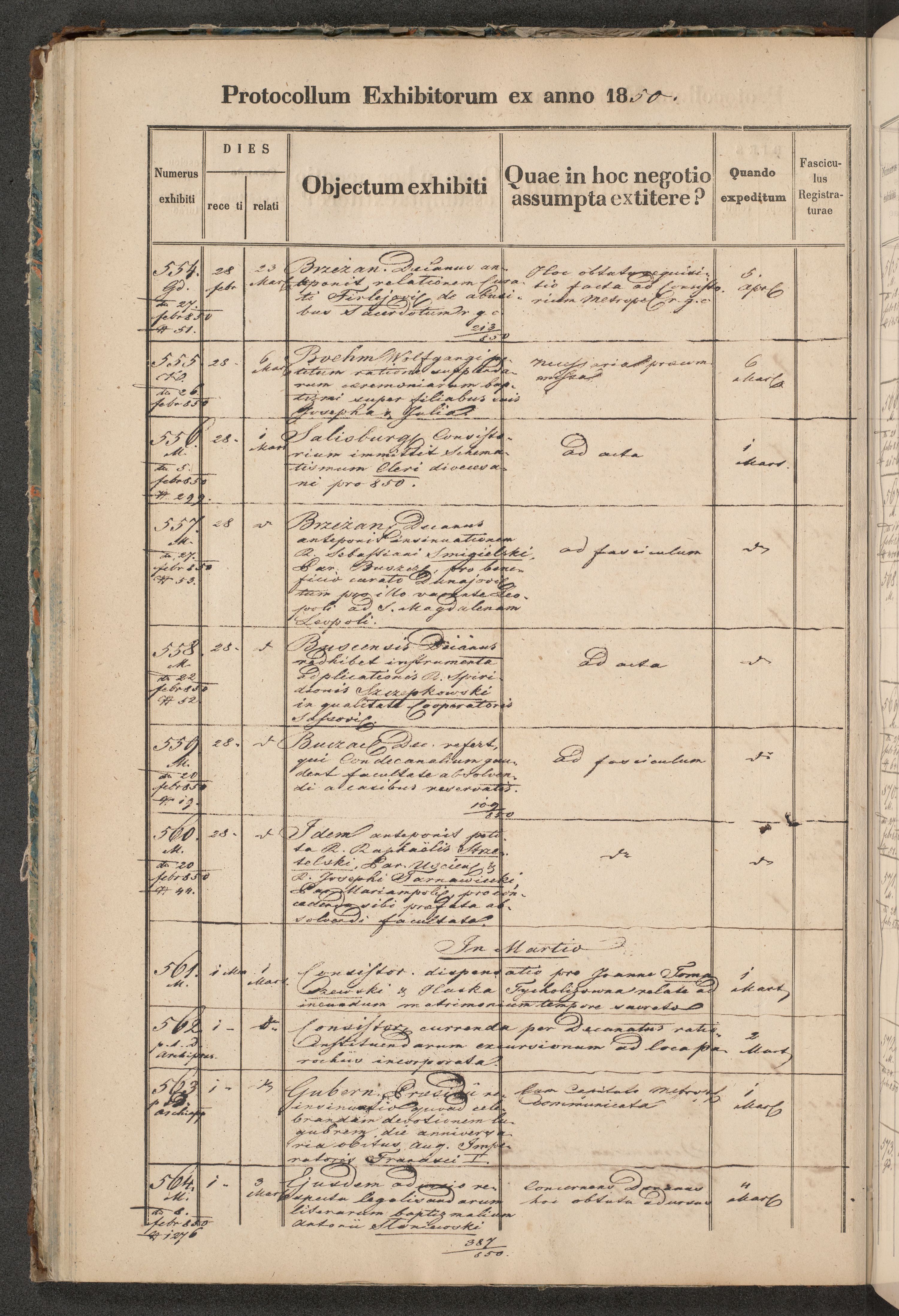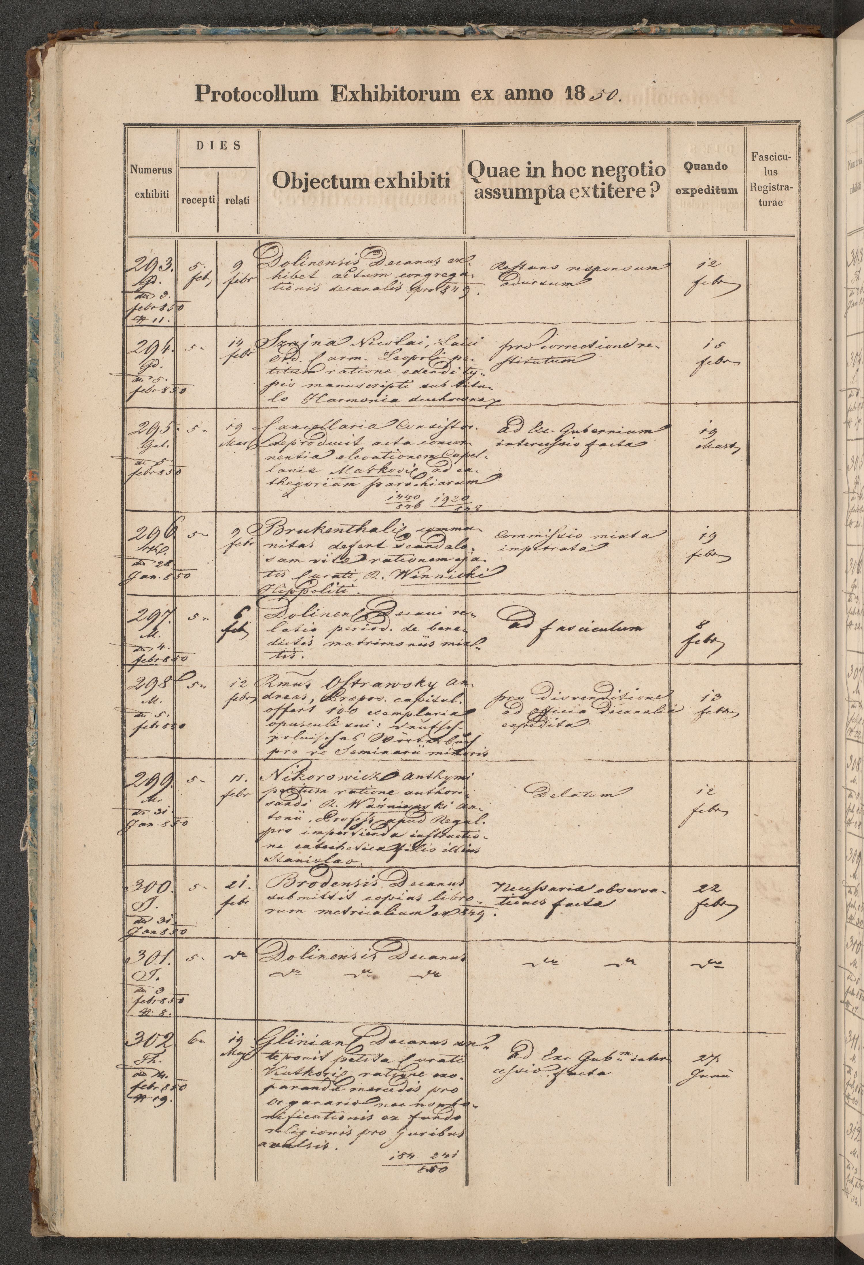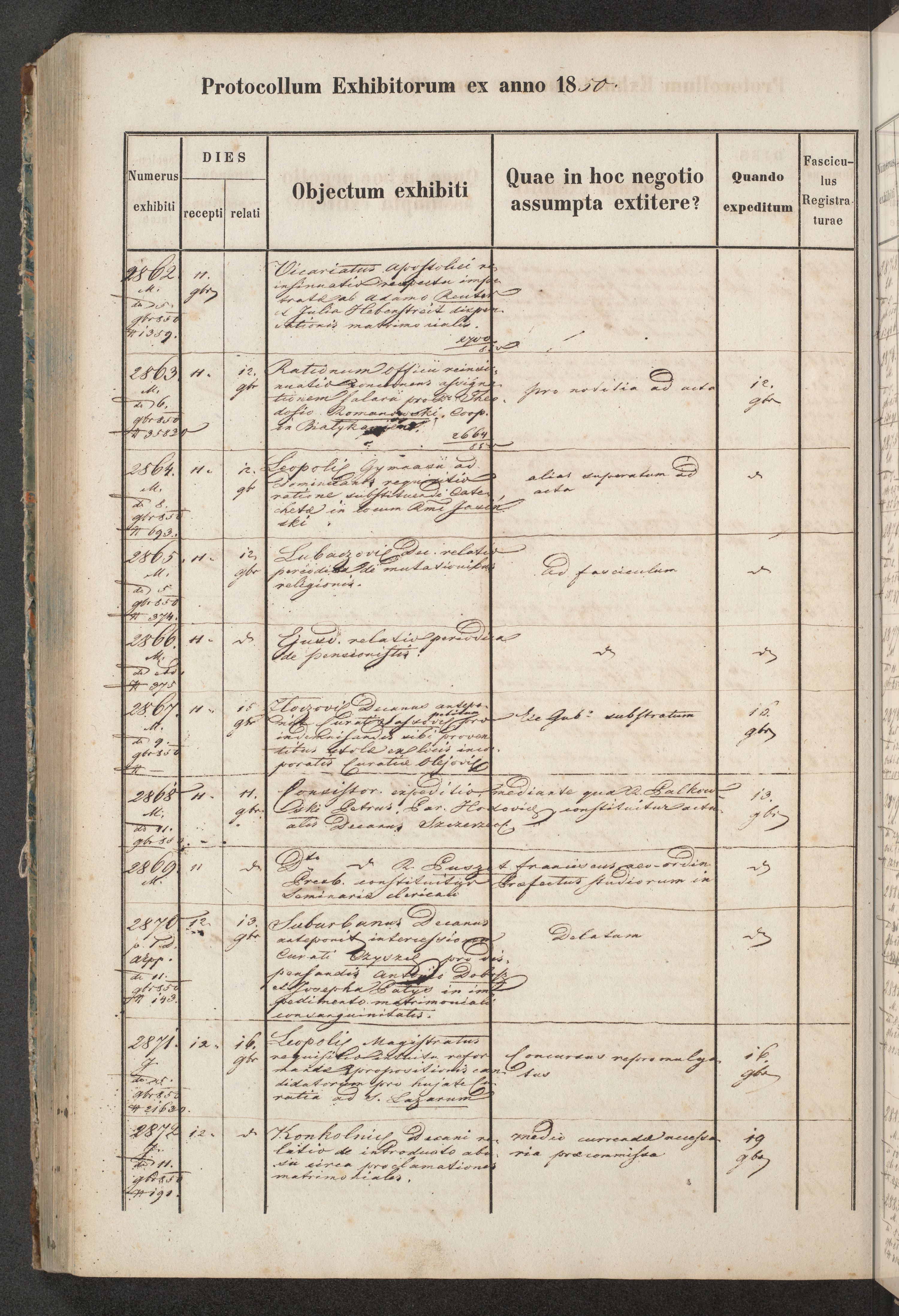 Protocollon exhibitorum in Ecclesiasticis ex anno 1850