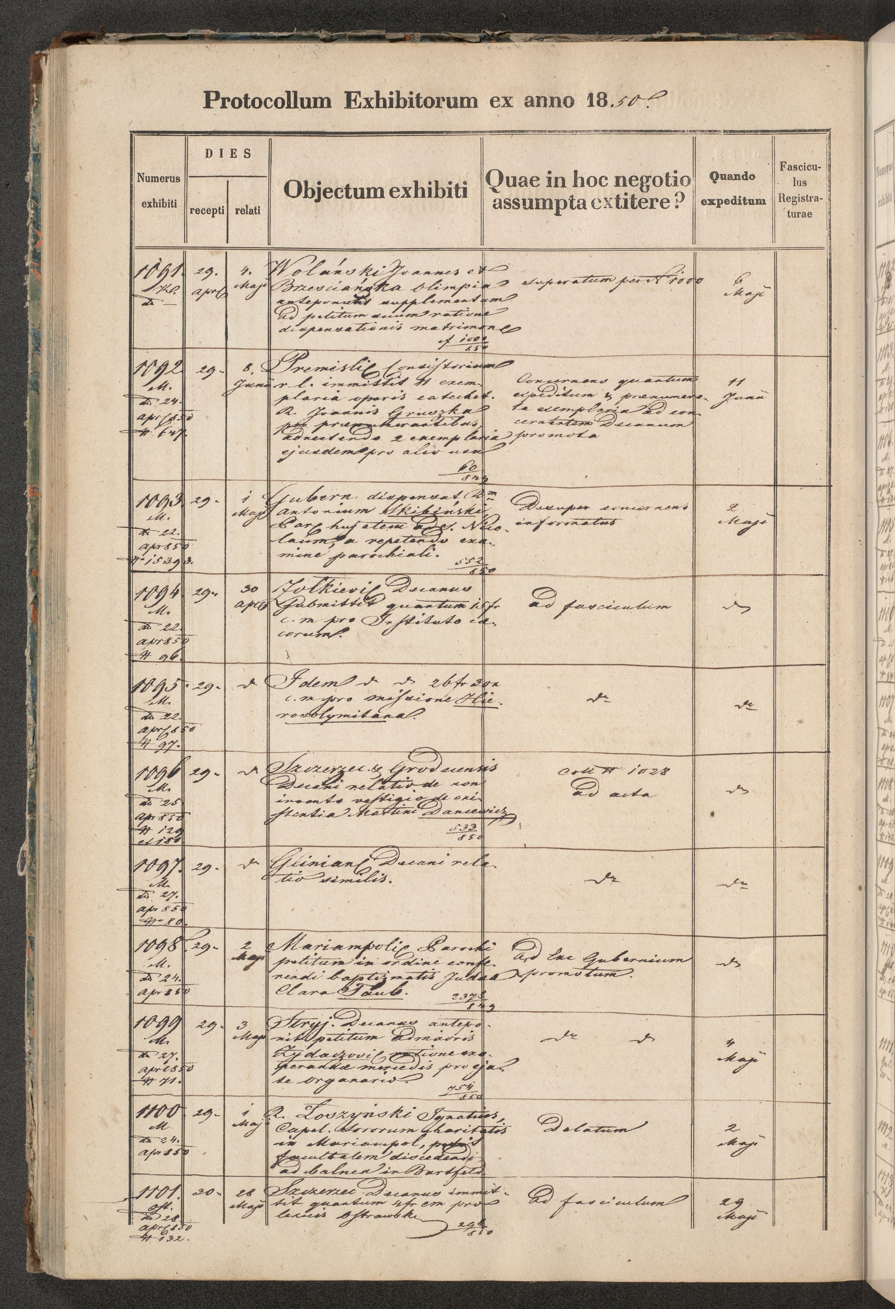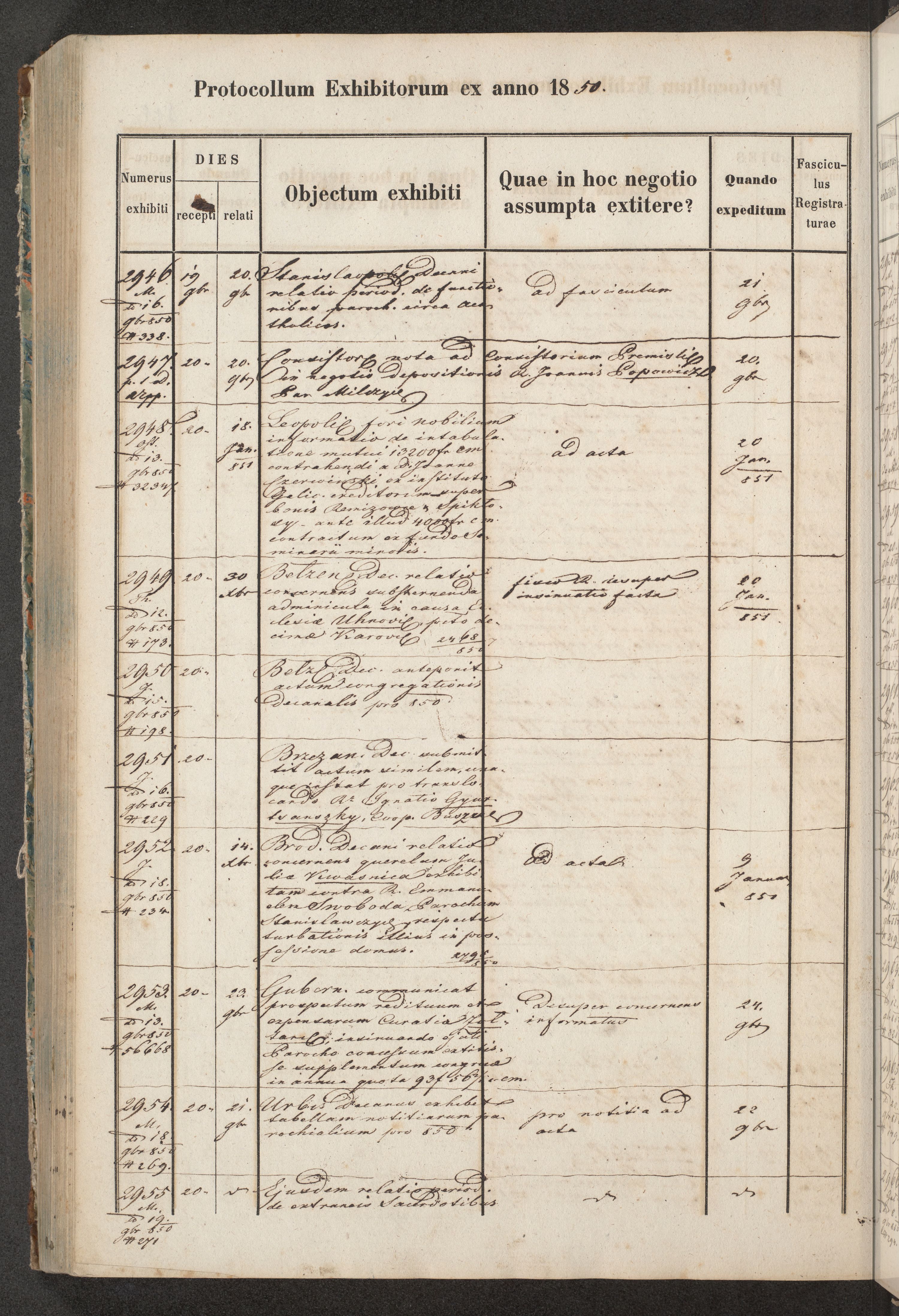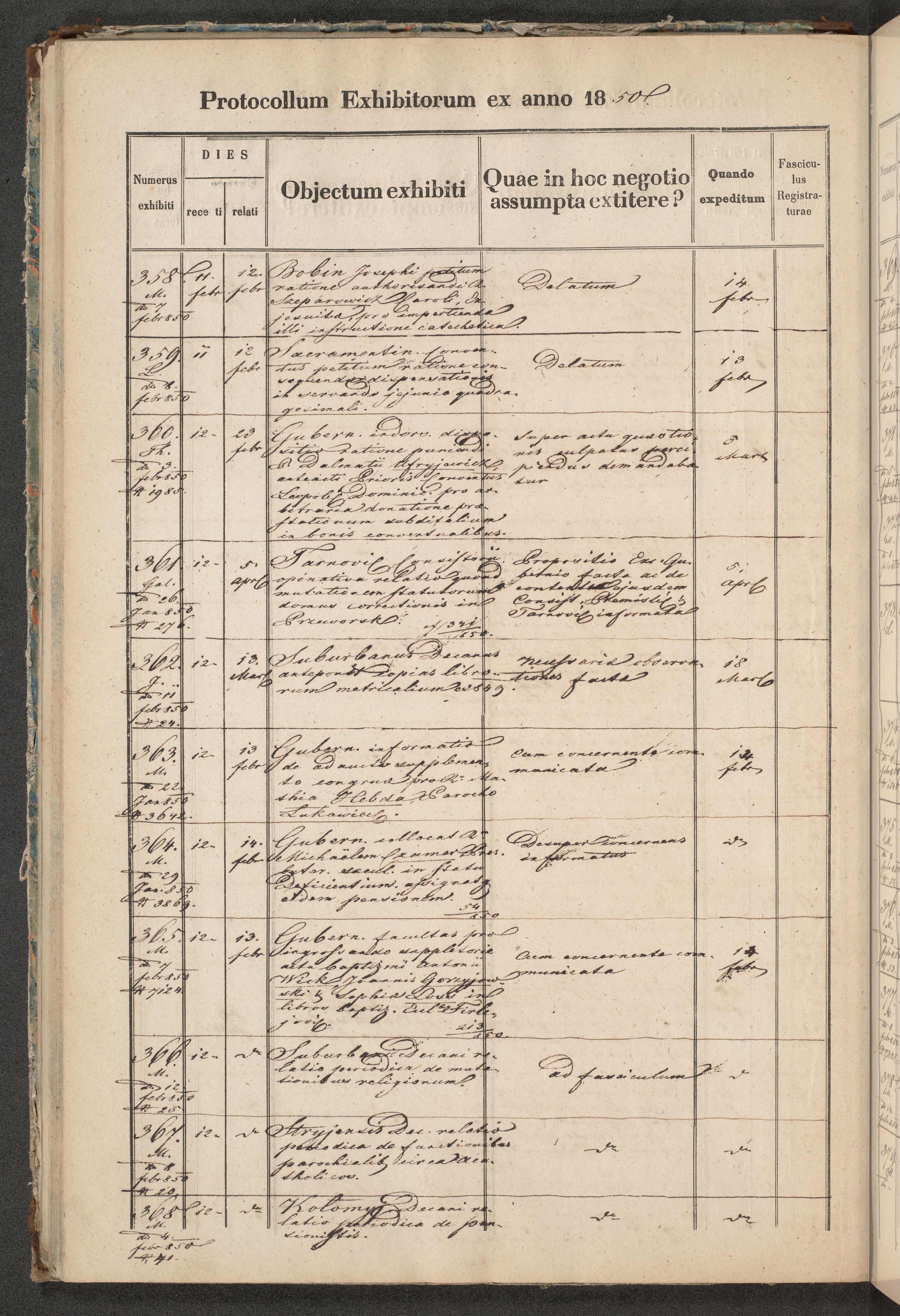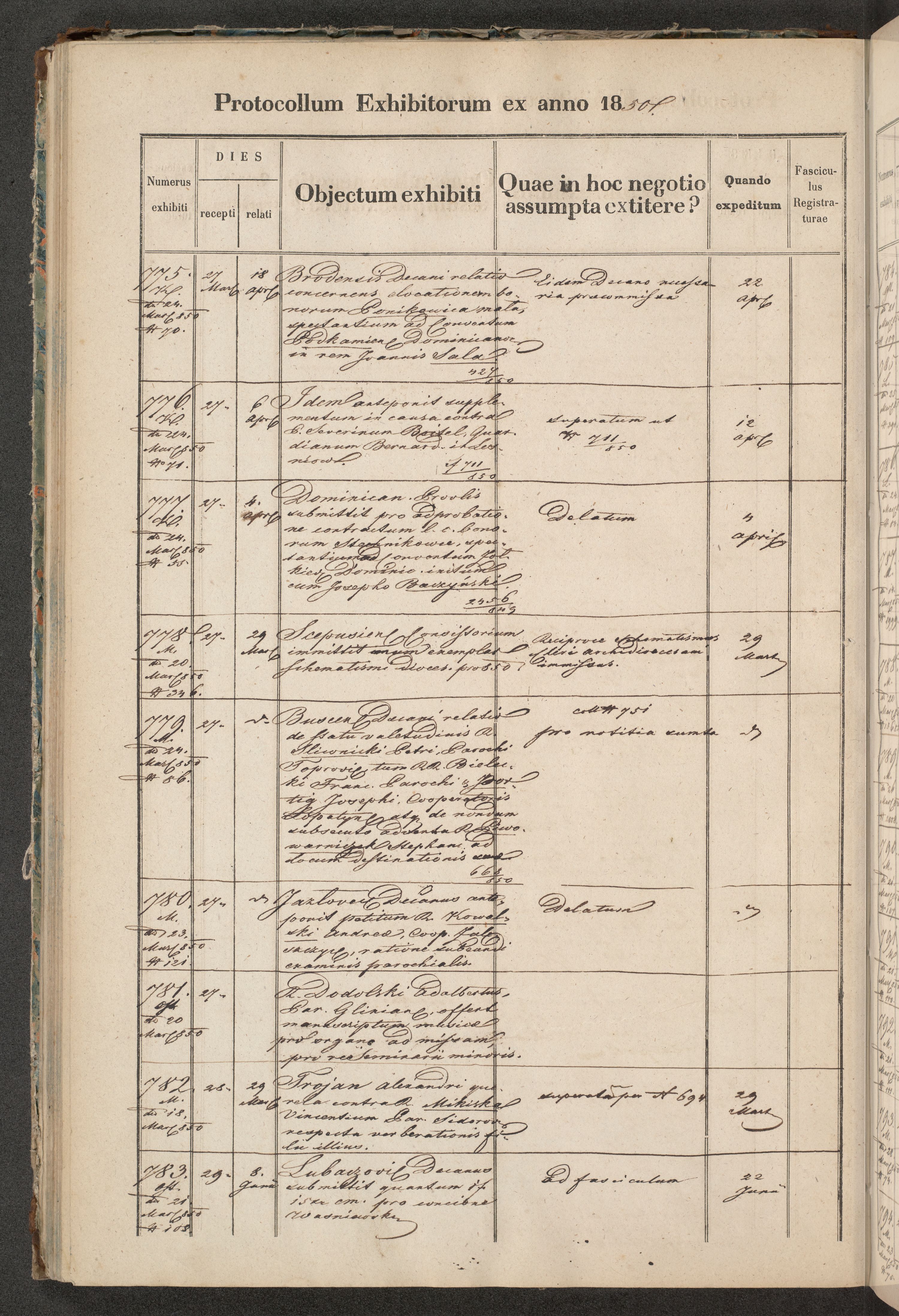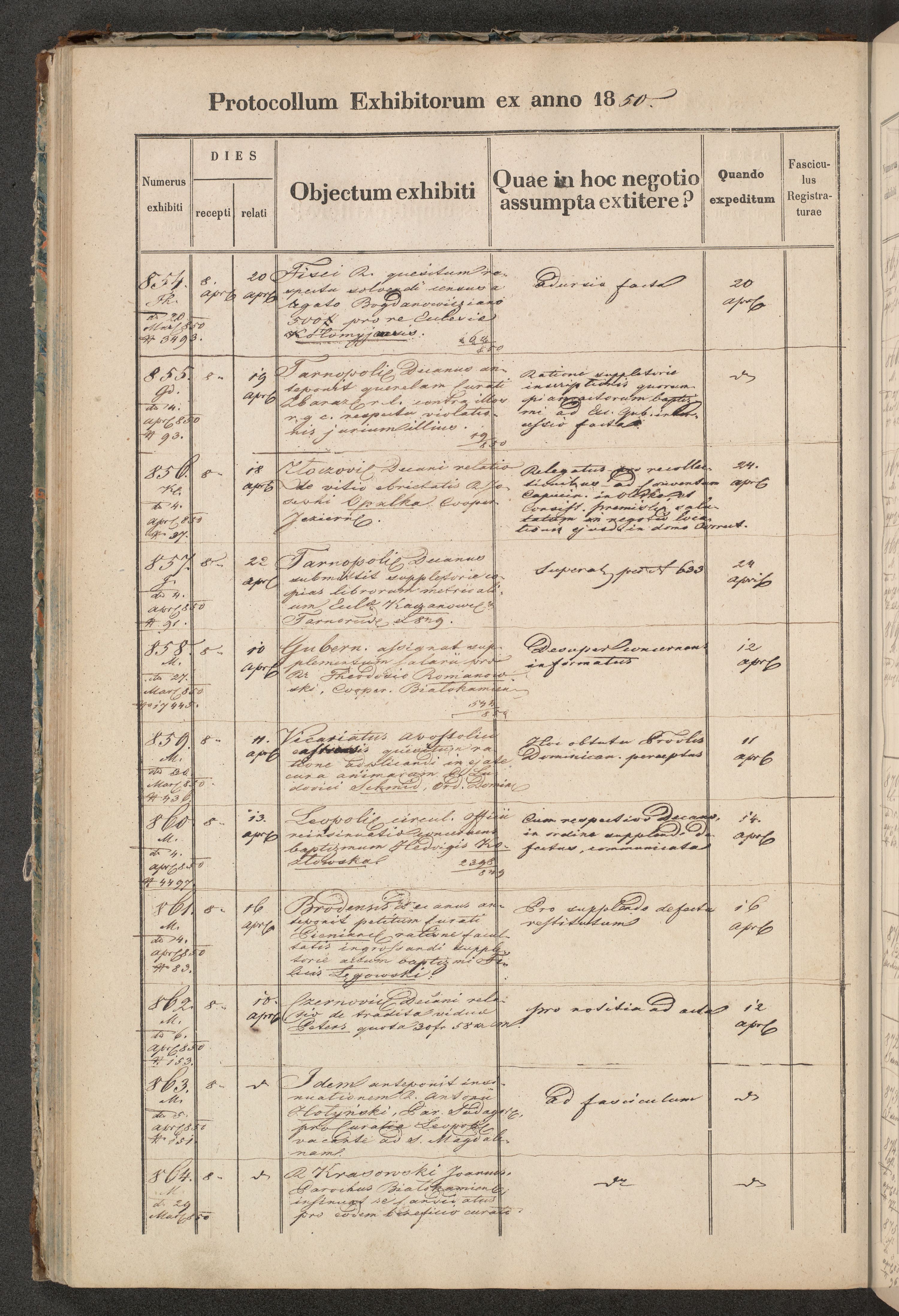 Protocollon exhibitorum in Ecclesiasticis ex anno 1850