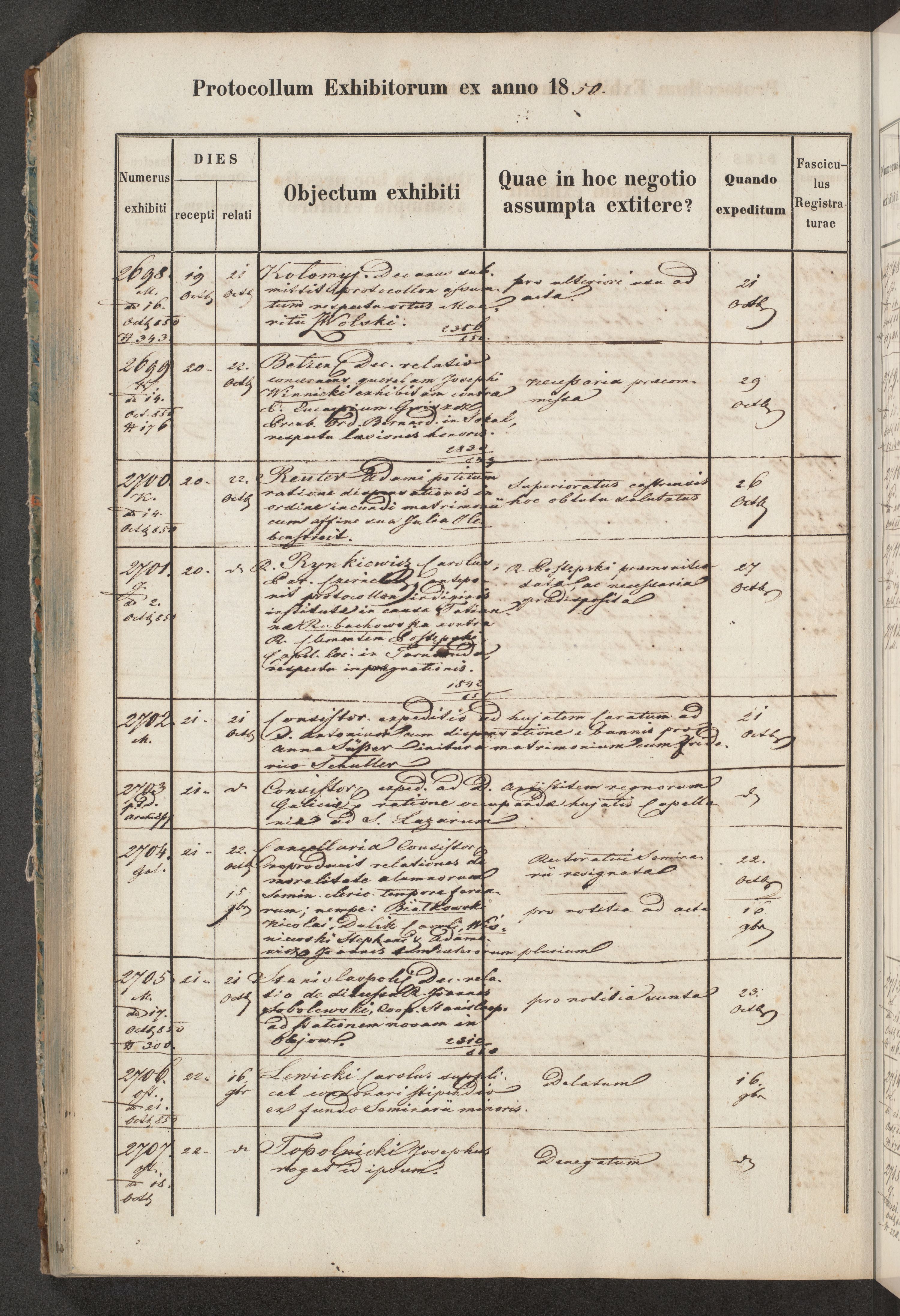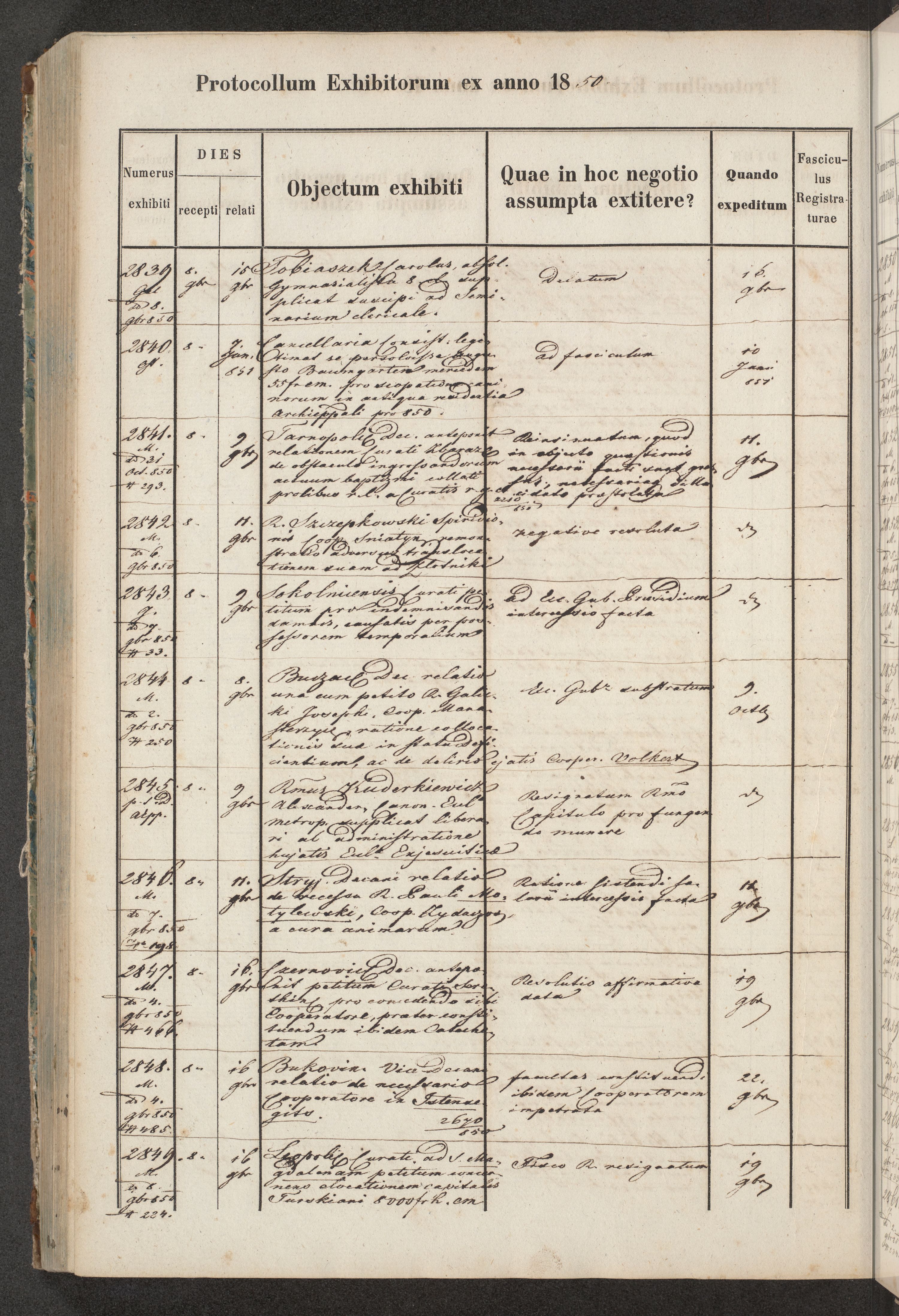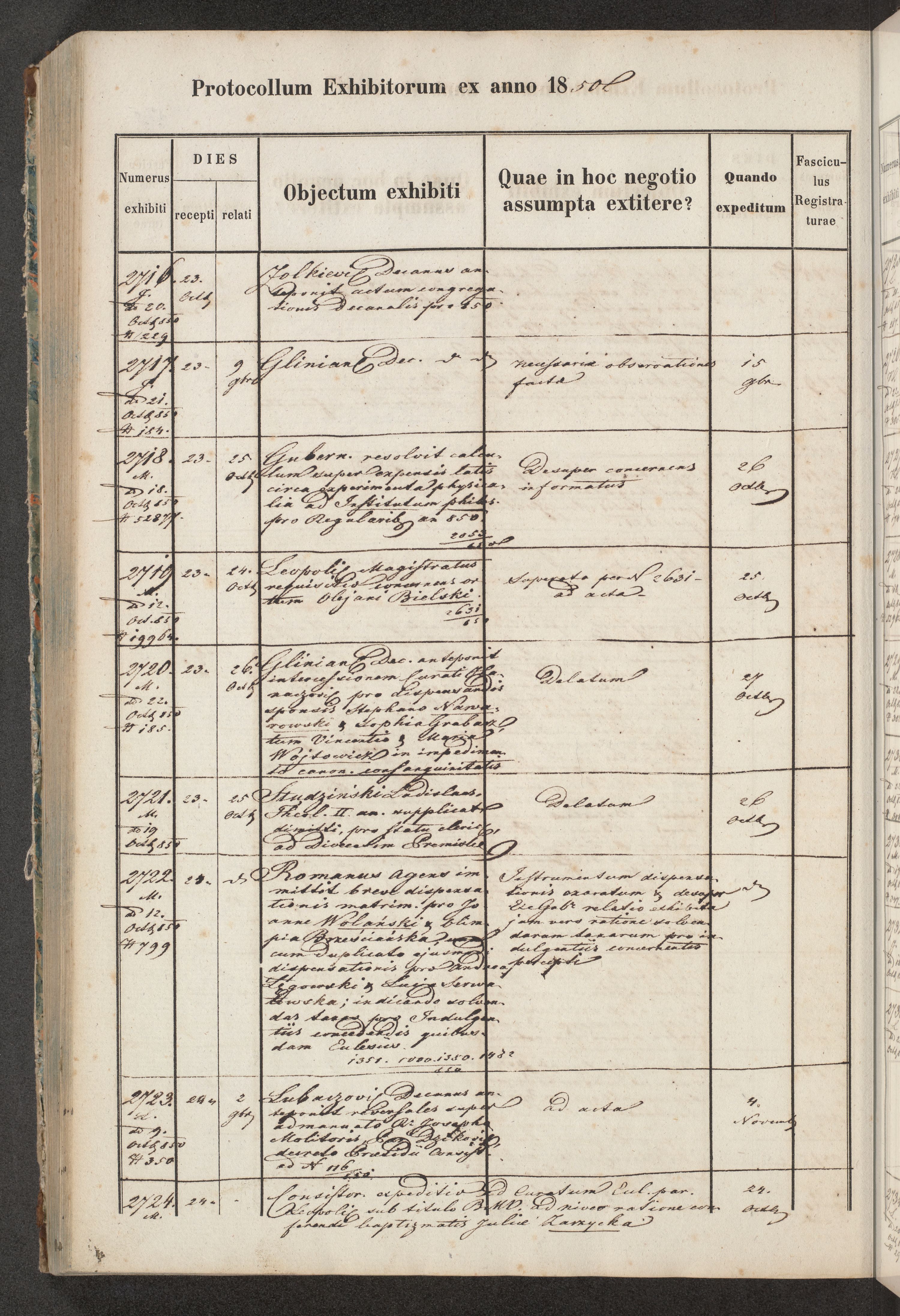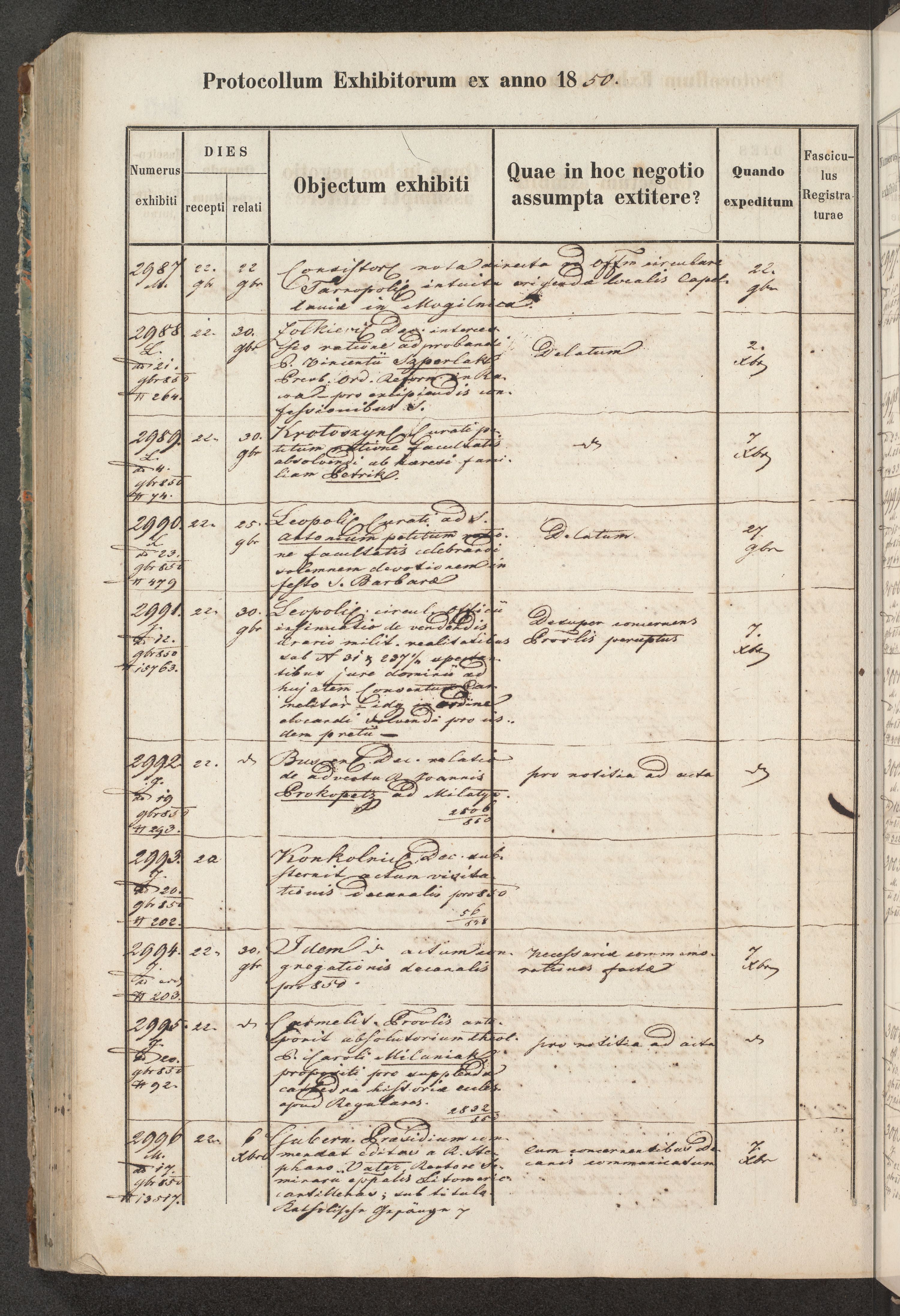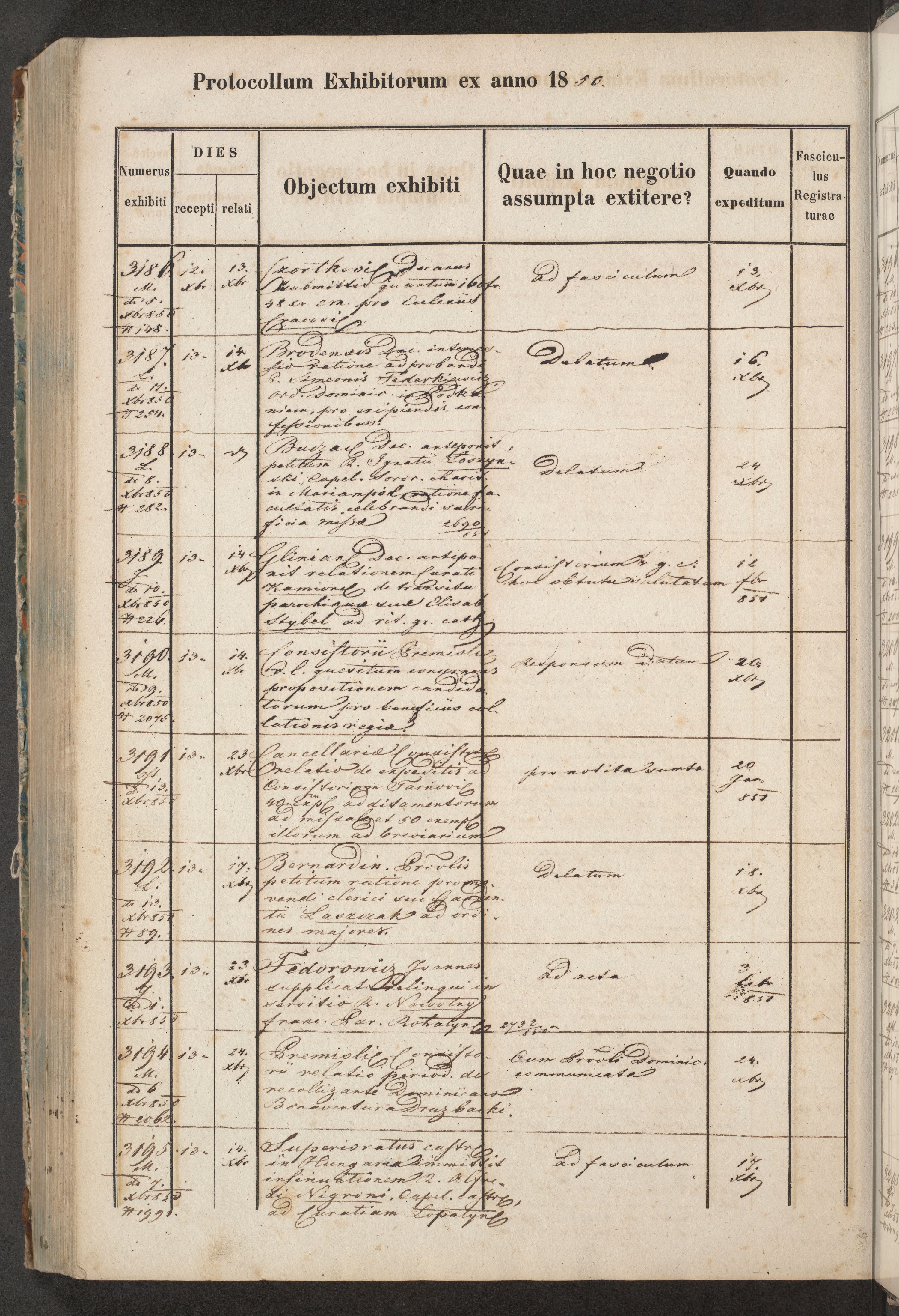Protocollon exhibitorum in Ecclesiasticis ex anno 1850