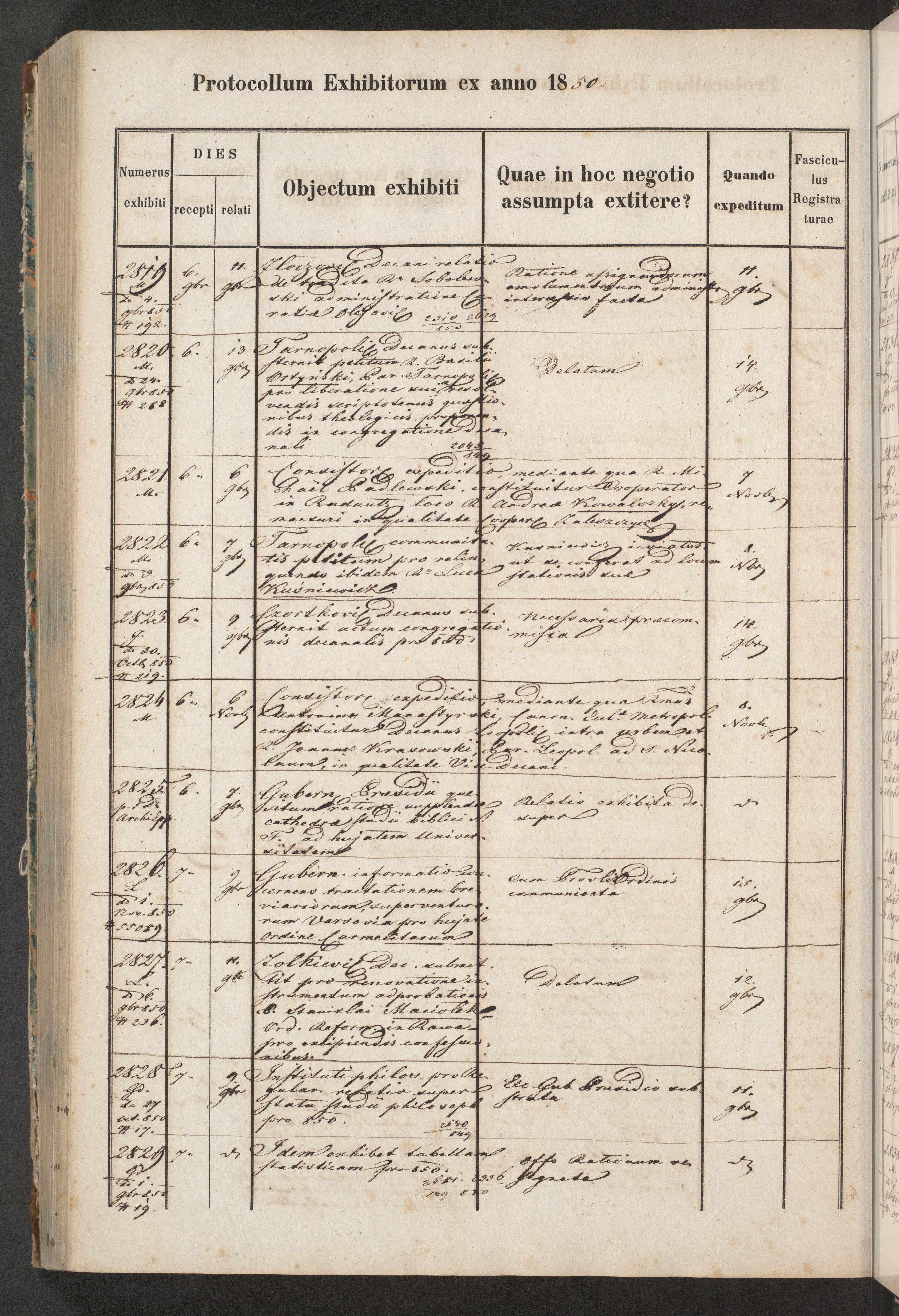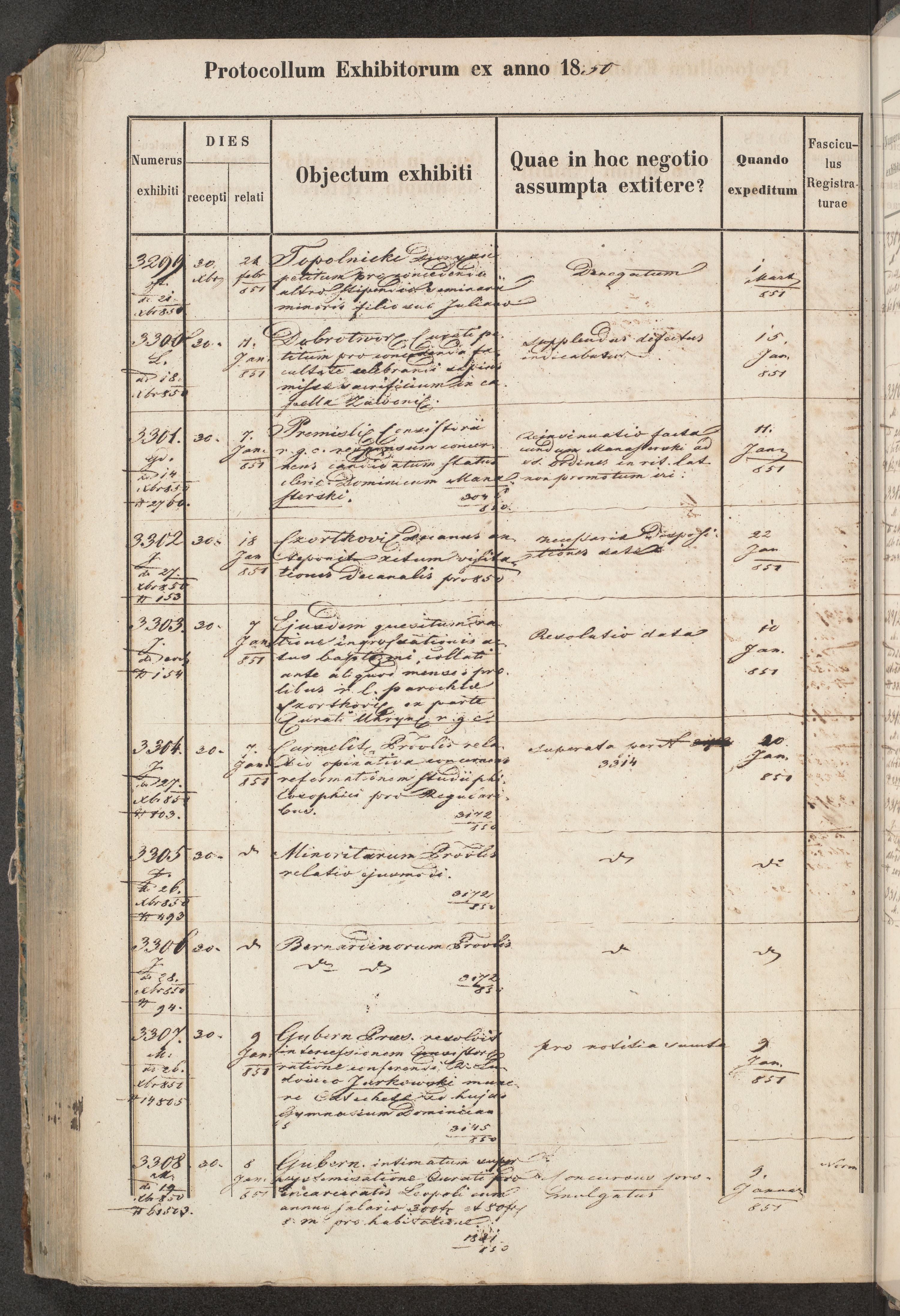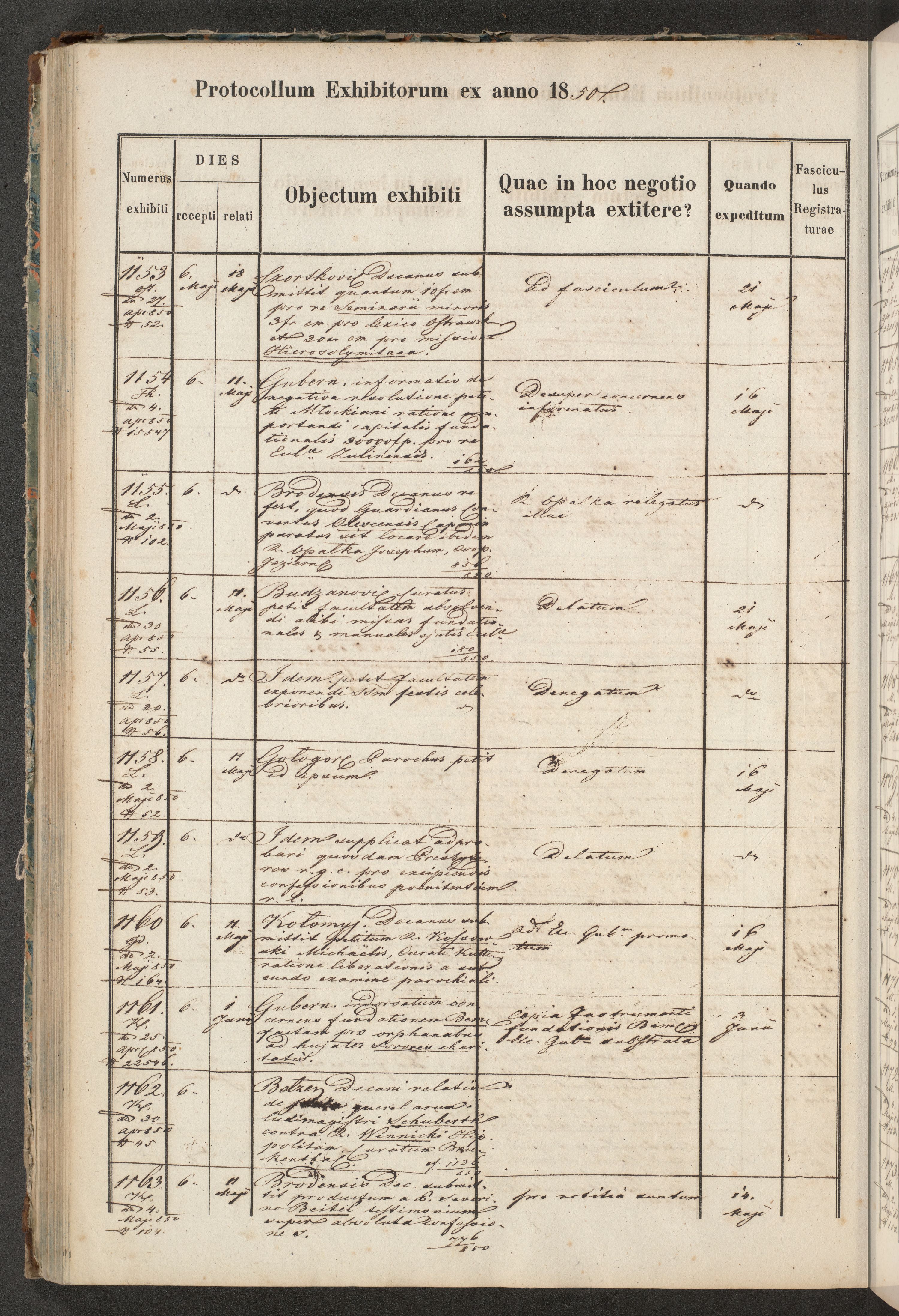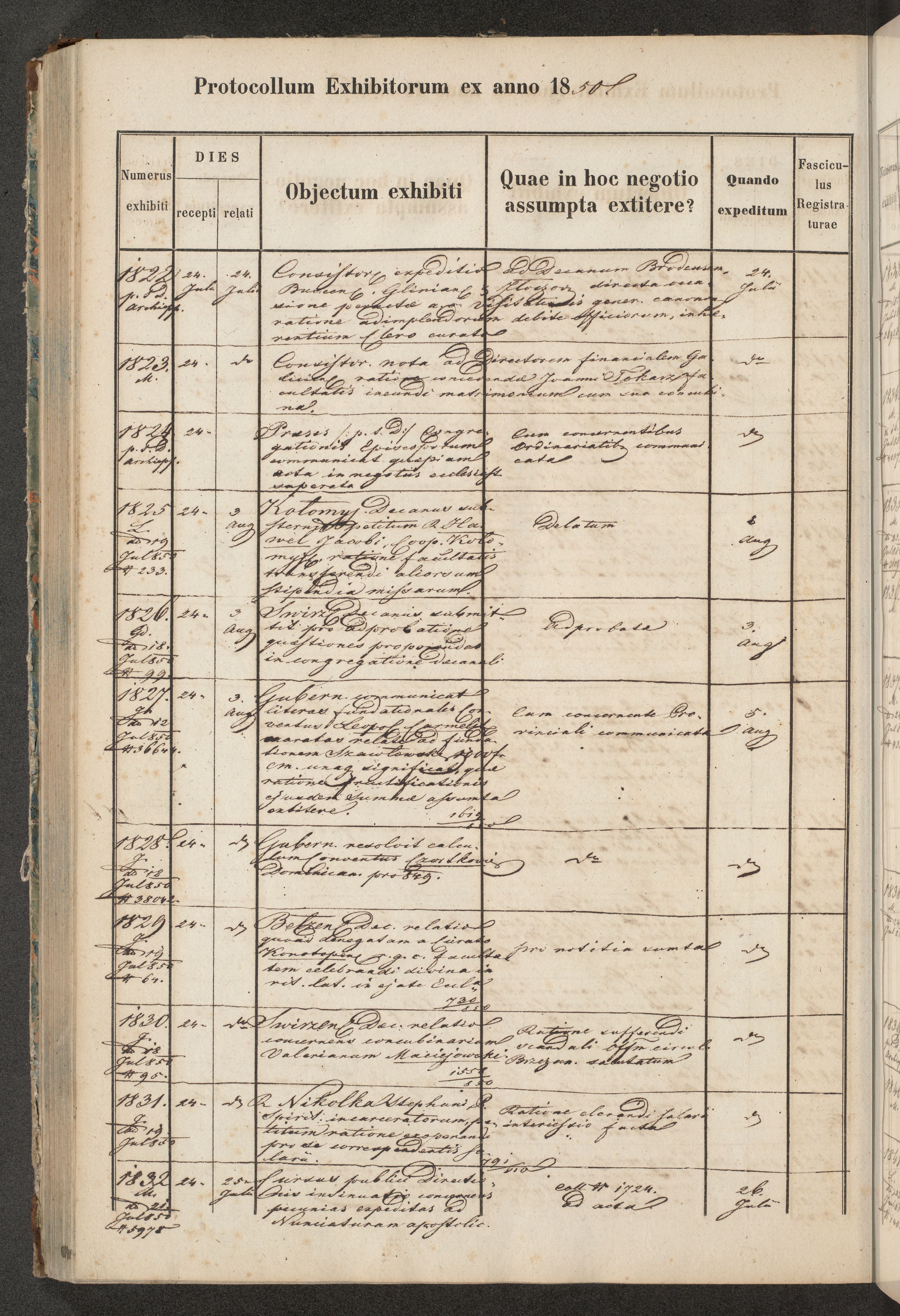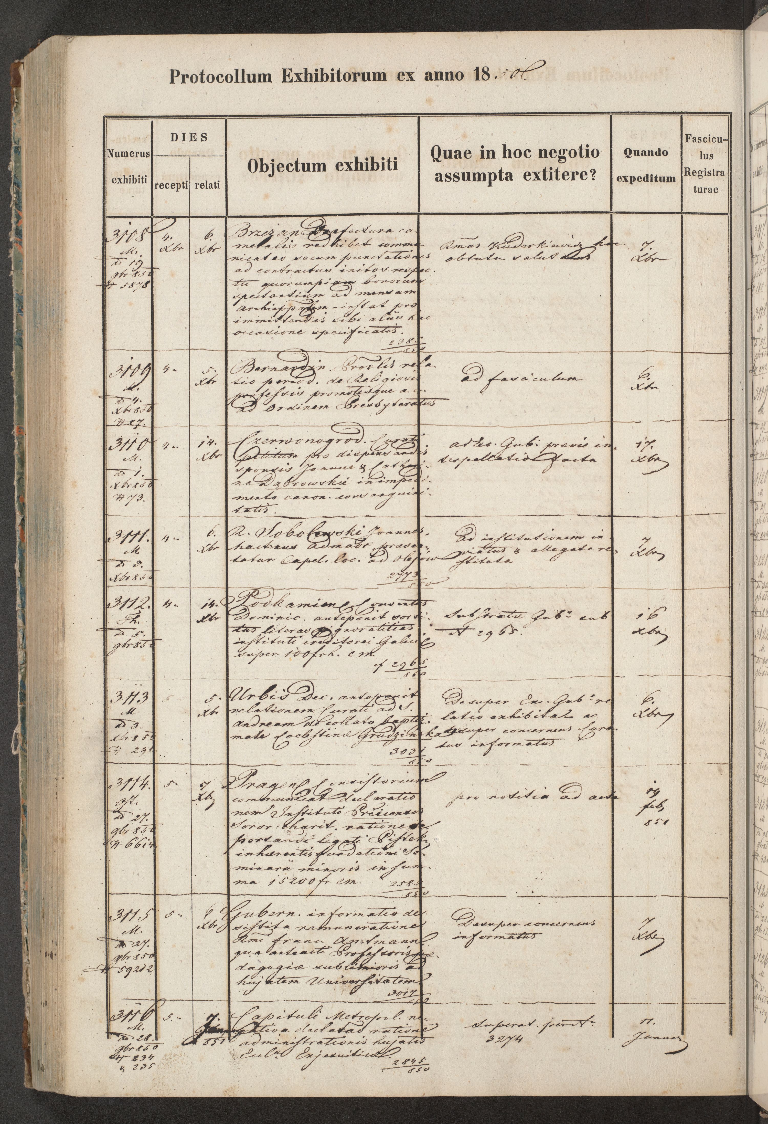 Protocollon exhibitorum in Ecclesiasticis ex anno 1850