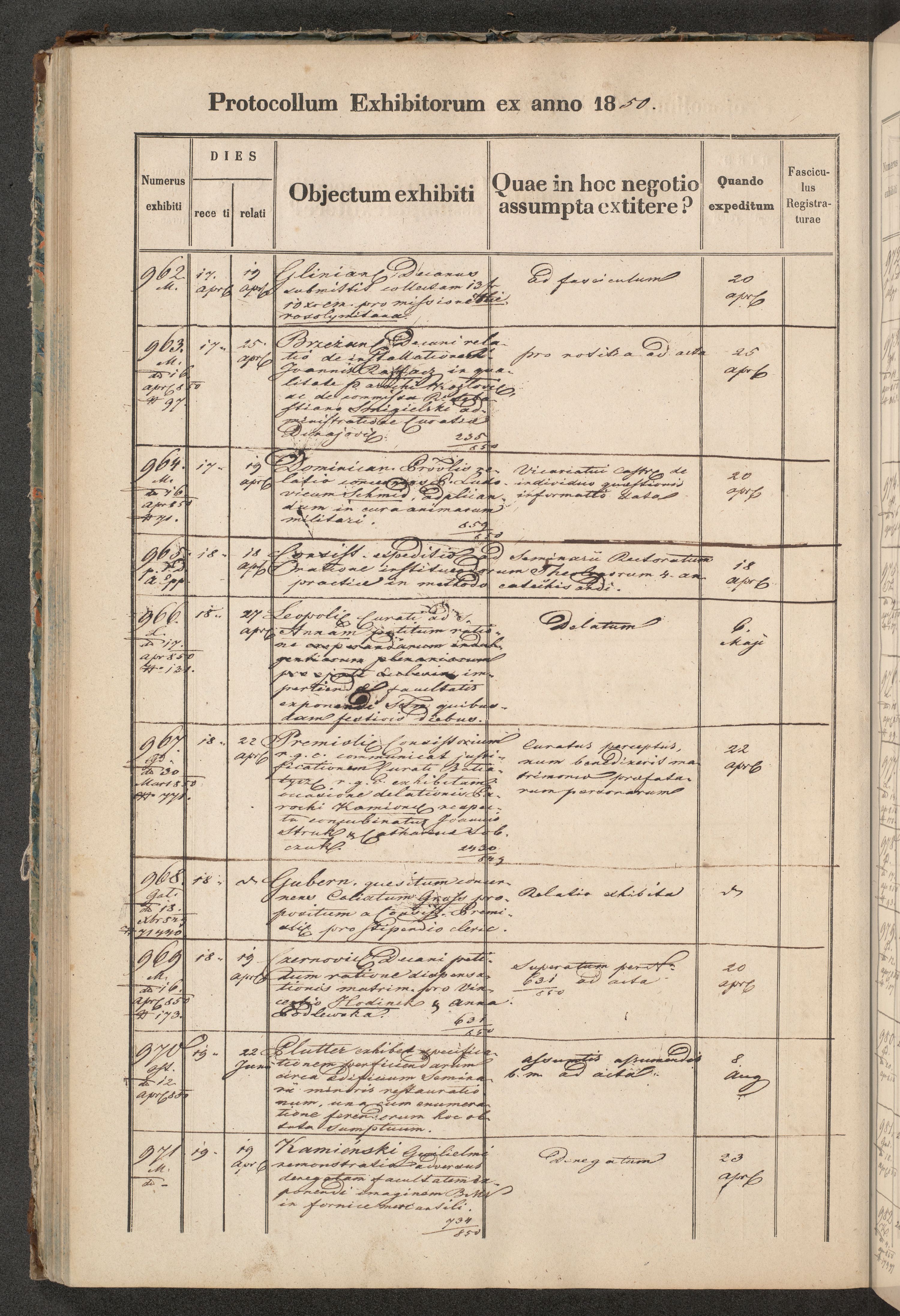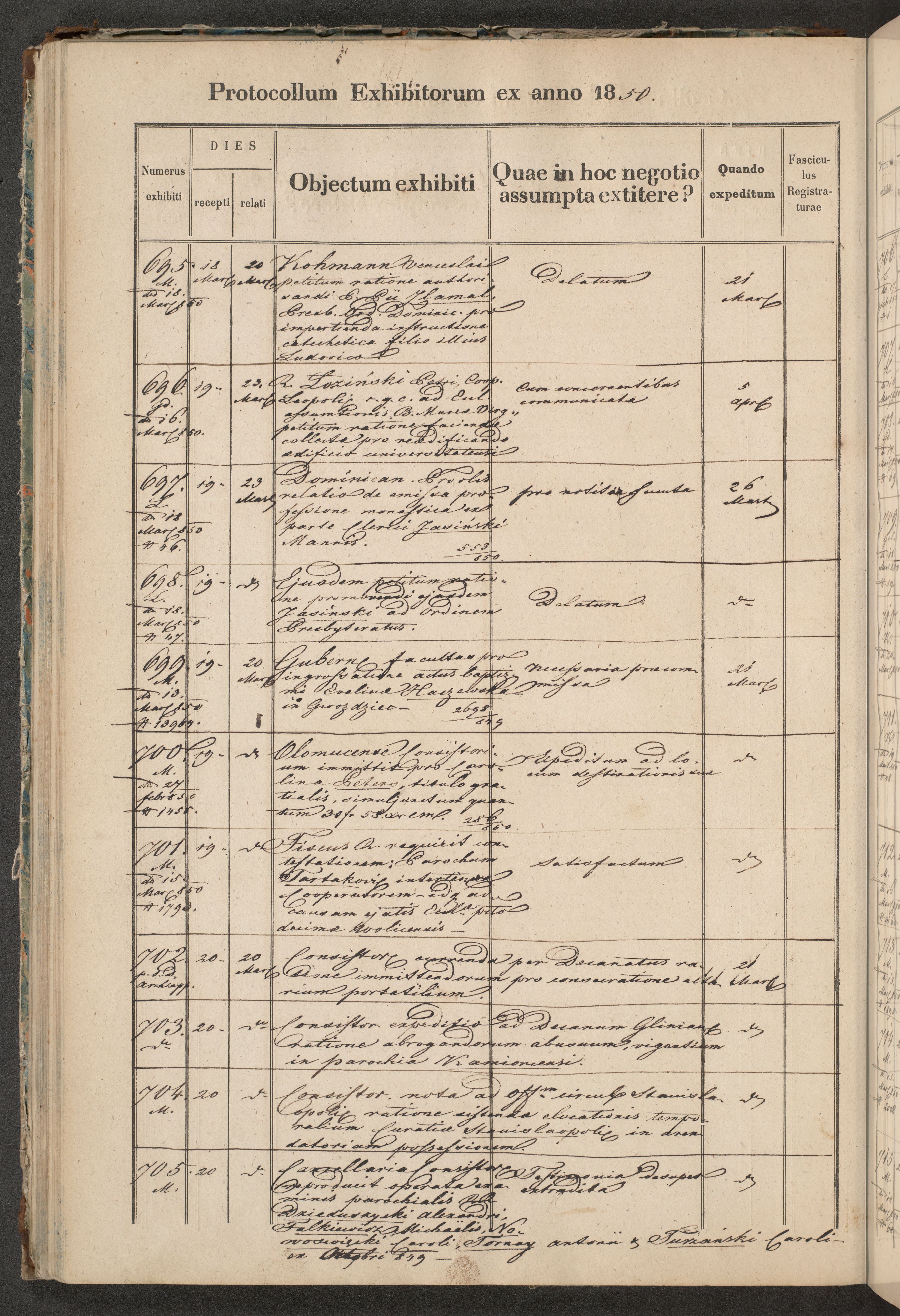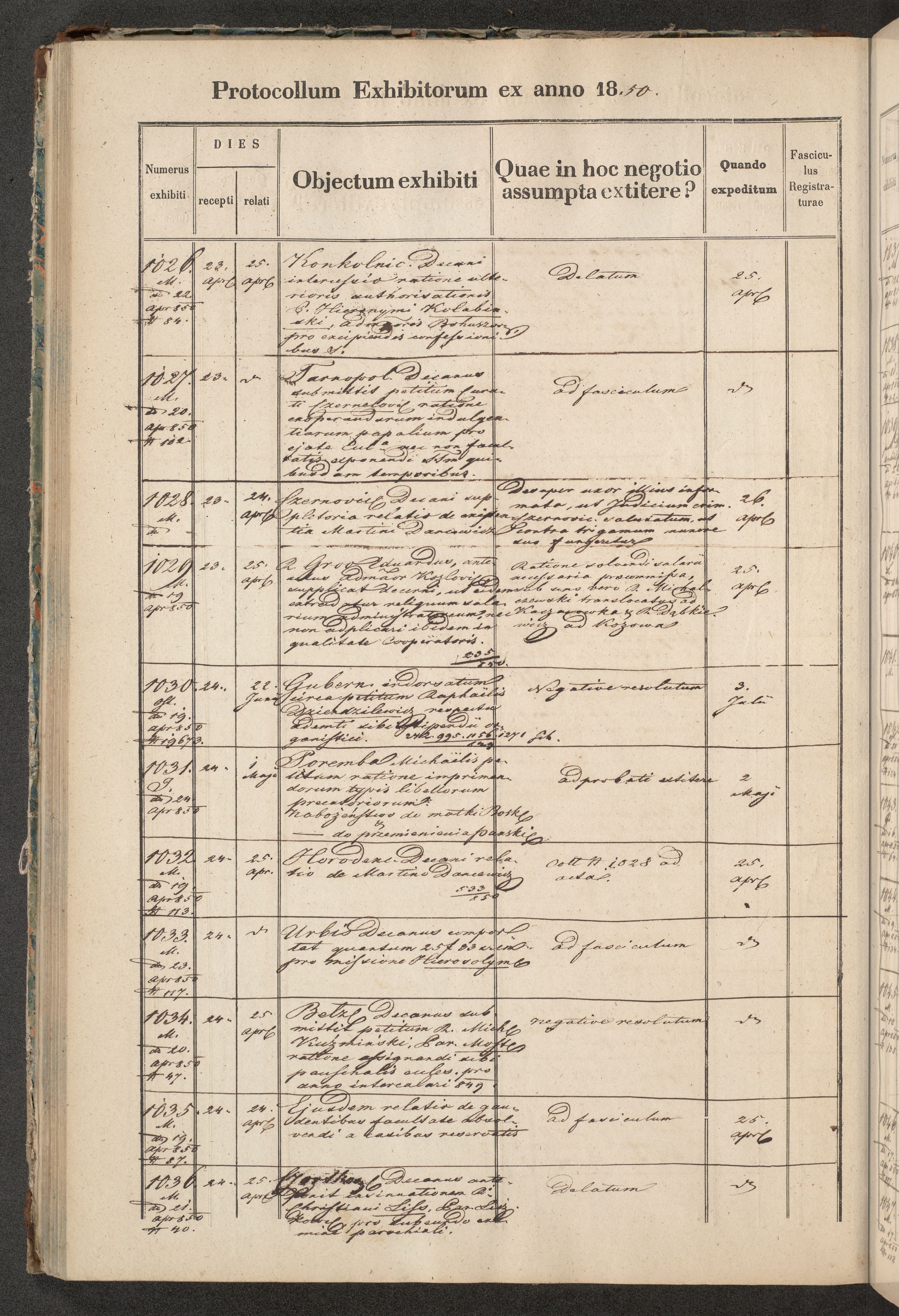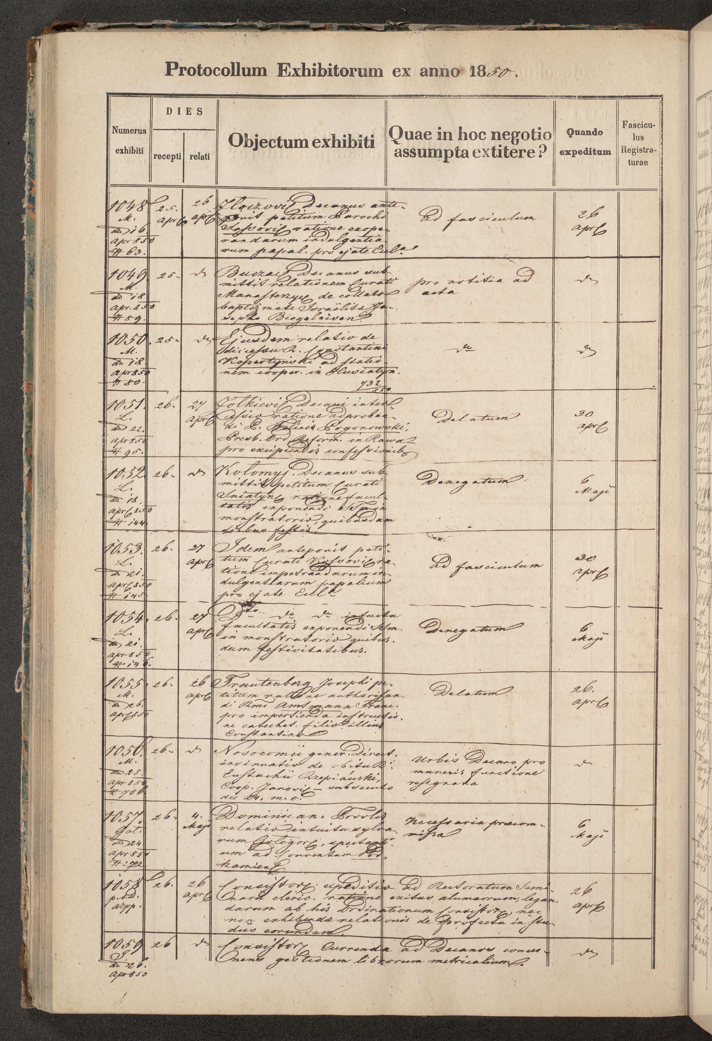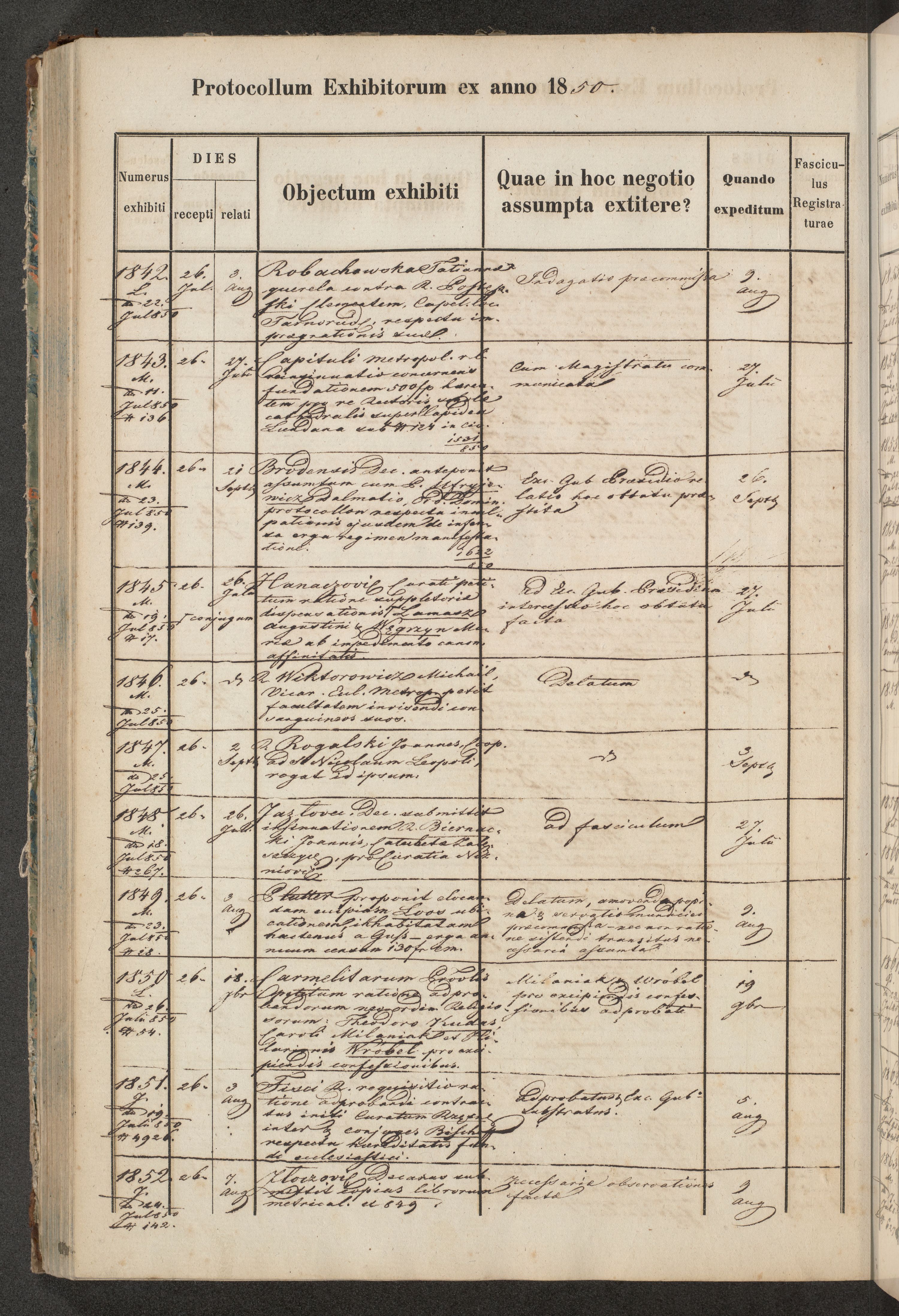 Protocollon exhibitorum in Ecclesiasticis ex anno 1850