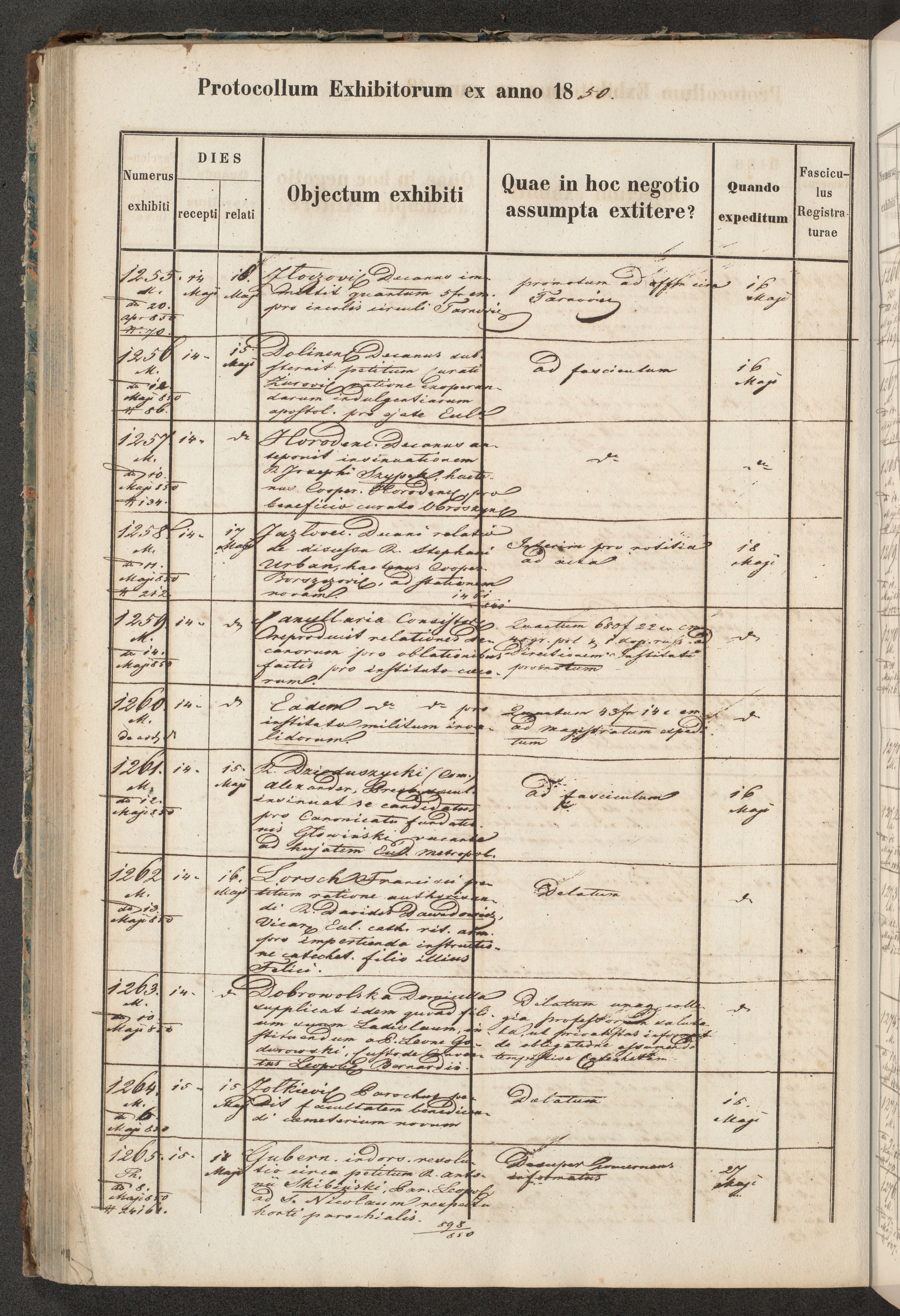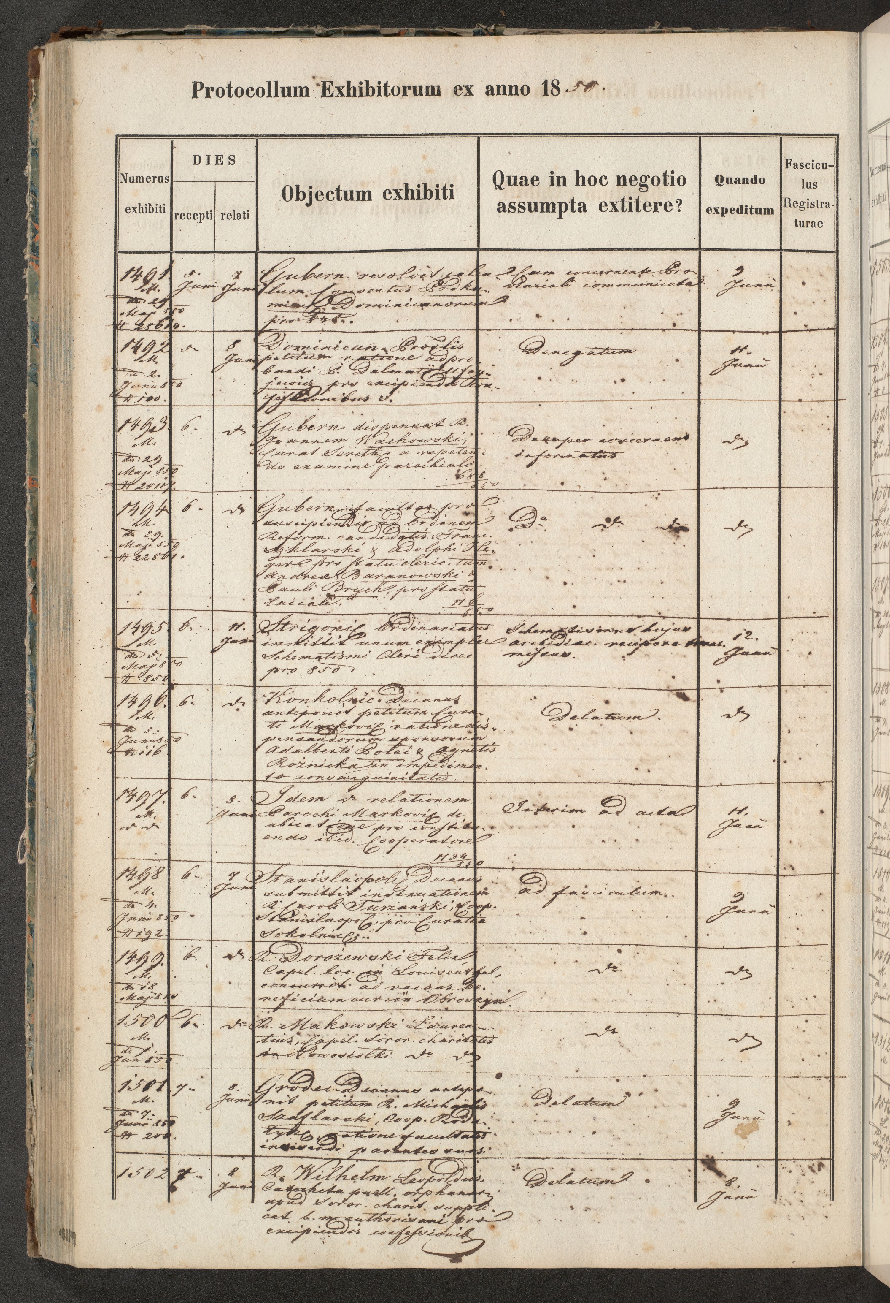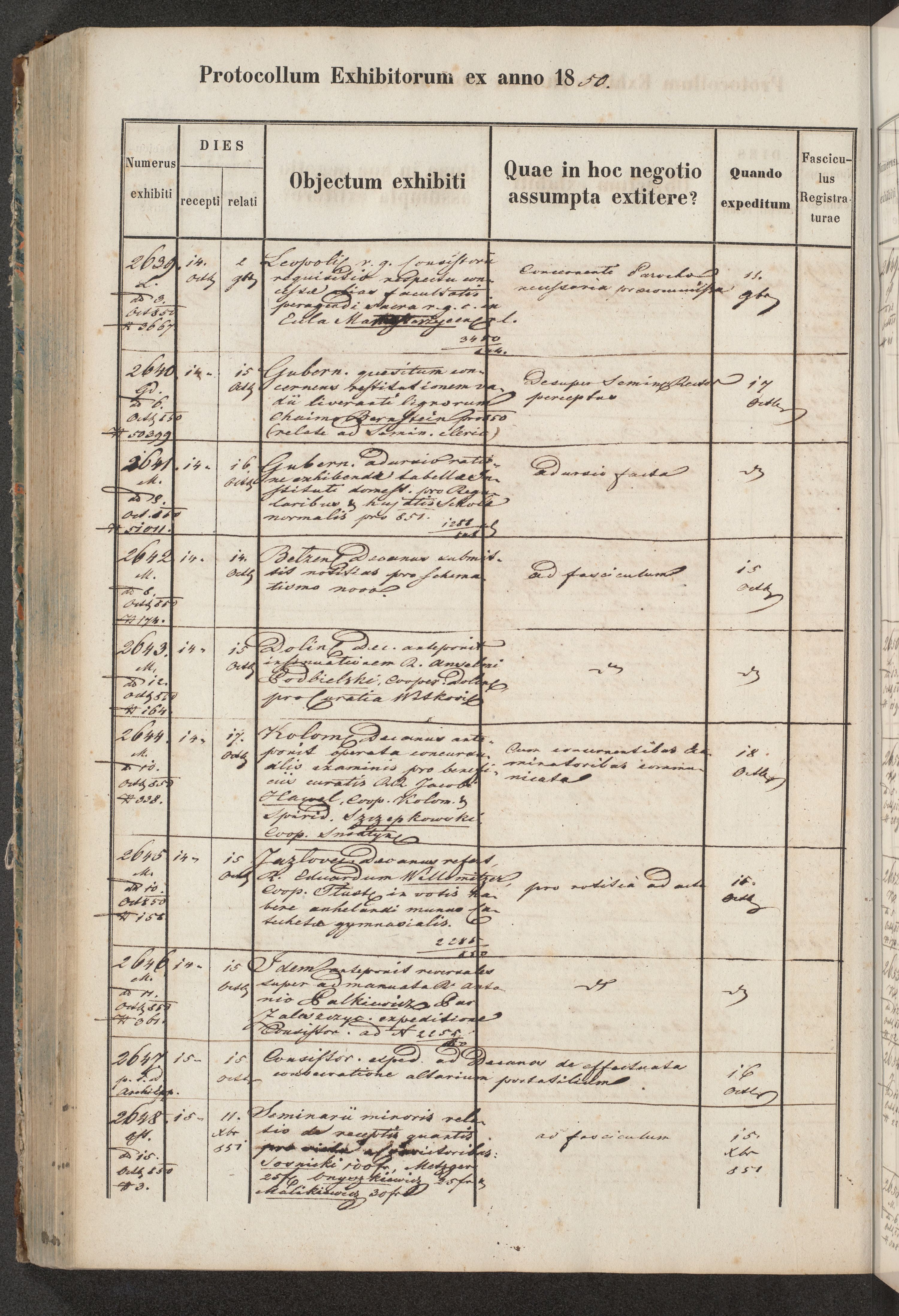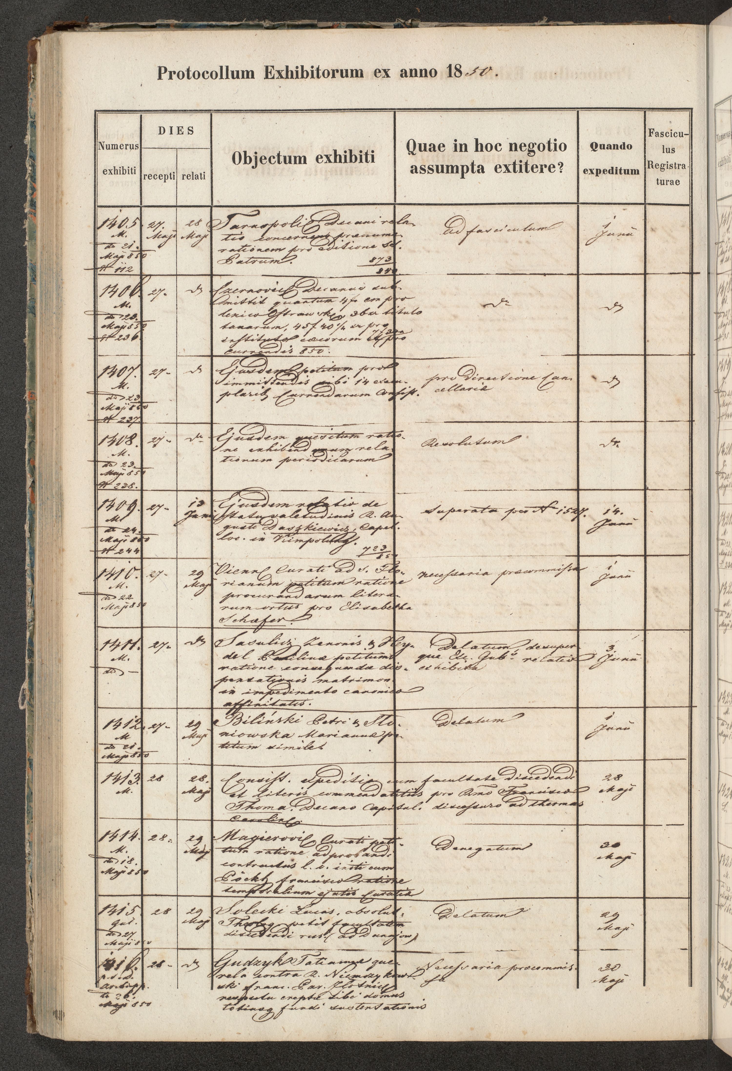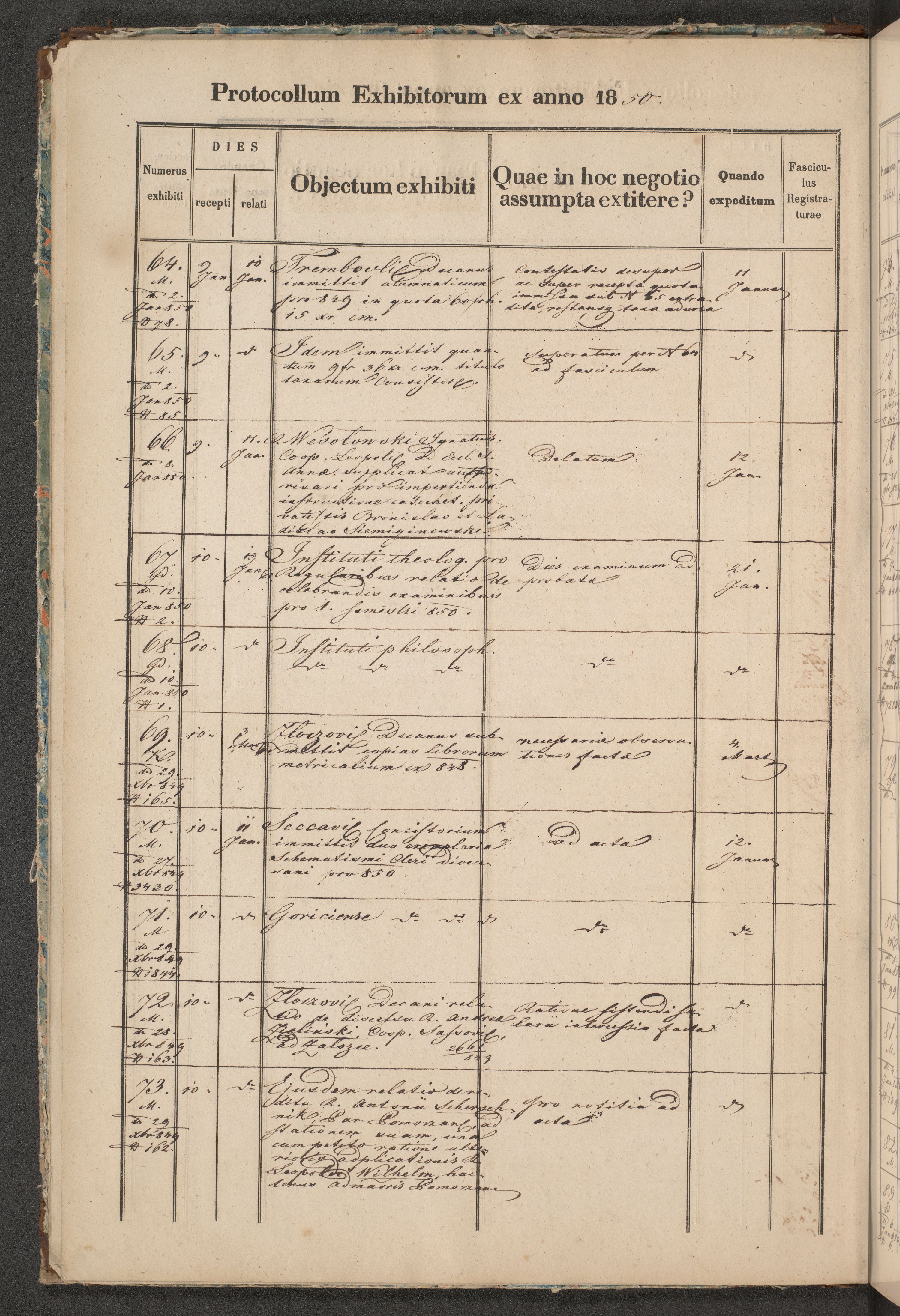 Protocollon exhibitorum in Ecclesiasticis ex anno 1850