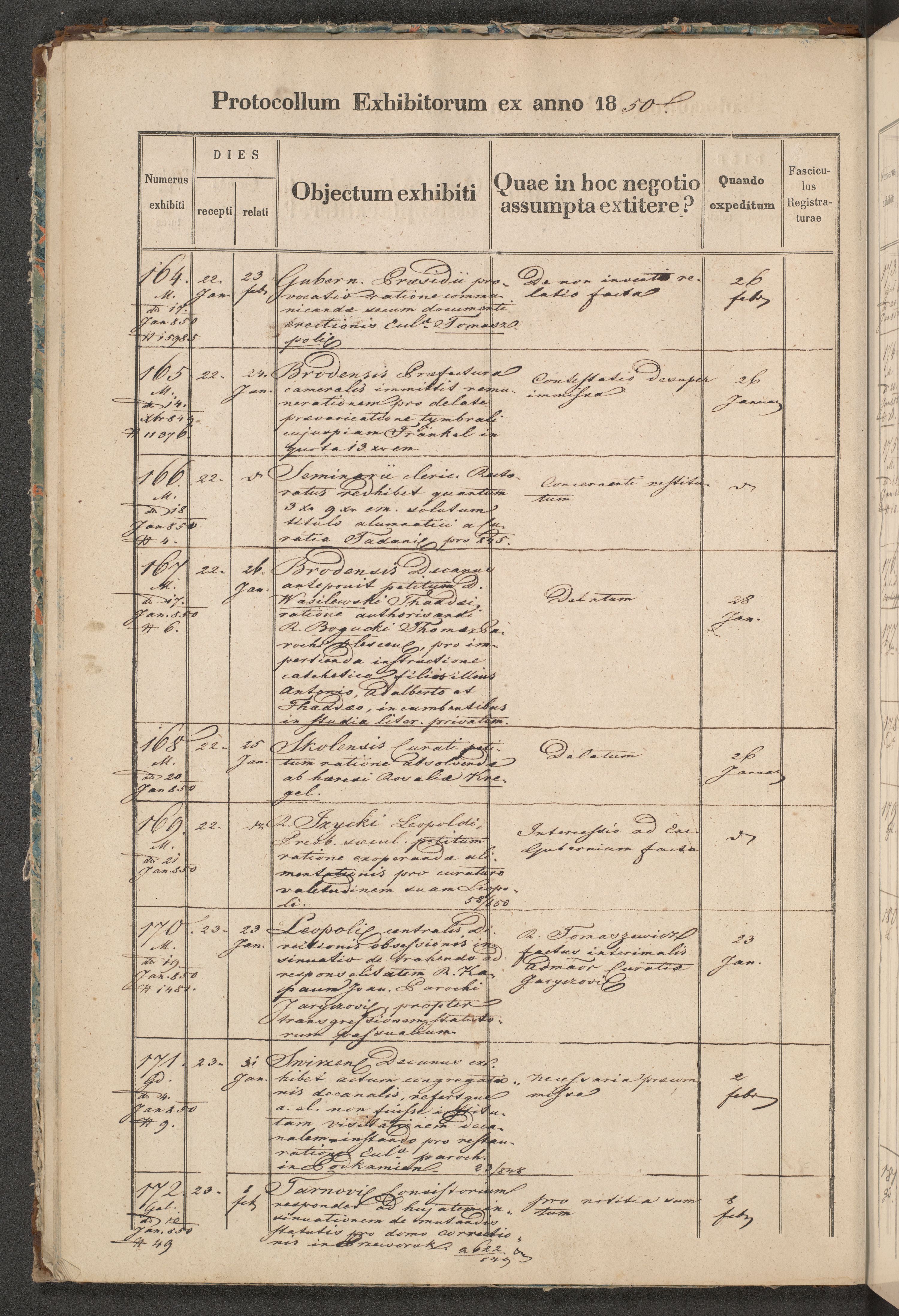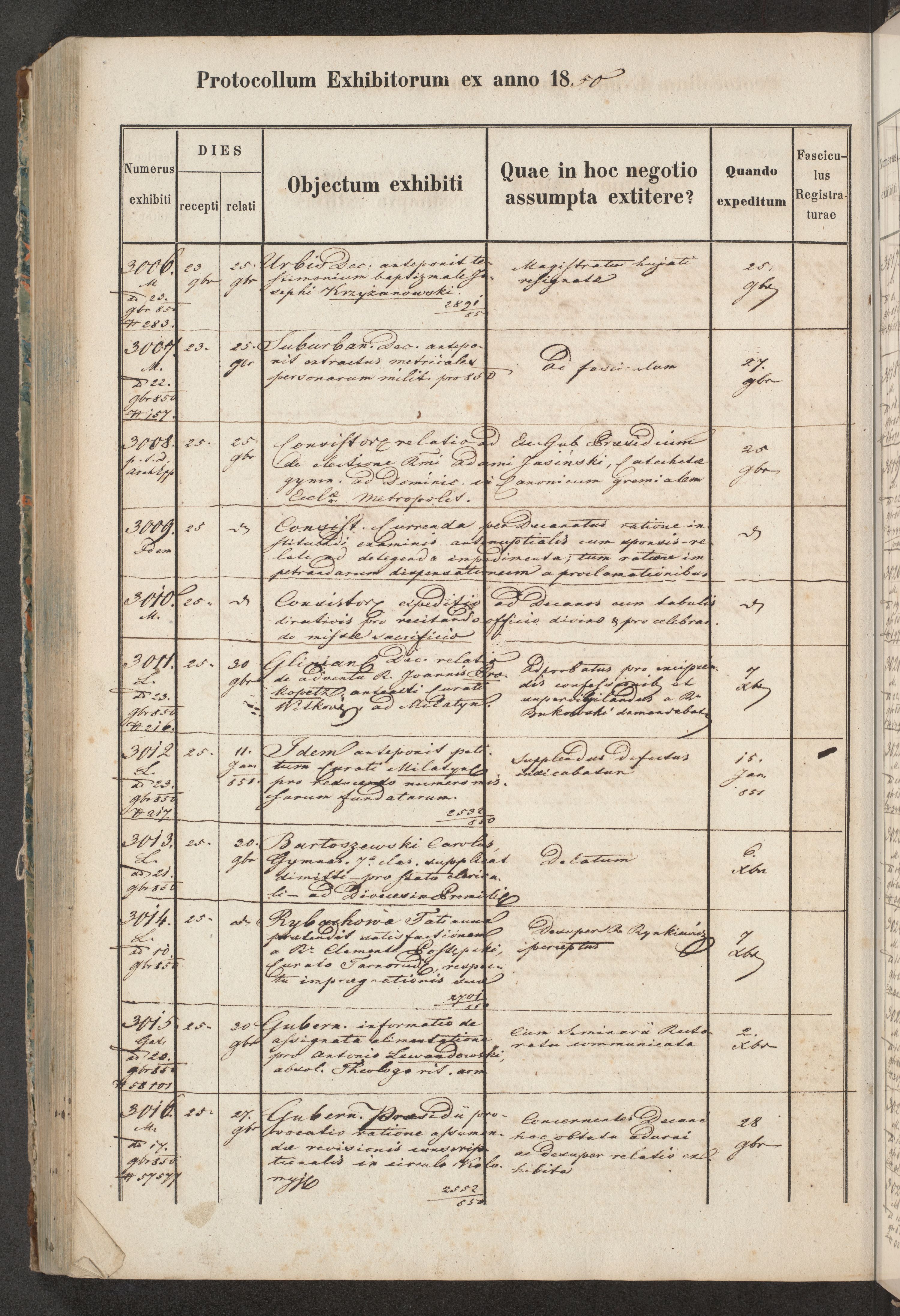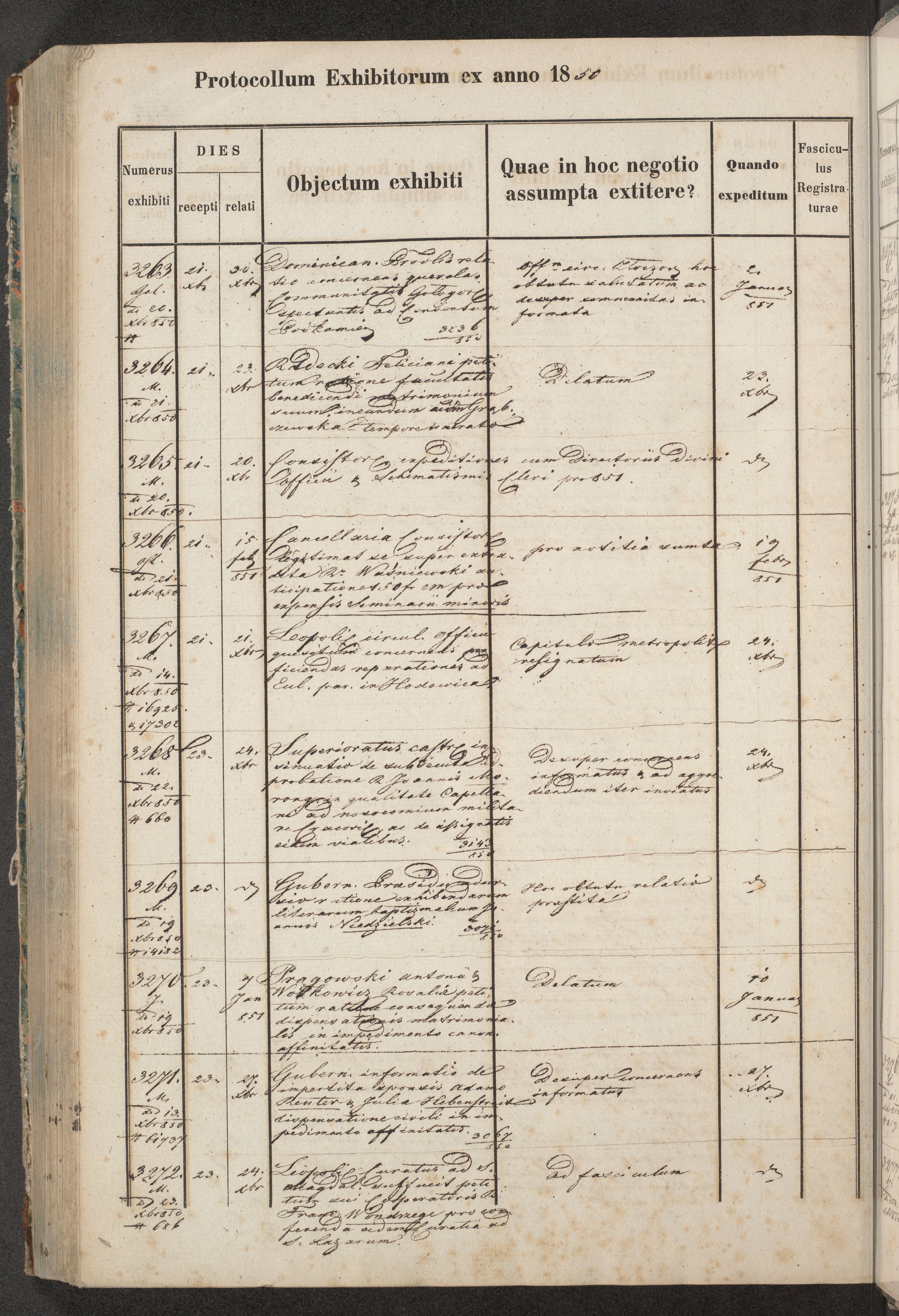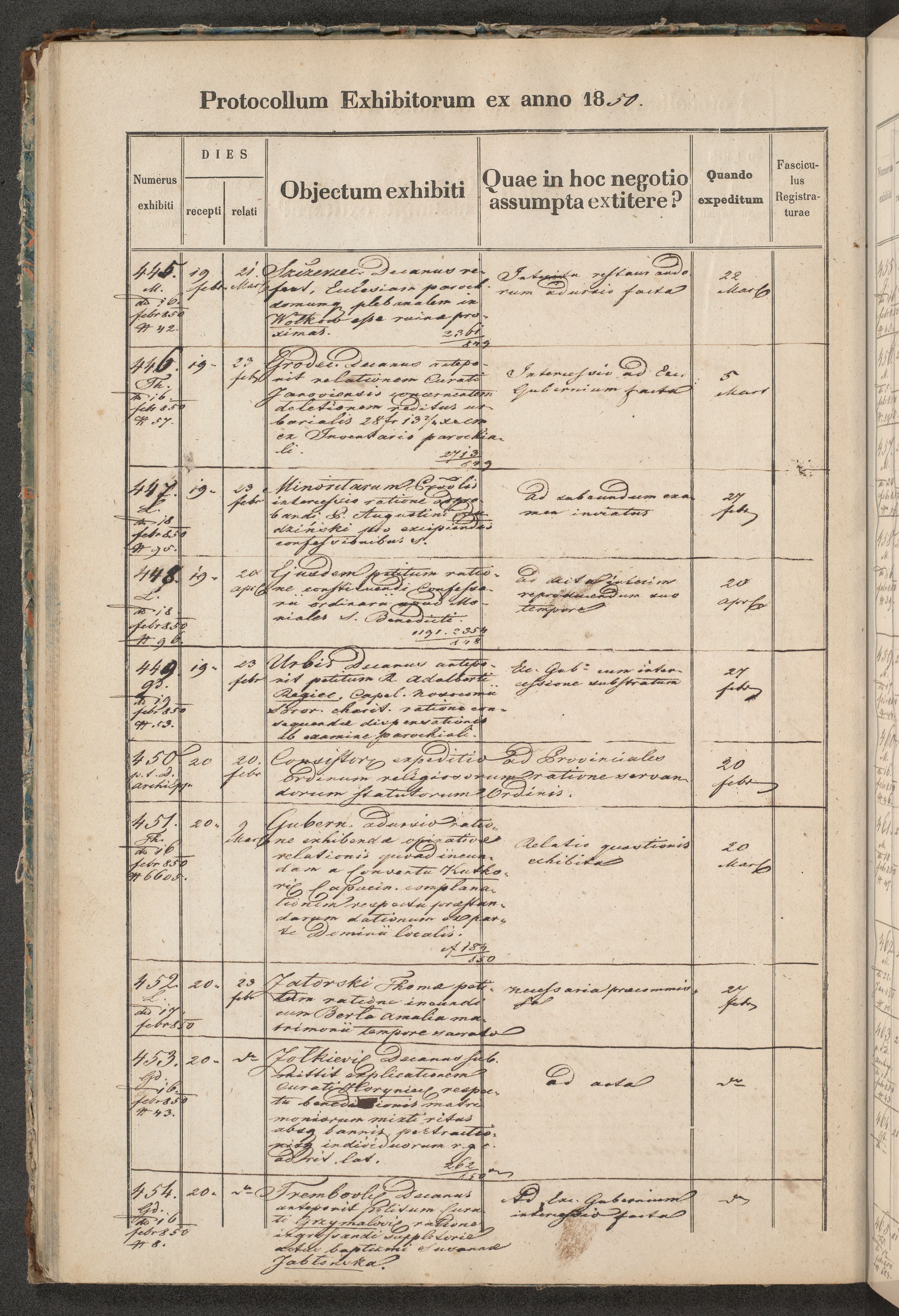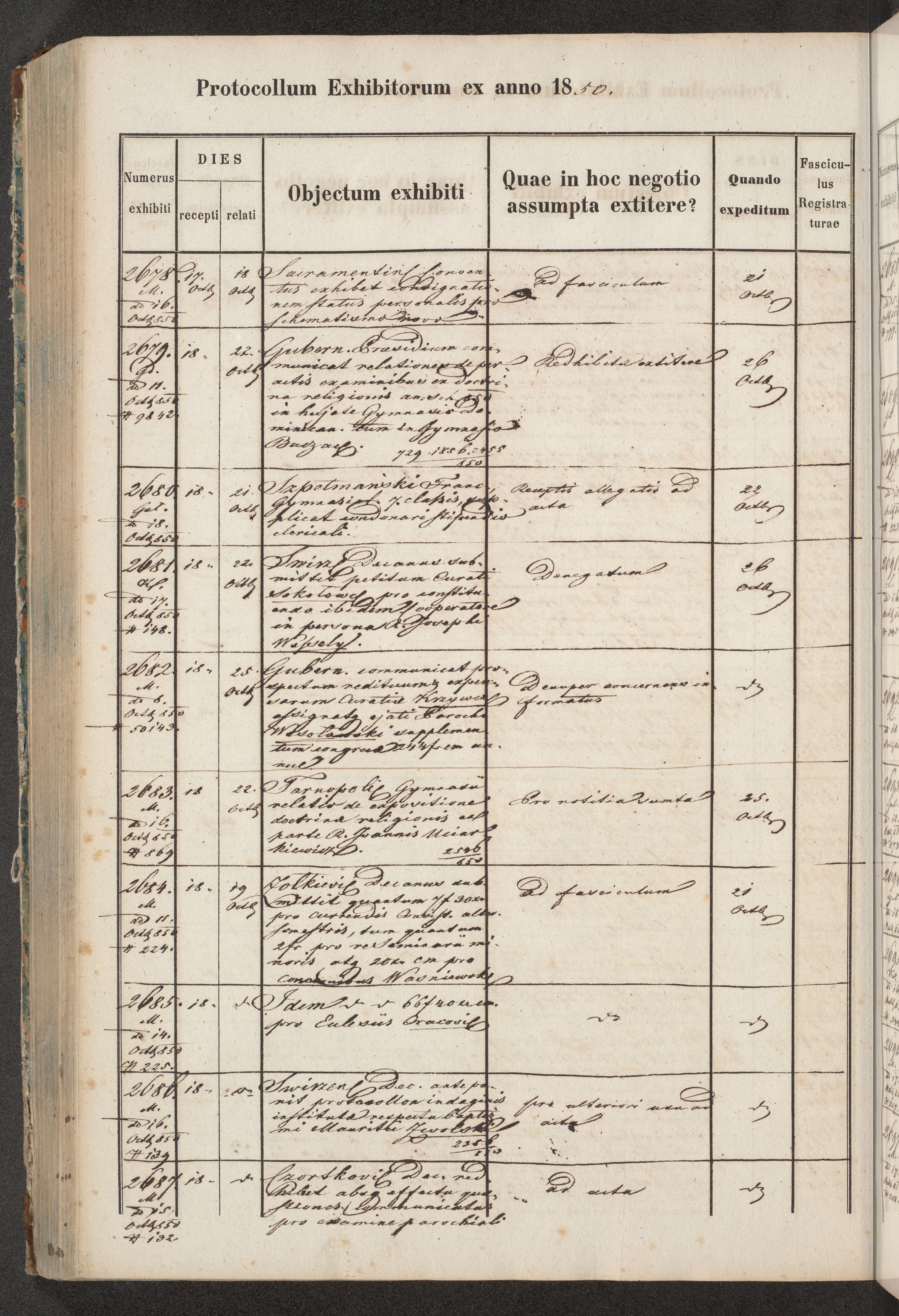 Protocollon exhibitorum in Ecclesiasticis ex anno 1850