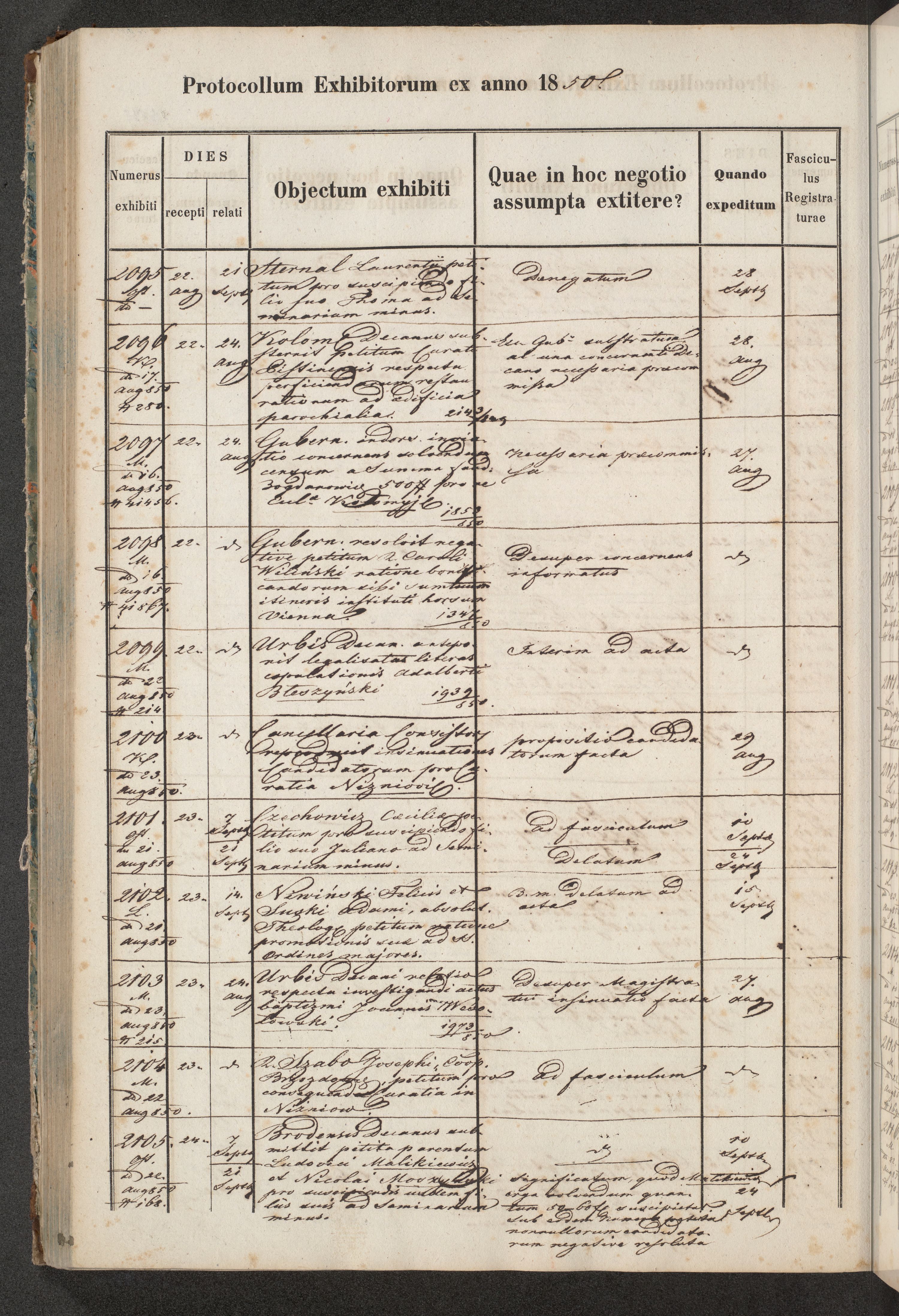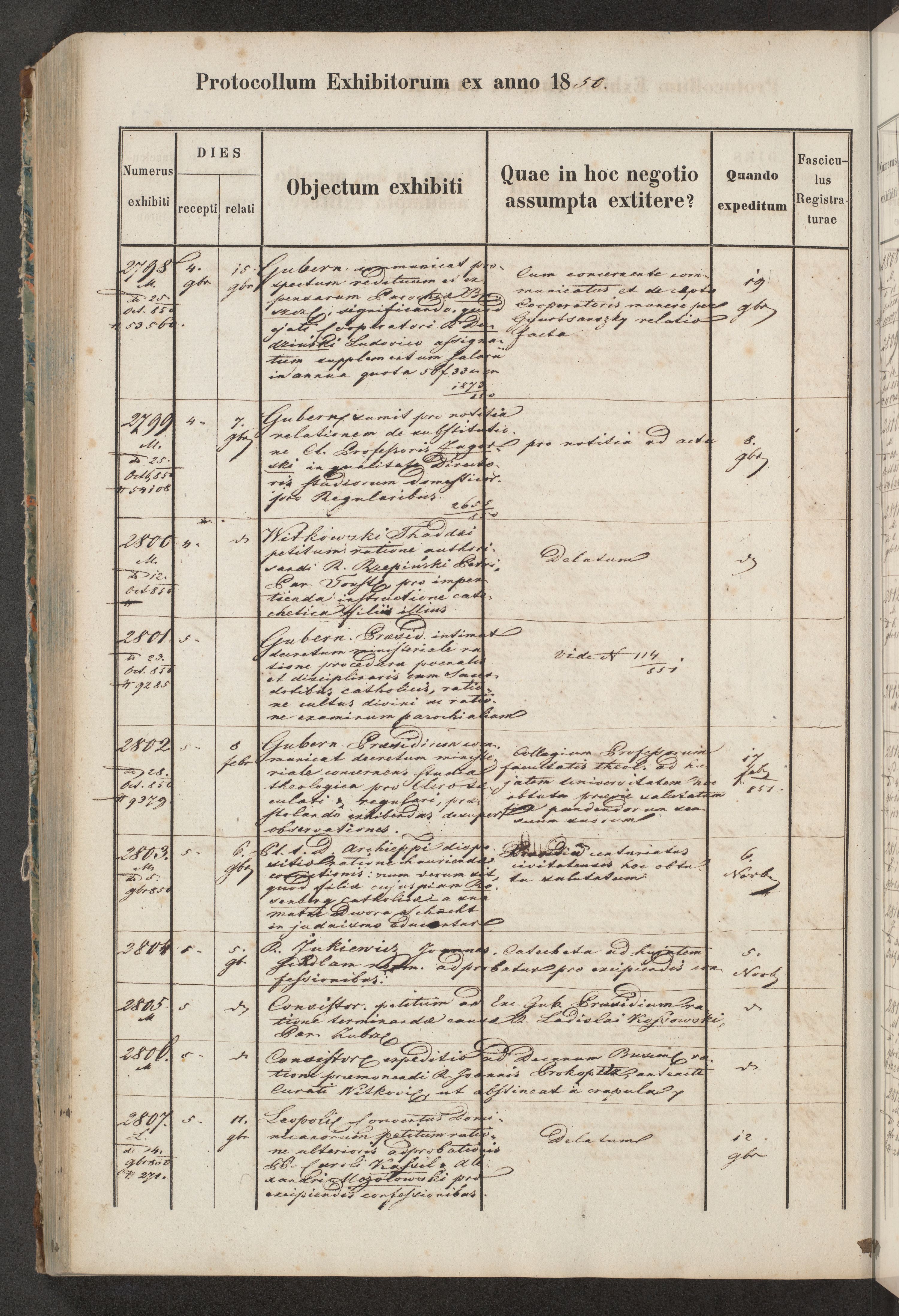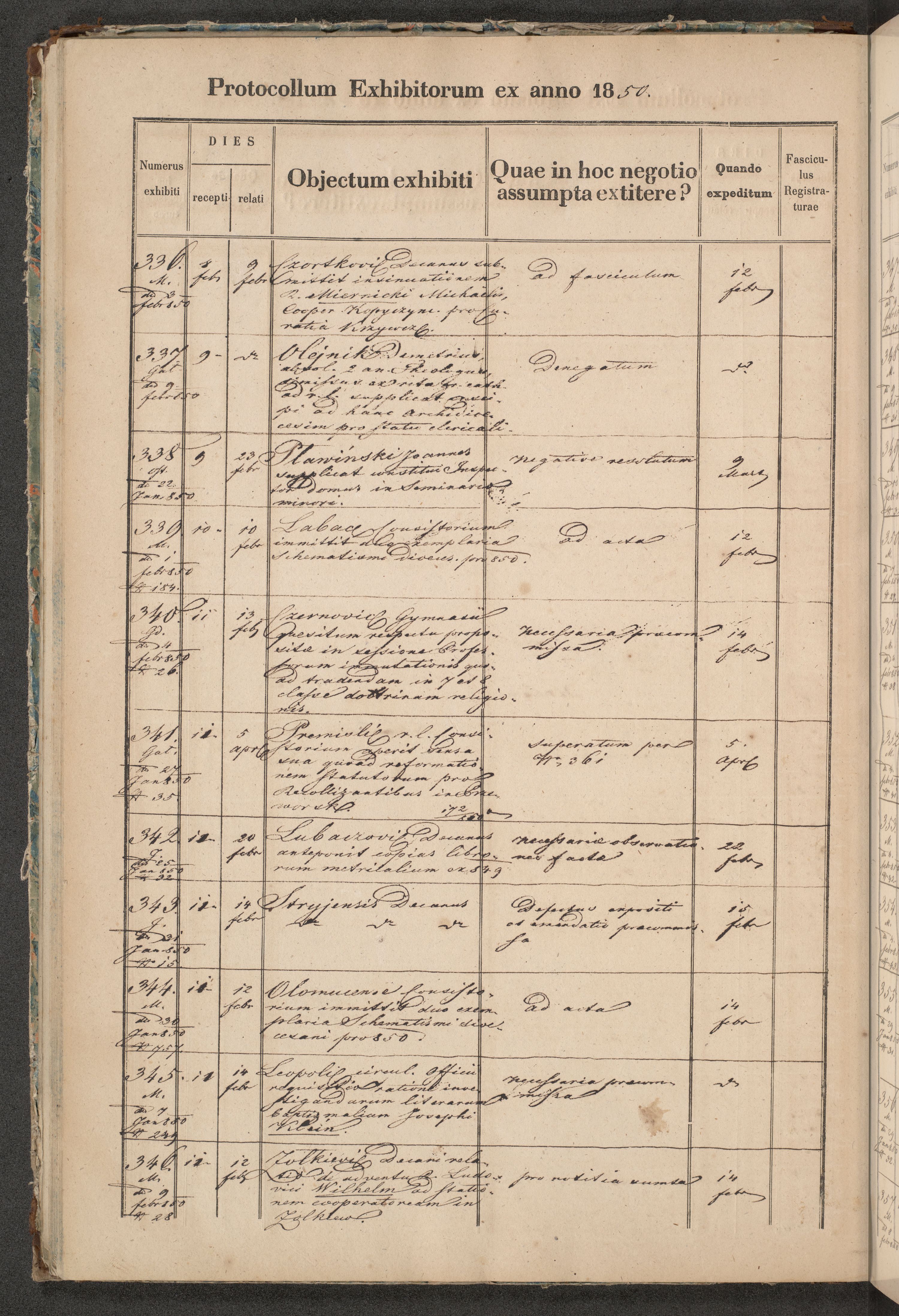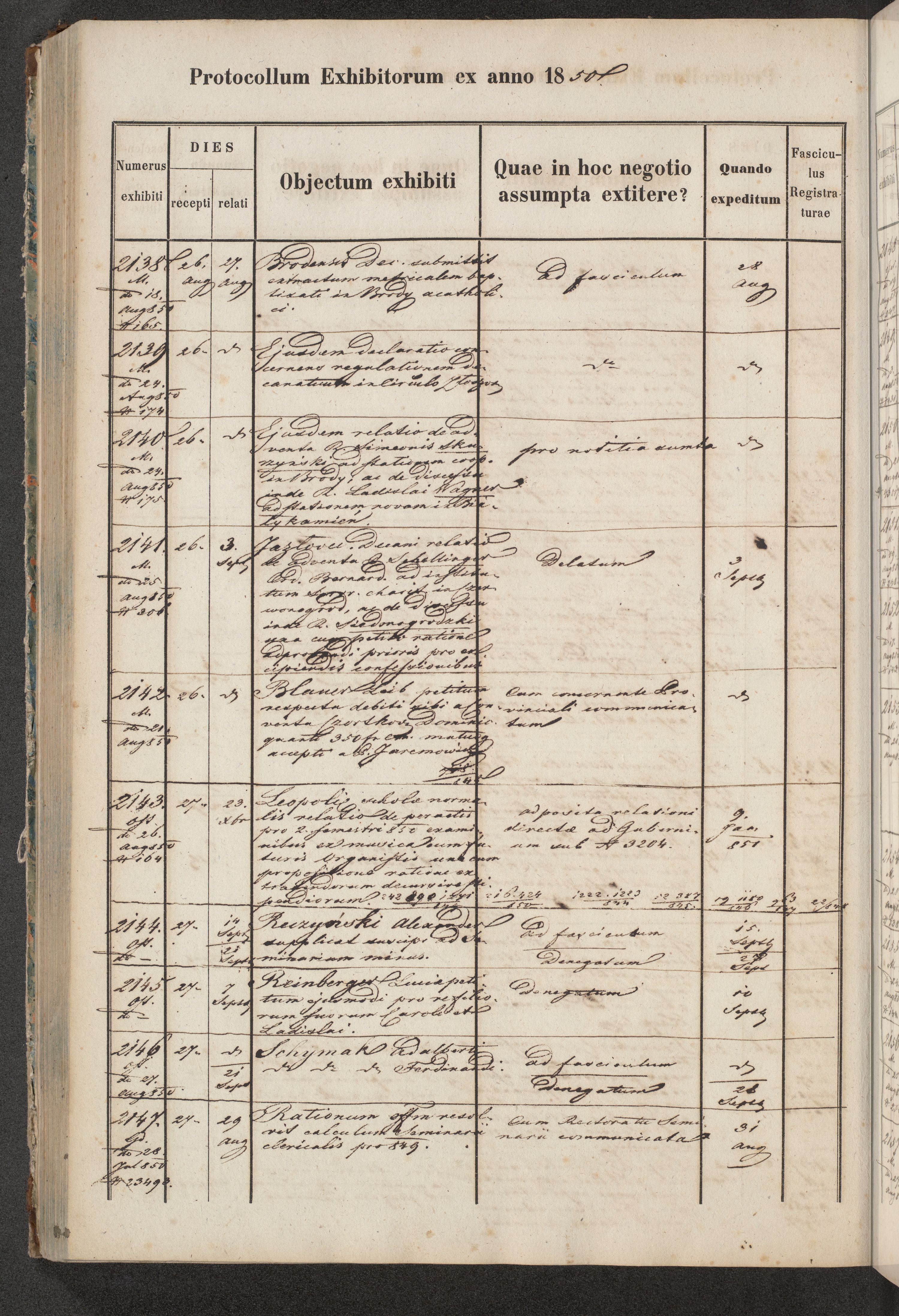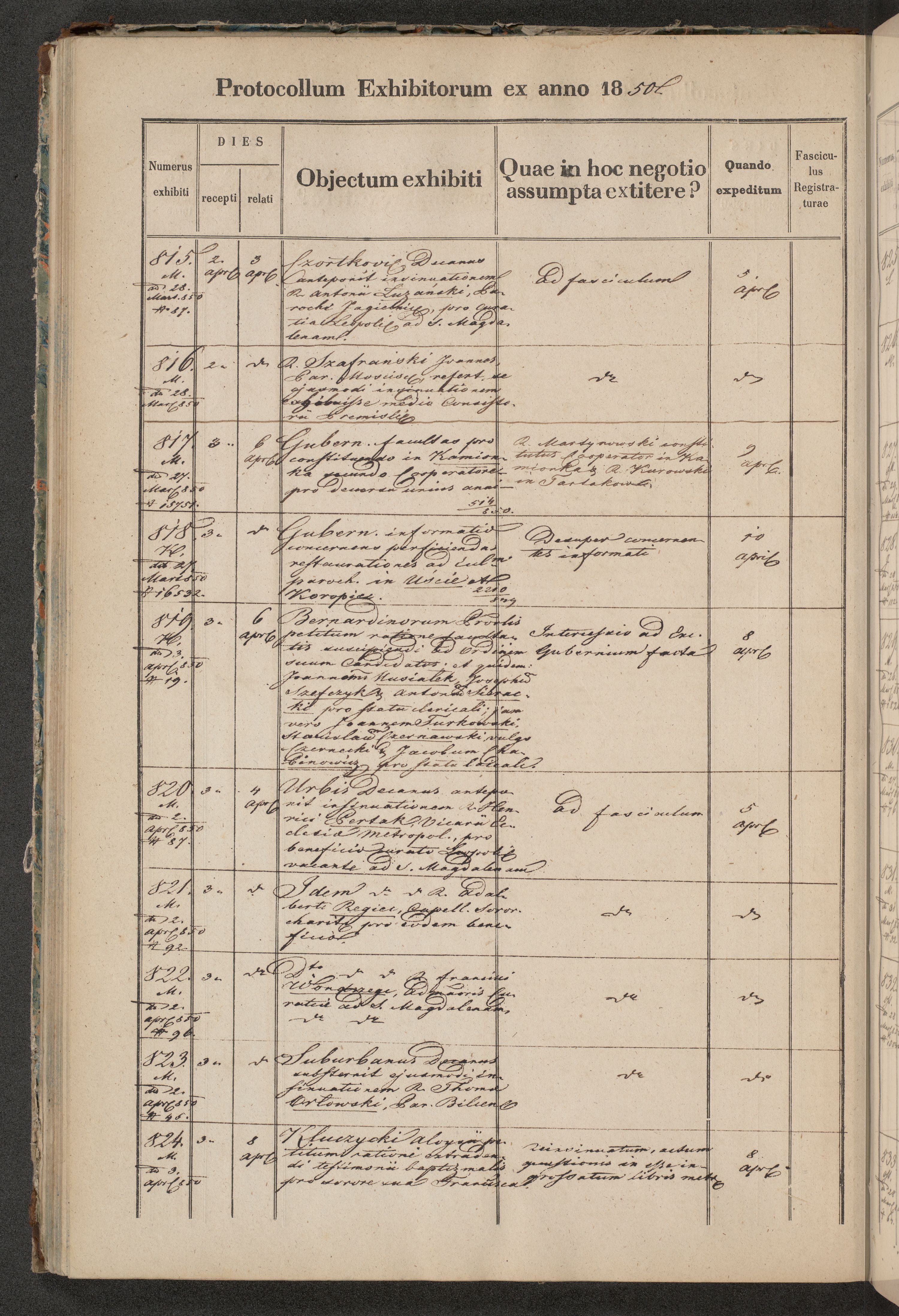 Protocollon exhibitorum in Ecclesiasticis ex anno 1850