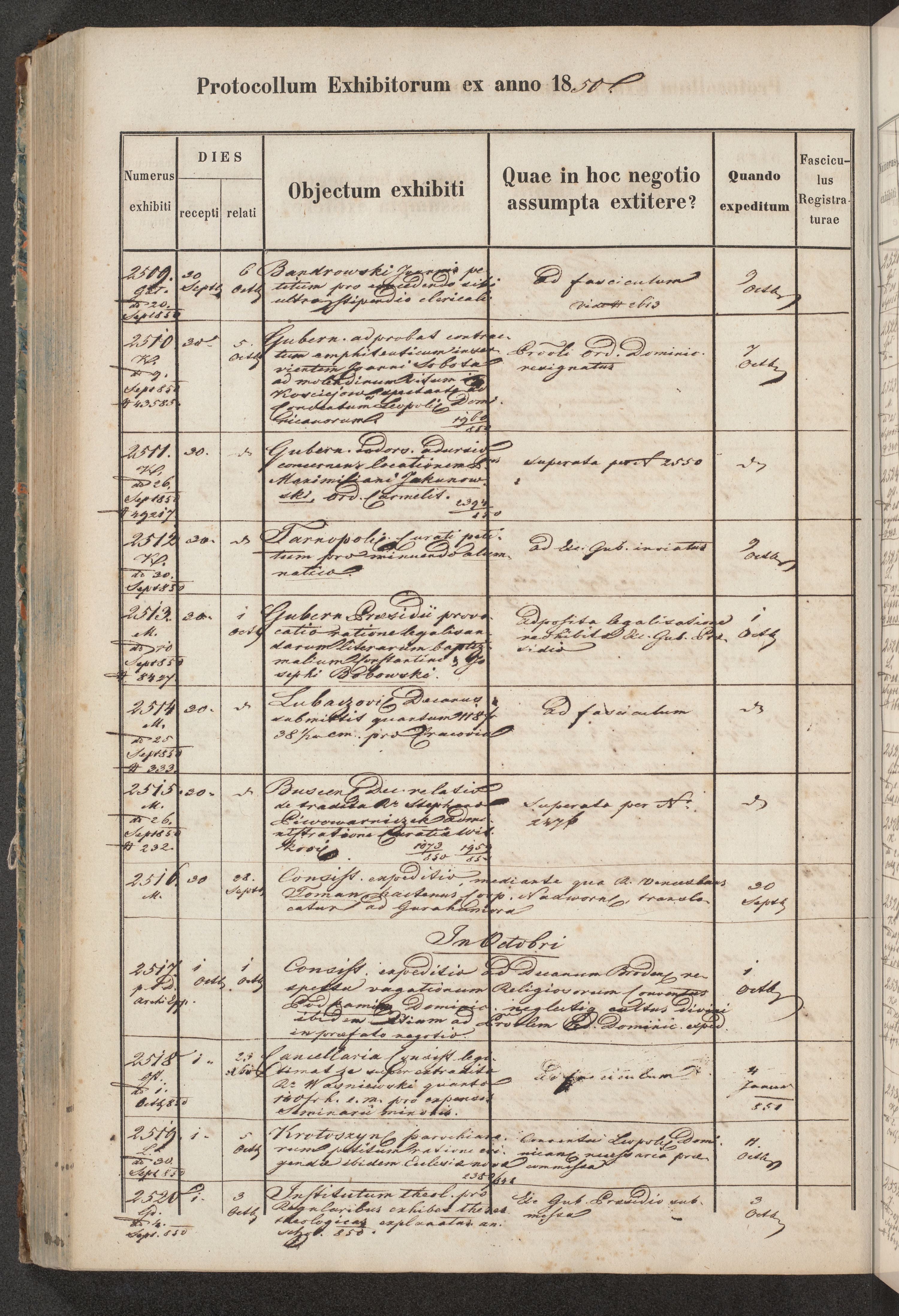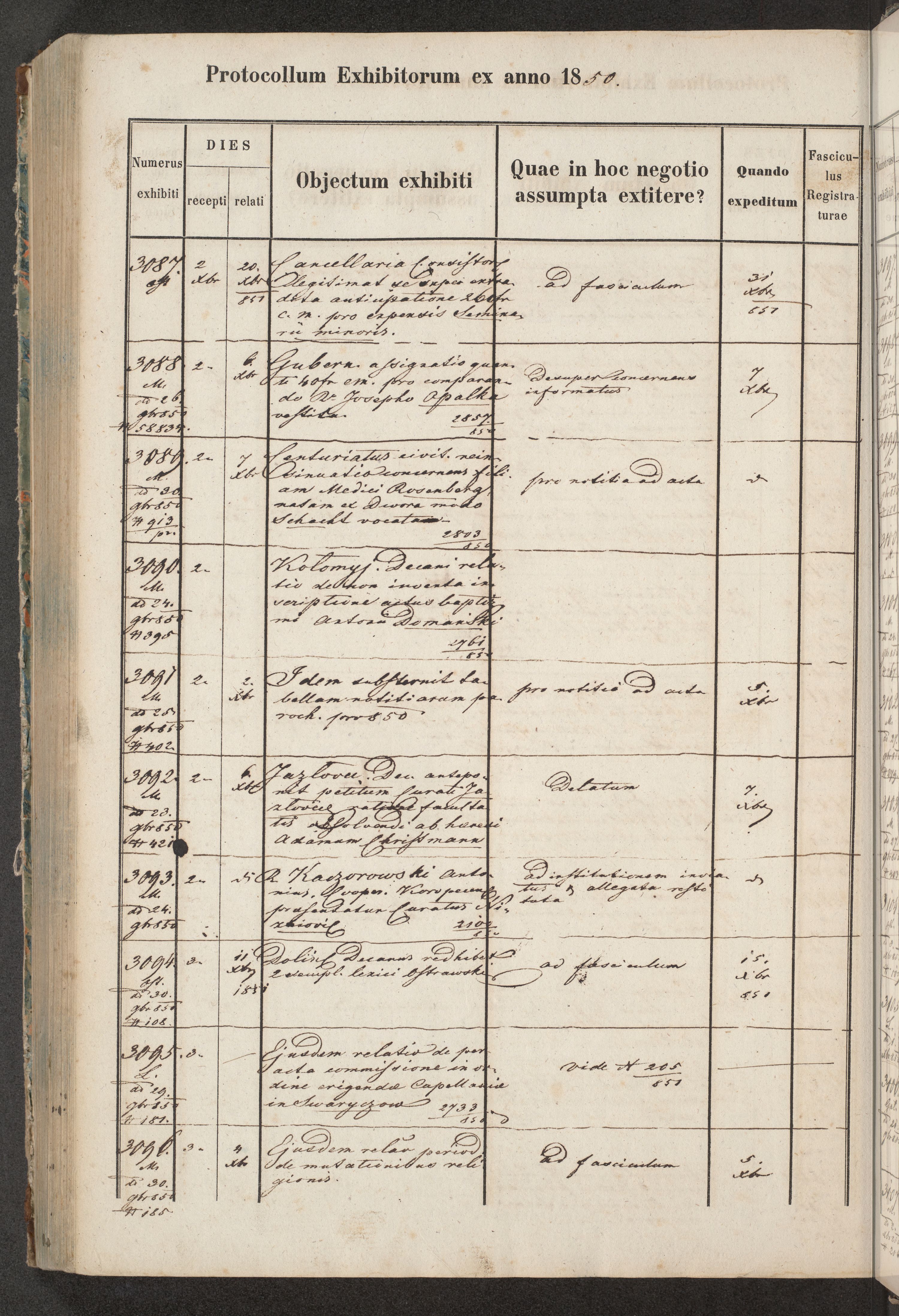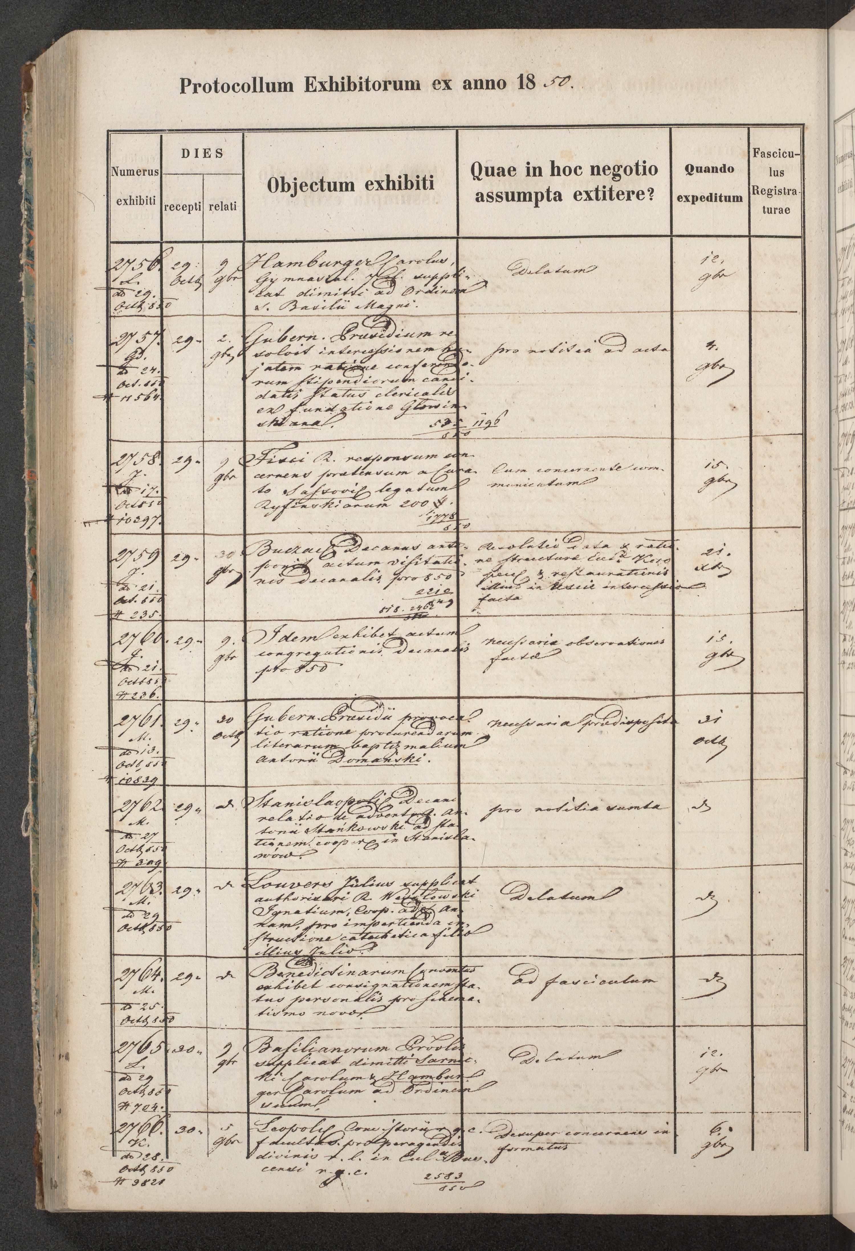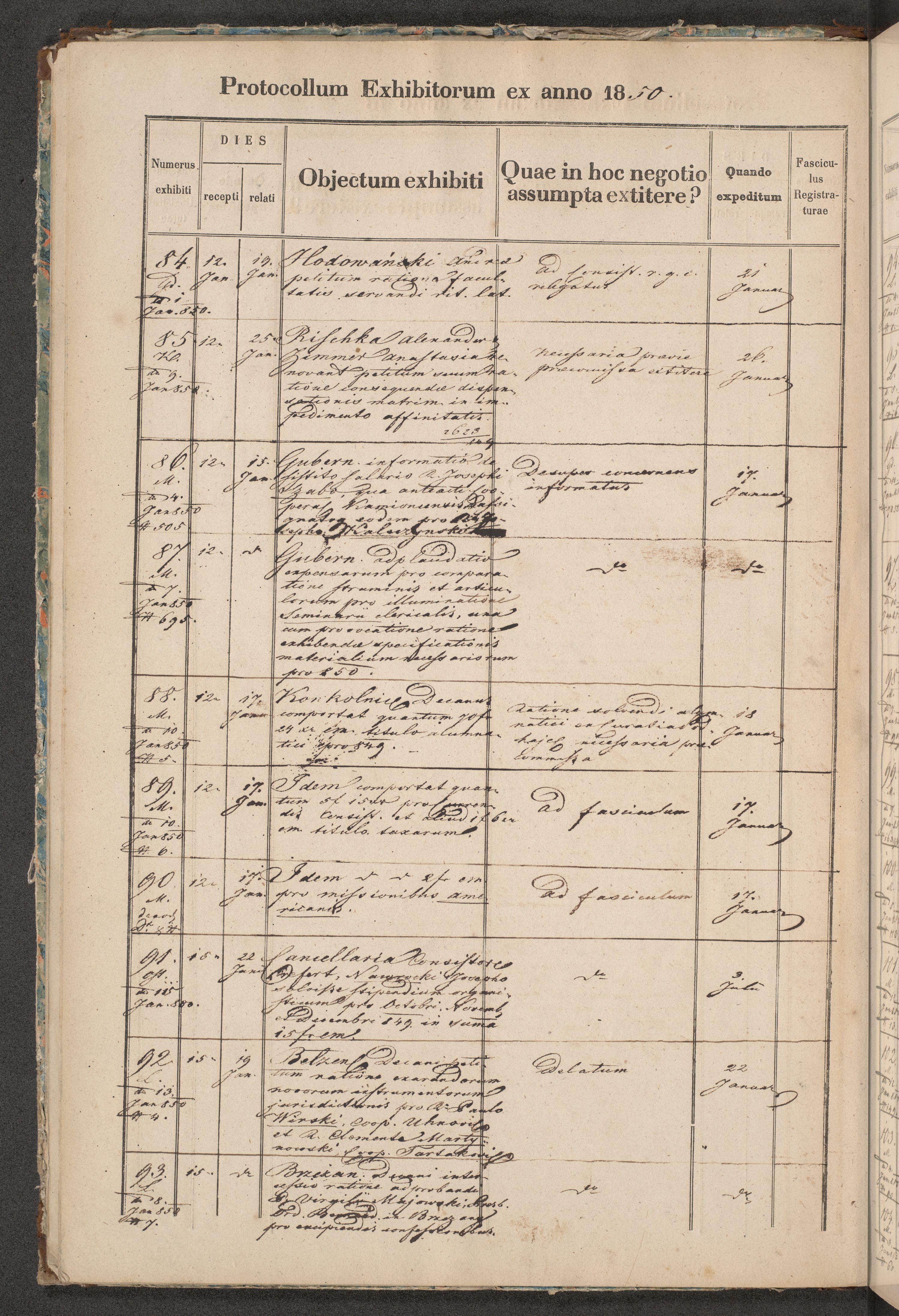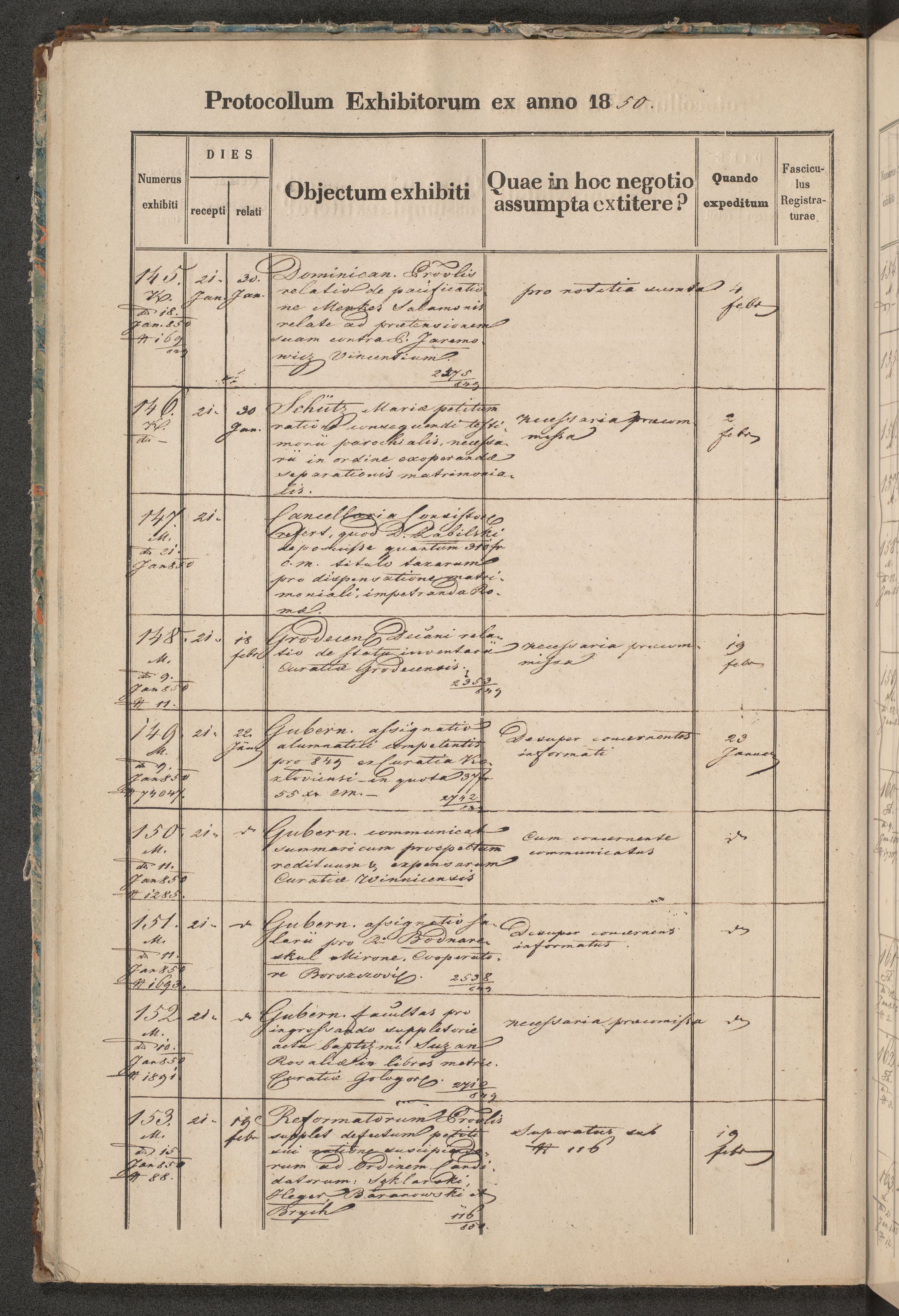 Protocollon exhibitorum in Ecclesiasticis ex anno 1850