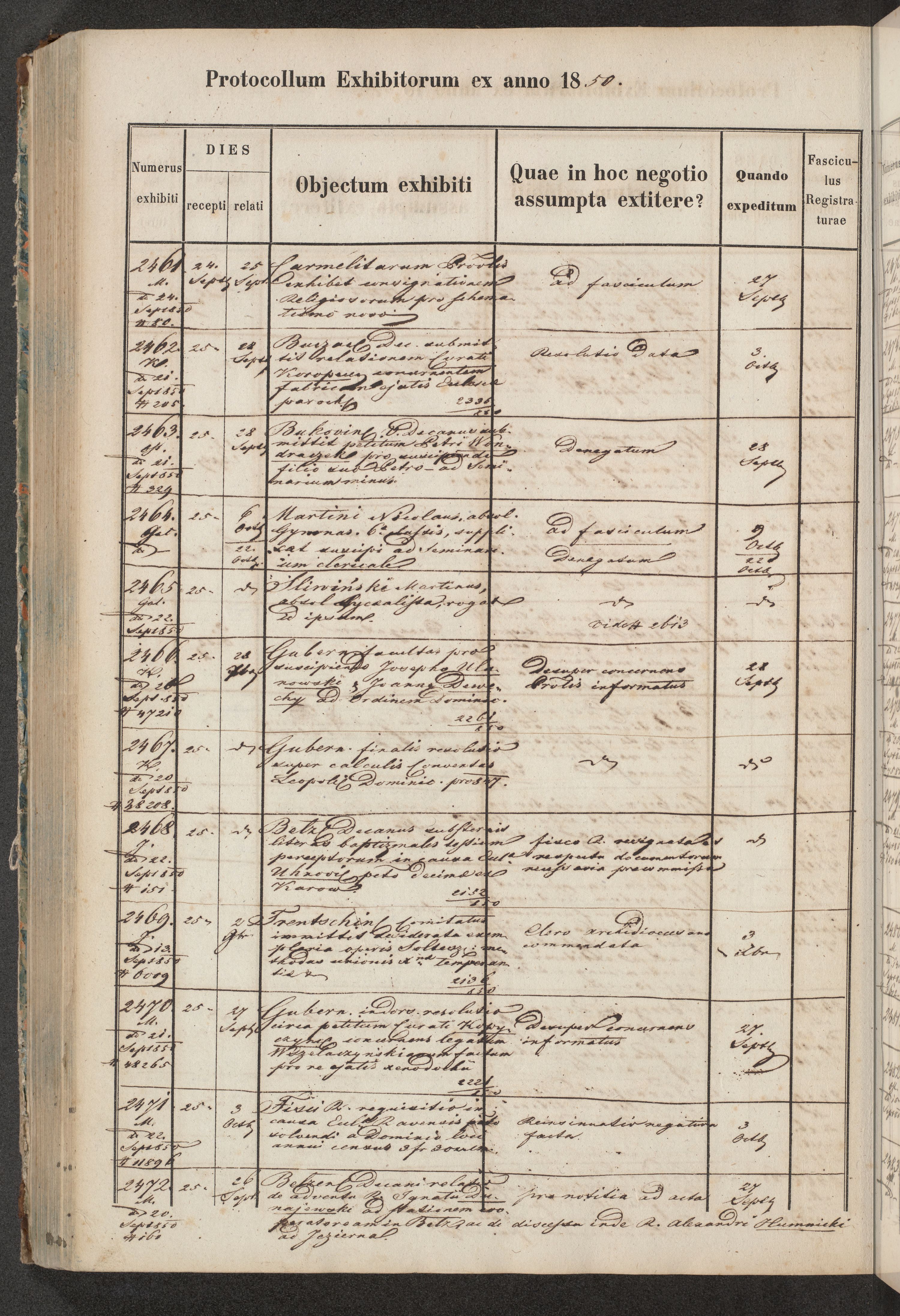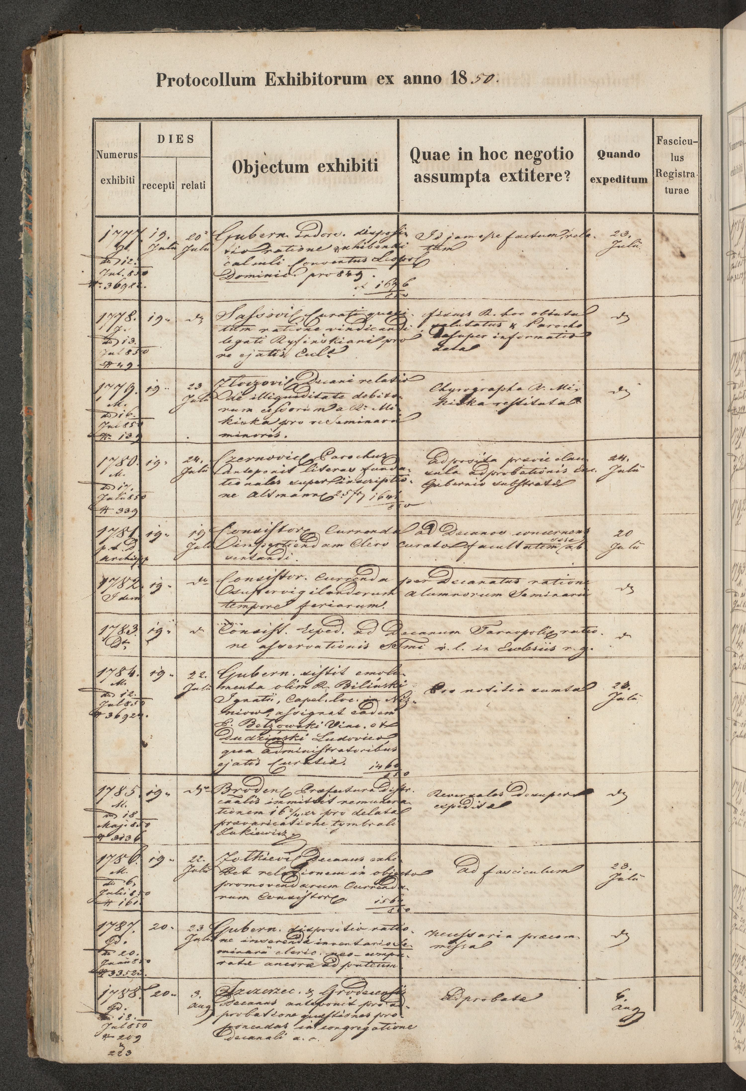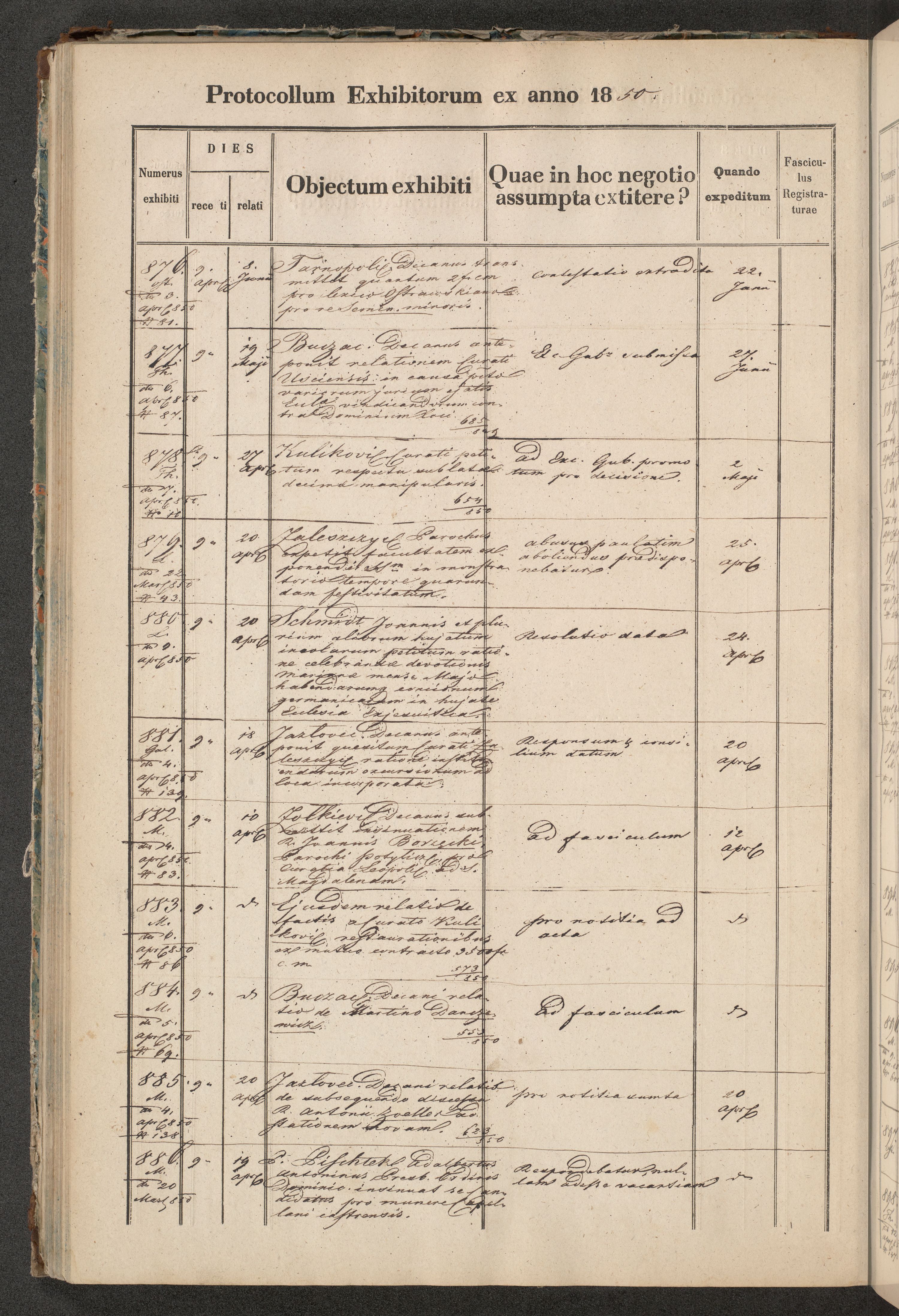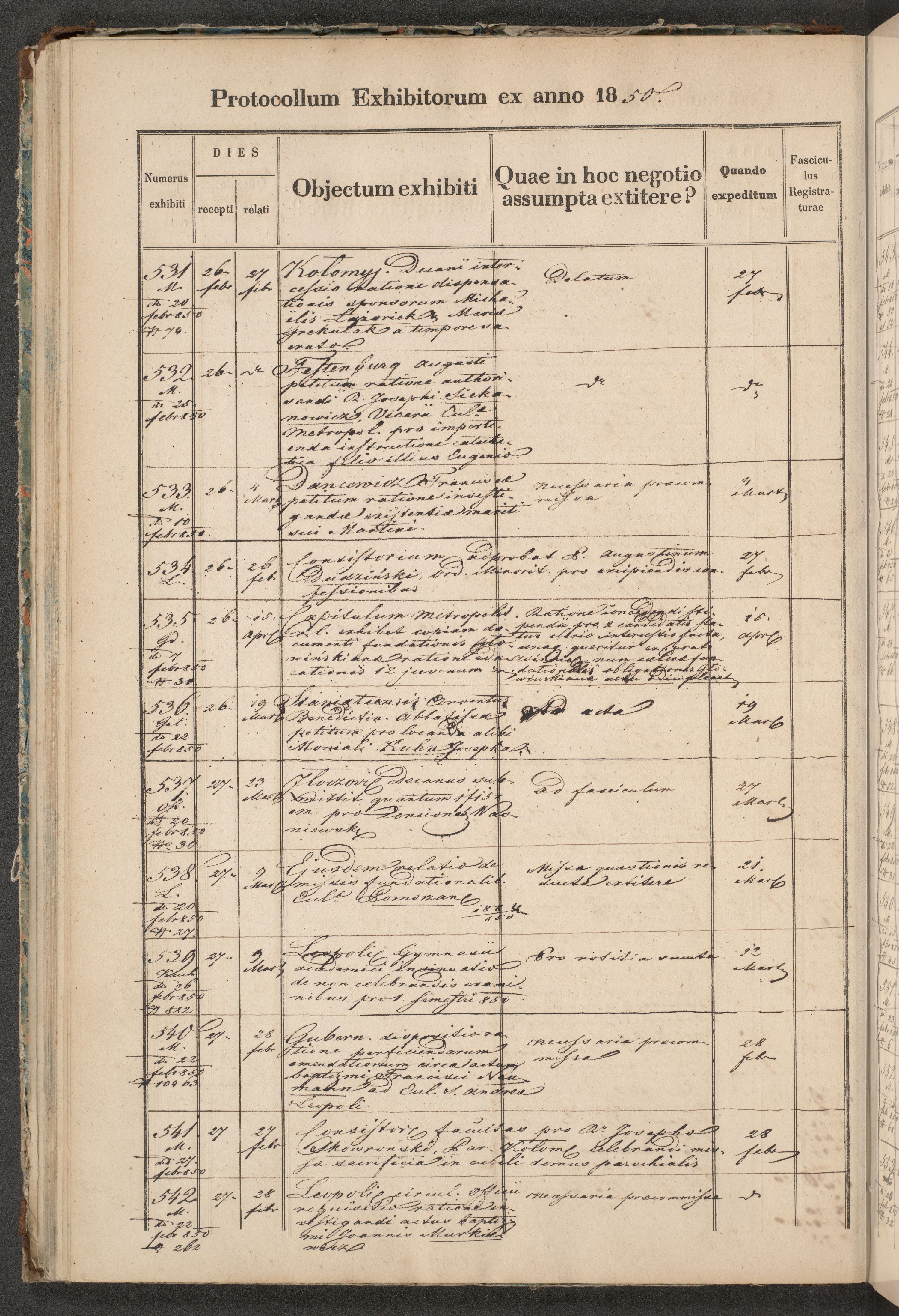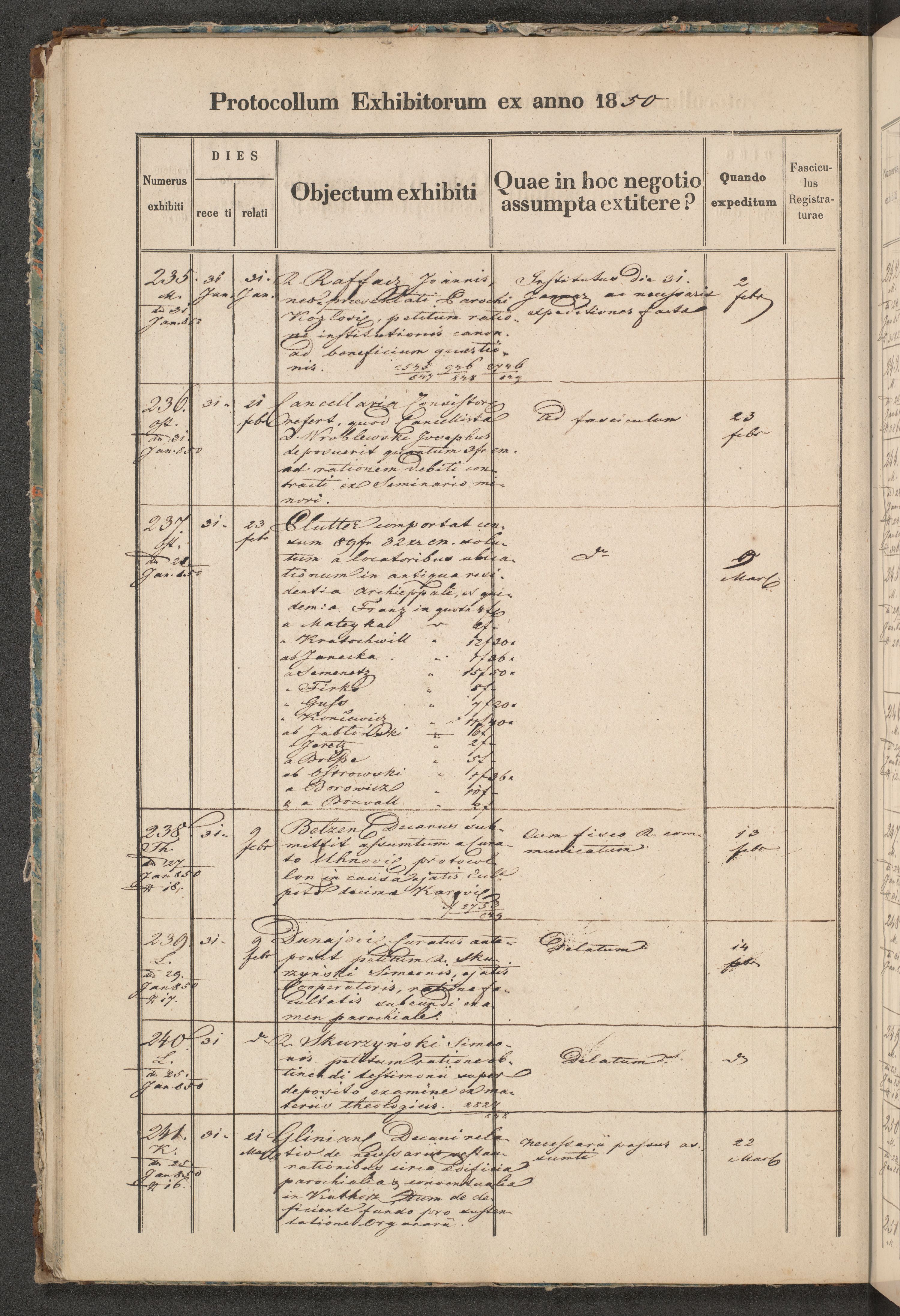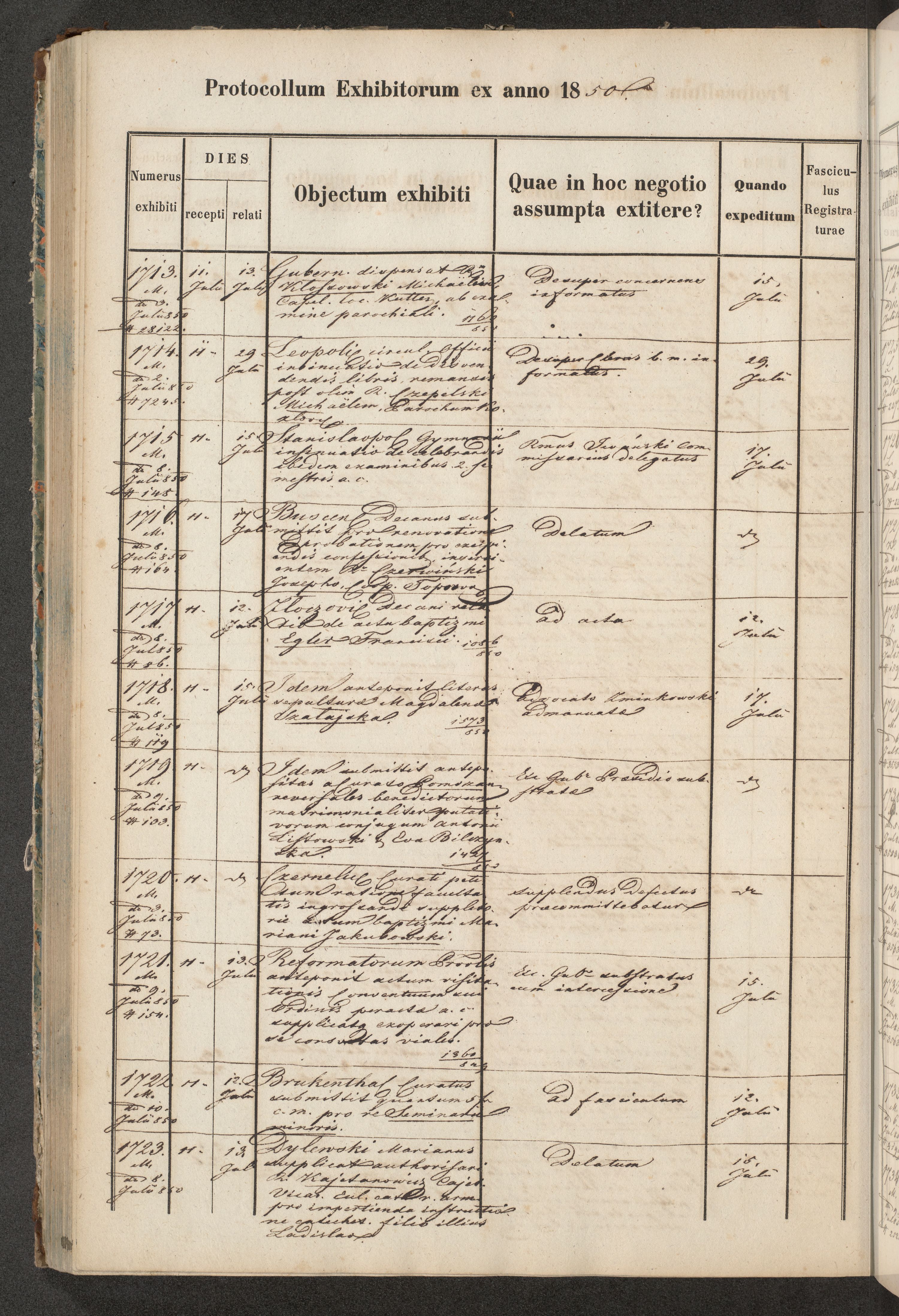 Protocollon exhibitorum in Ecclesiasticis ex anno 1850