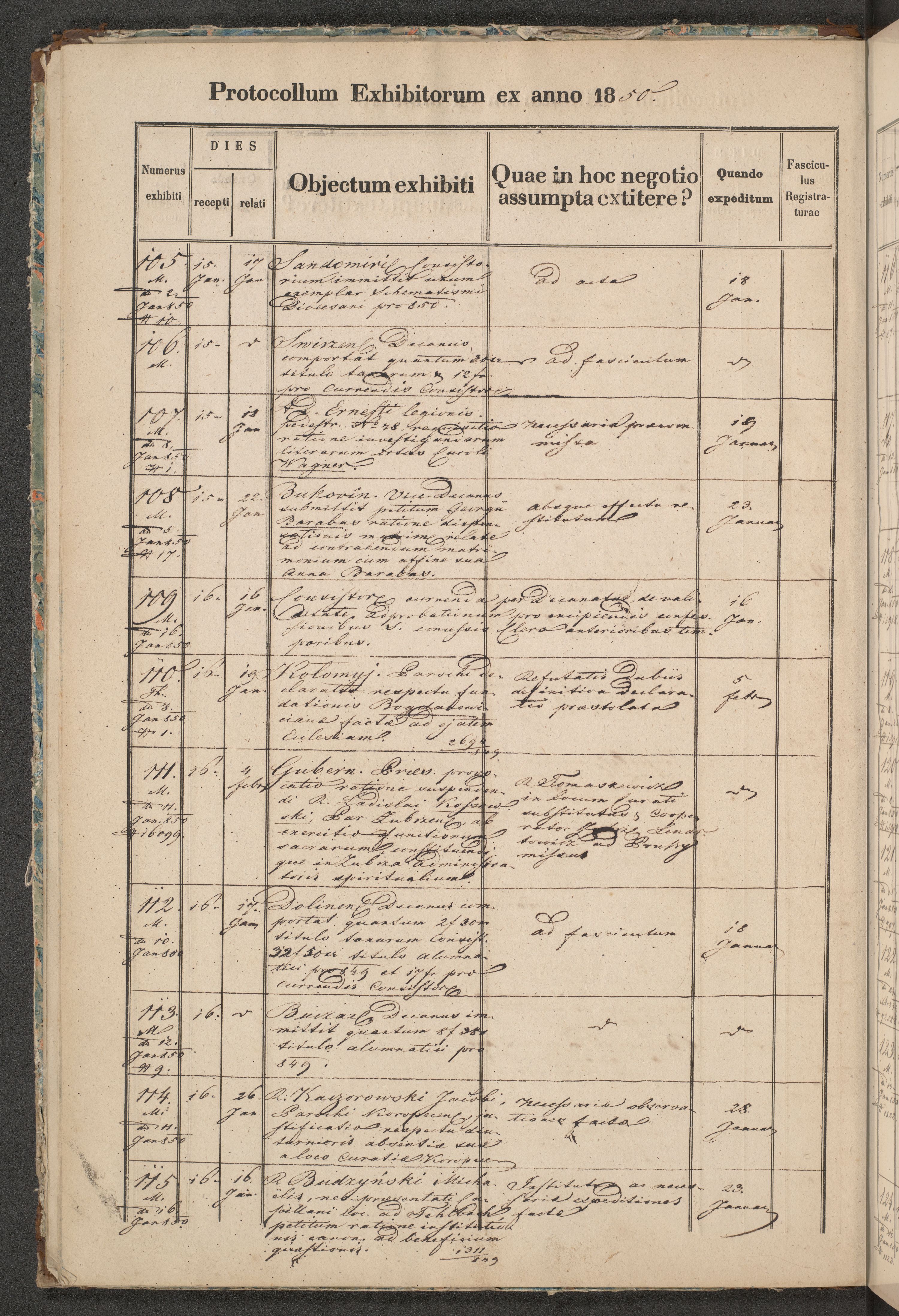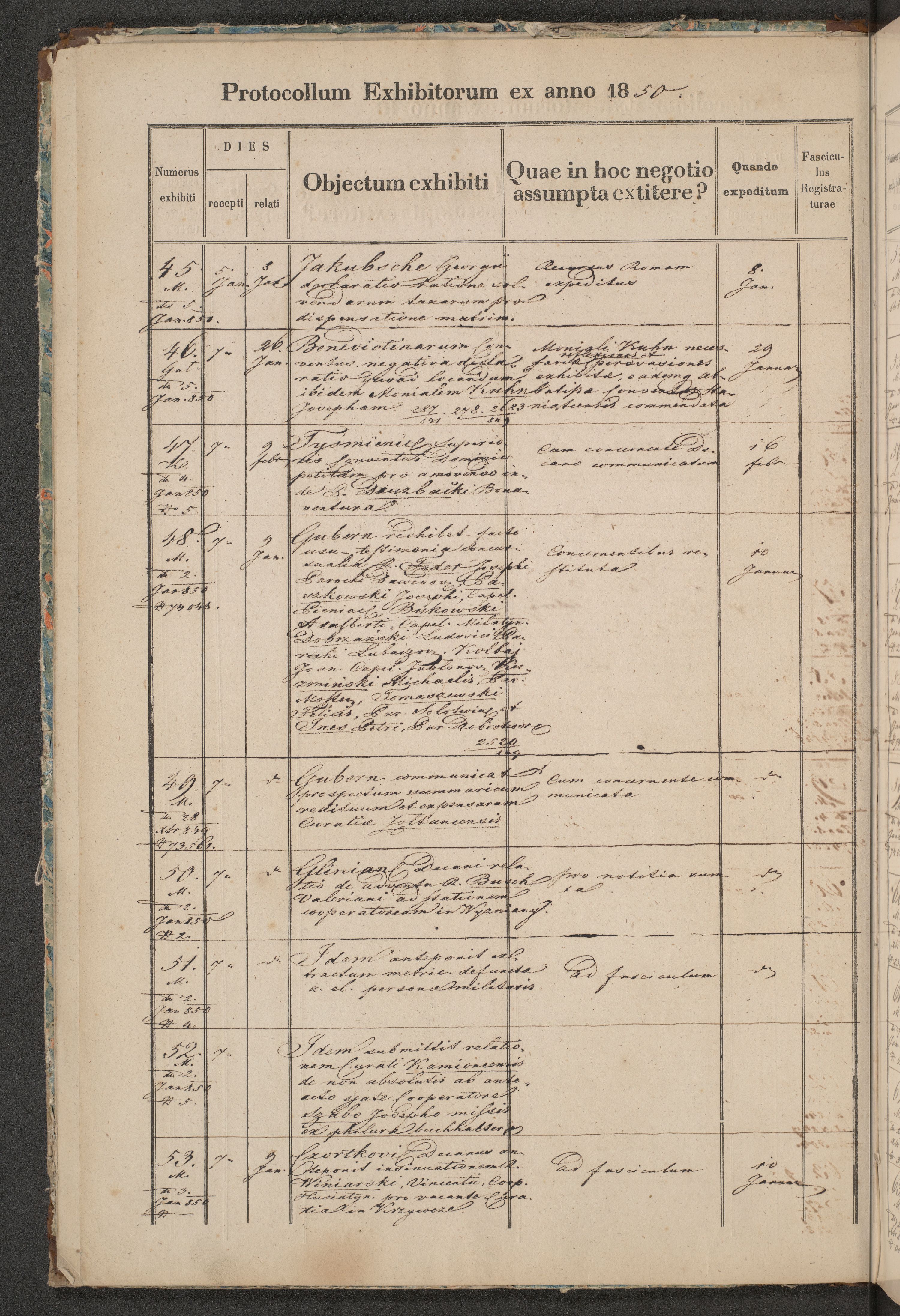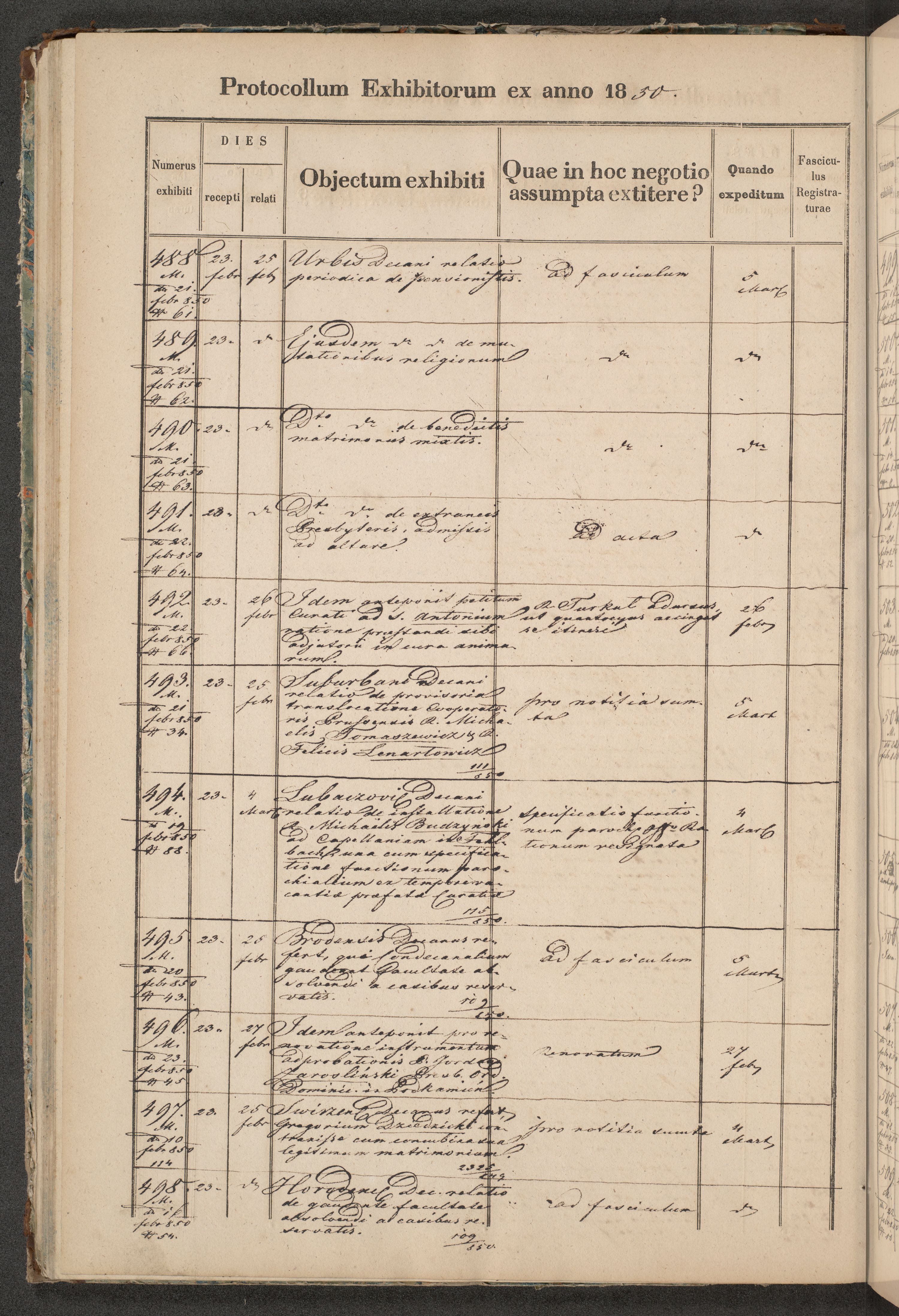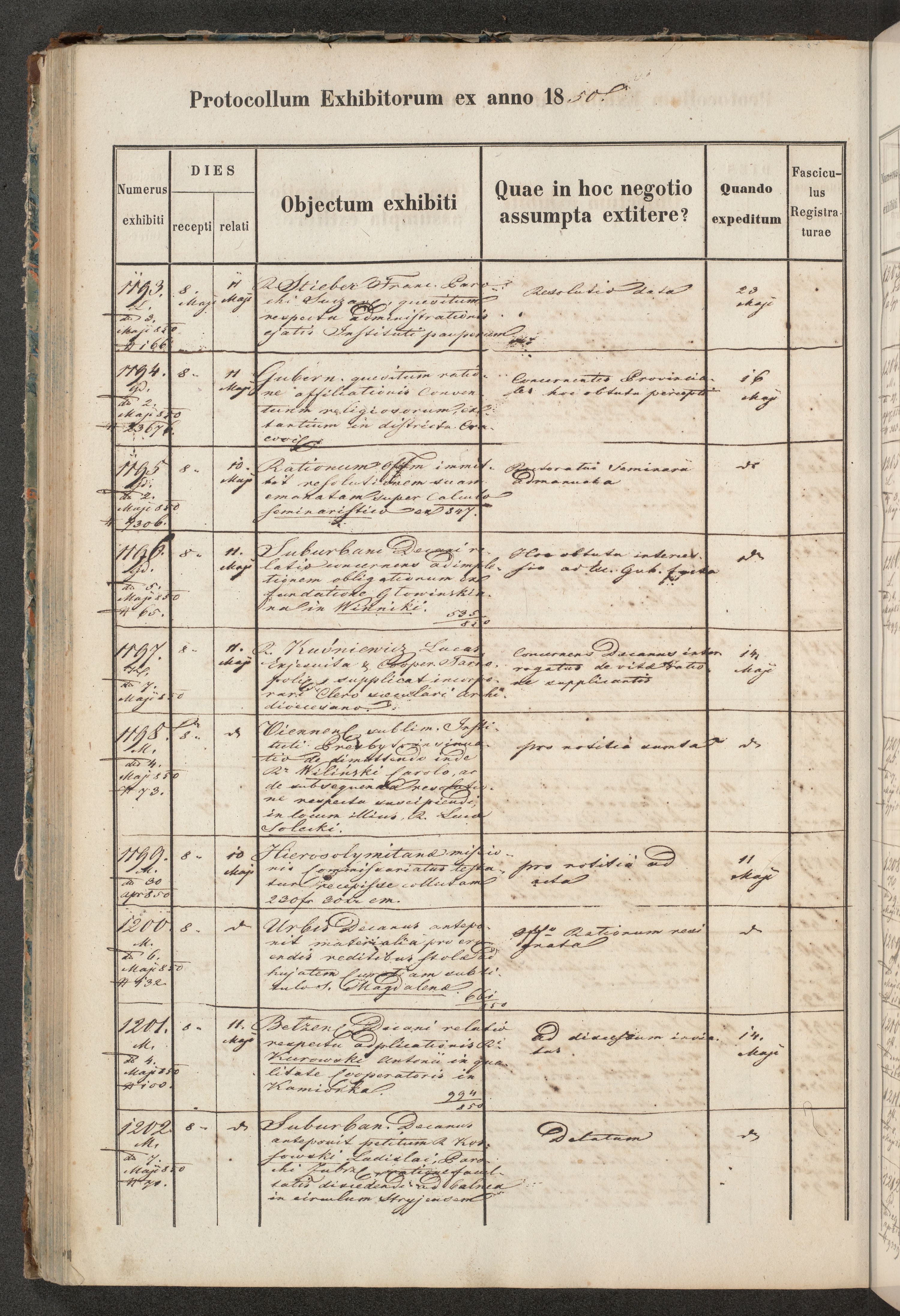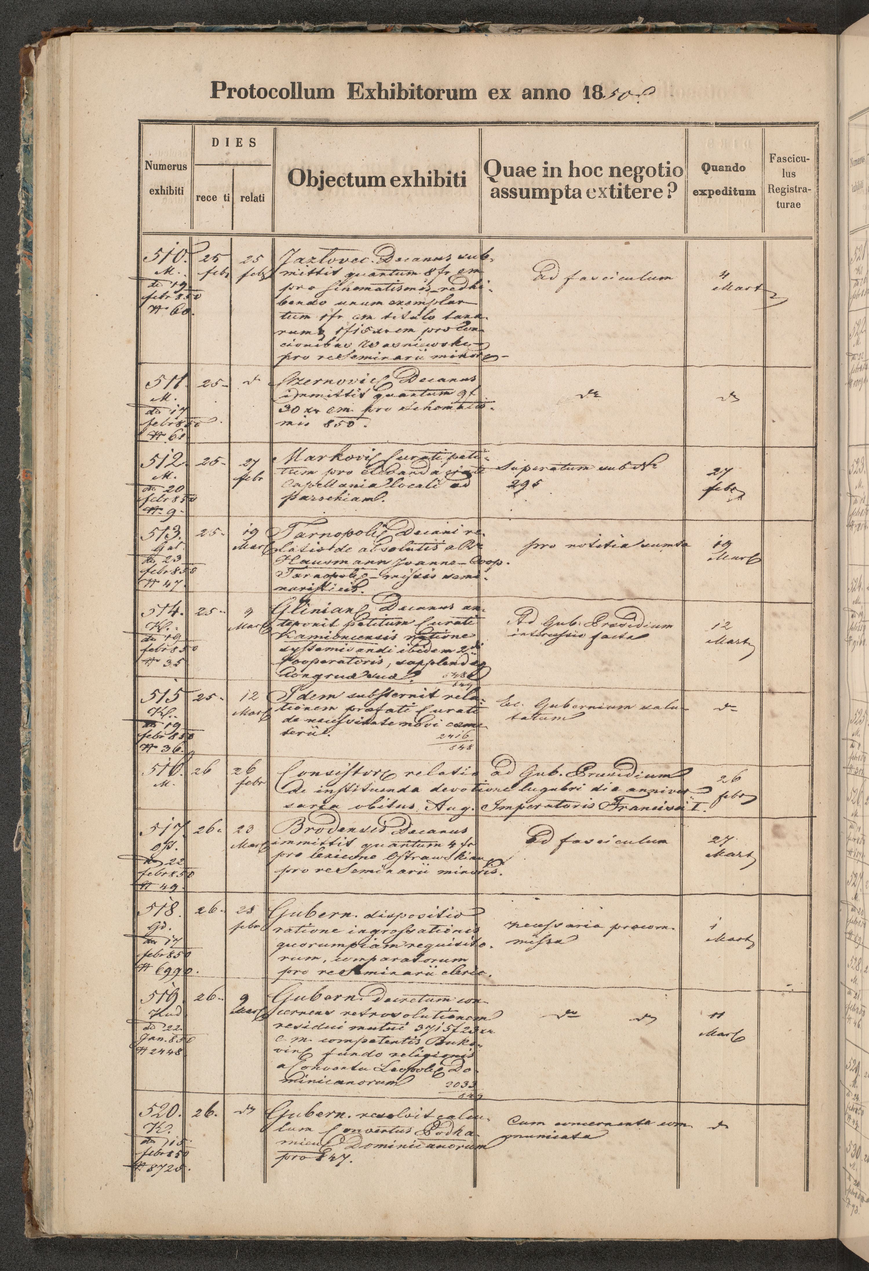 Protocollon exhibitorum in Ecclesiasticis ex anno 1850