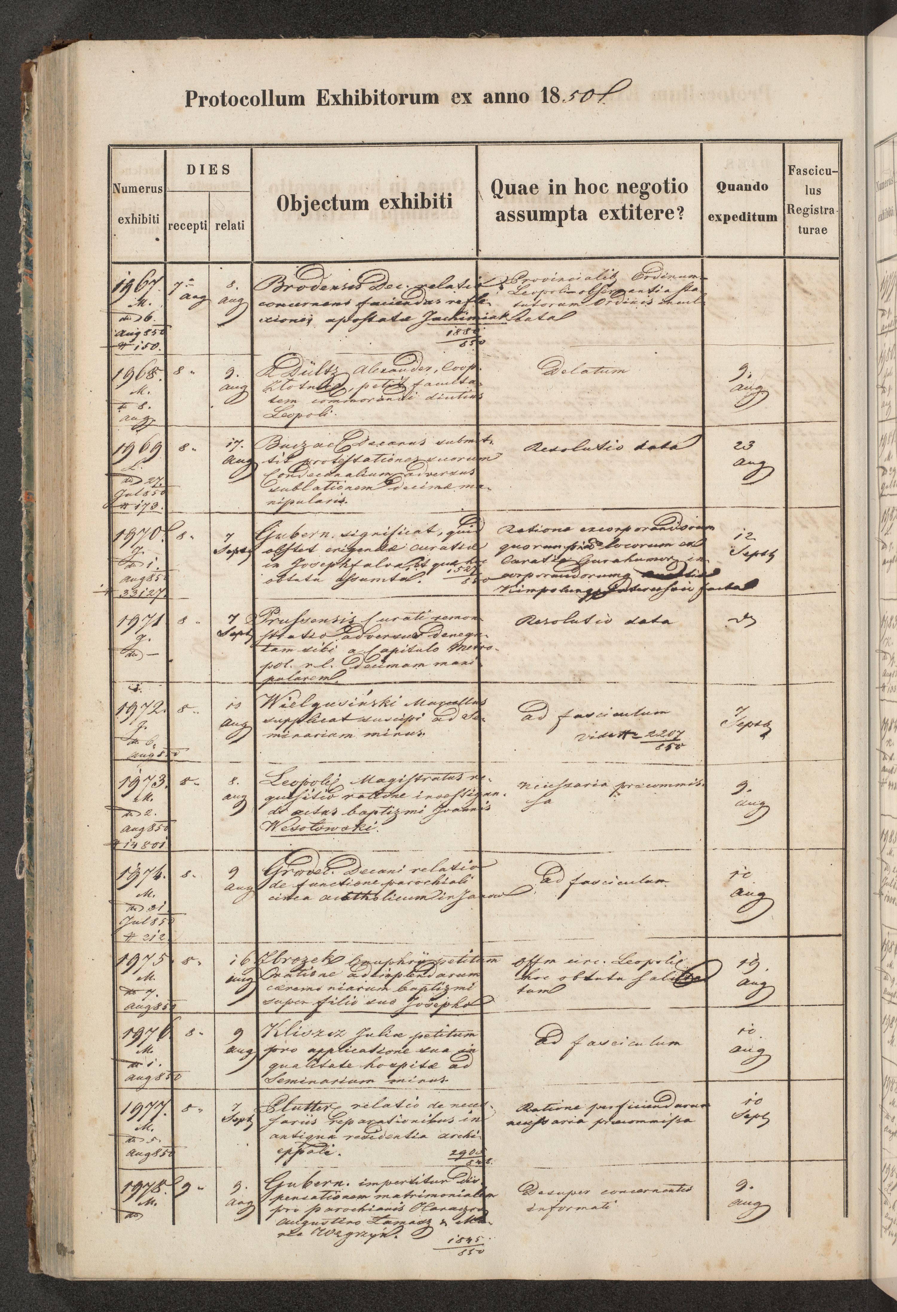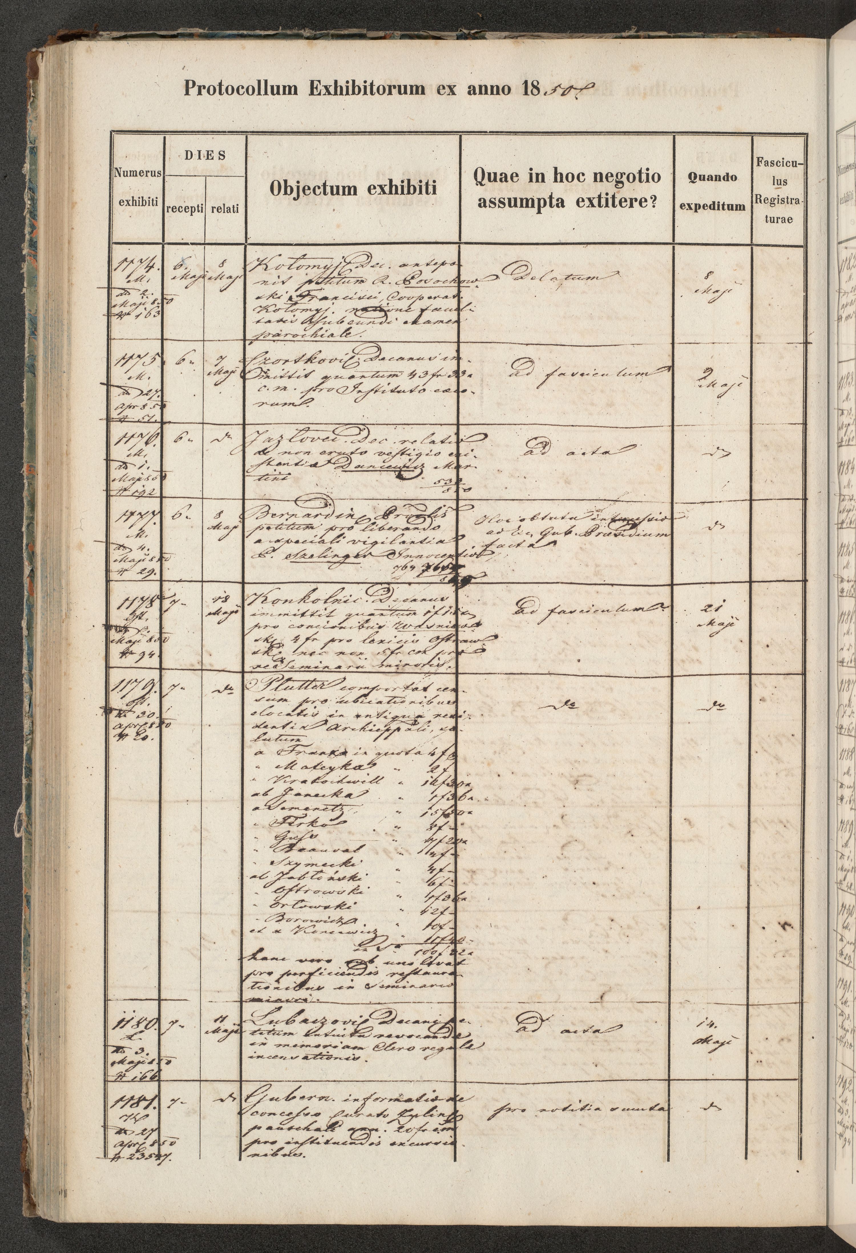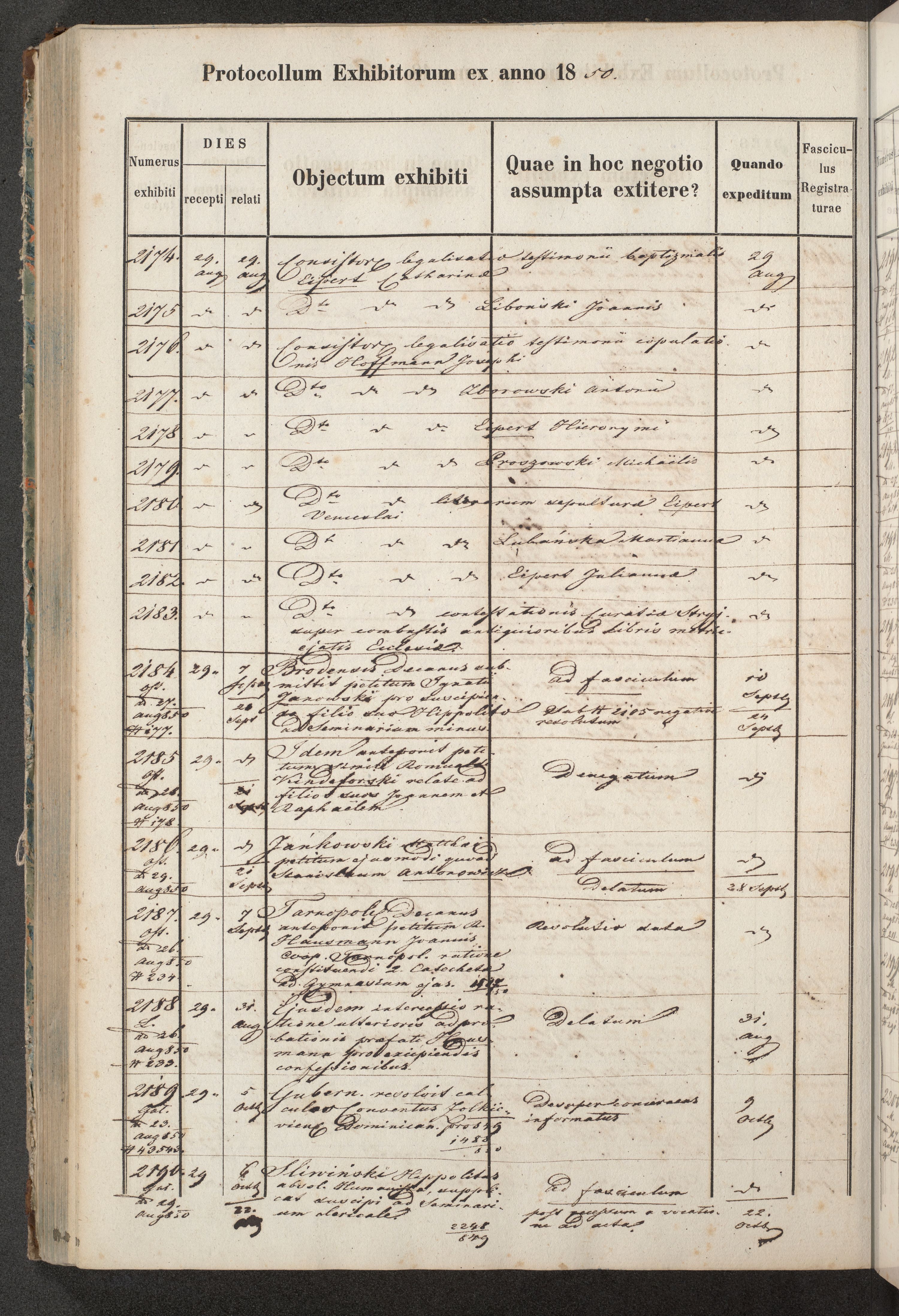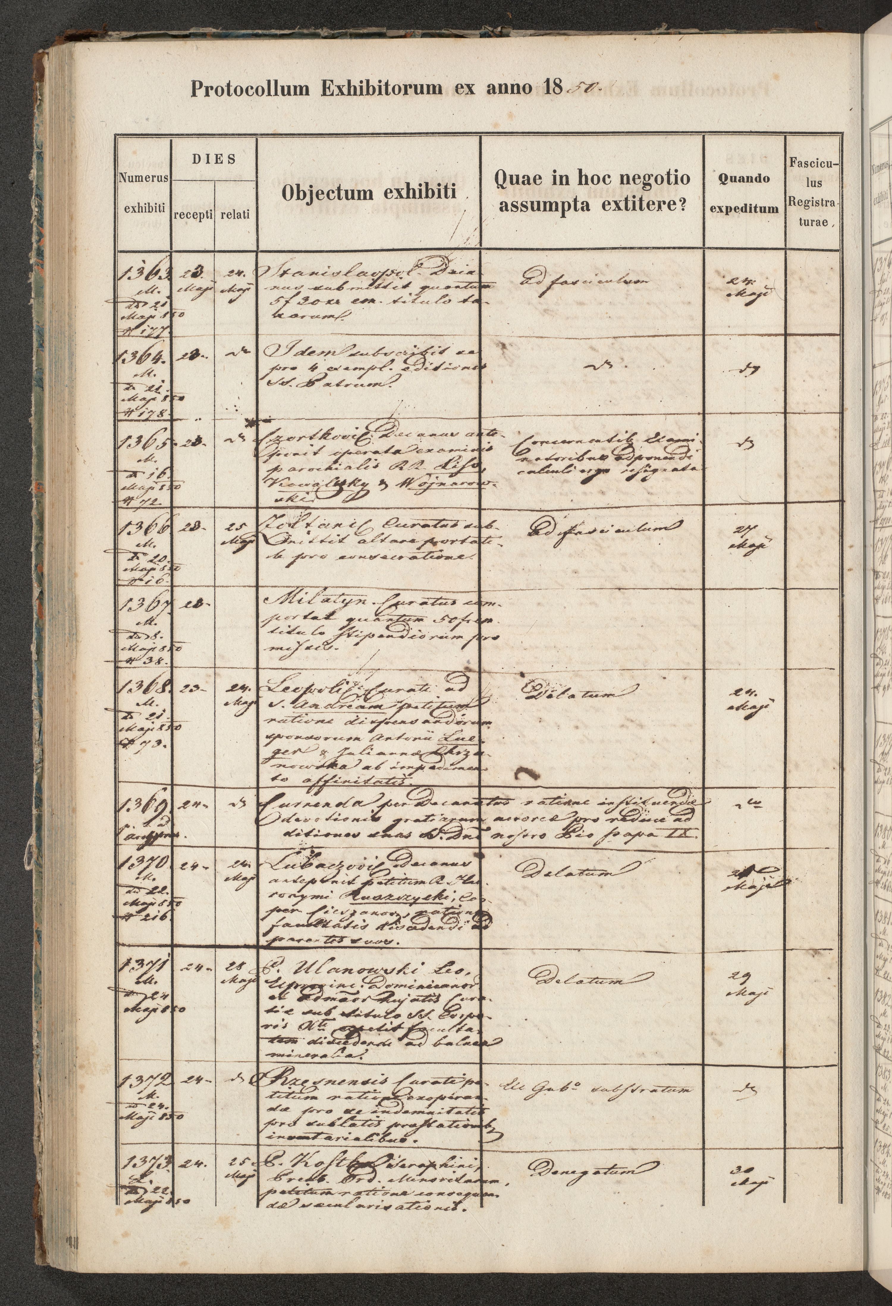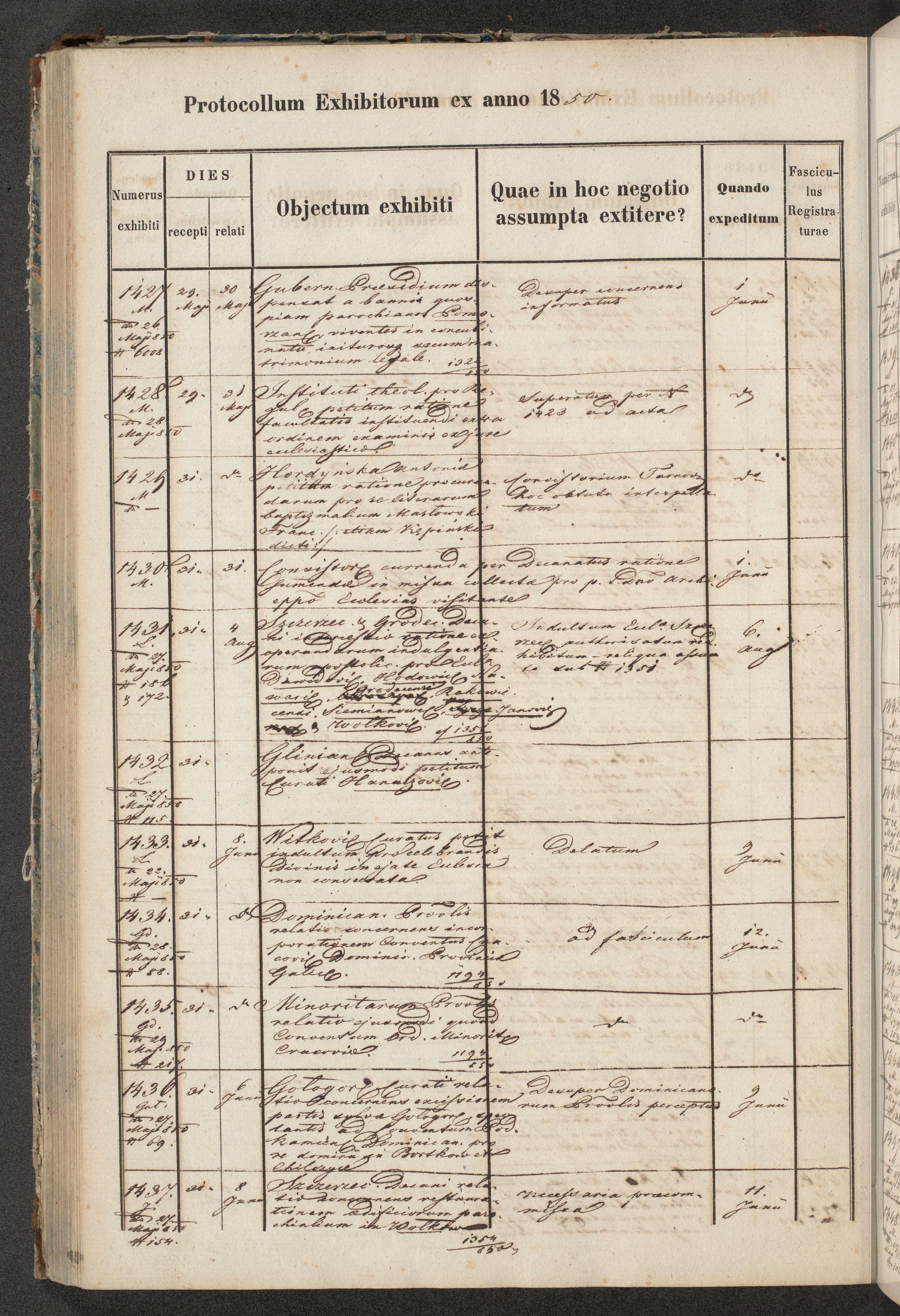 Protocollon exhibitorum in Ecclesiasticis ex anno 1850