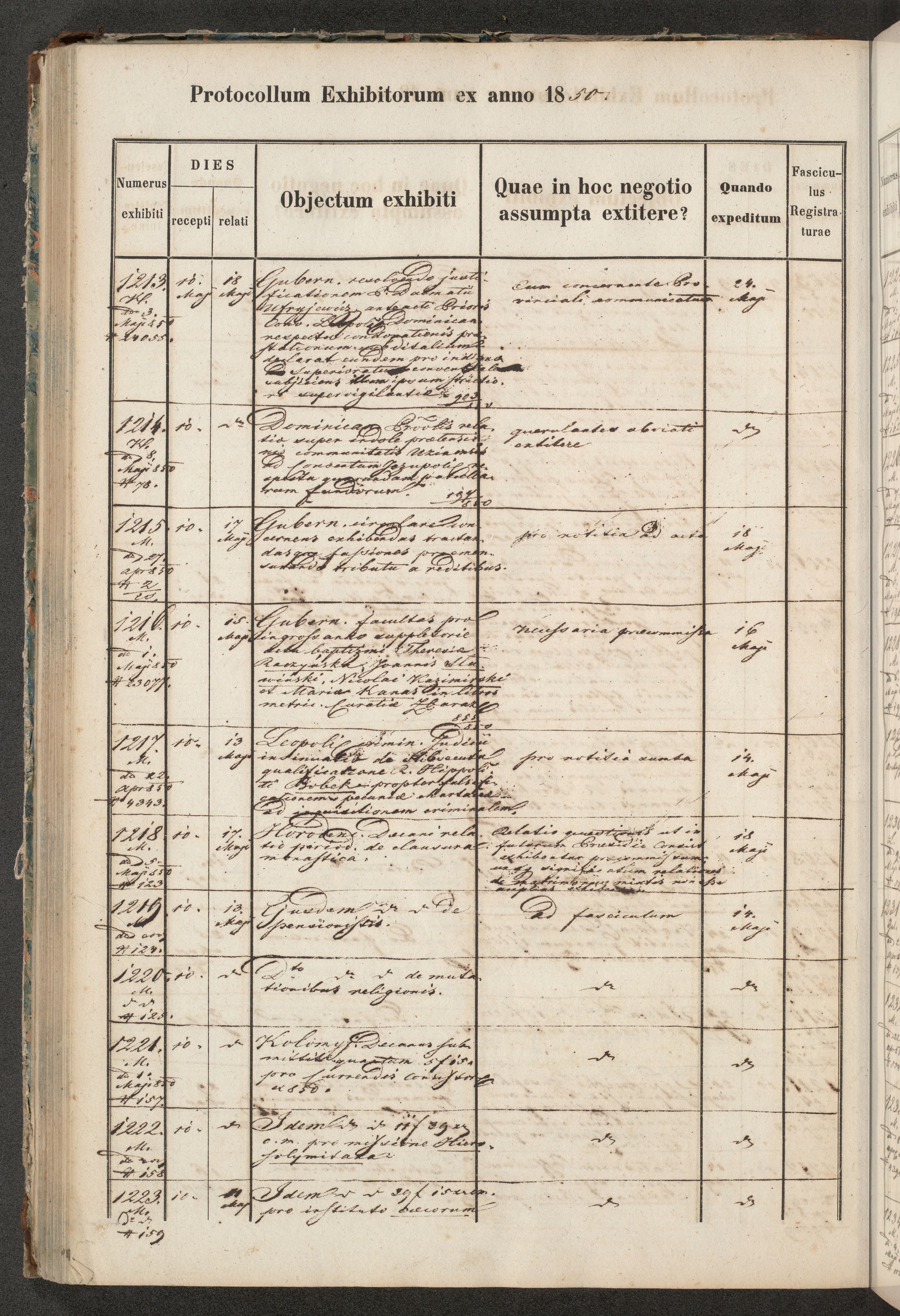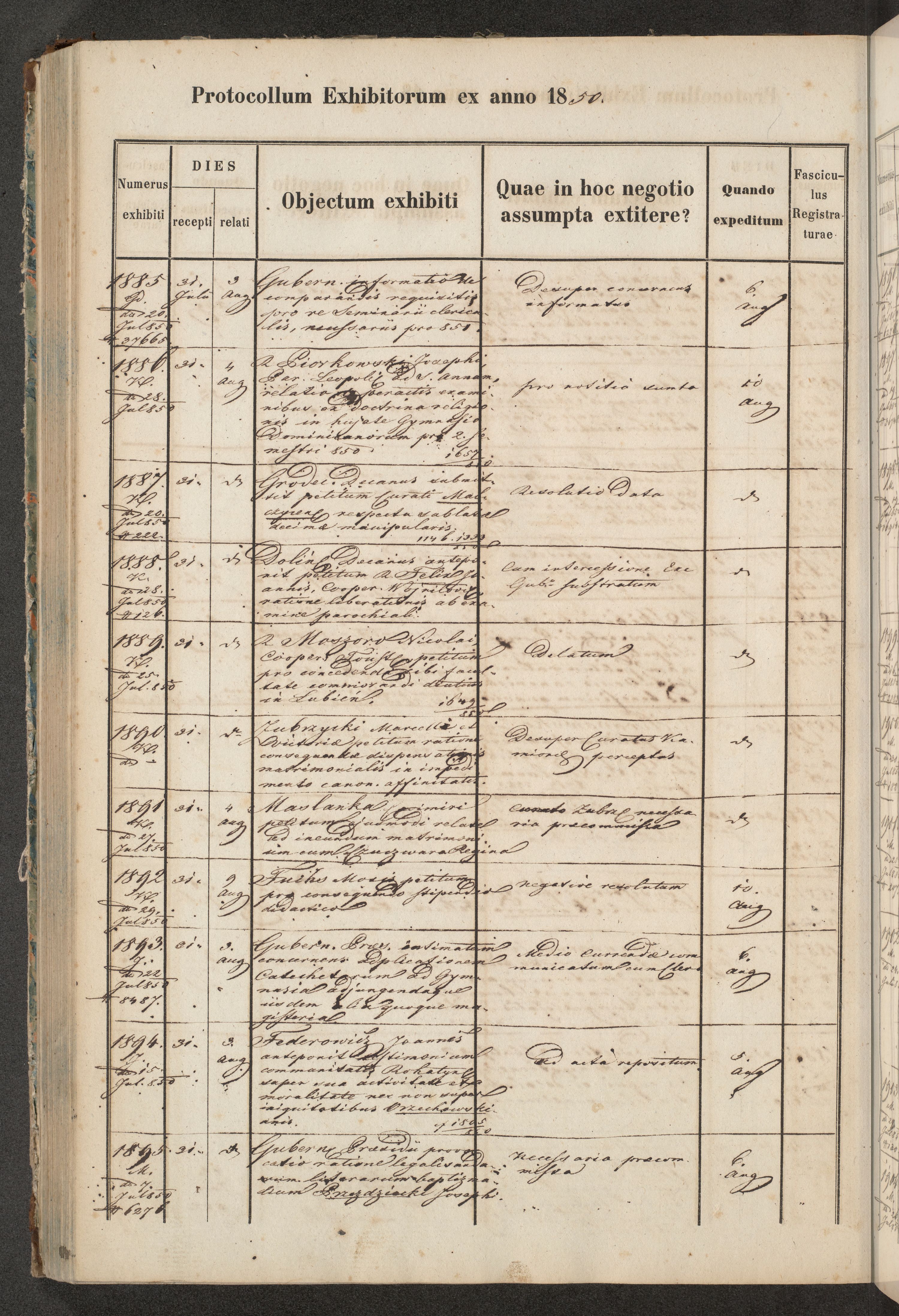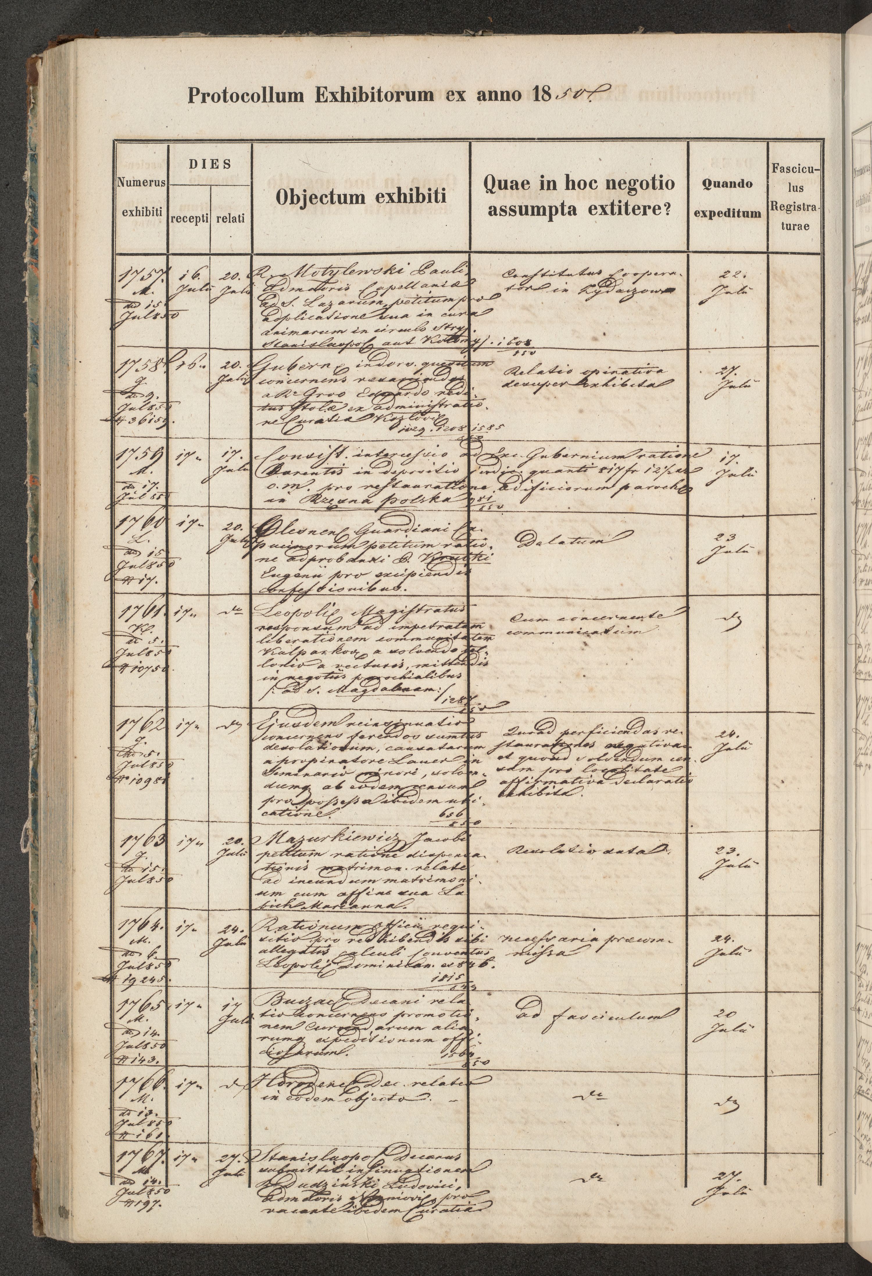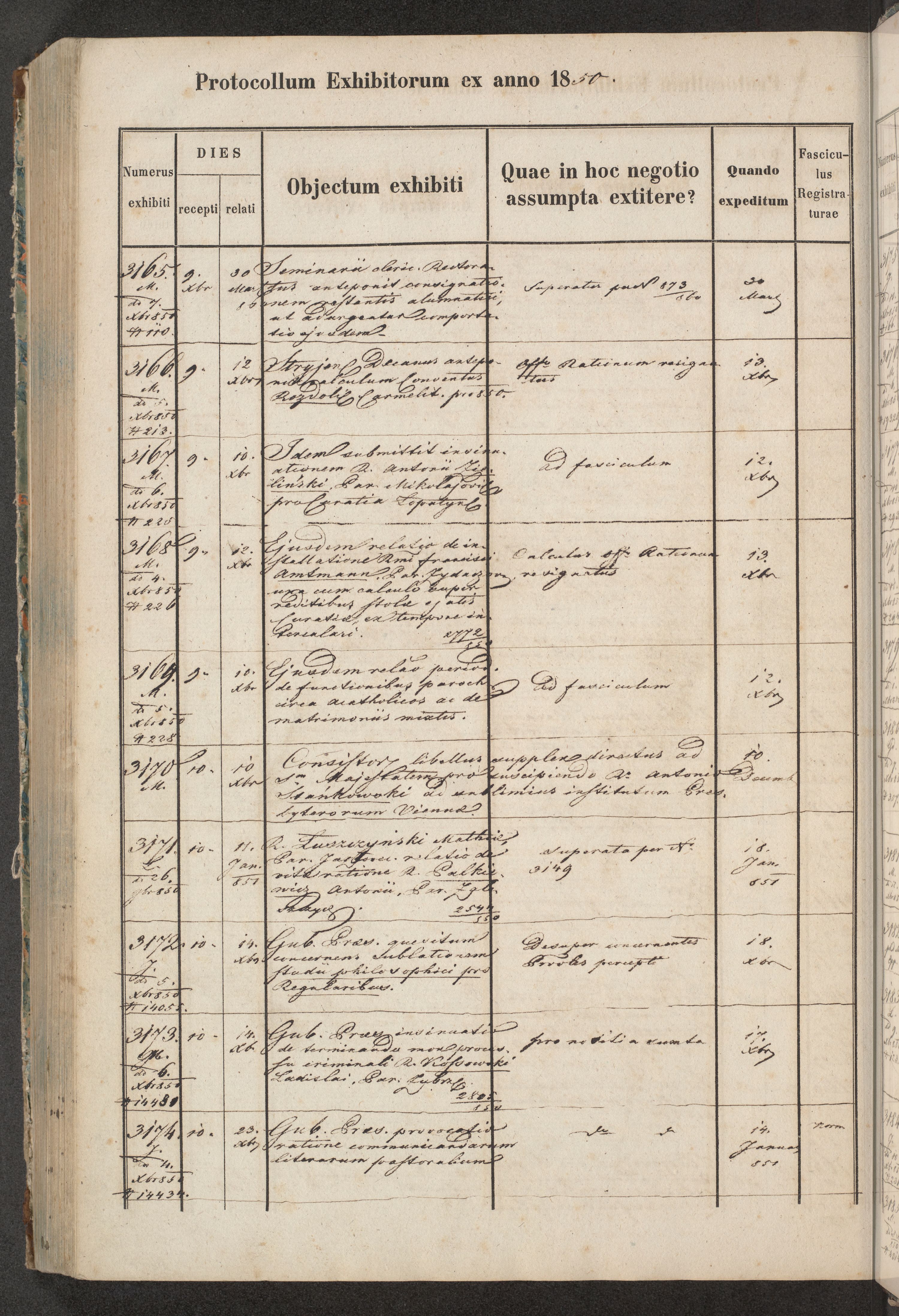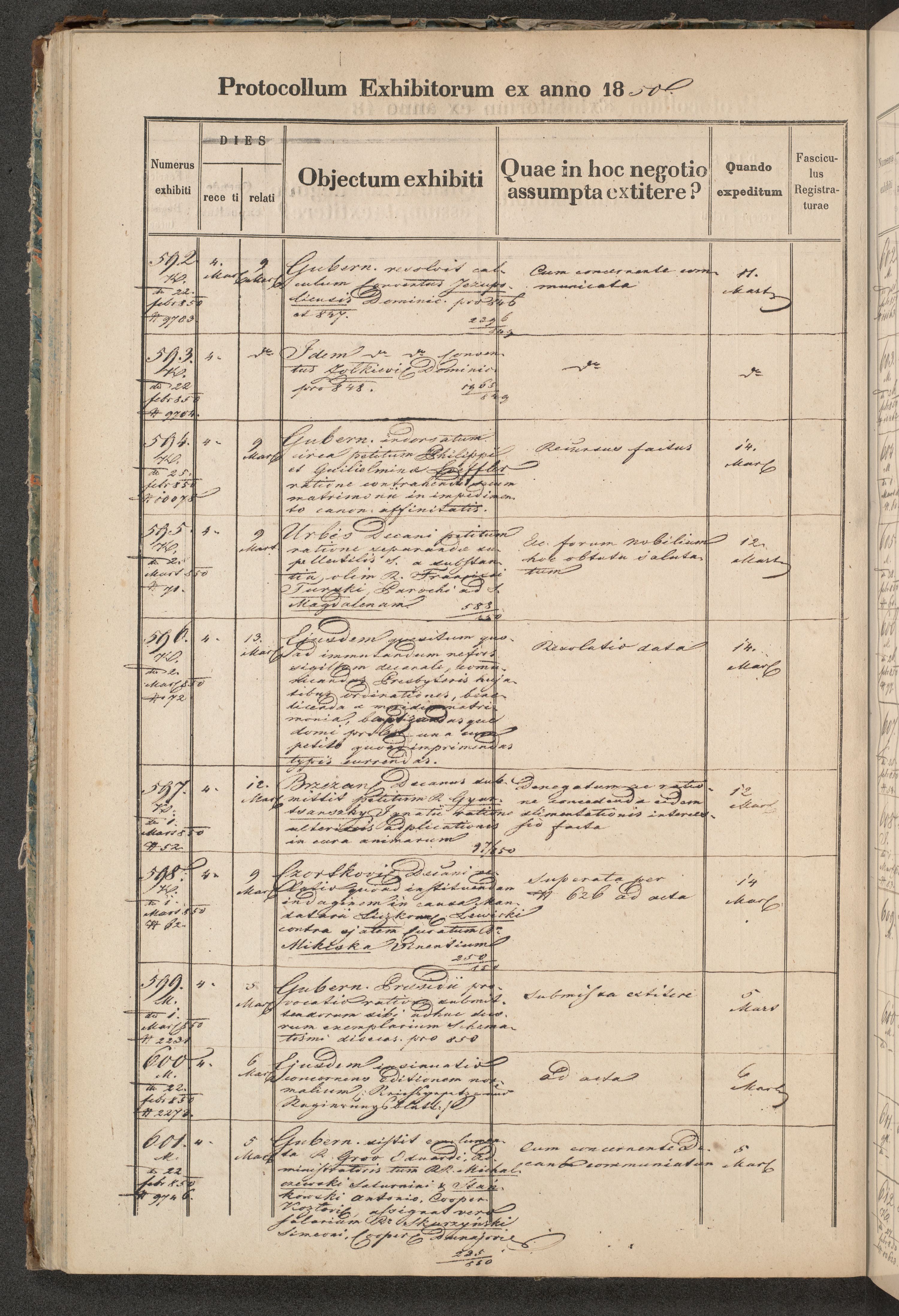 Protocollon exhibitorum in Ecclesiasticis ex anno 1850