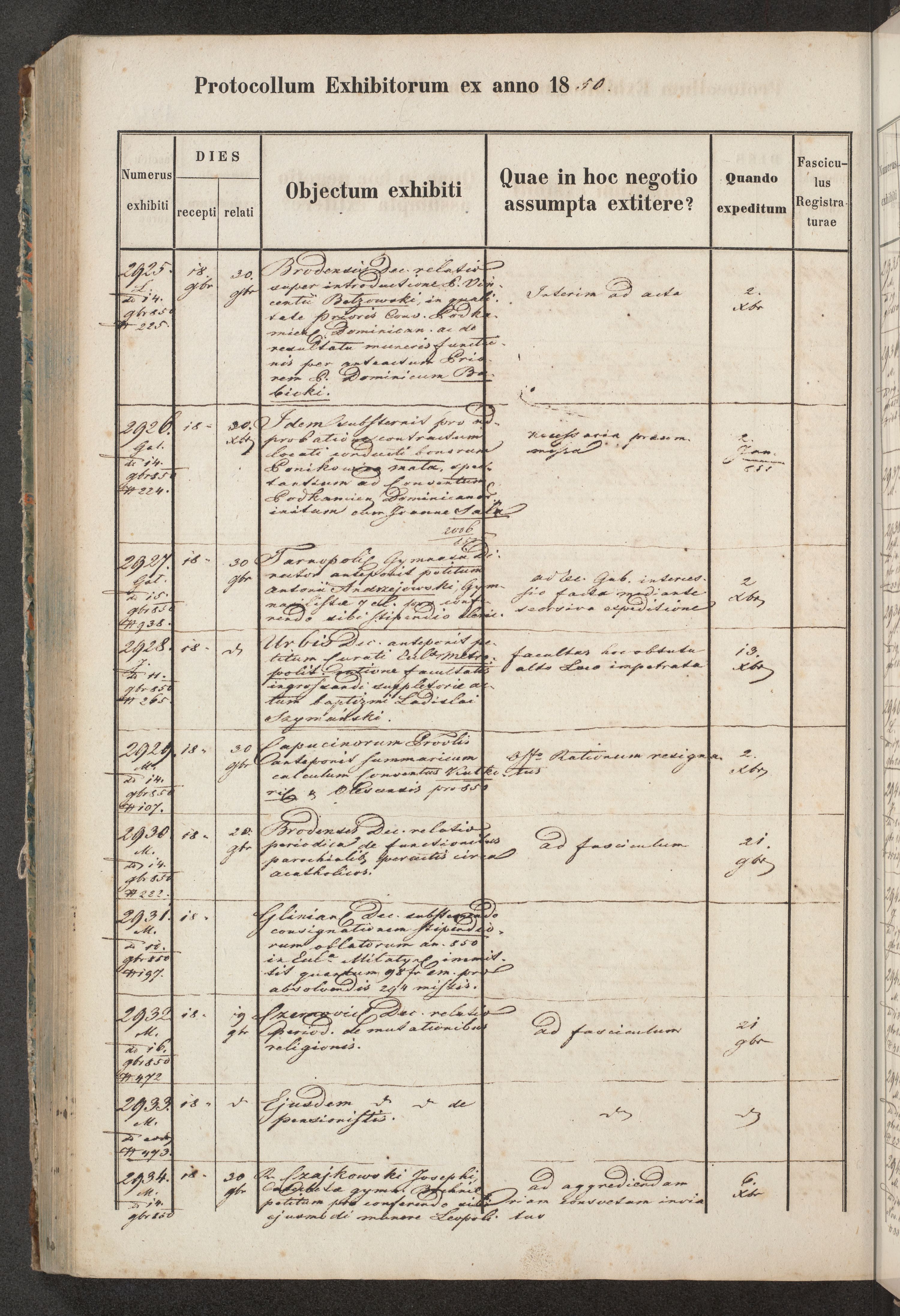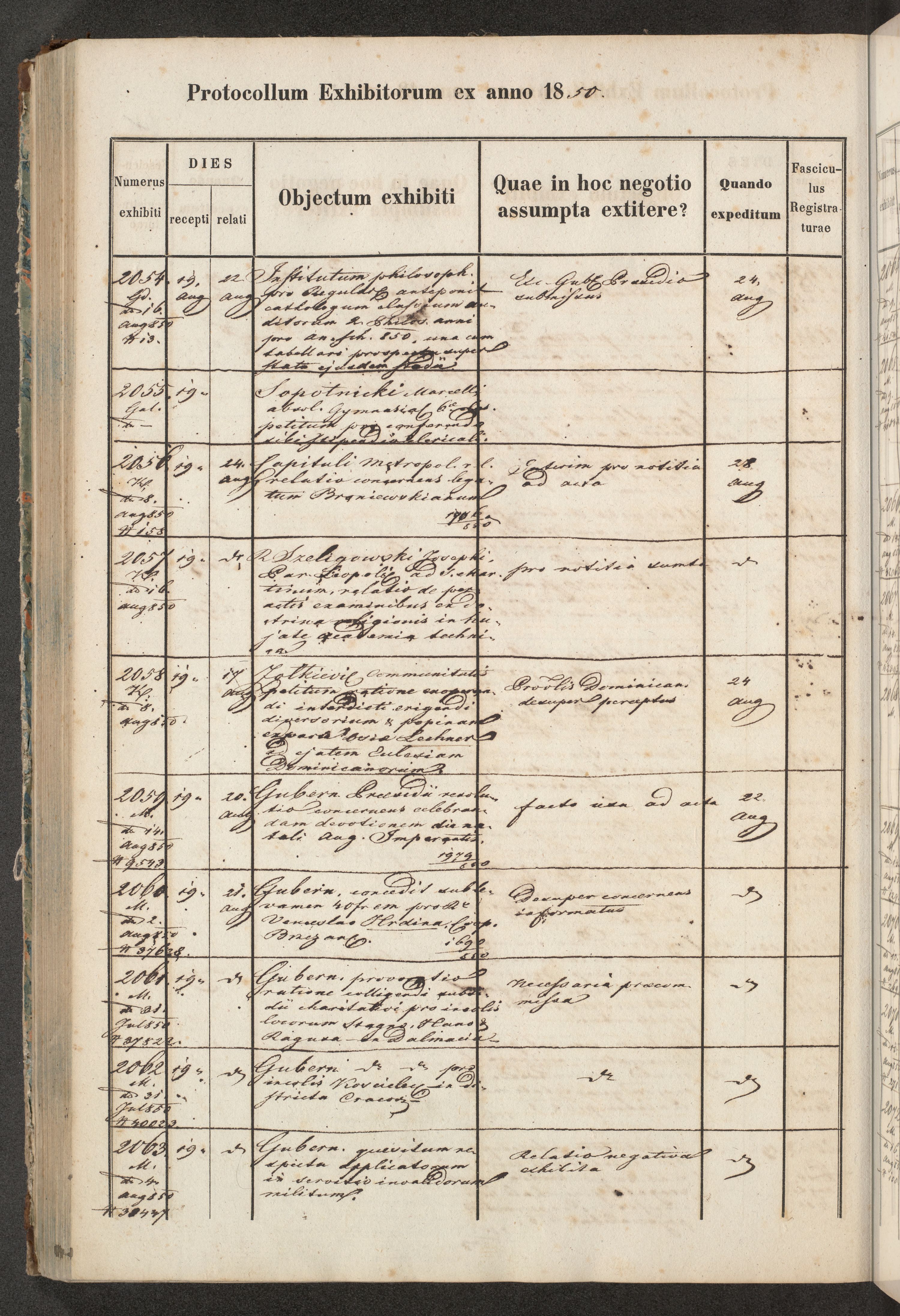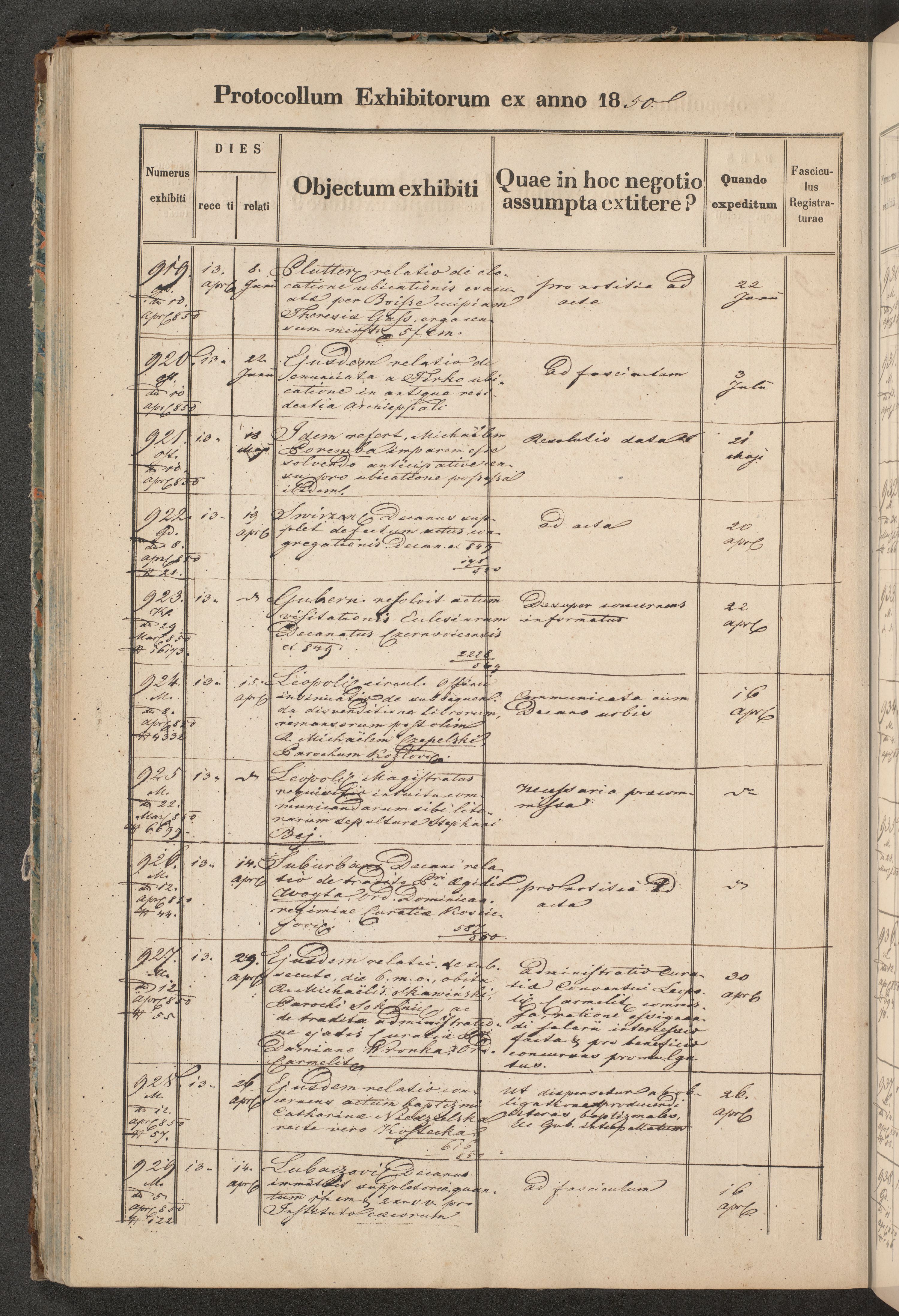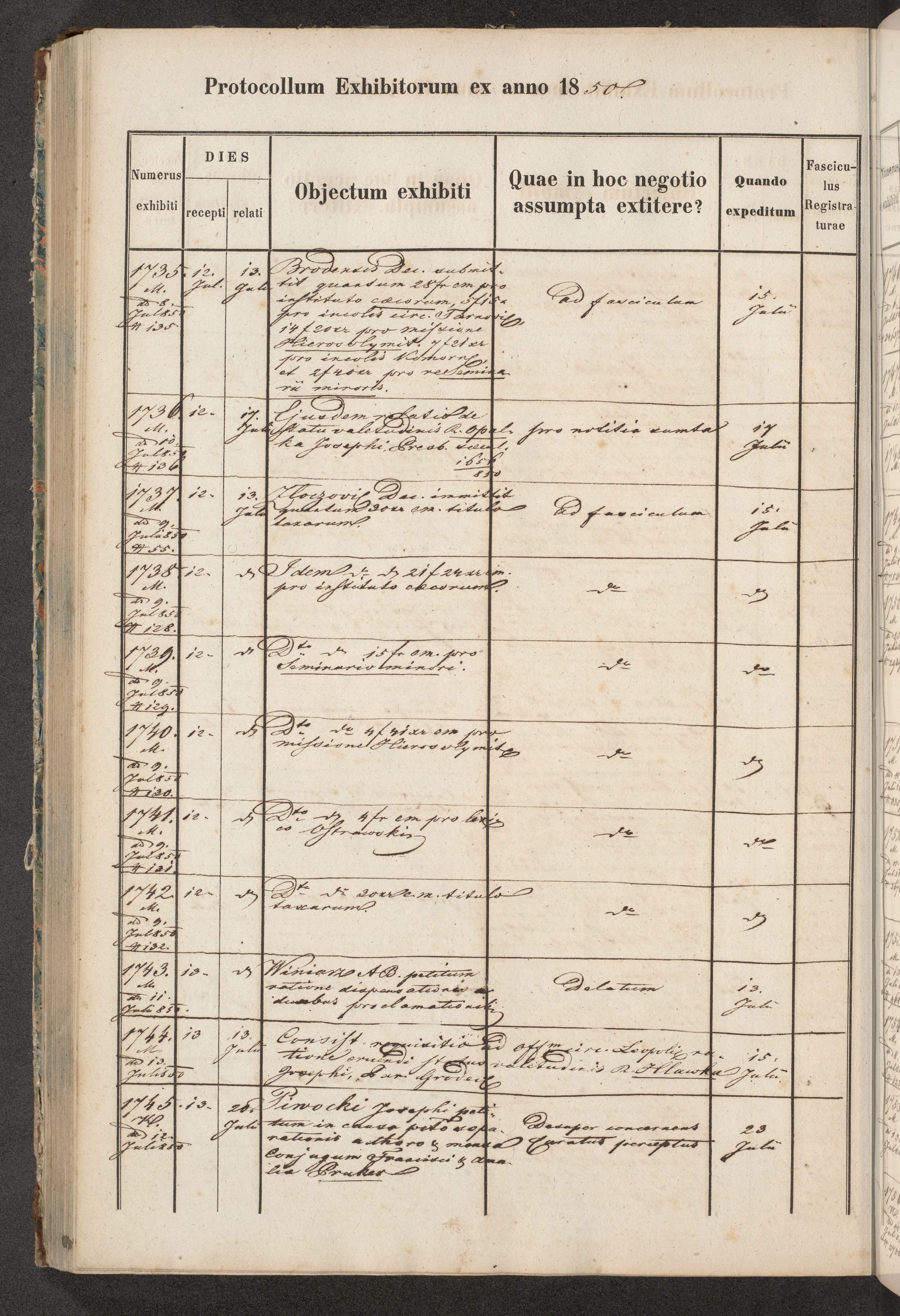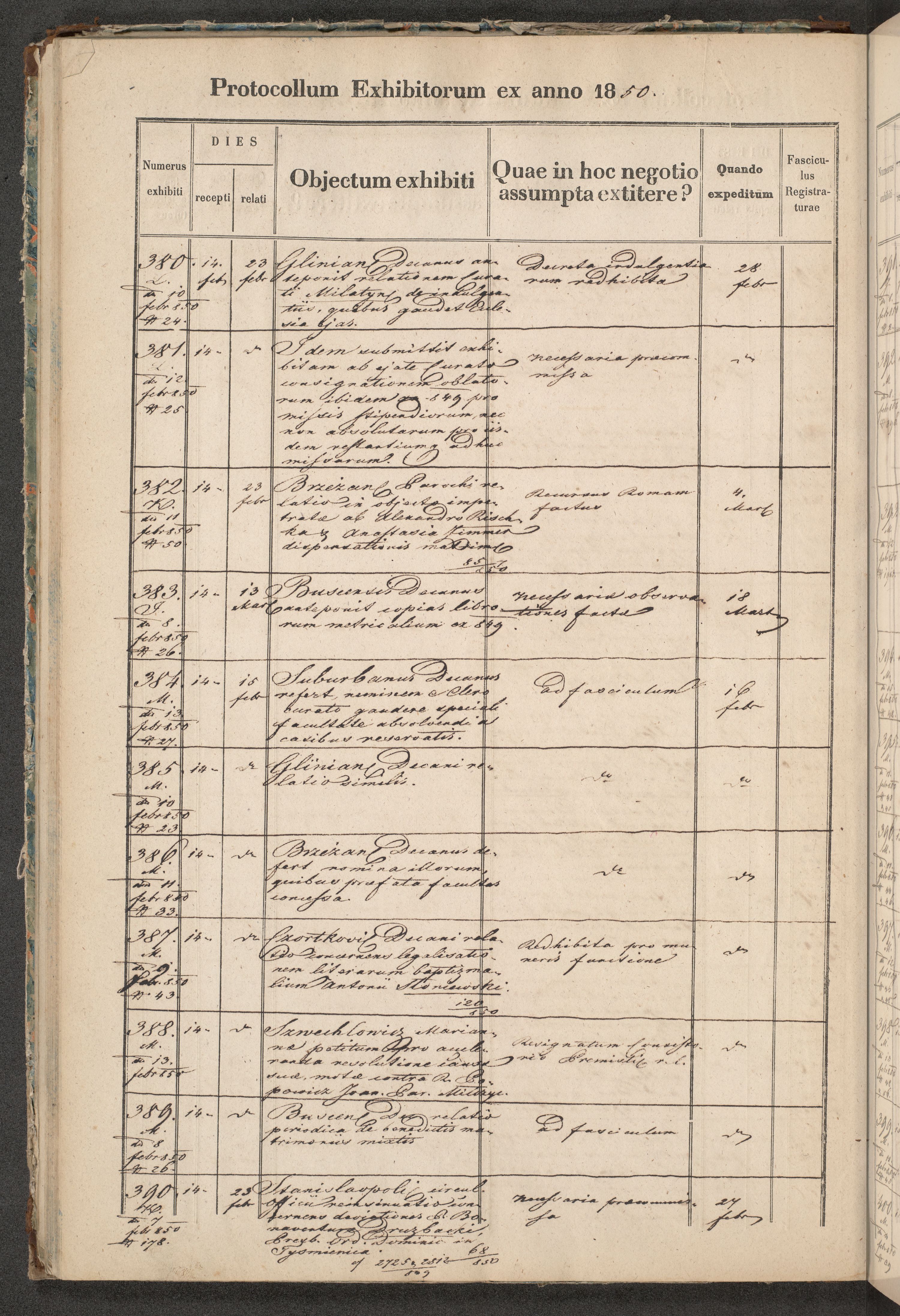 Protocollon exhibitorum in Ecclesiasticis ex anno 1850