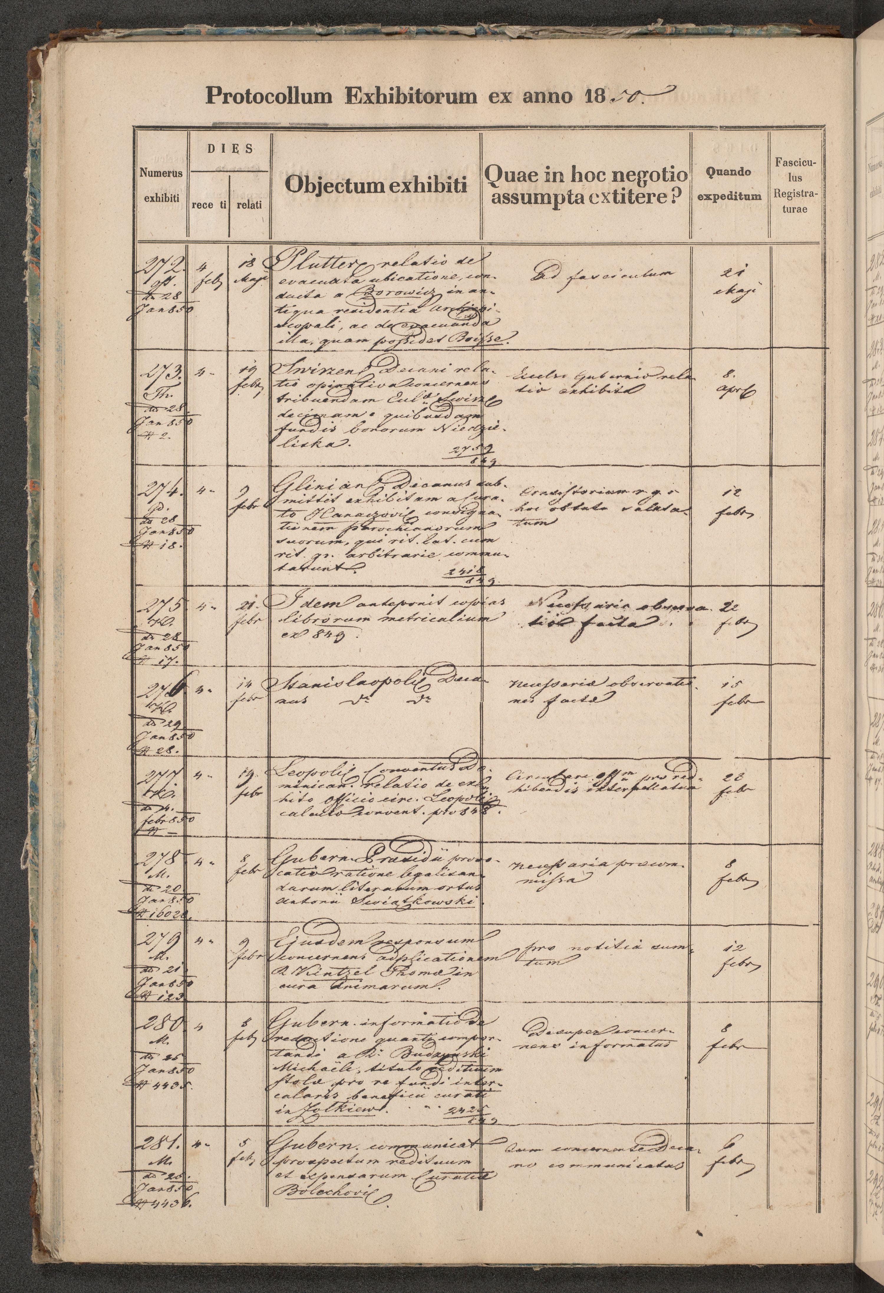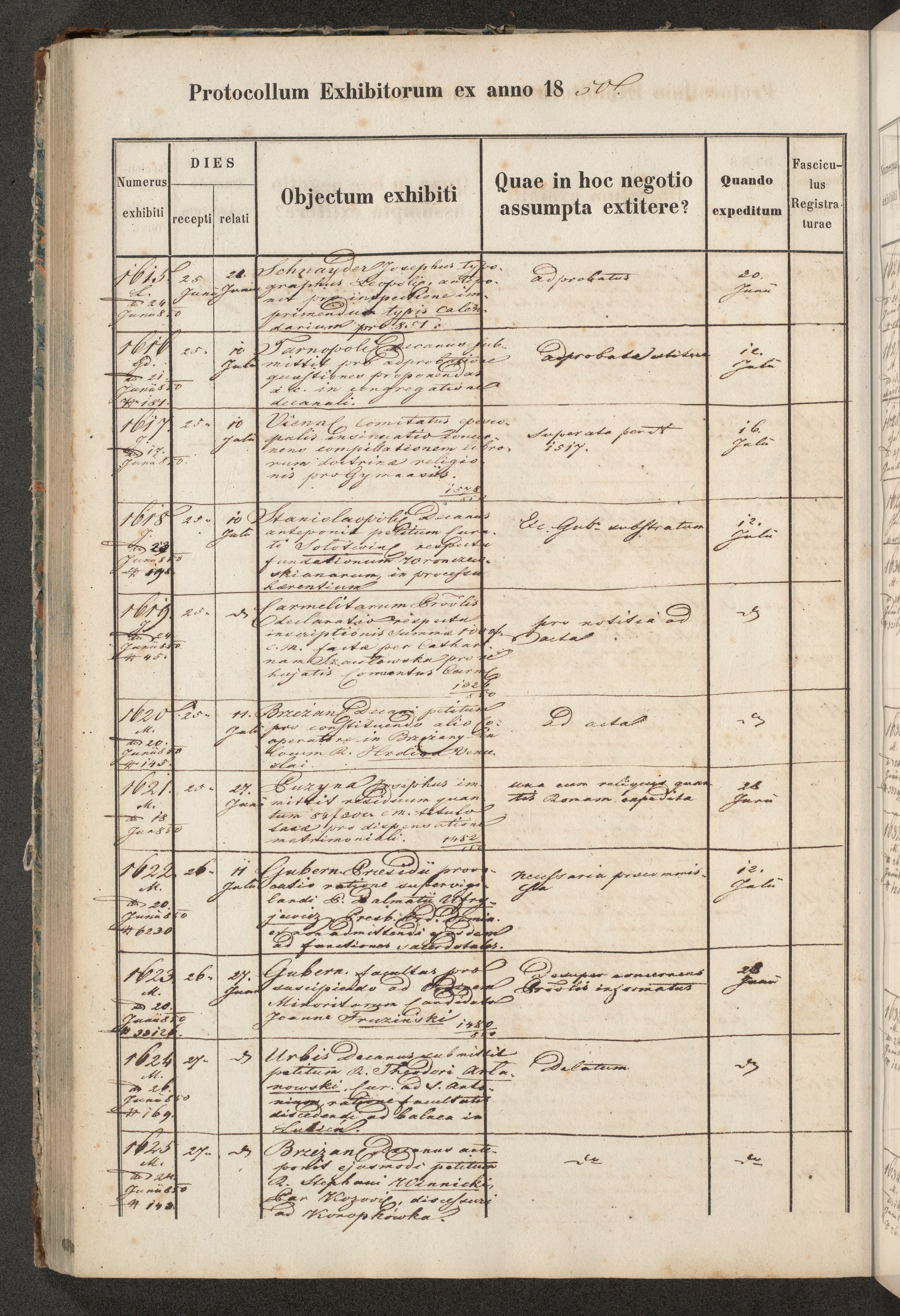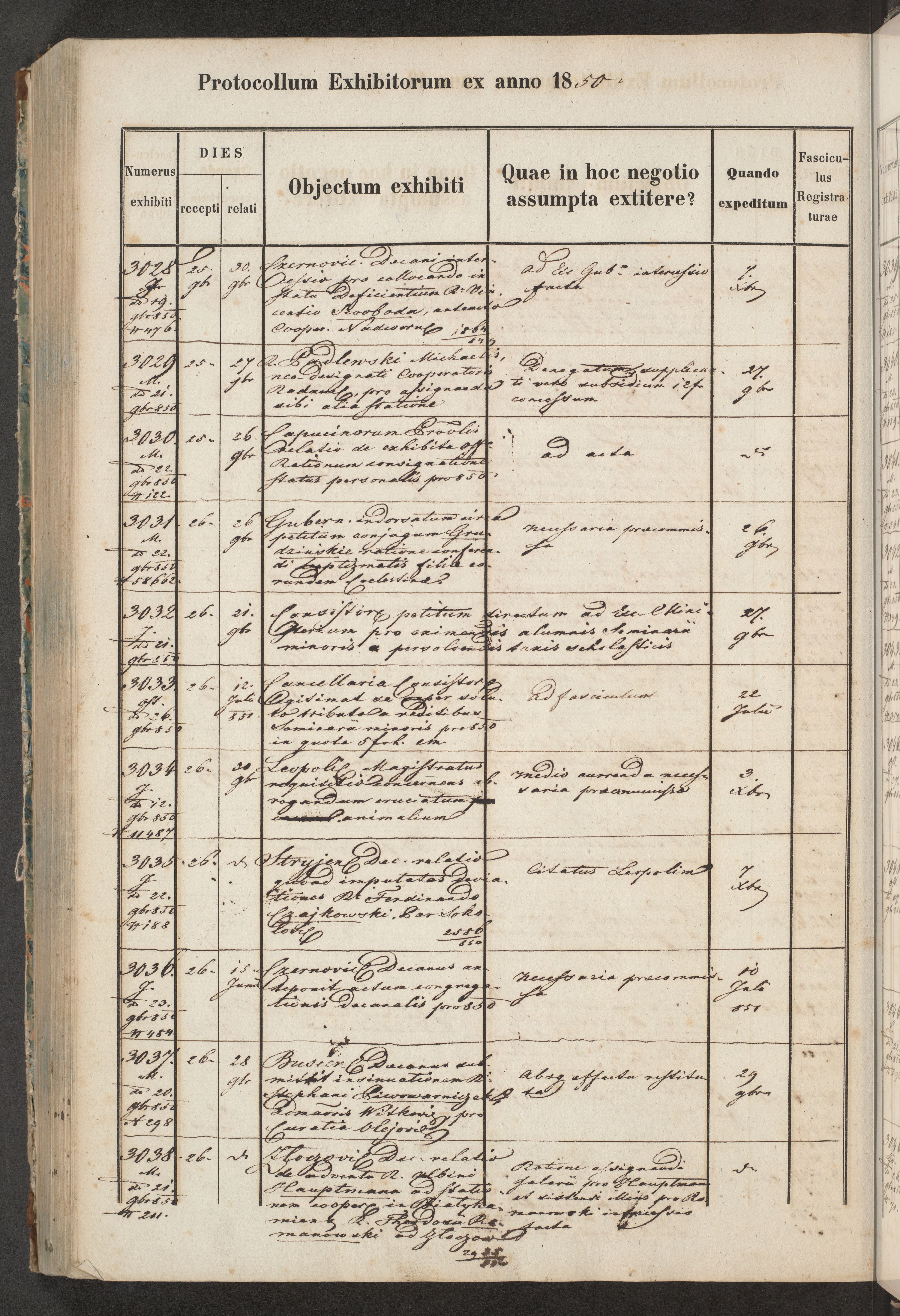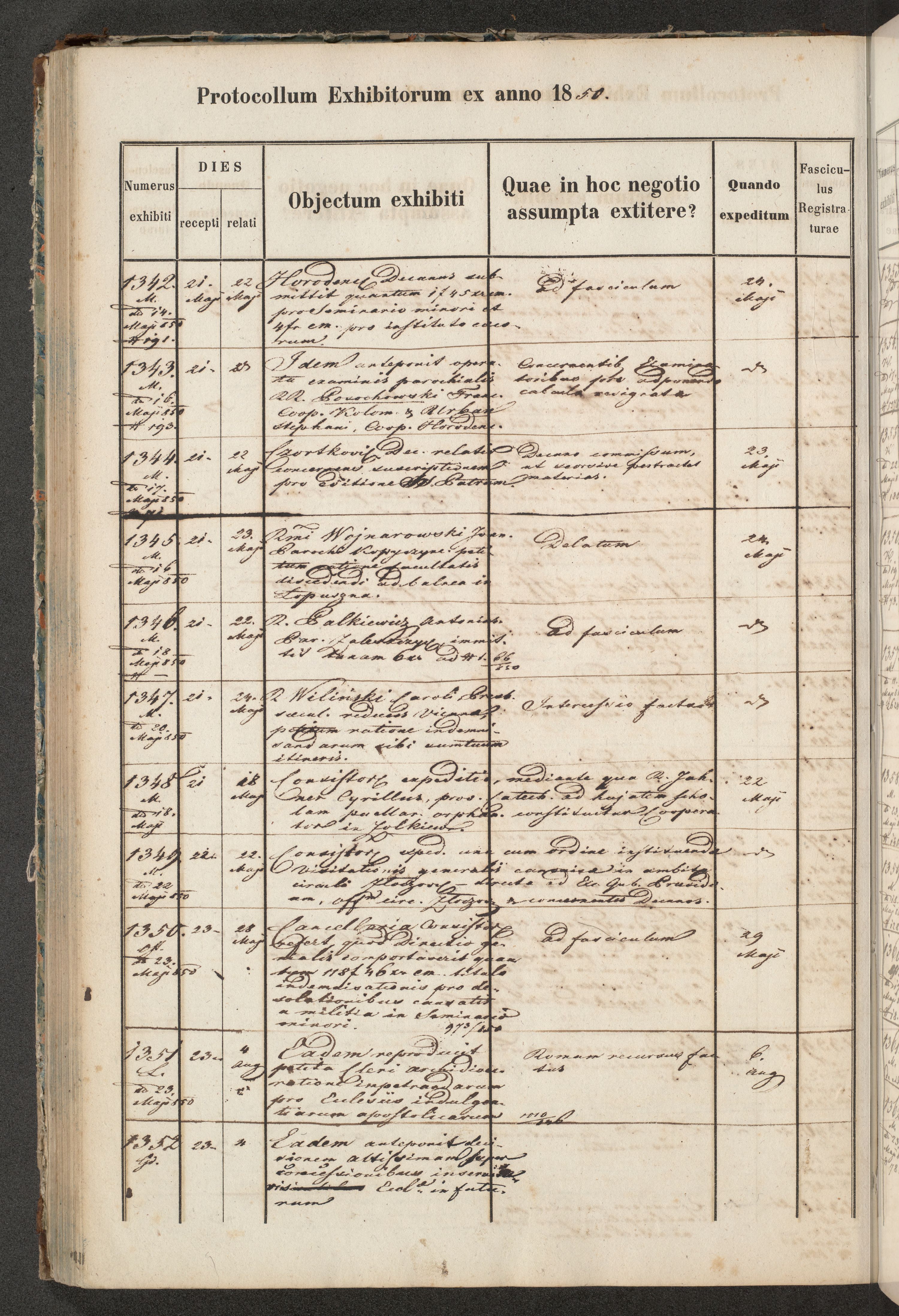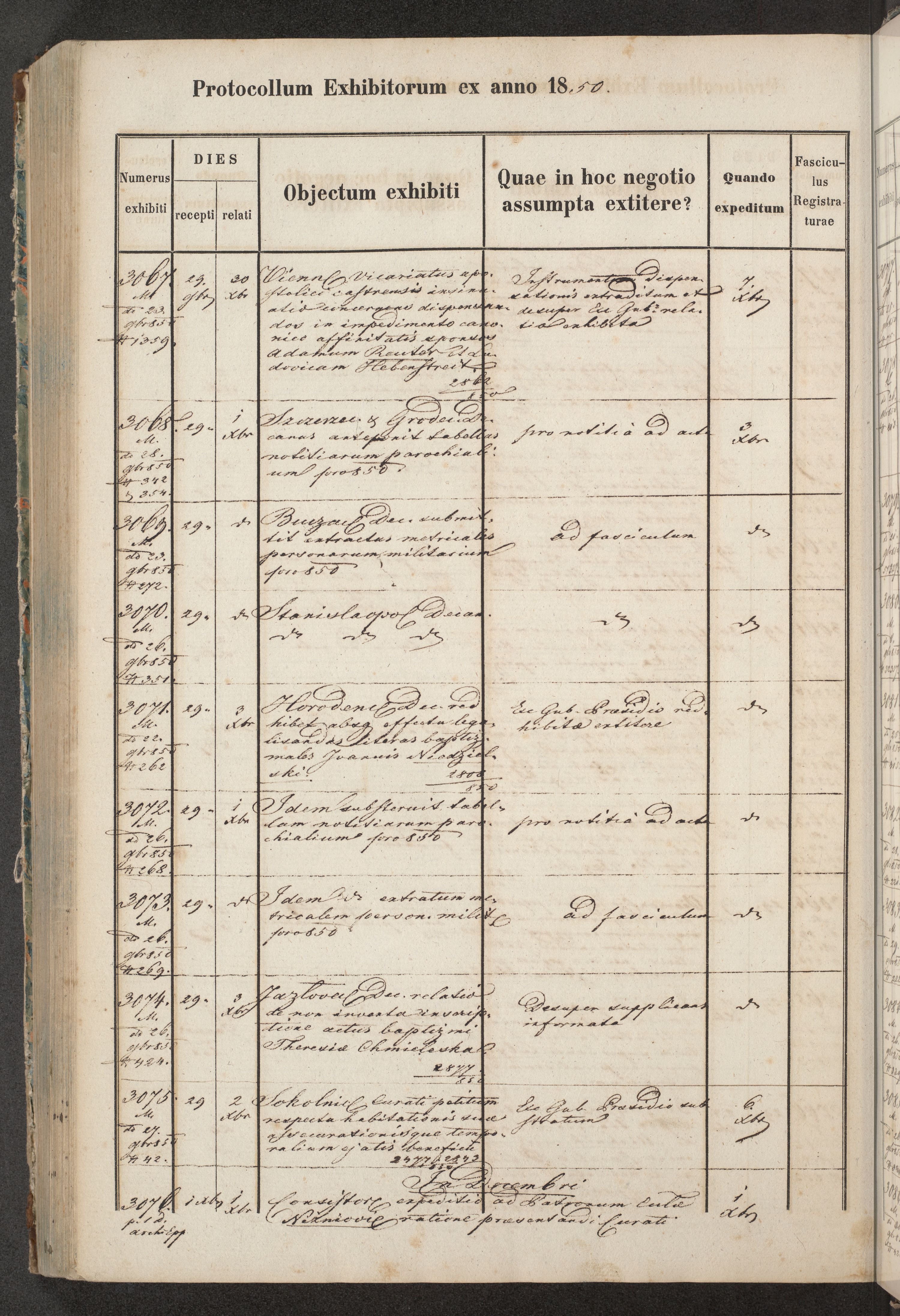 Protocollon exhibitorum in Ecclesiasticis ex anno 1850