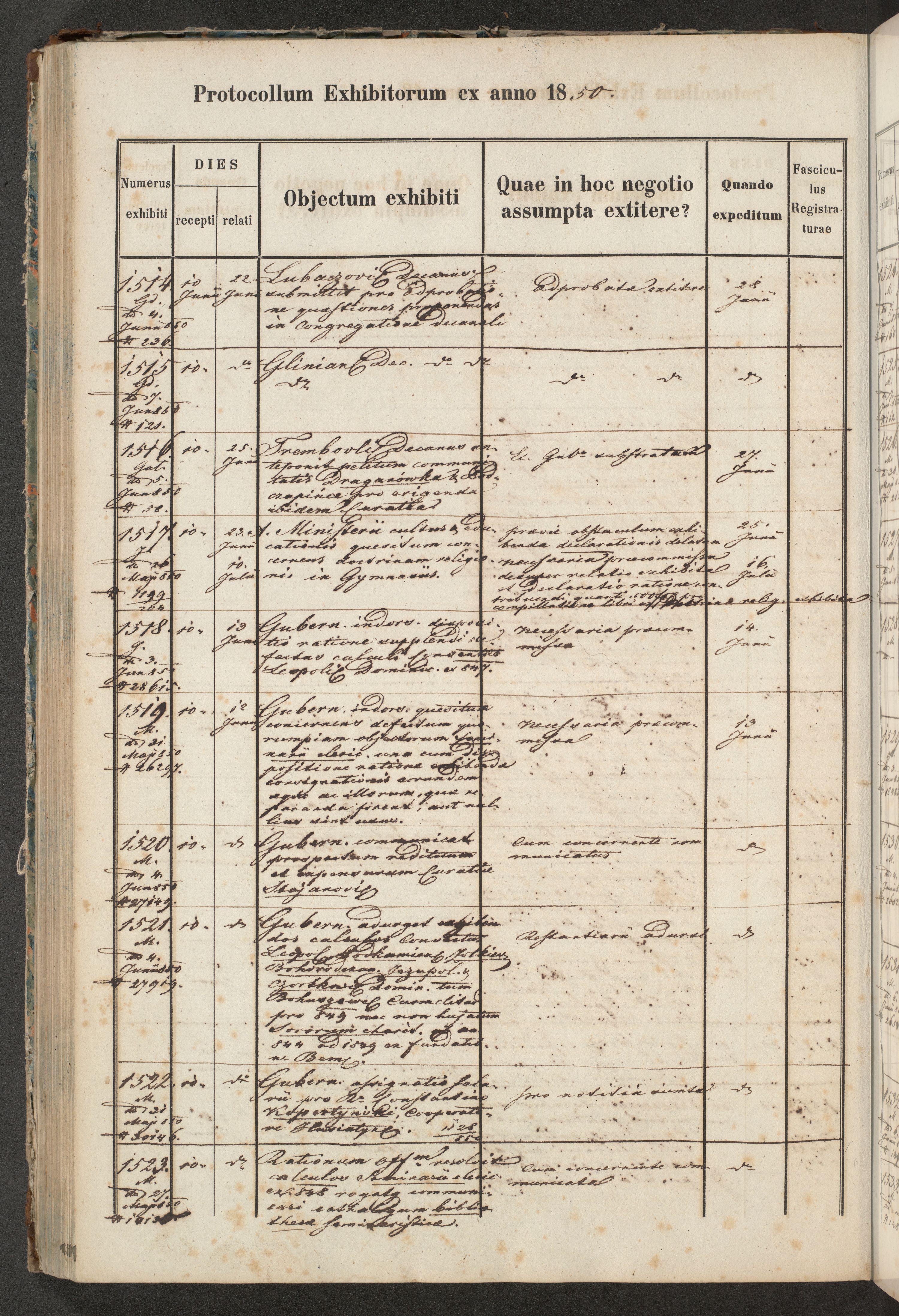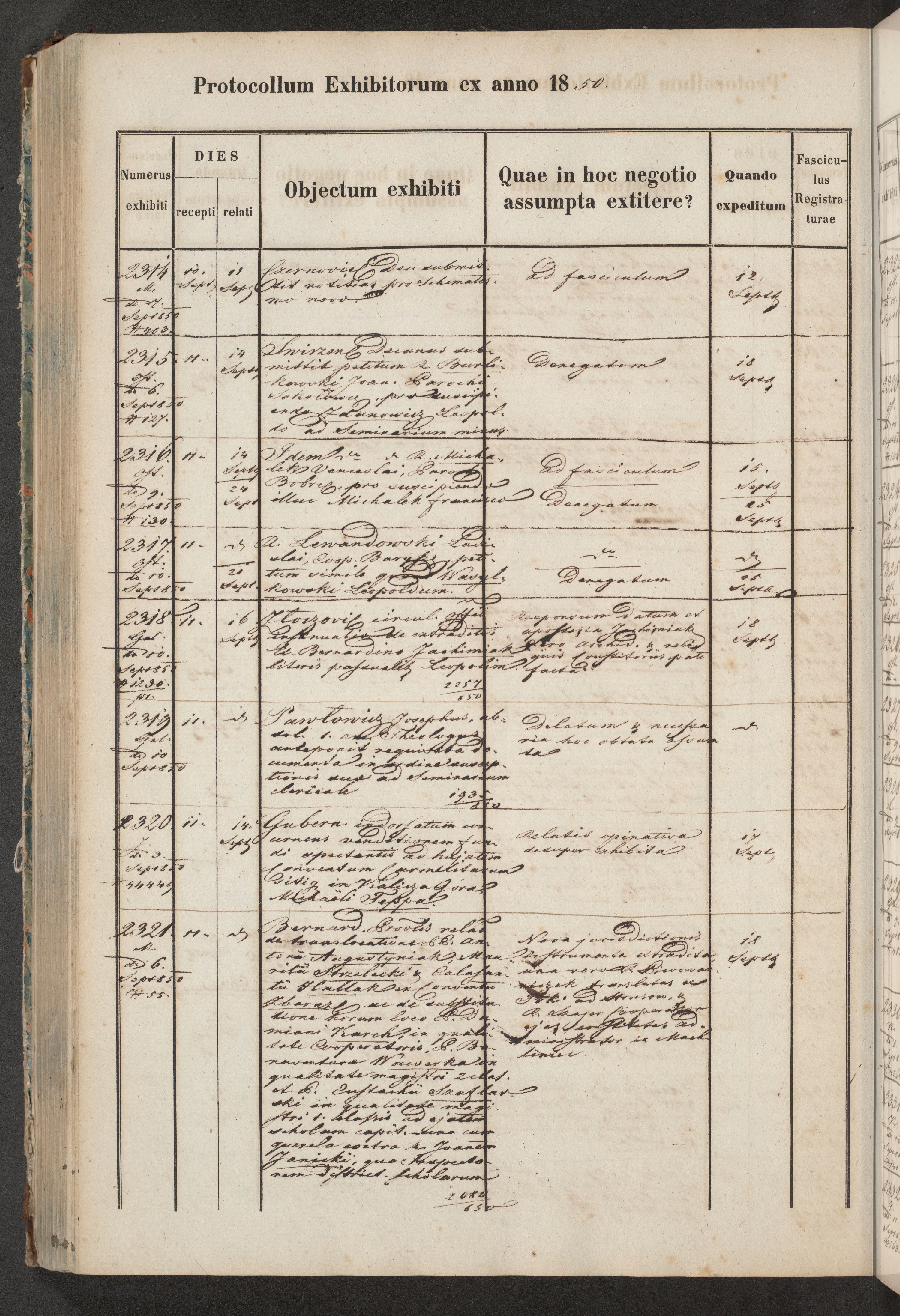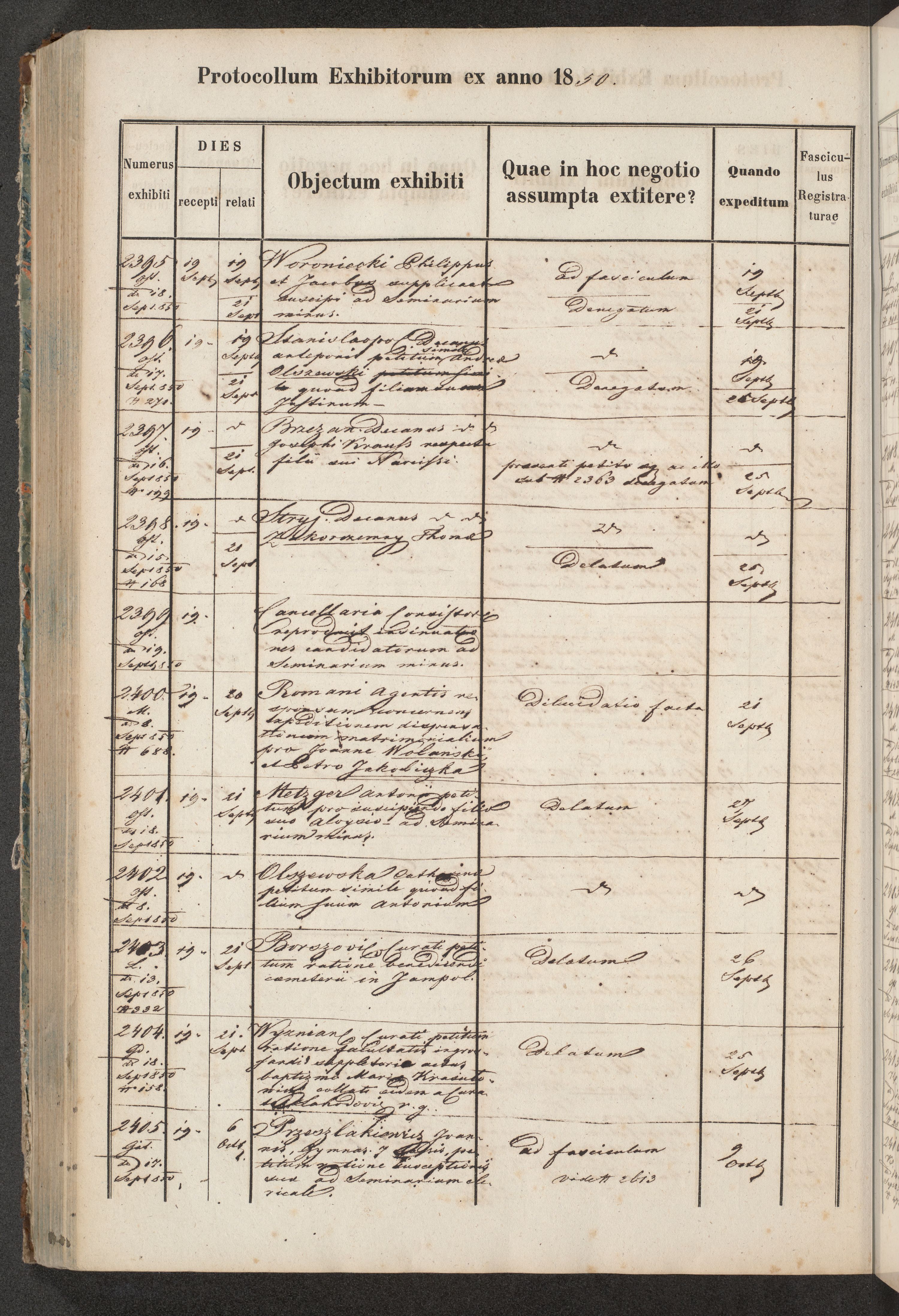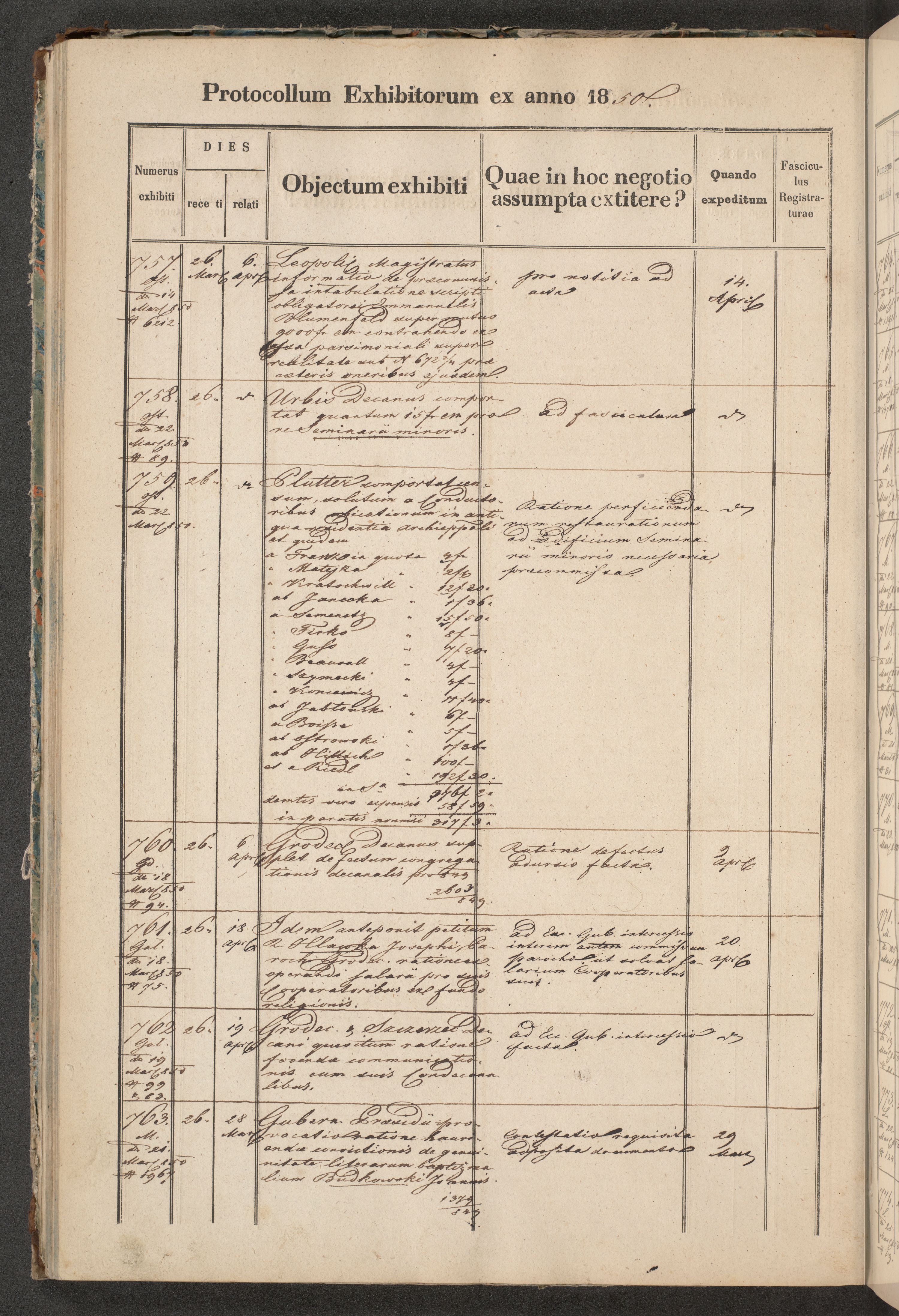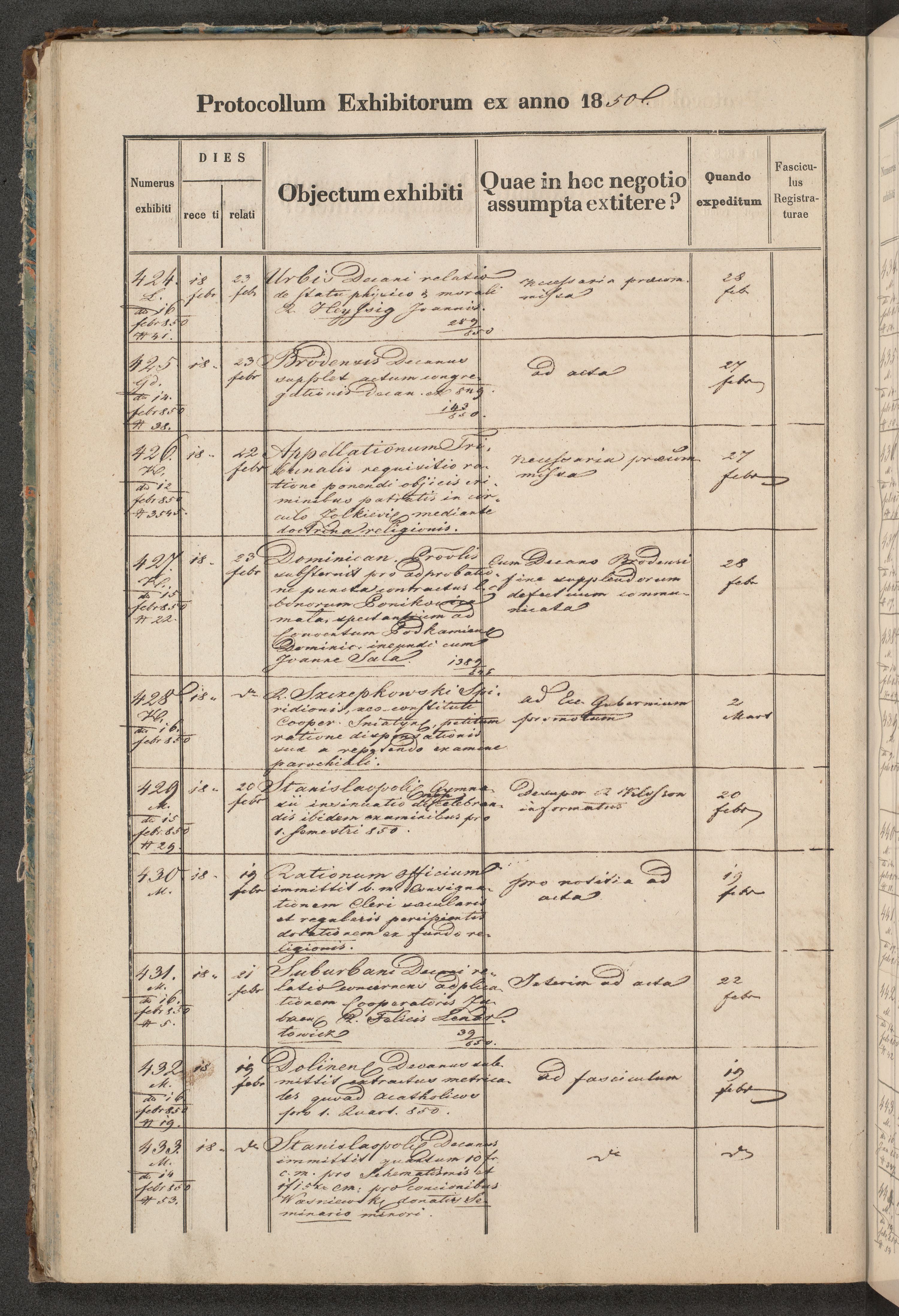 Protocollon exhibitorum in Ecclesiasticis ex anno 1850