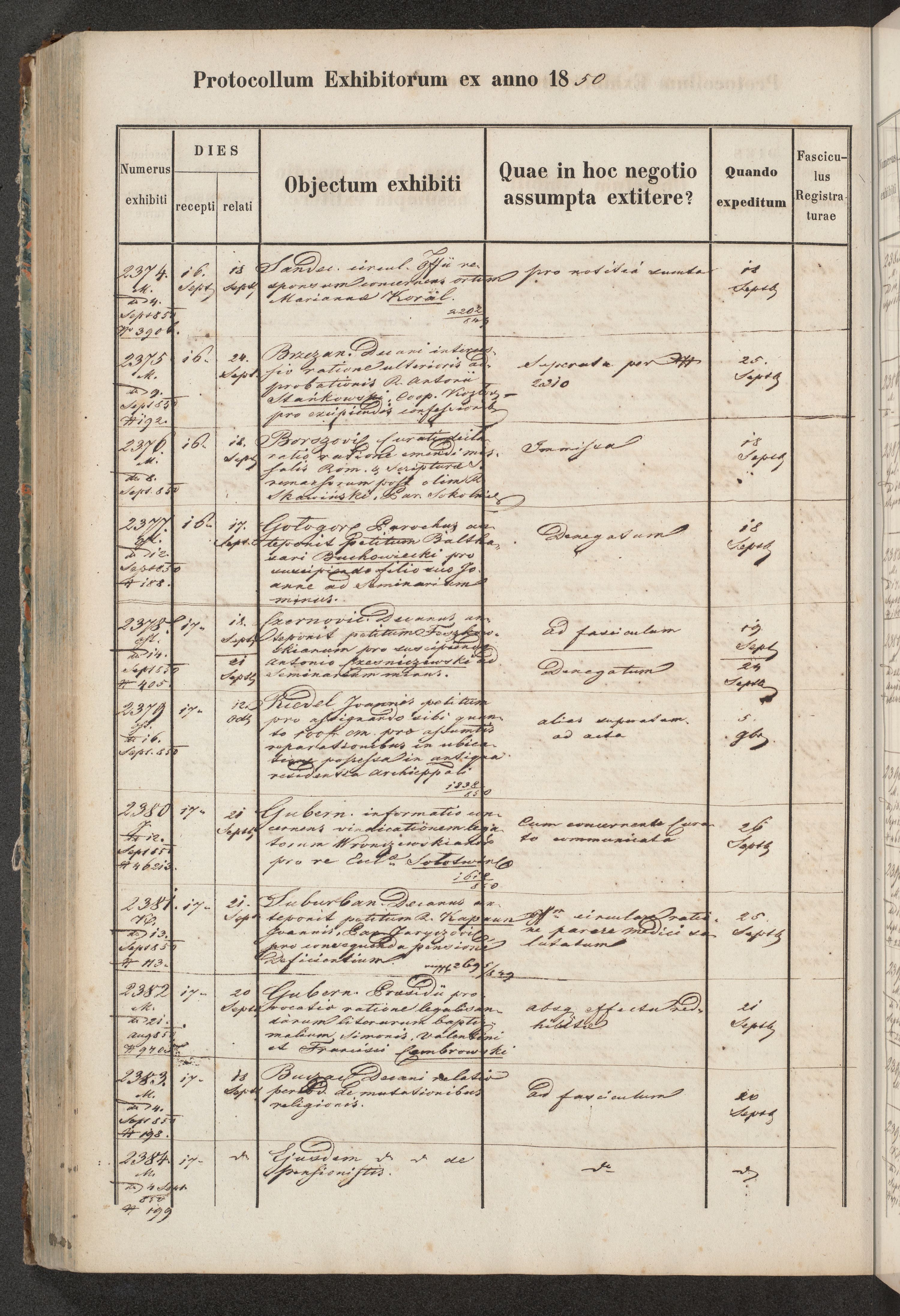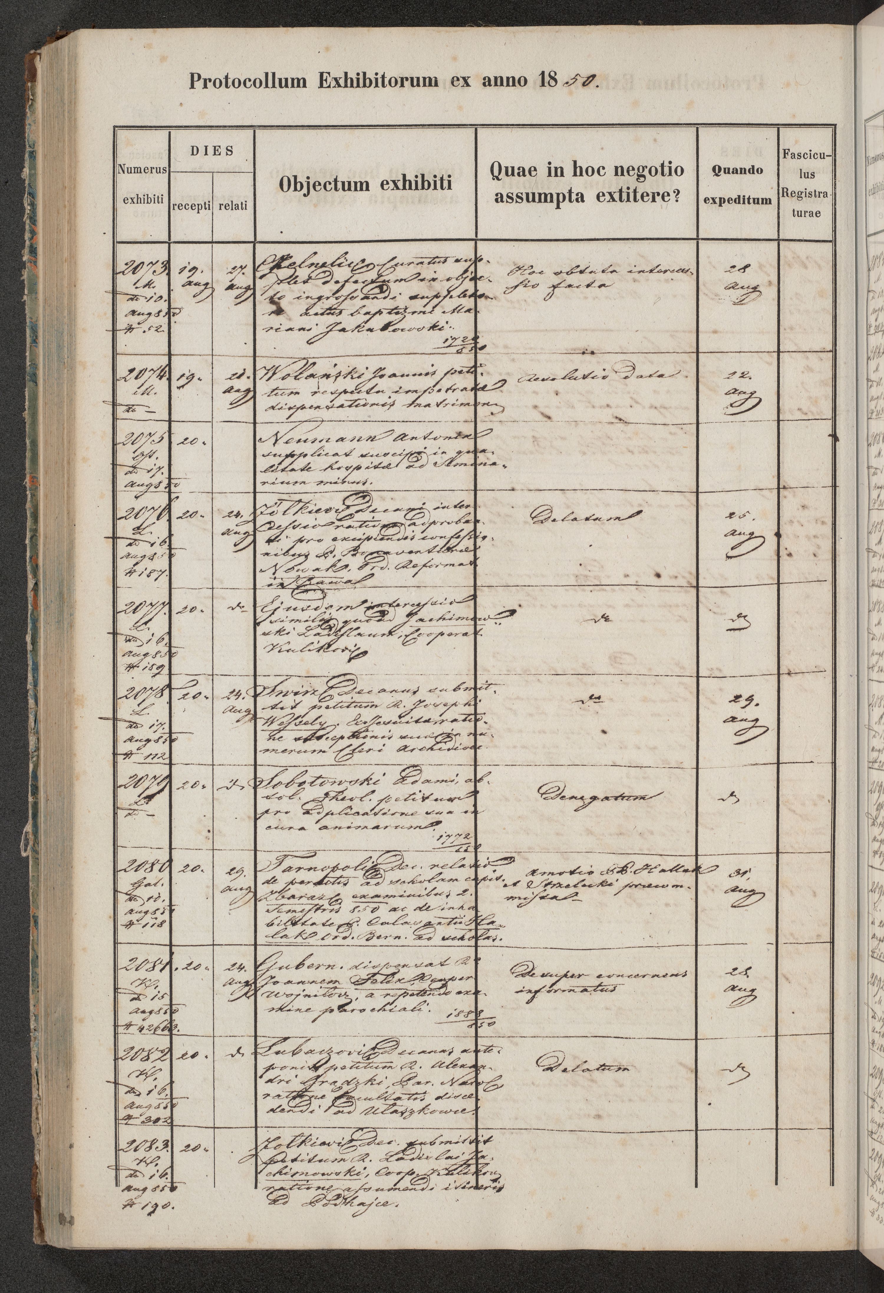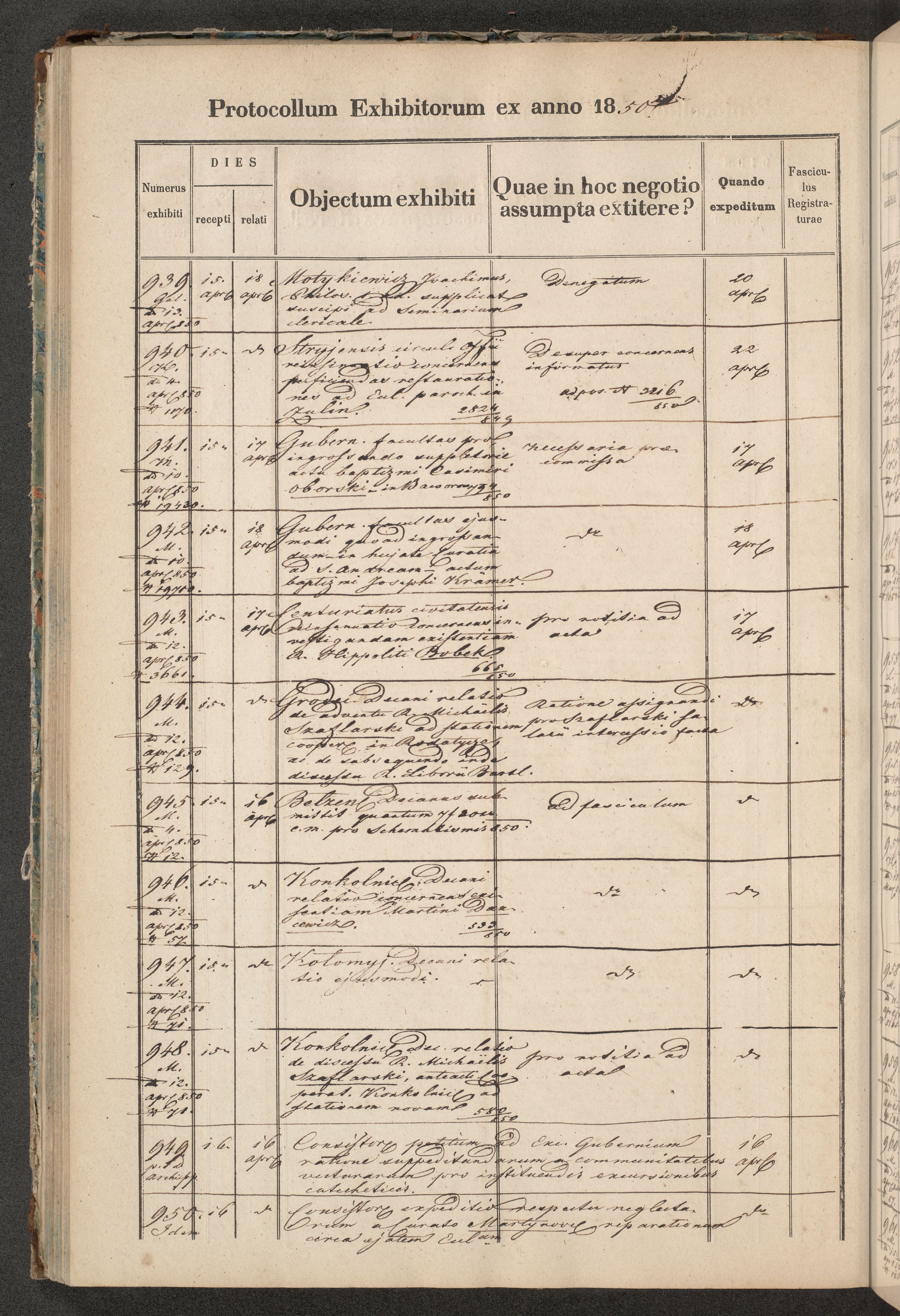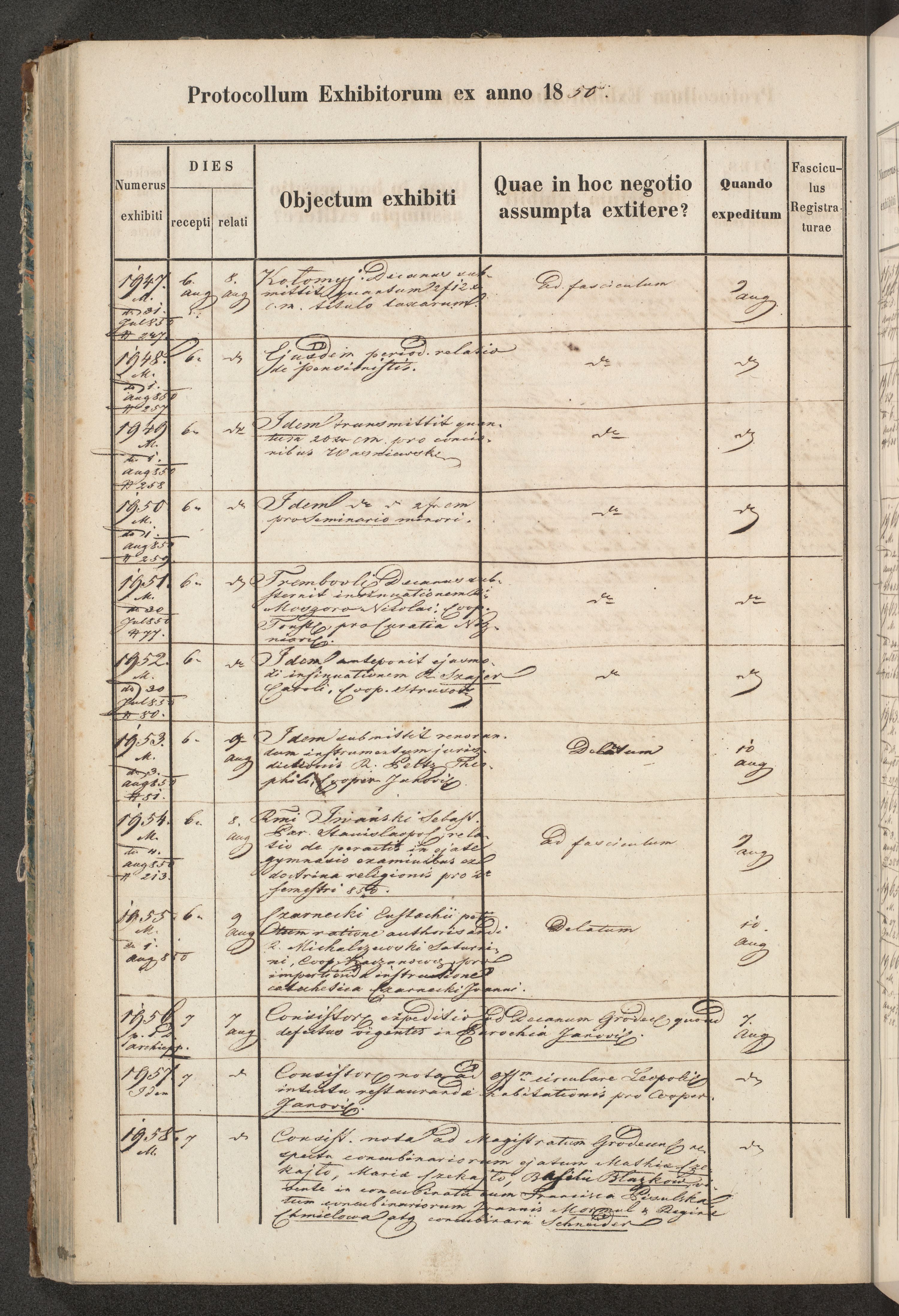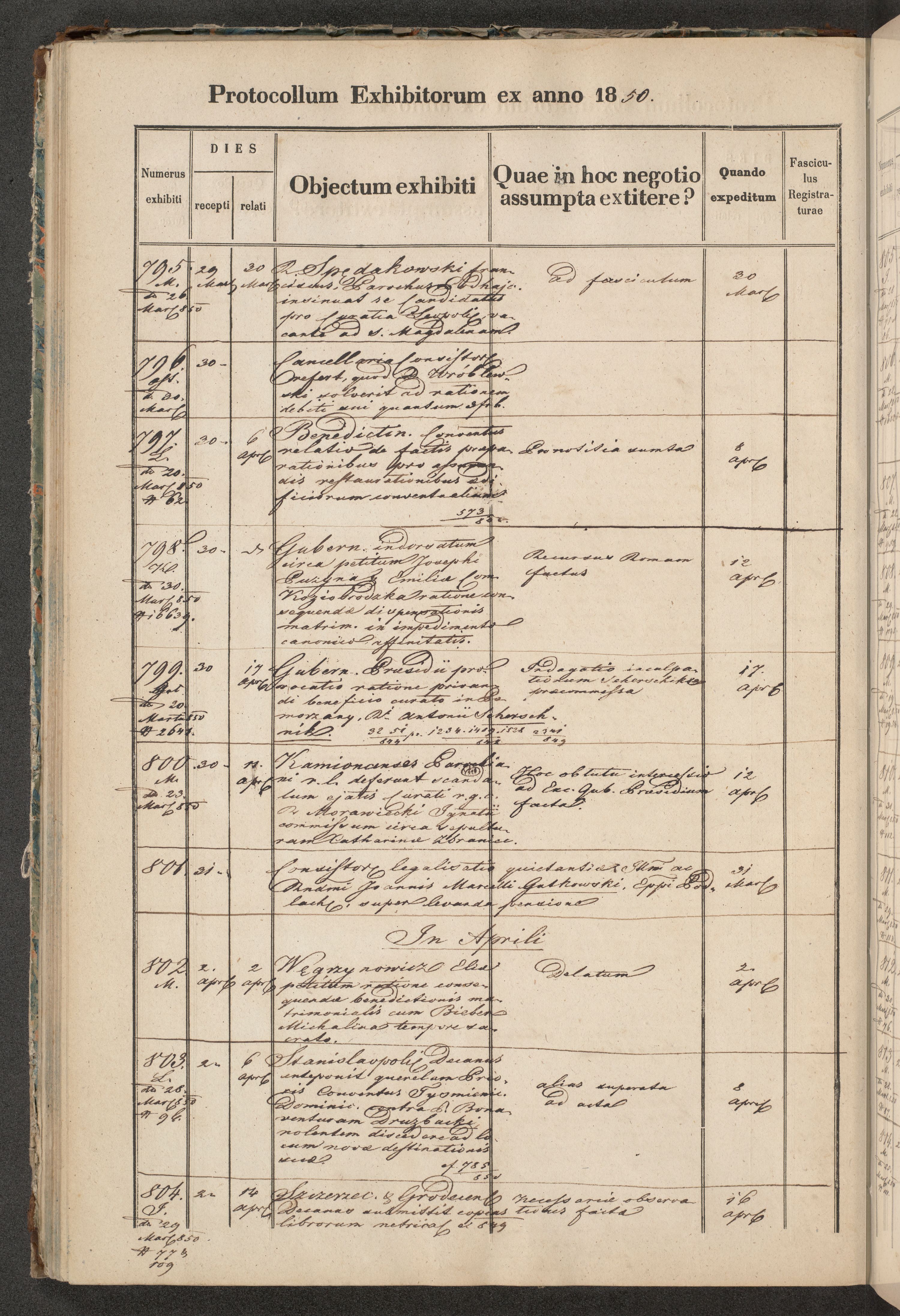 Protocollon exhibitorum in Ecclesiasticis ex anno 1850