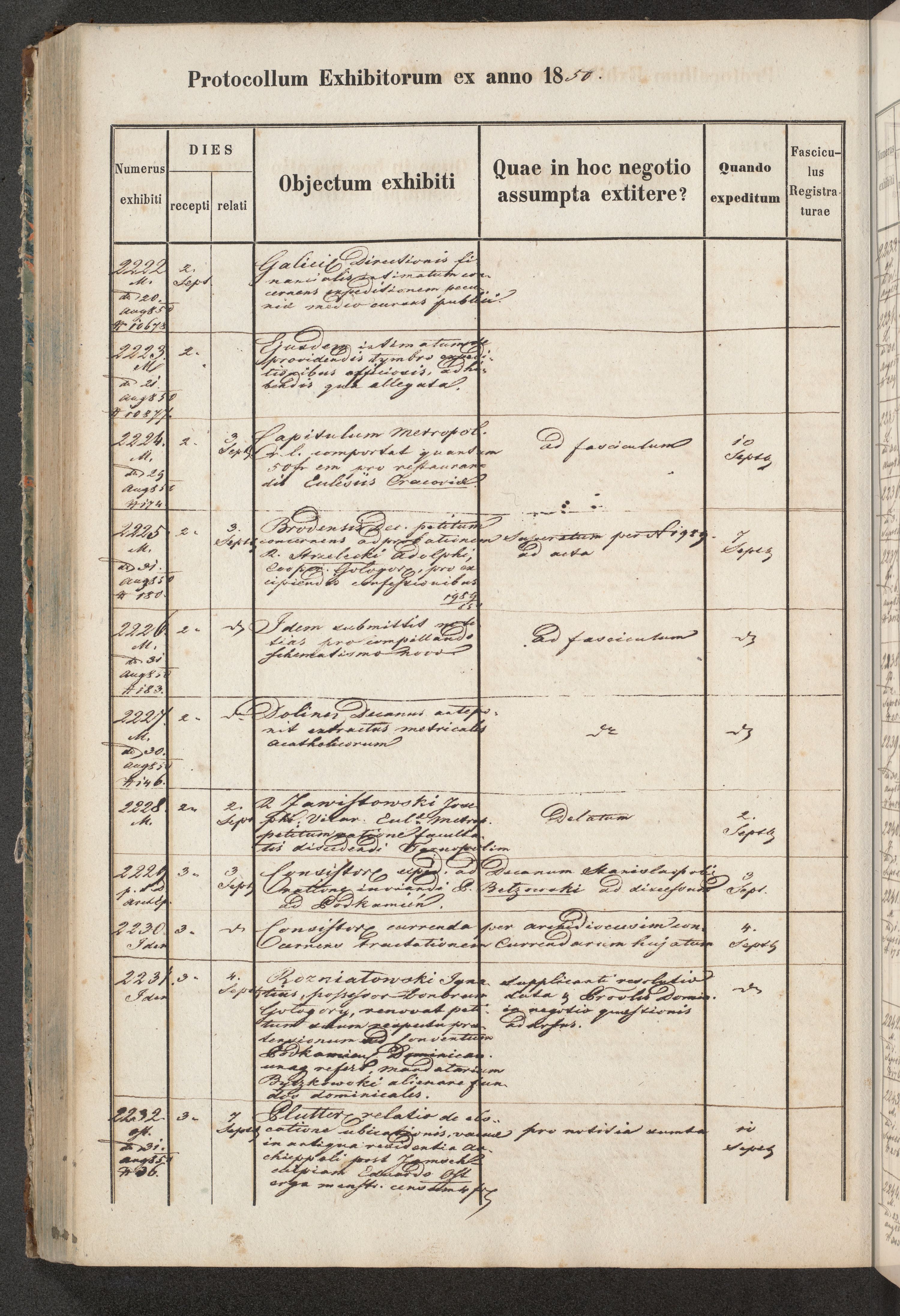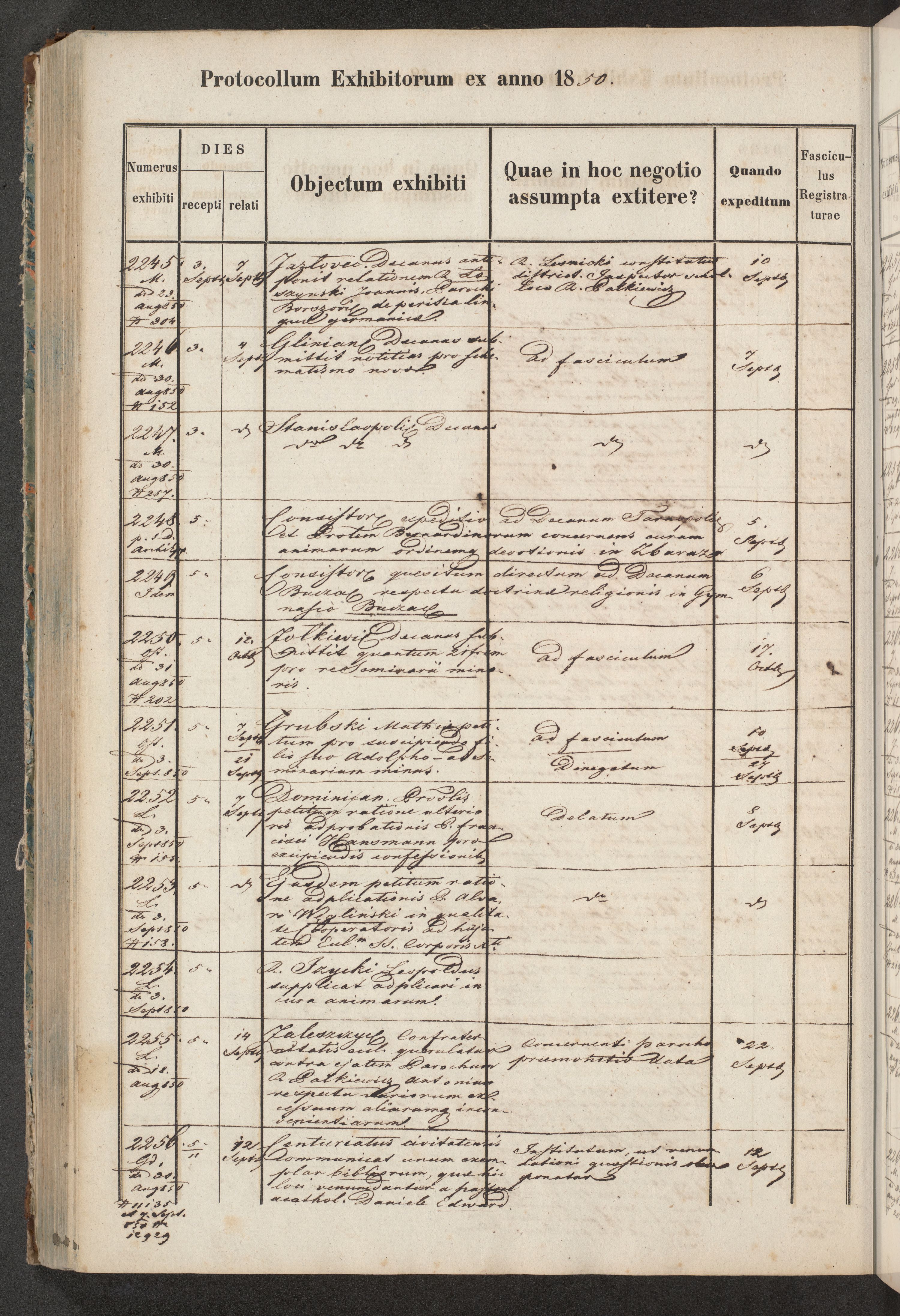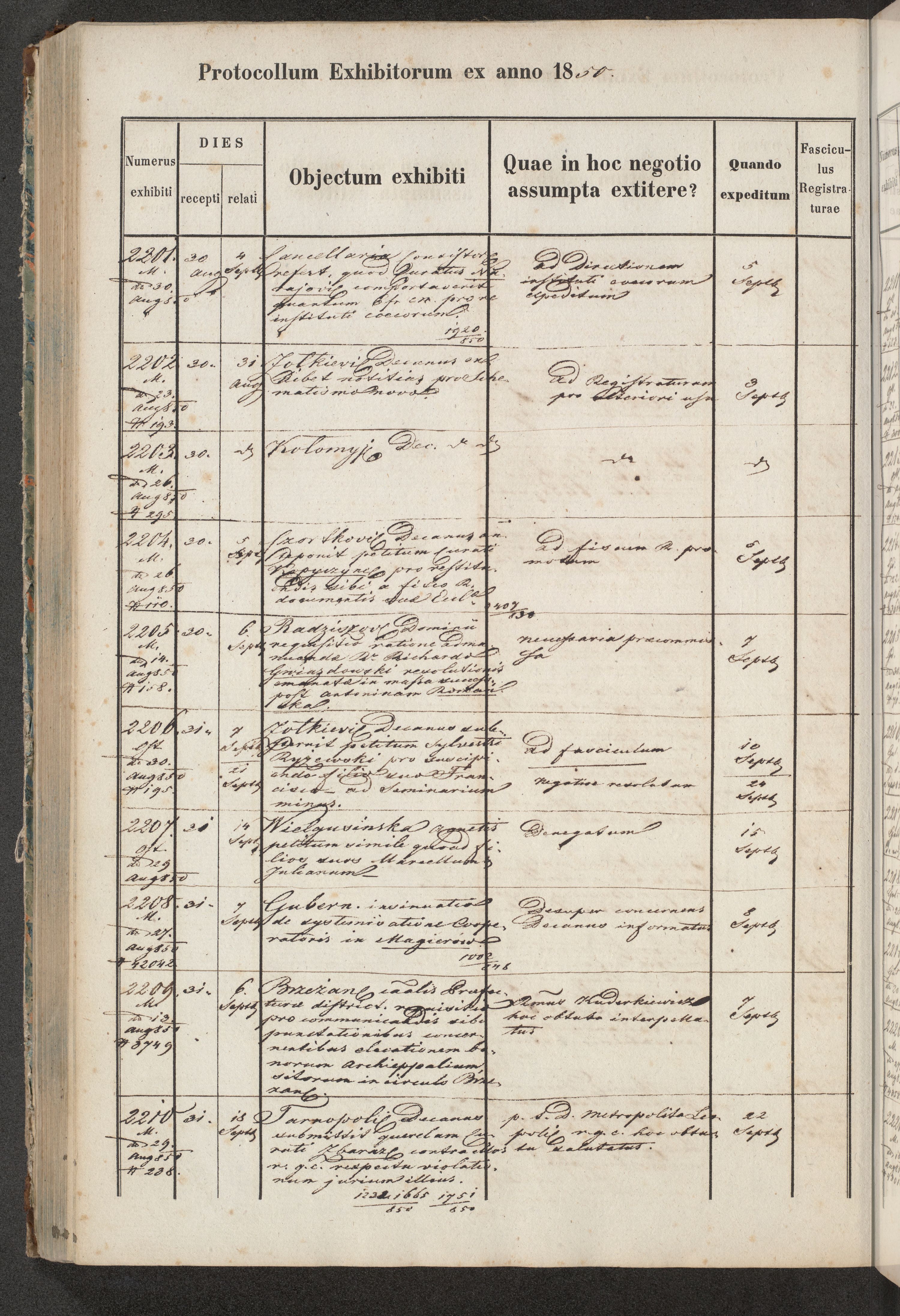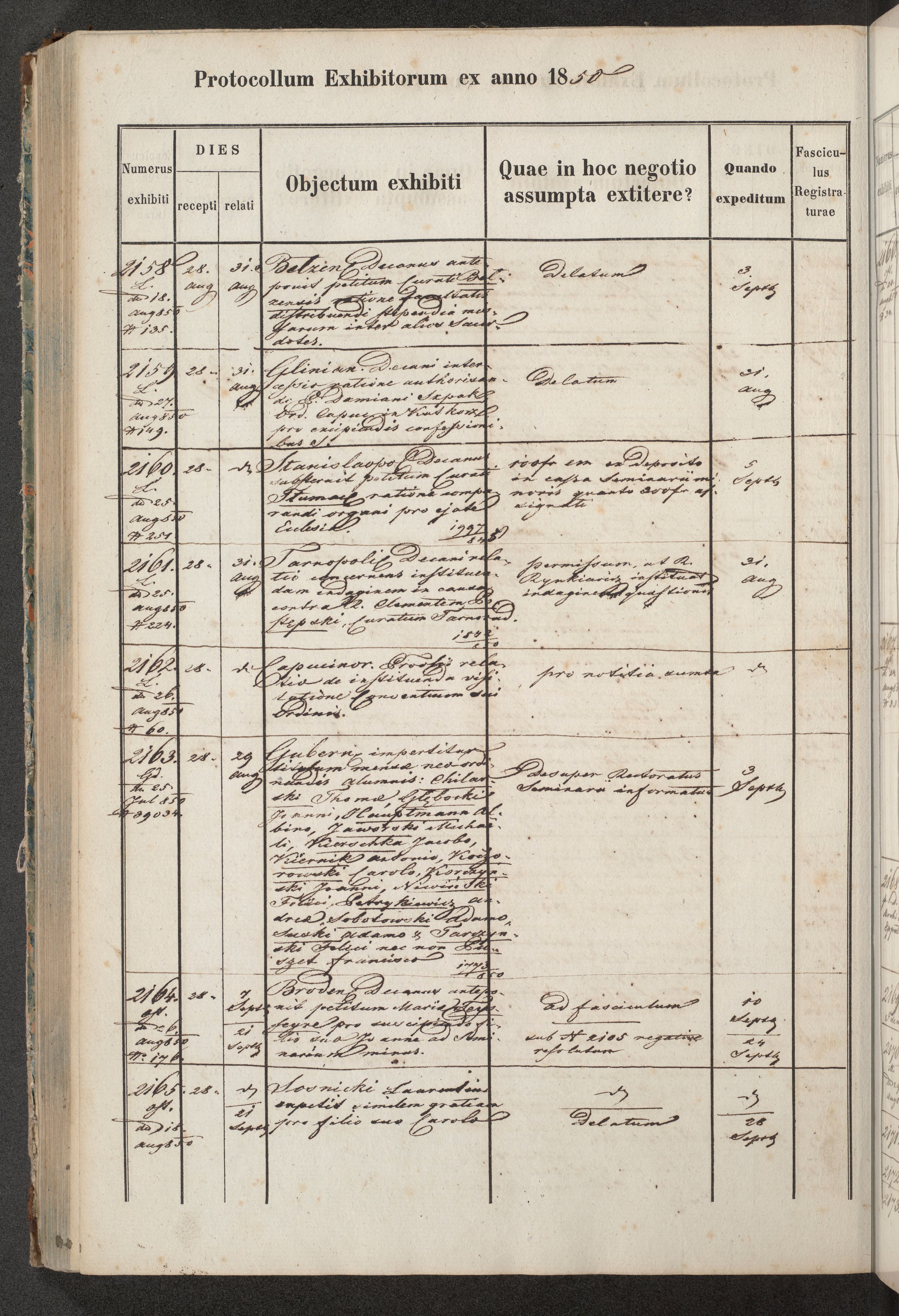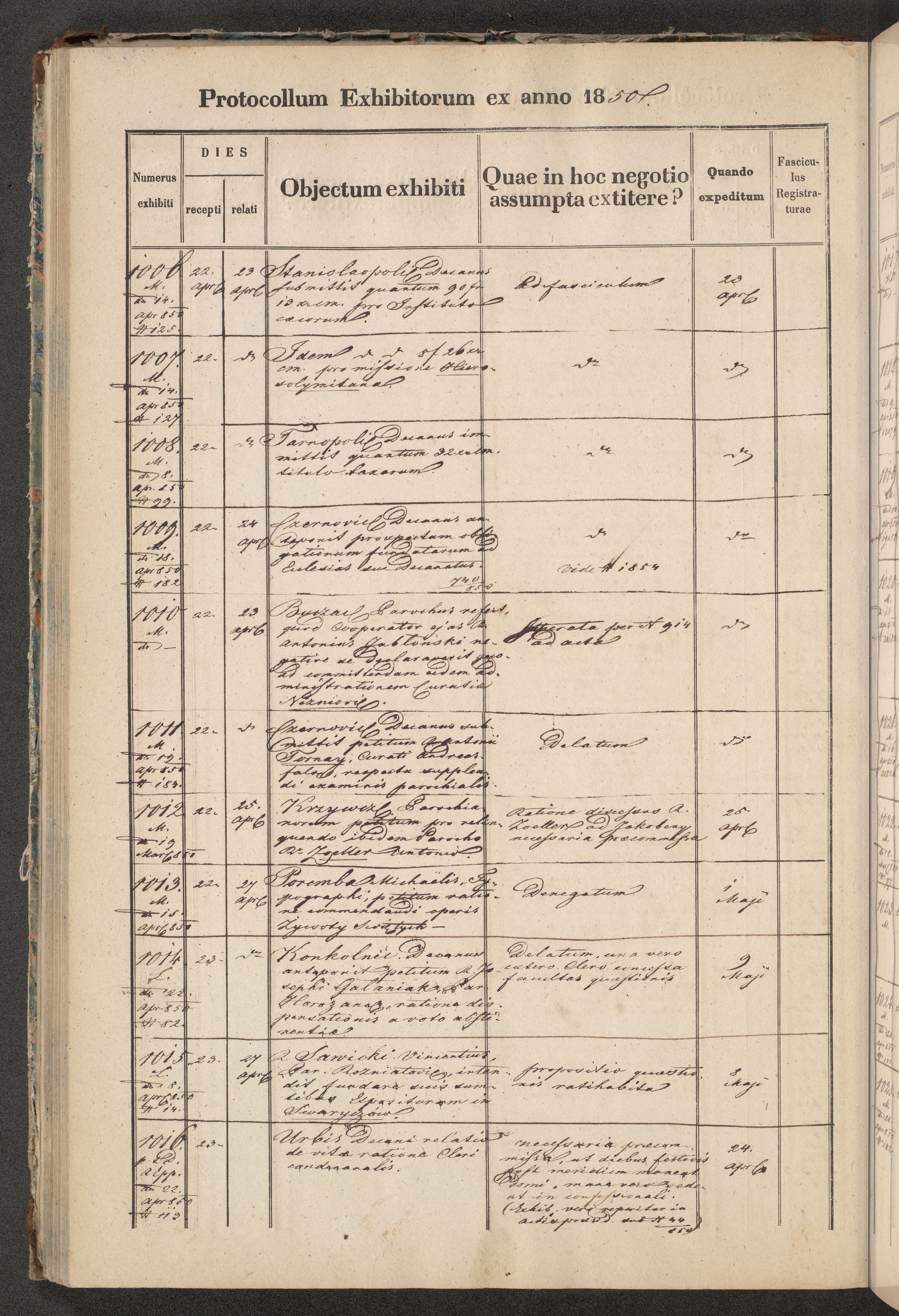 Protocollon exhibitorum in Ecclesiasticis ex anno 1850