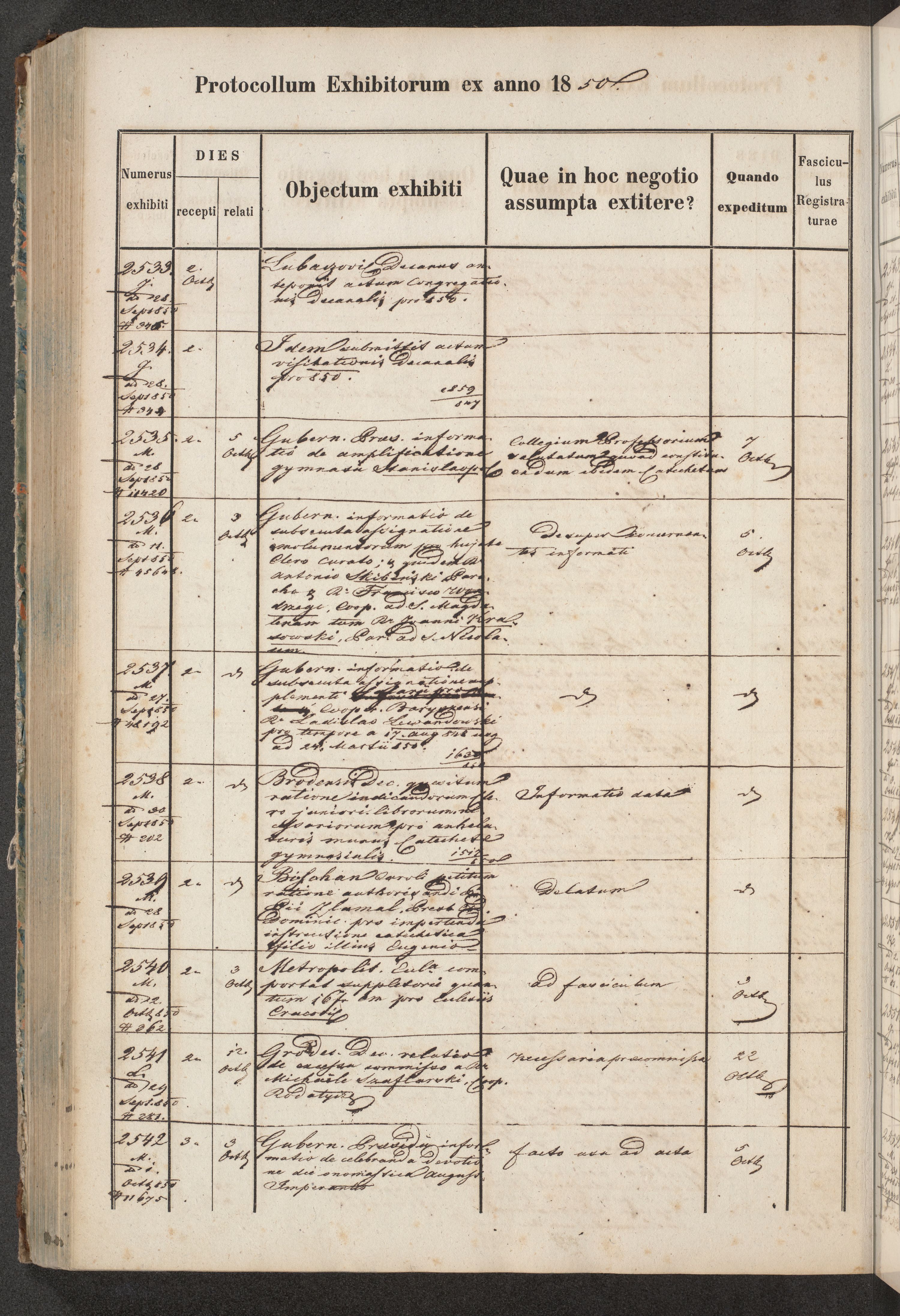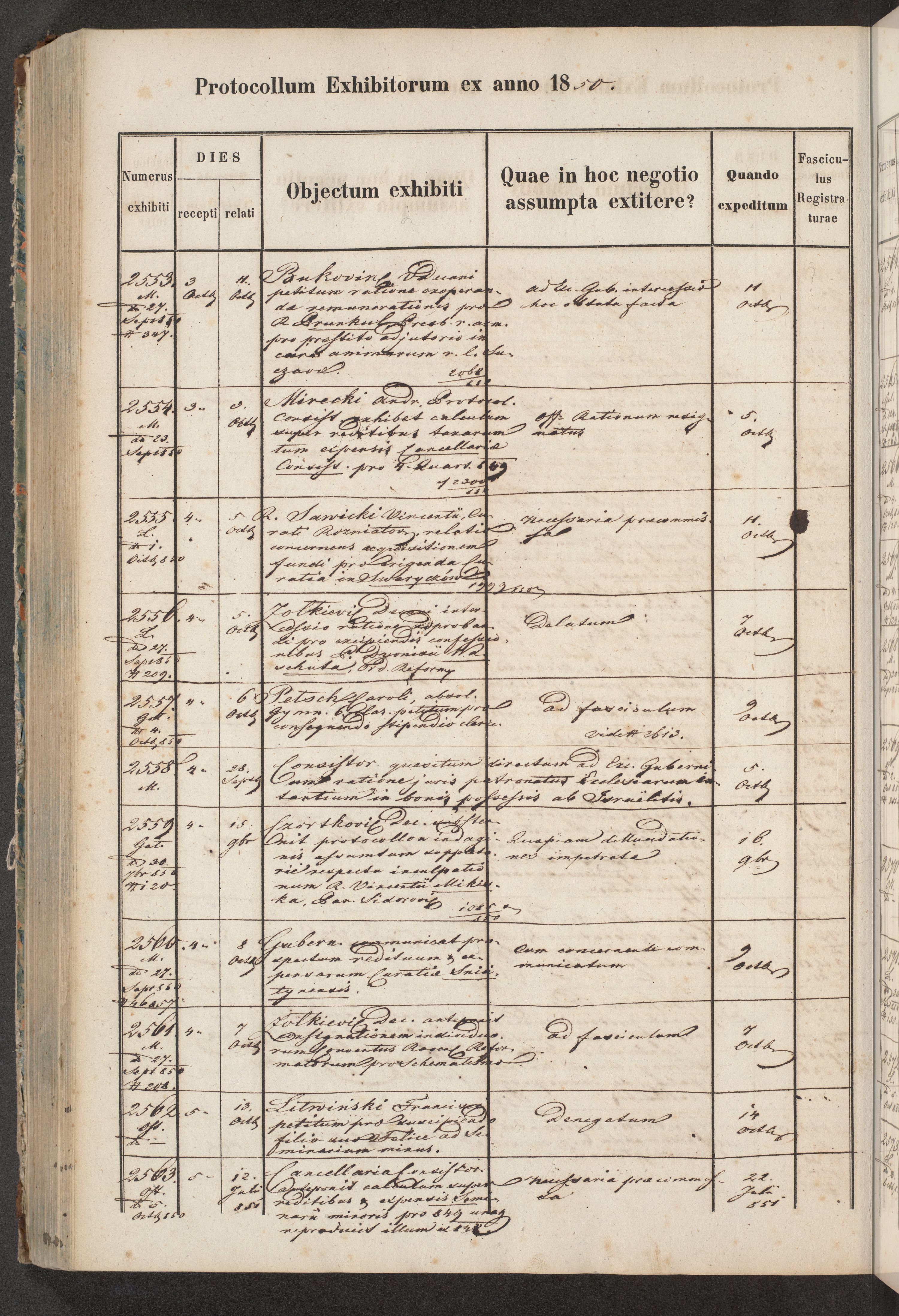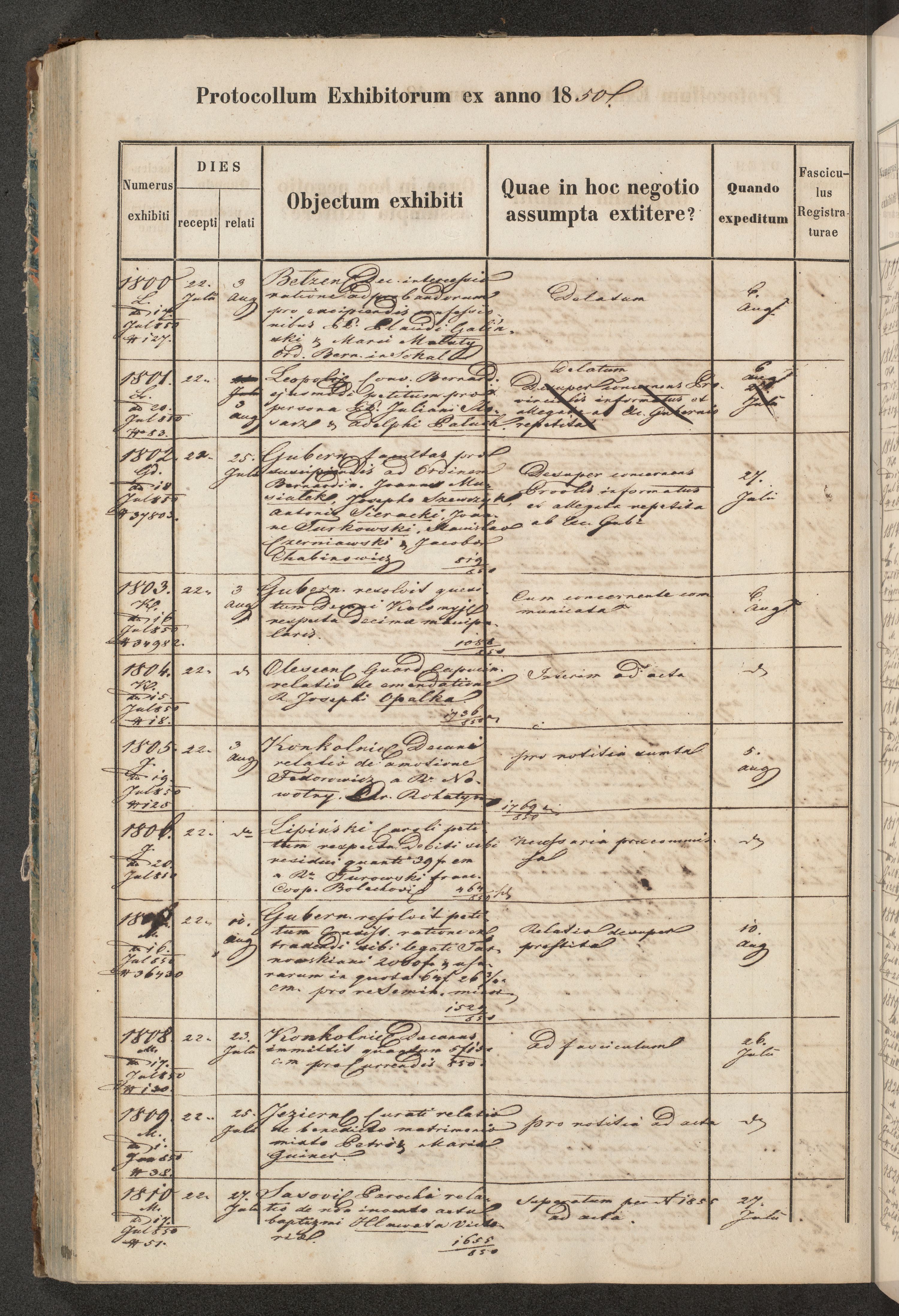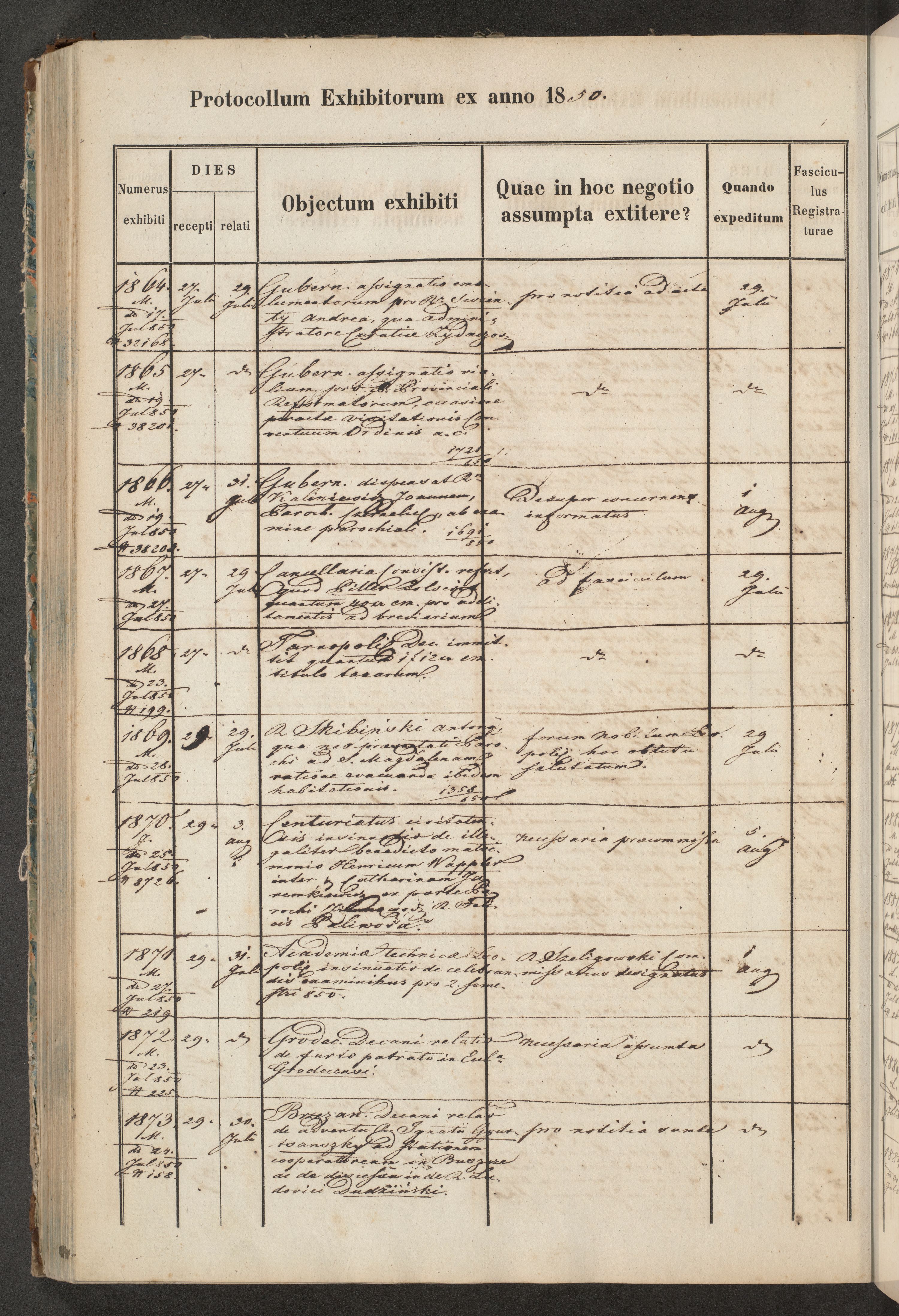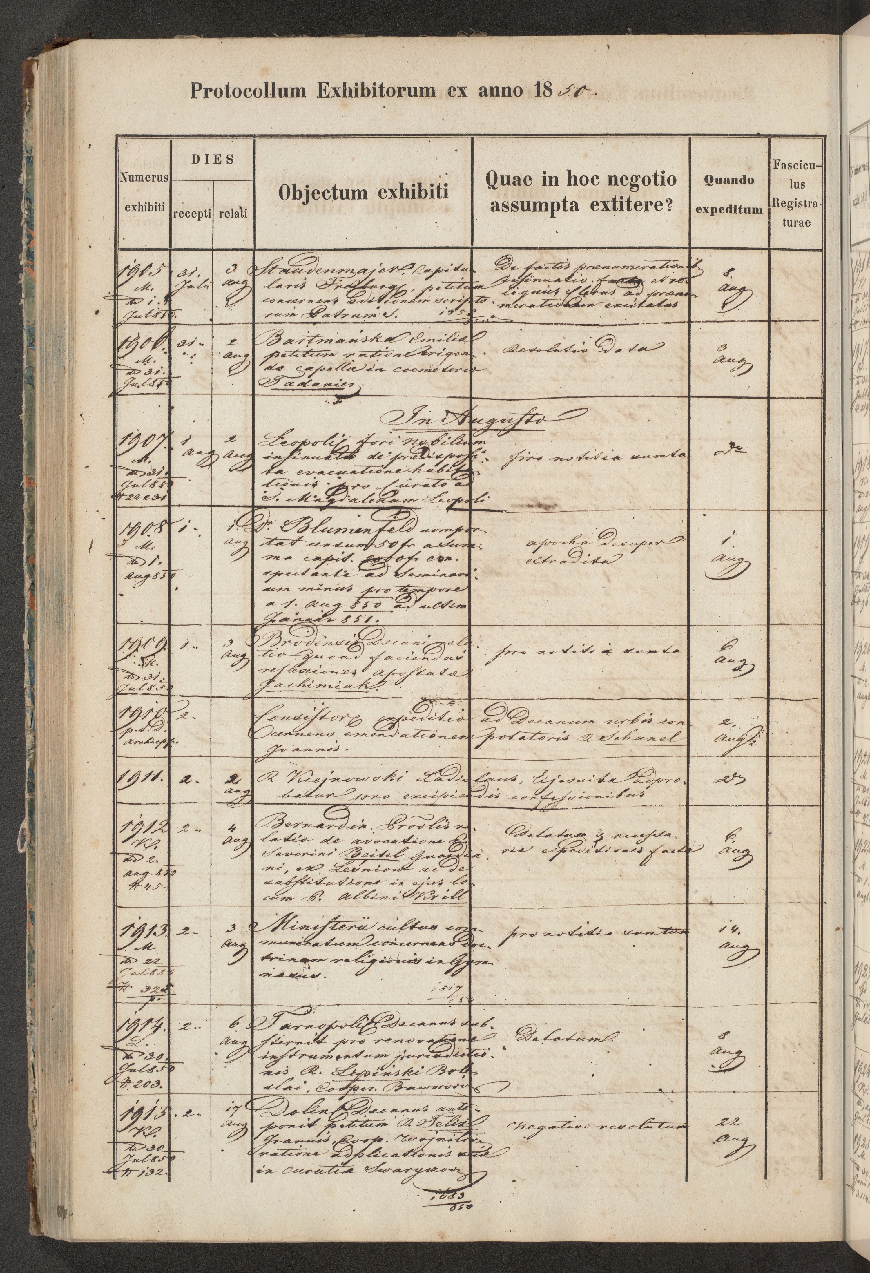 Protocollon exhibitorum in Ecclesiasticis ex anno 1850