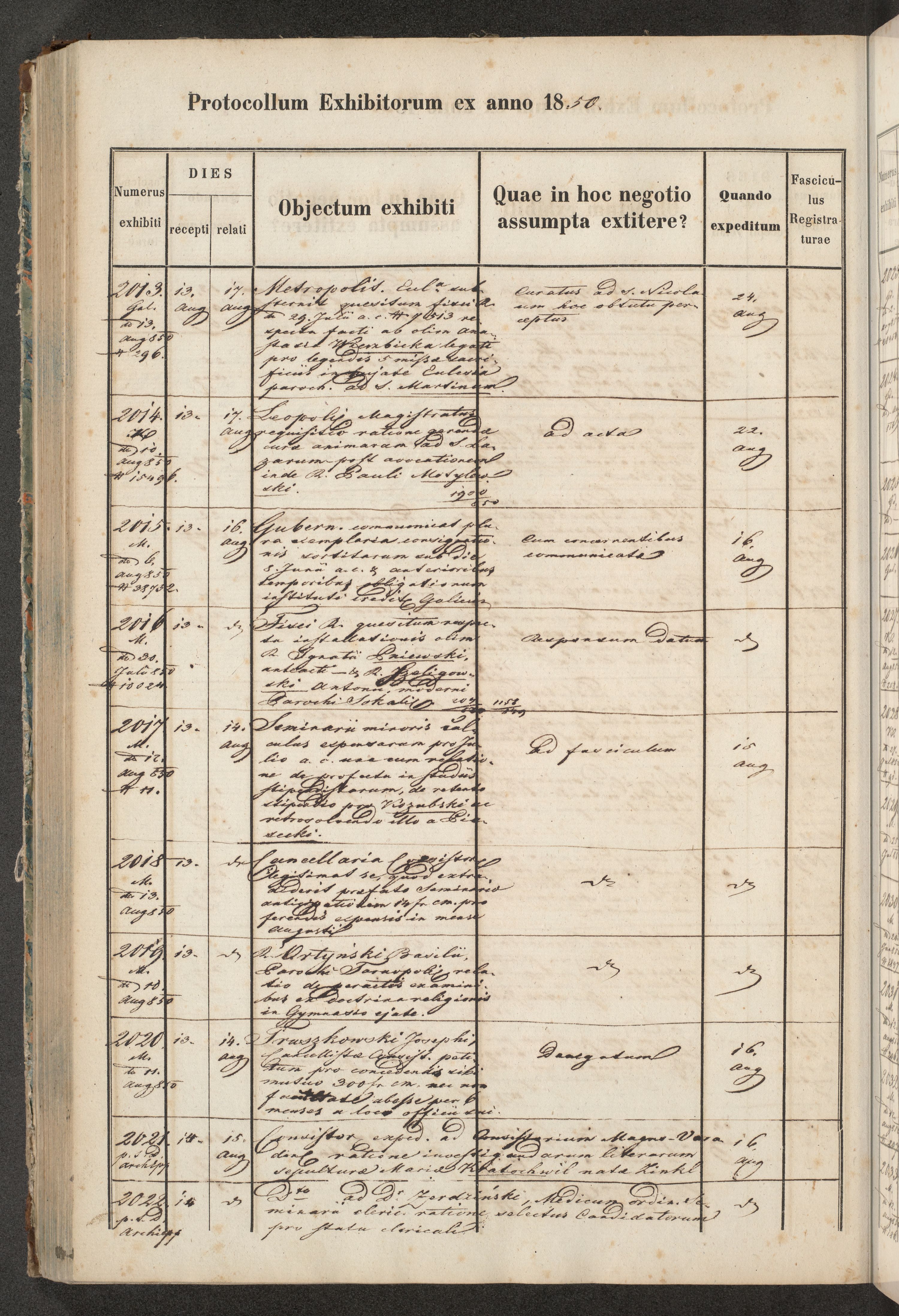 Księga protokołu podawczego konsystorza metropolitalnego obrządku łacińskiego we Lwowie za rok 1850