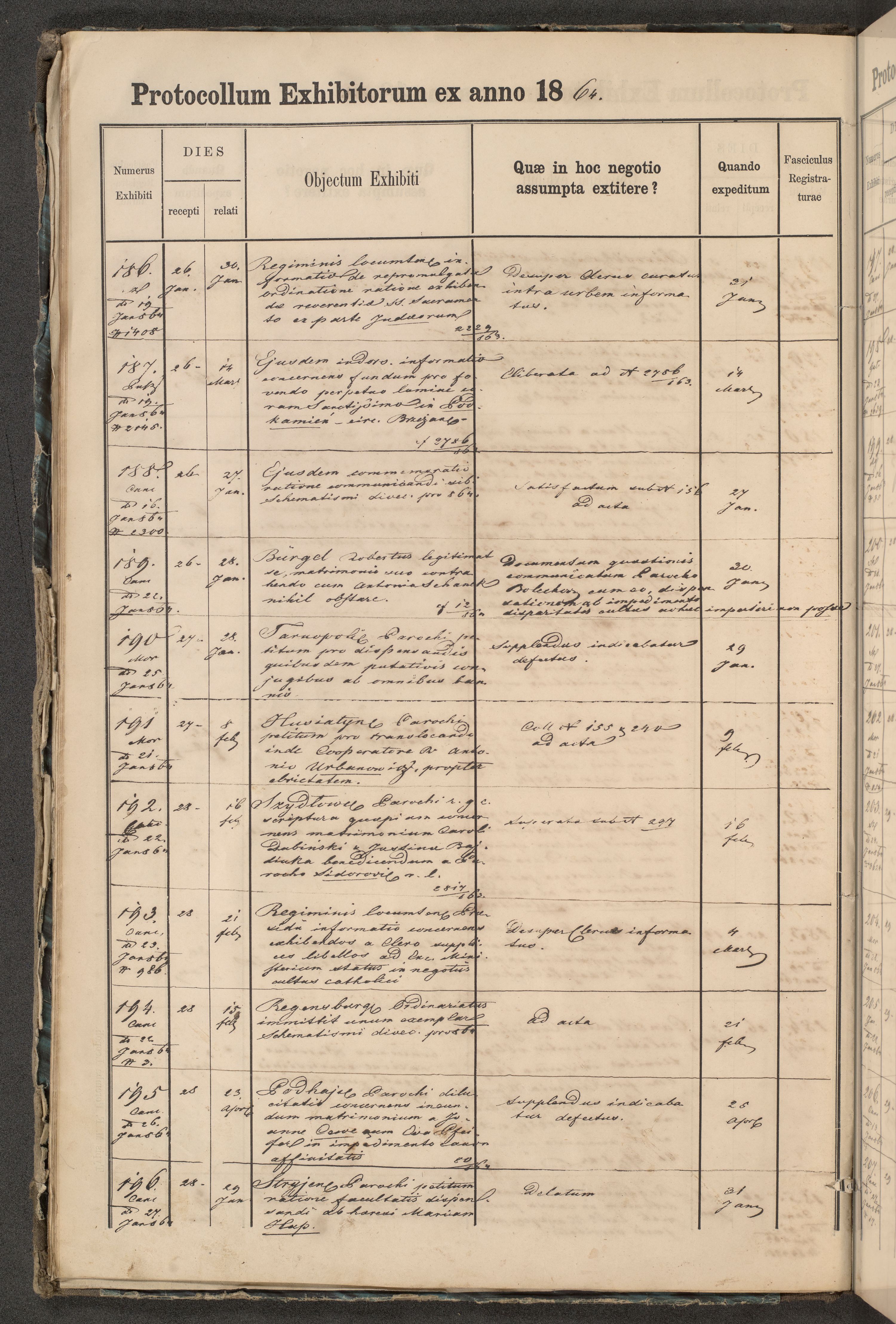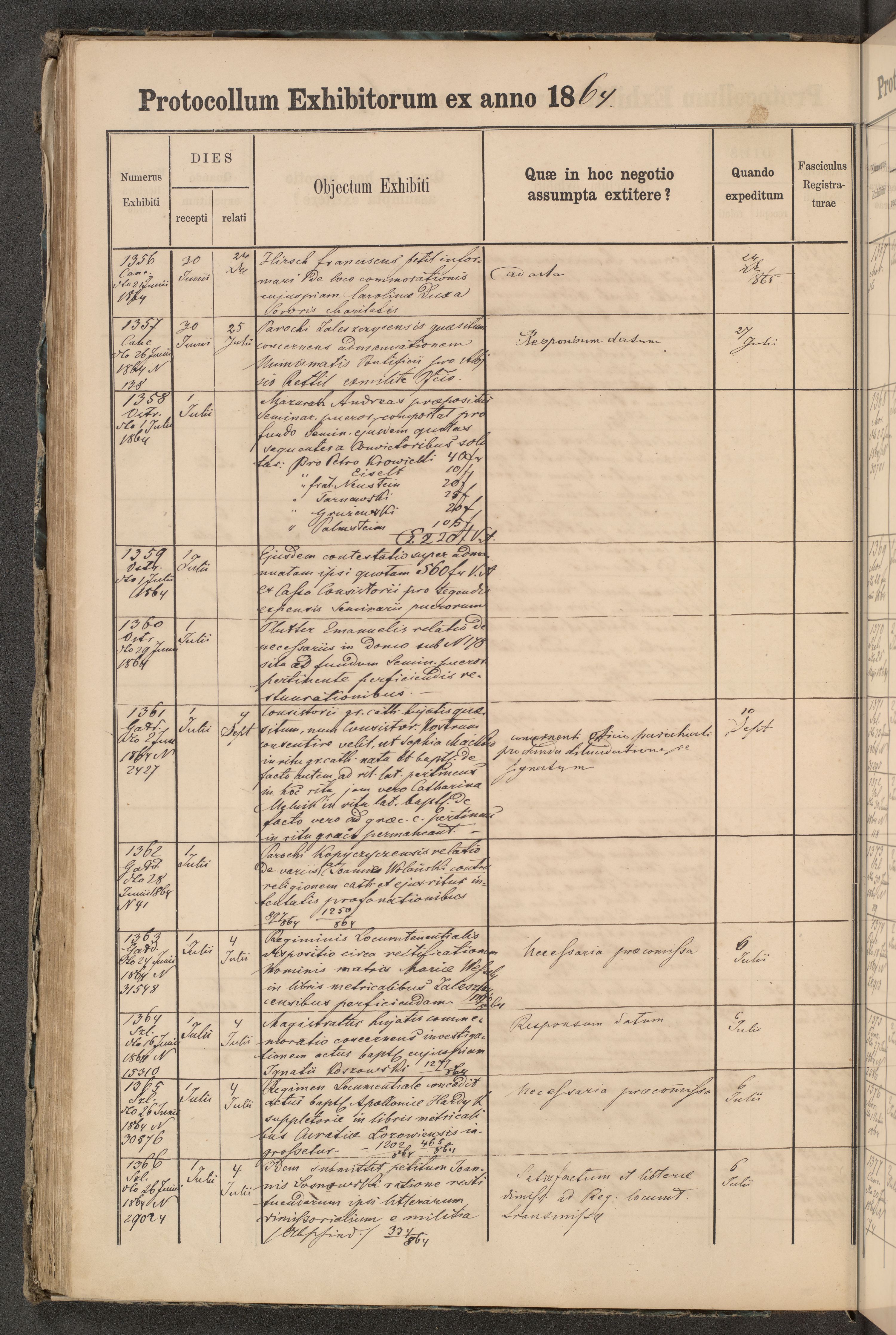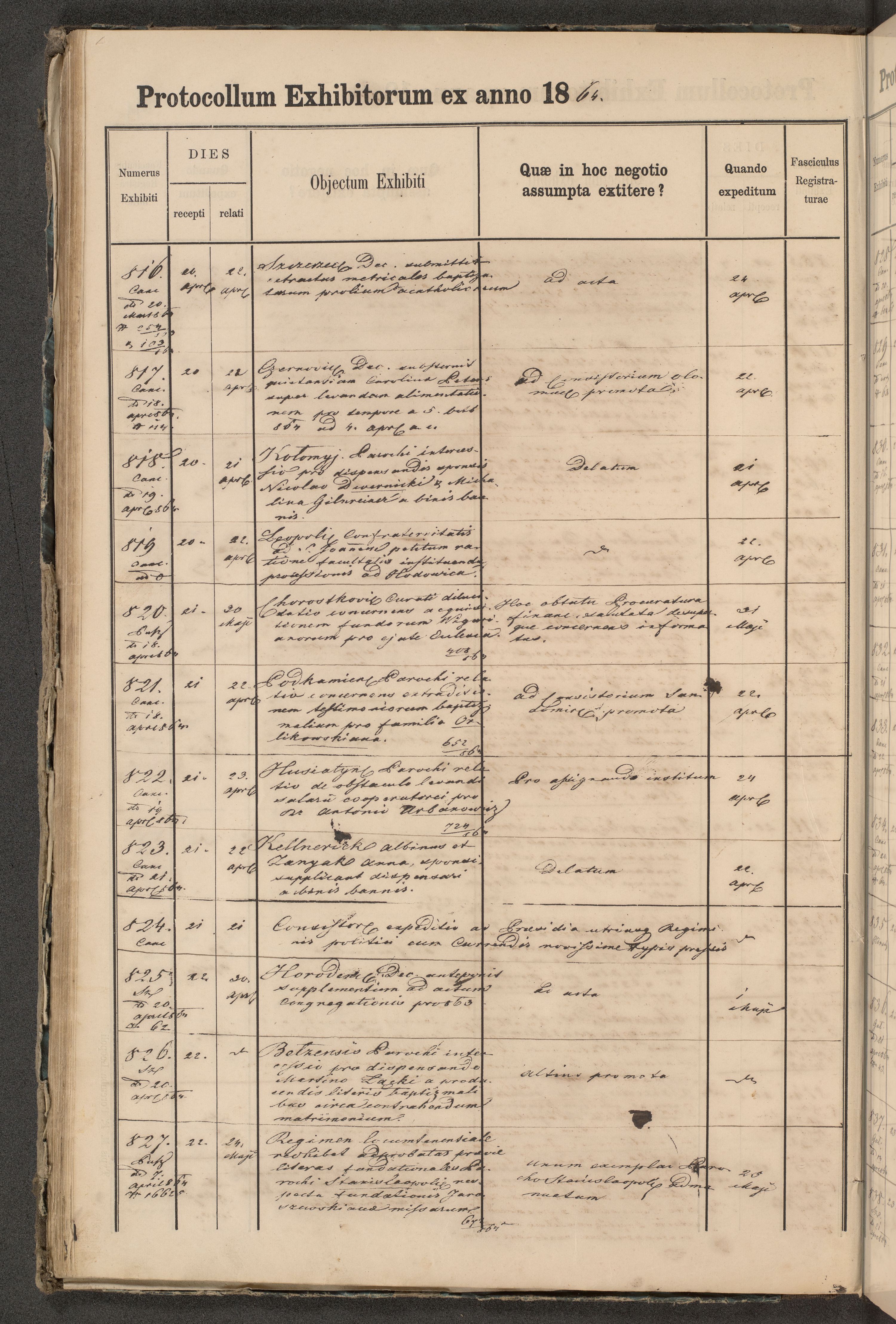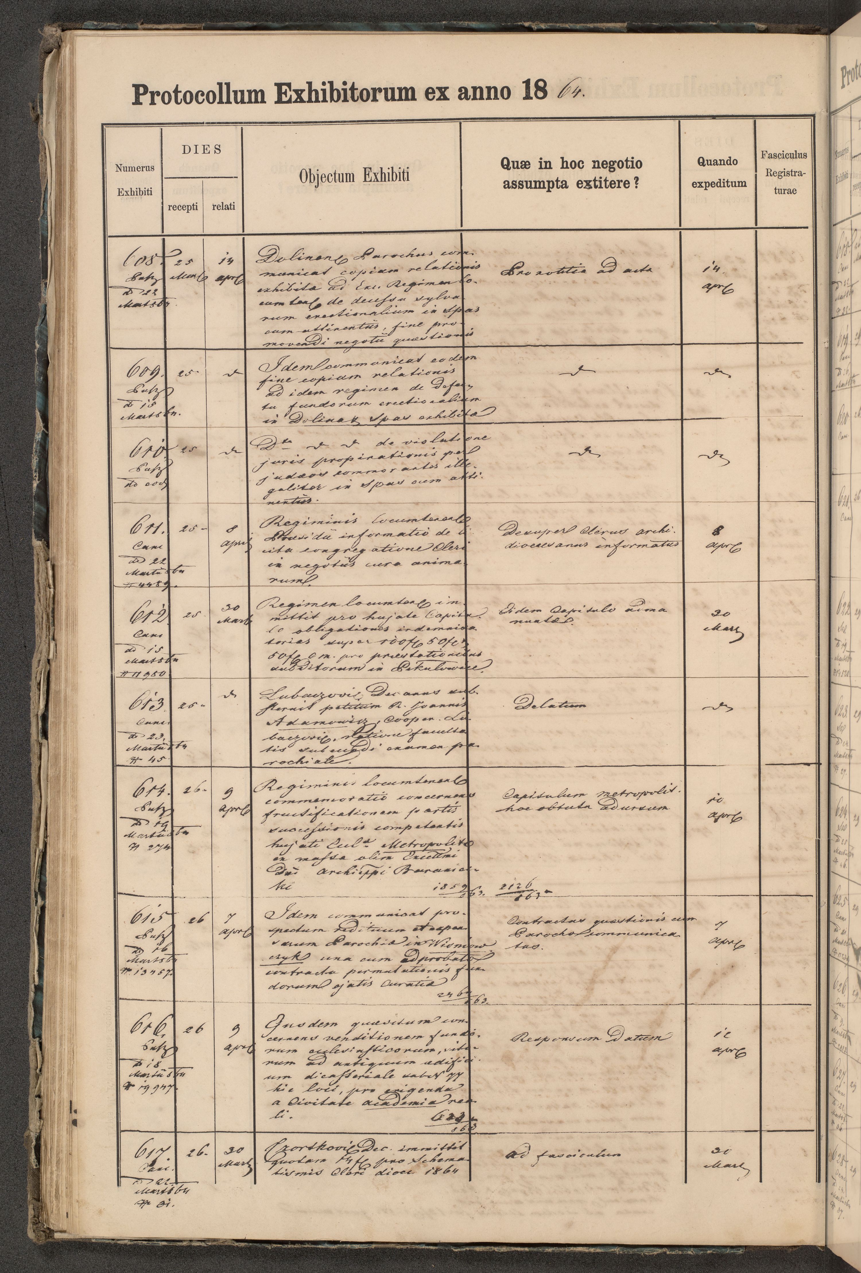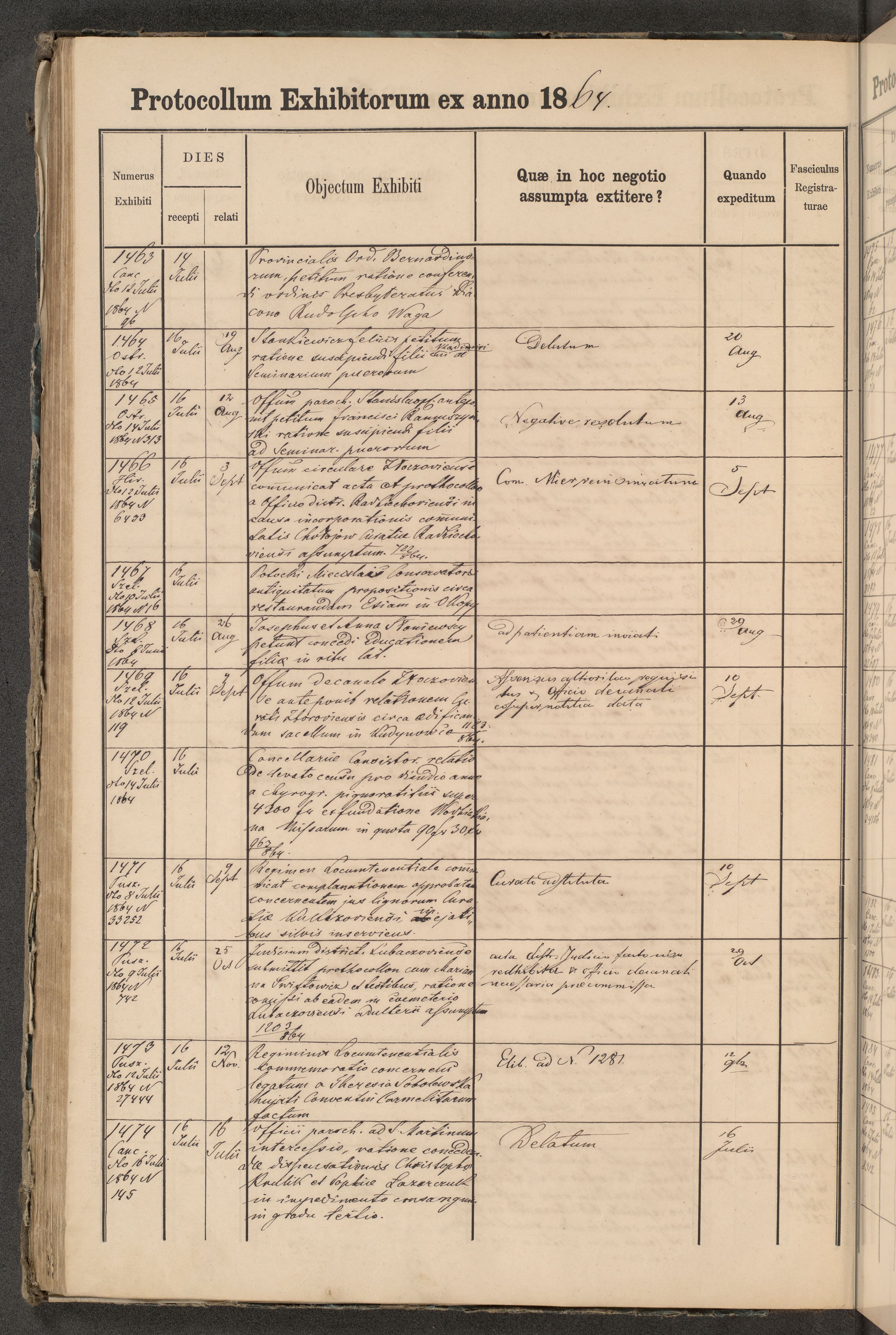 Protocollon exhibitorum in Ecclesiasticis ex anno 1864