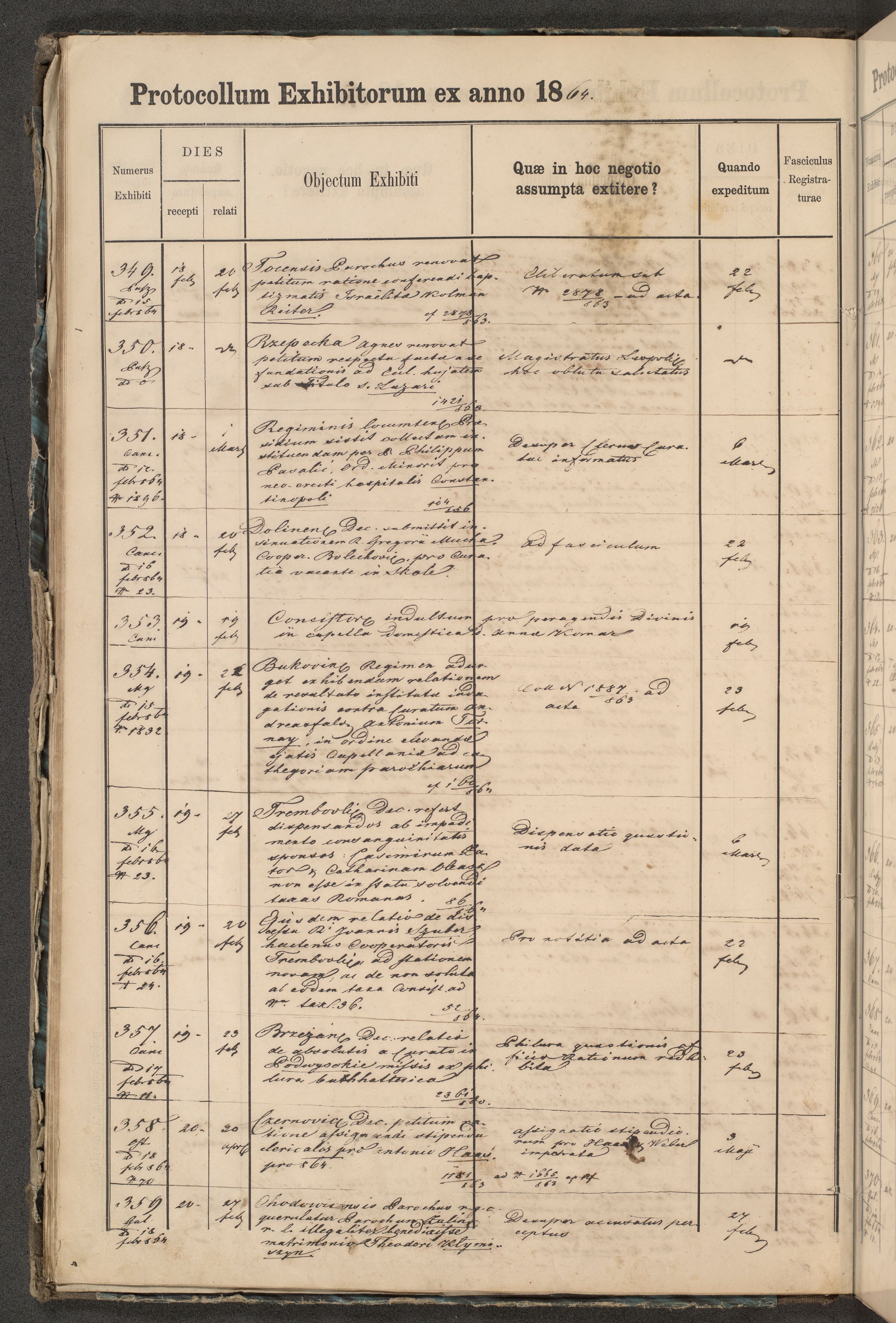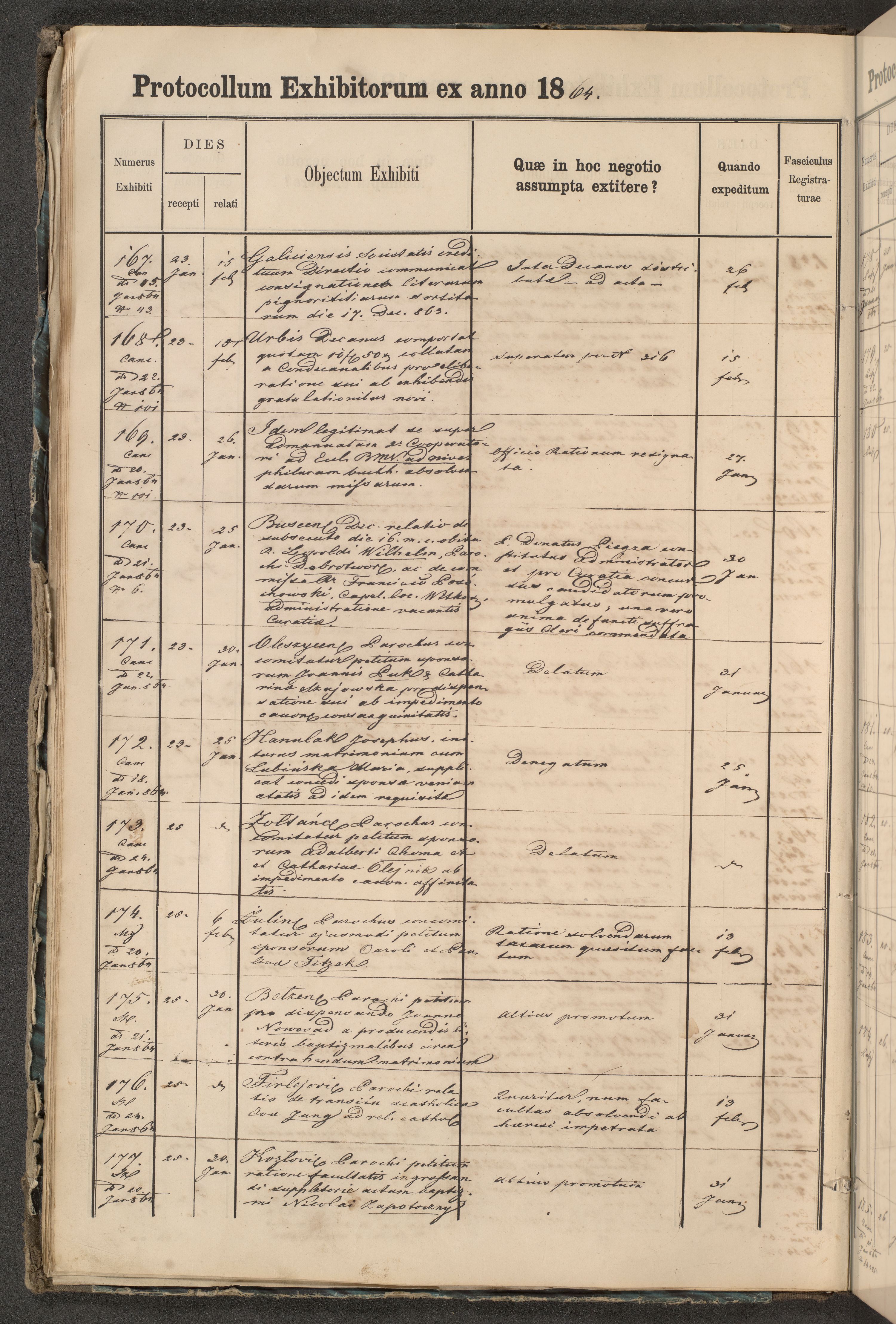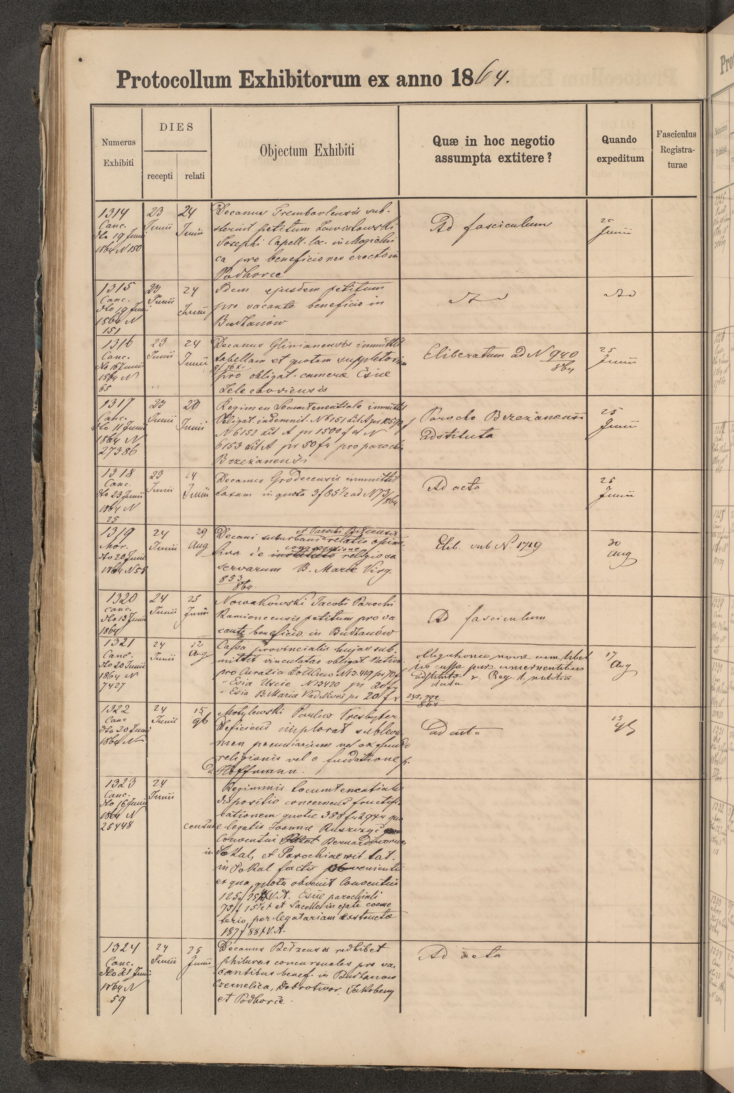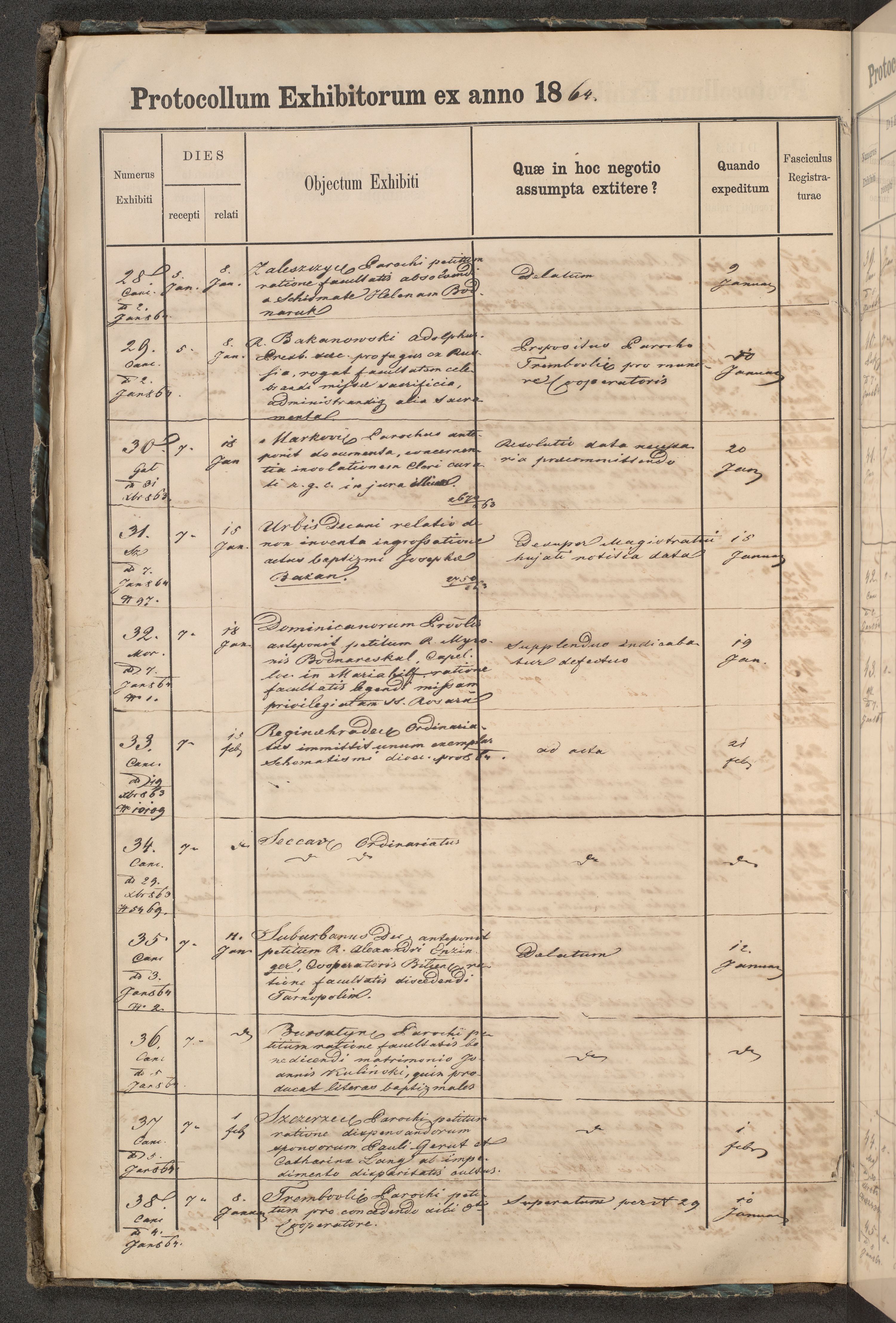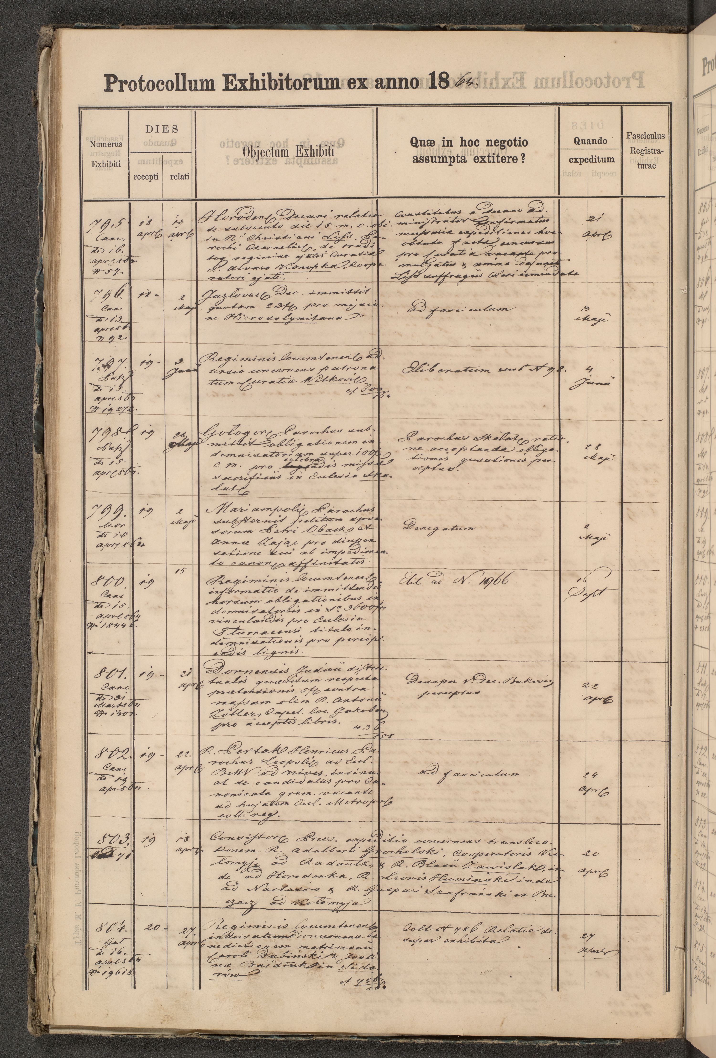 Protocollon exhibitorum in Ecclesiasticis ex anno 1864