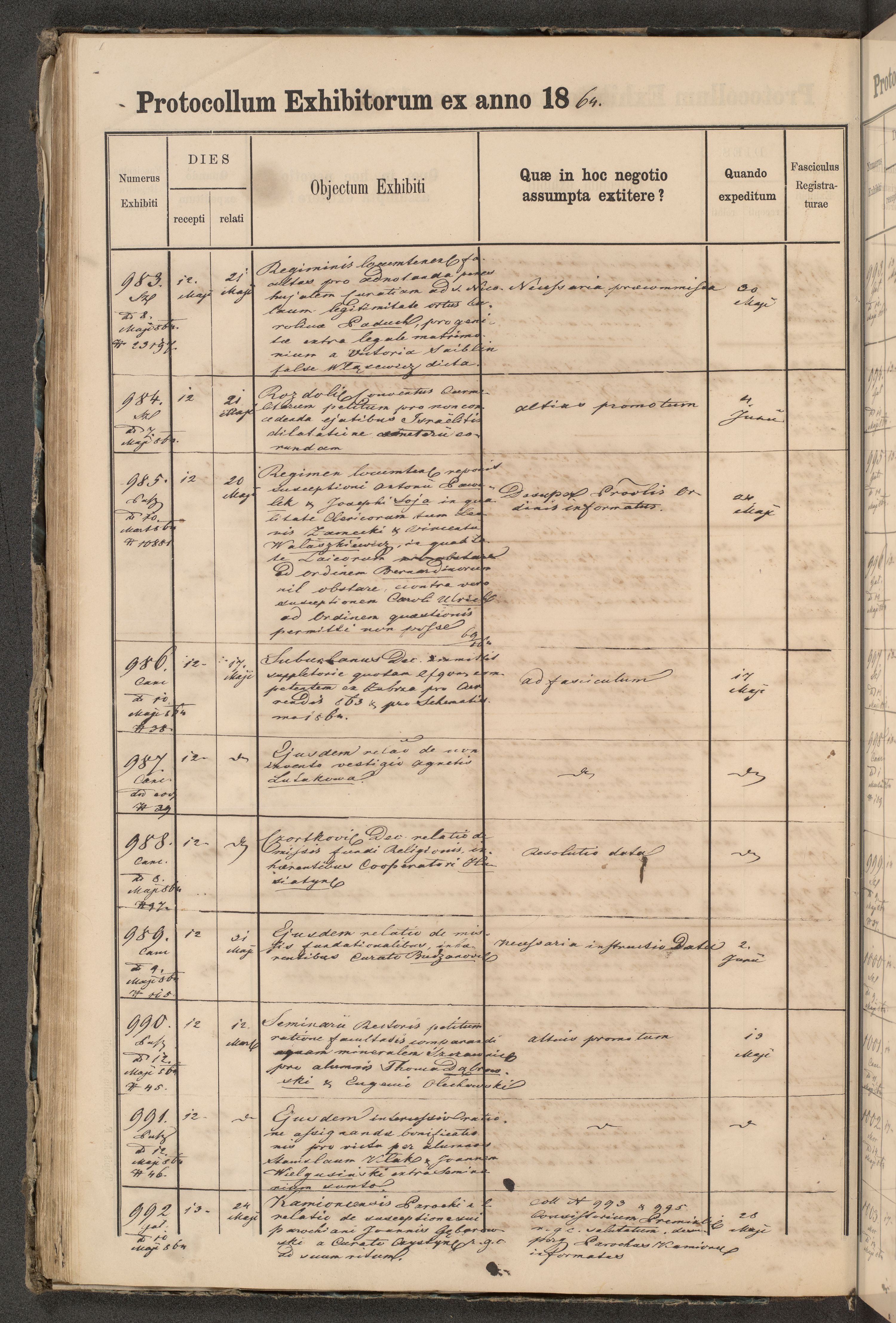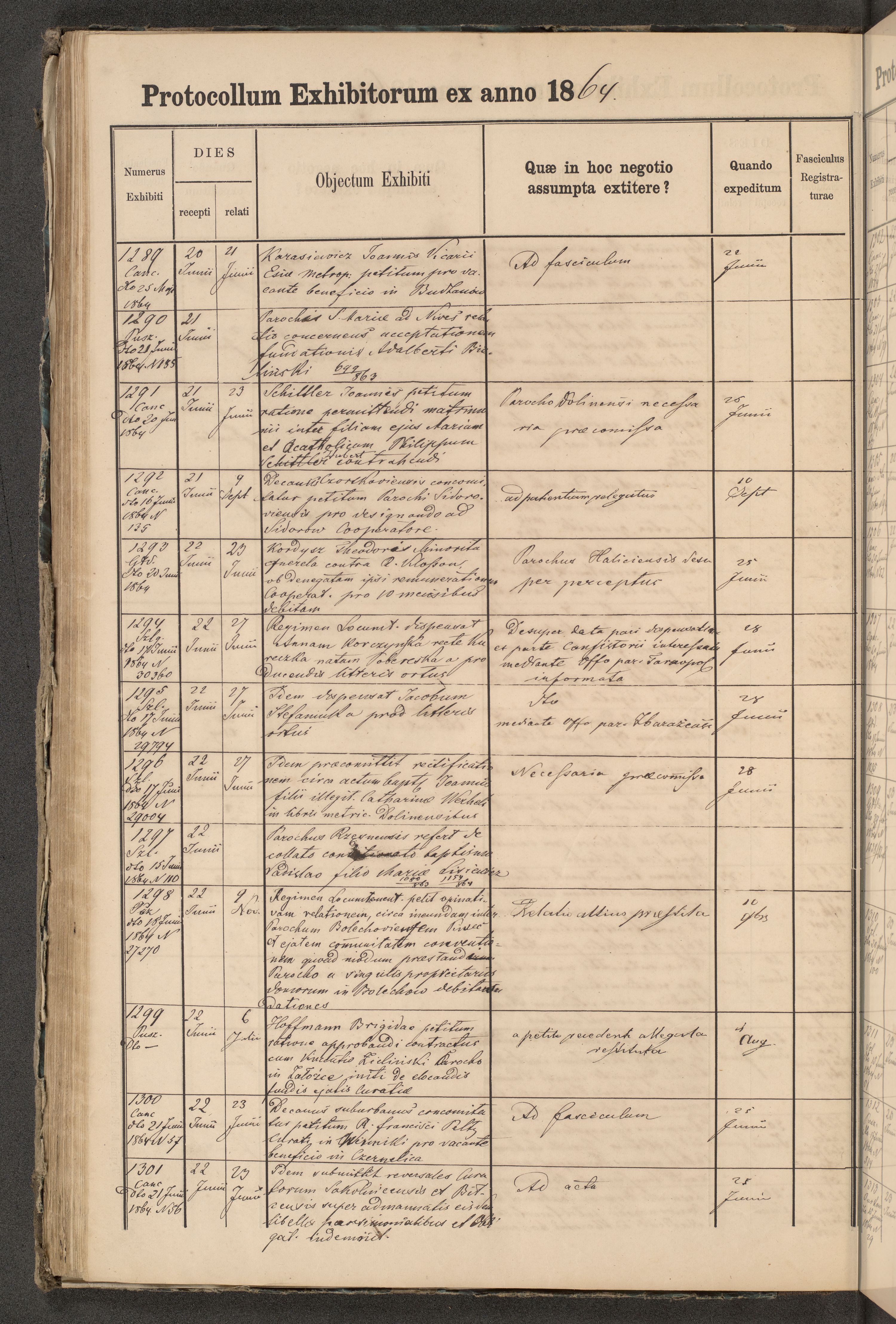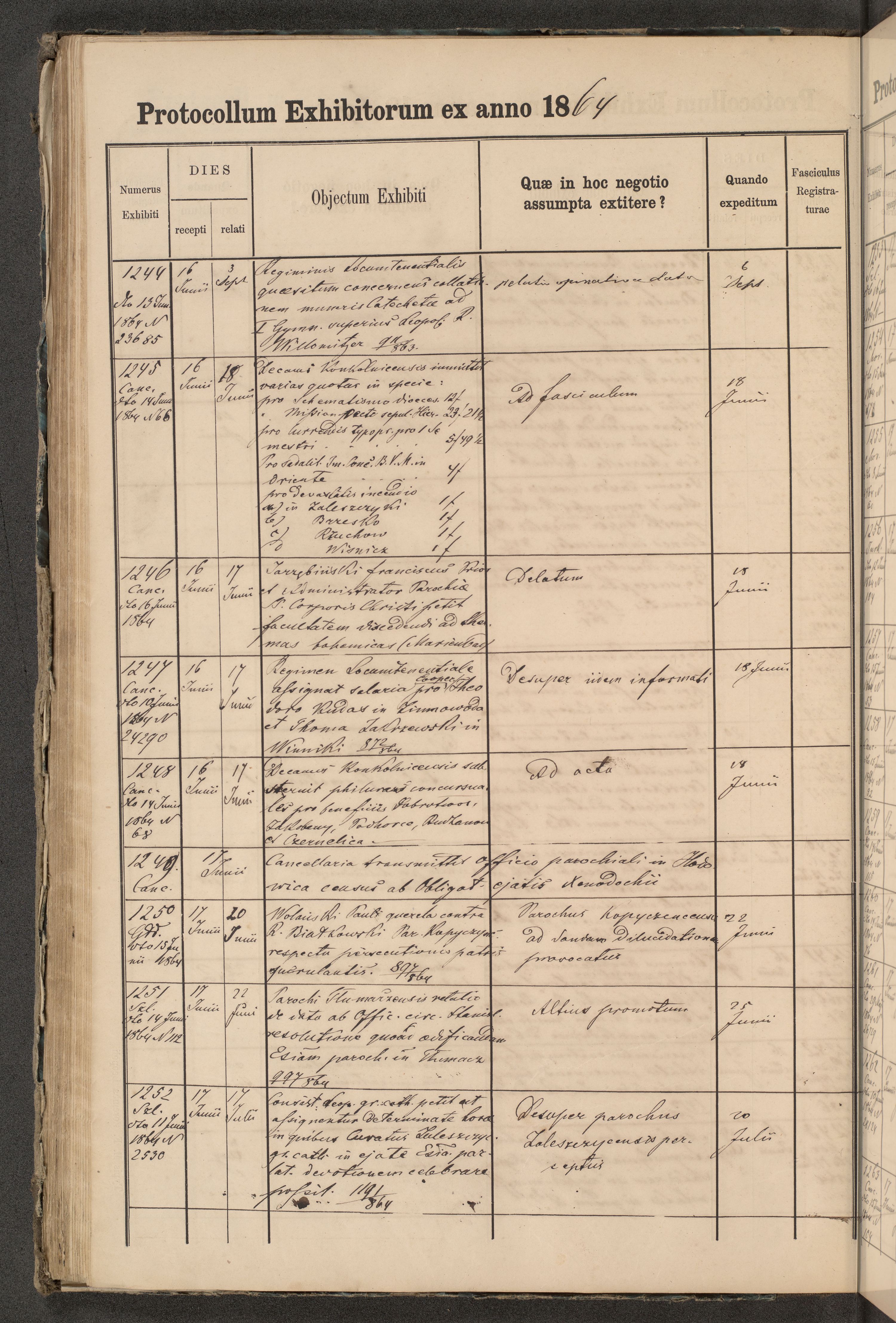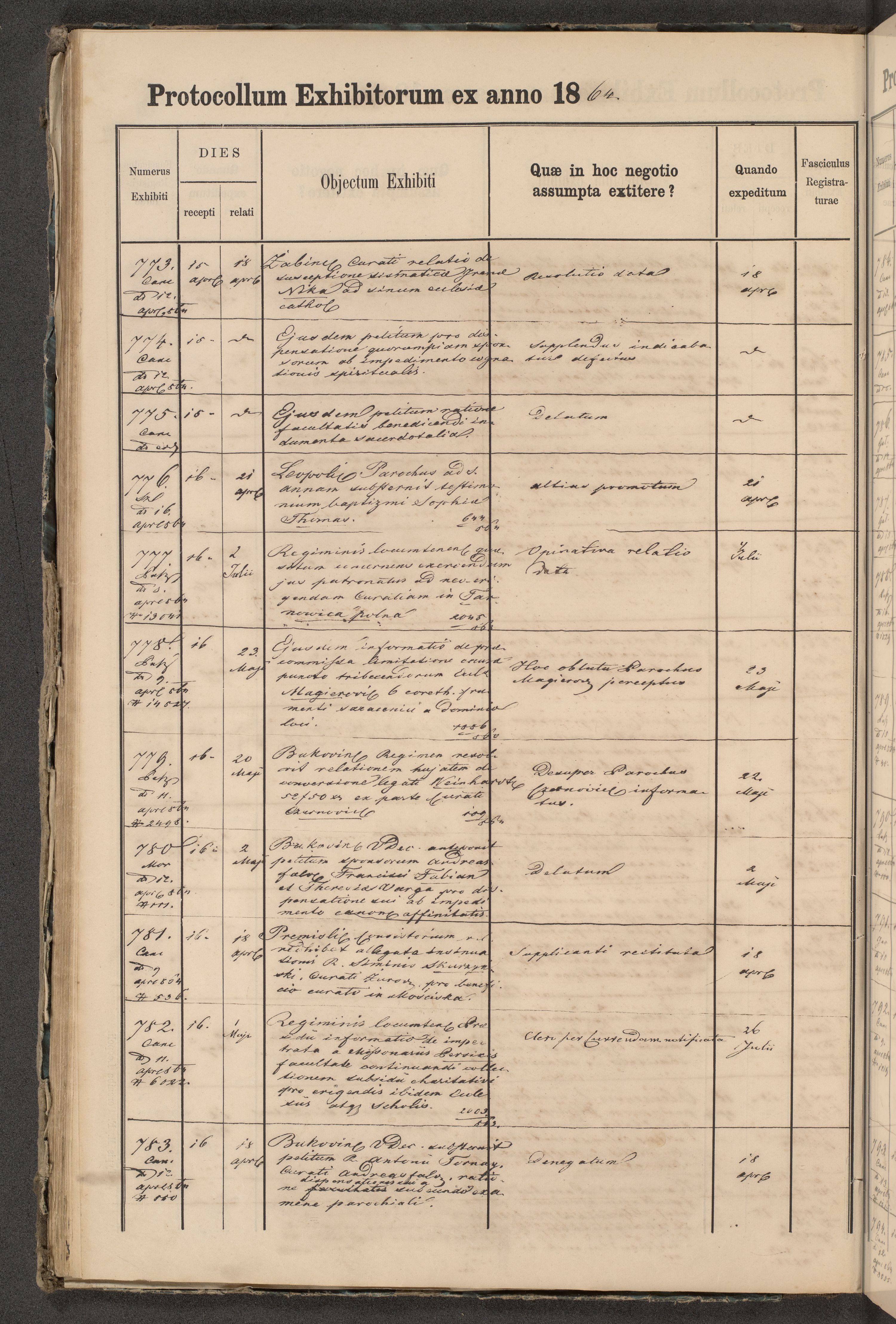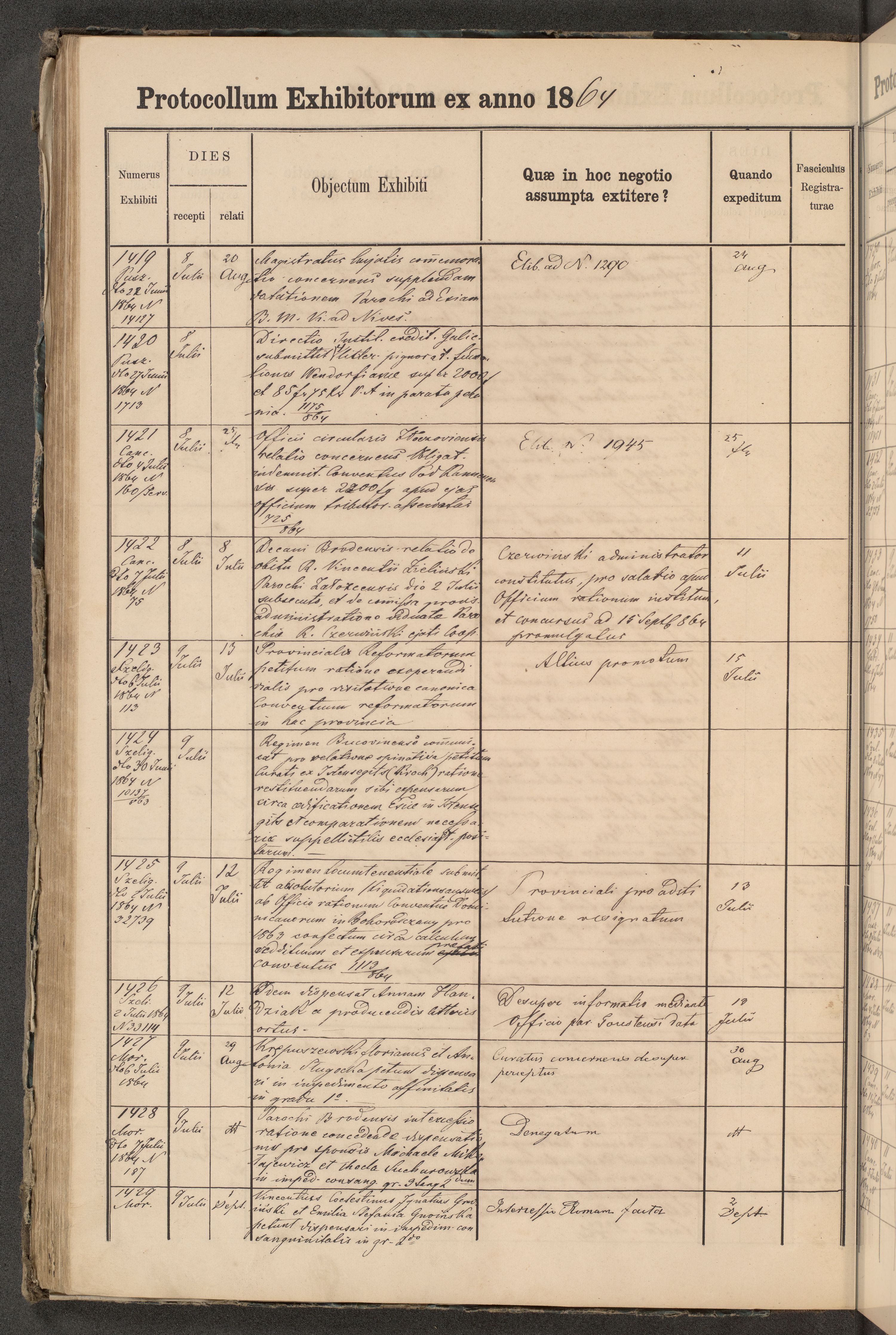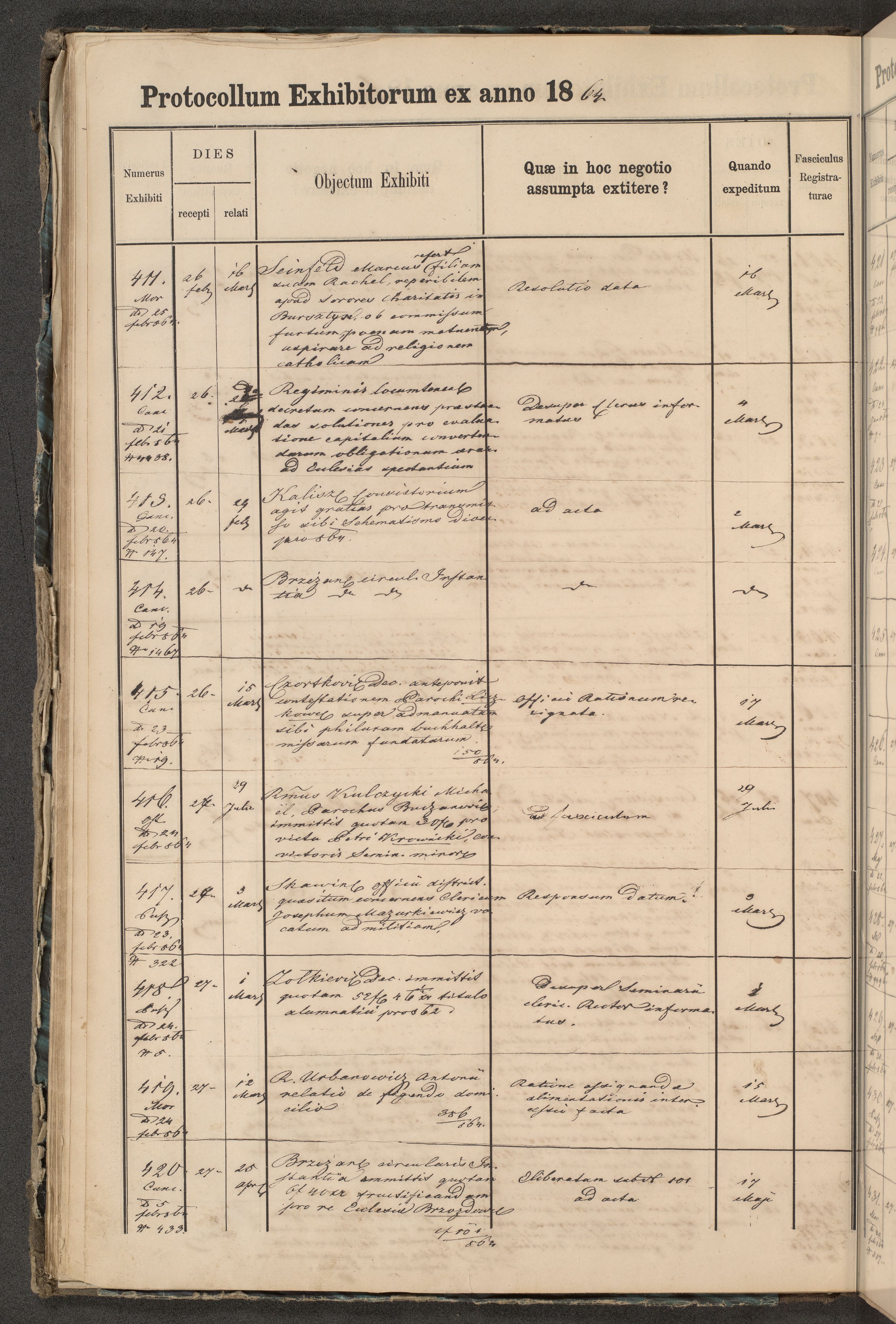Protocollon exhibitorum in Ecclesiasticis ex anno 1864
