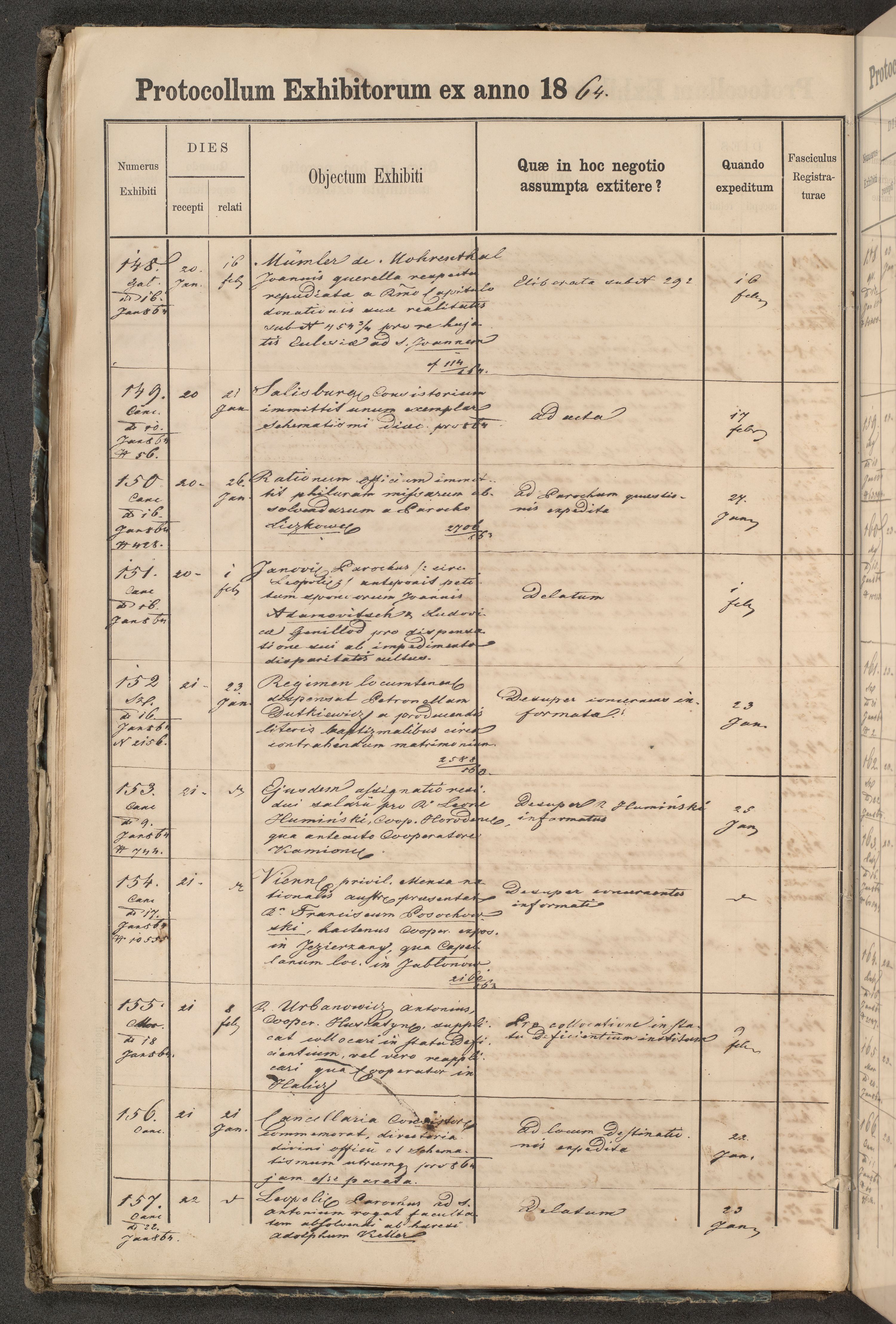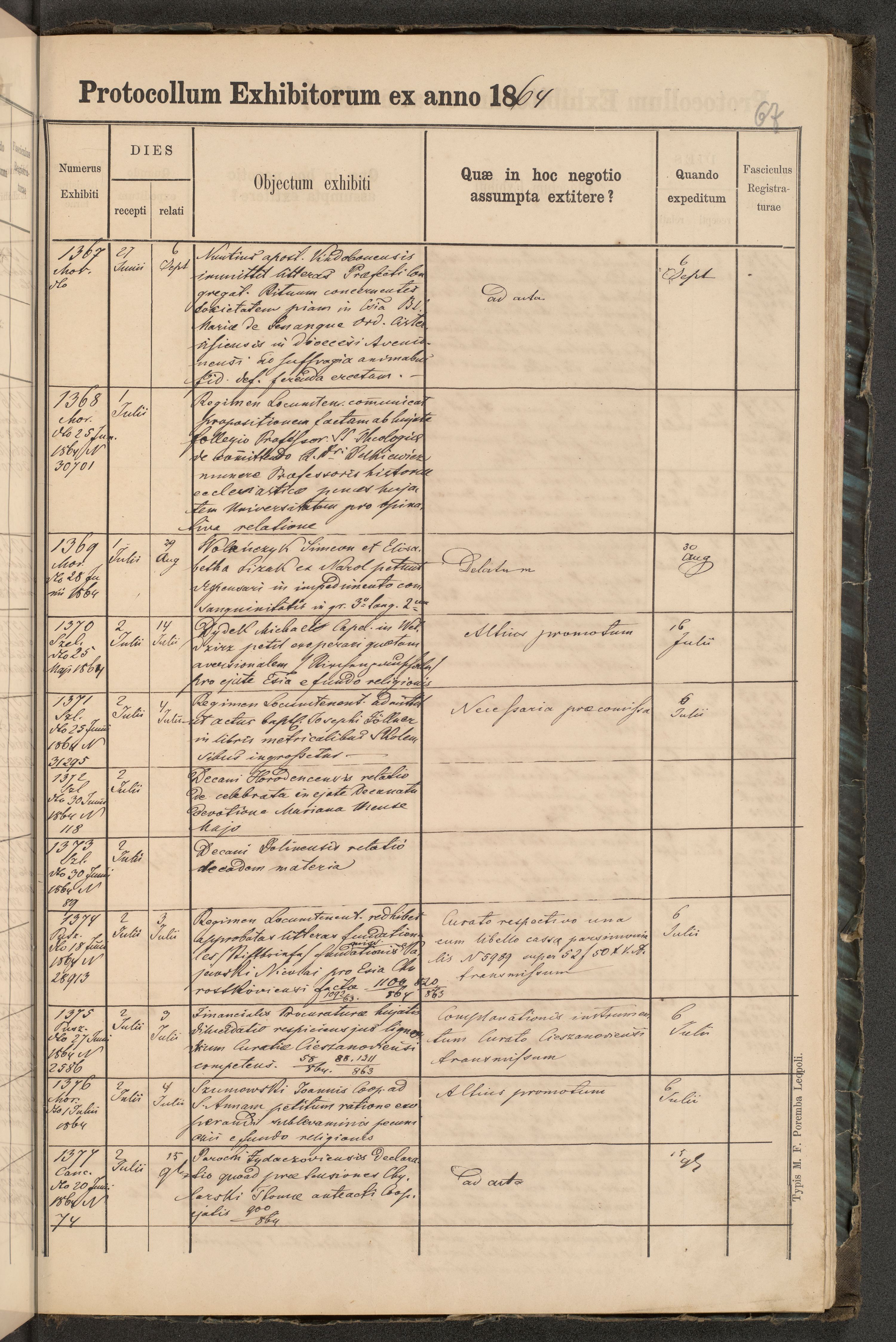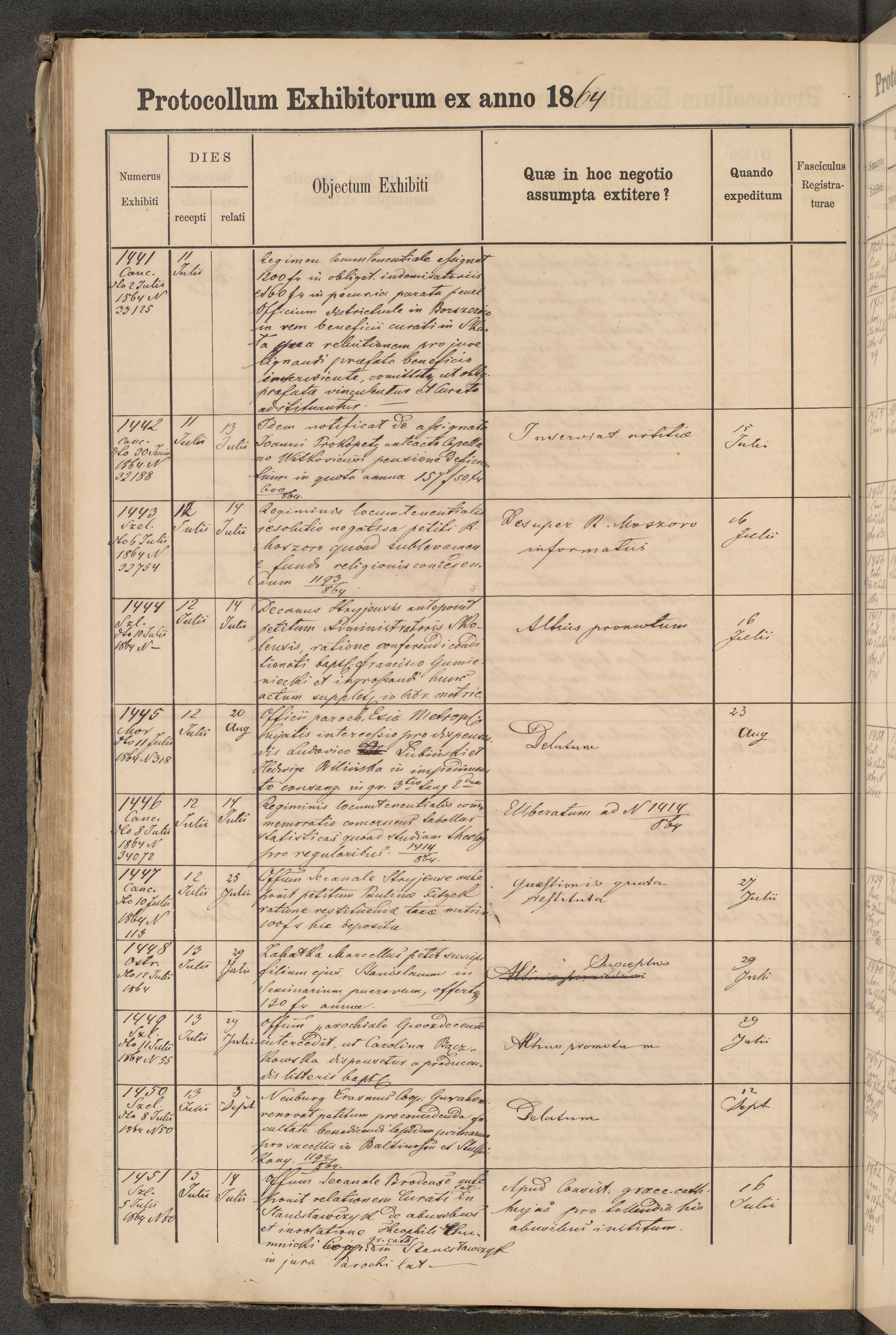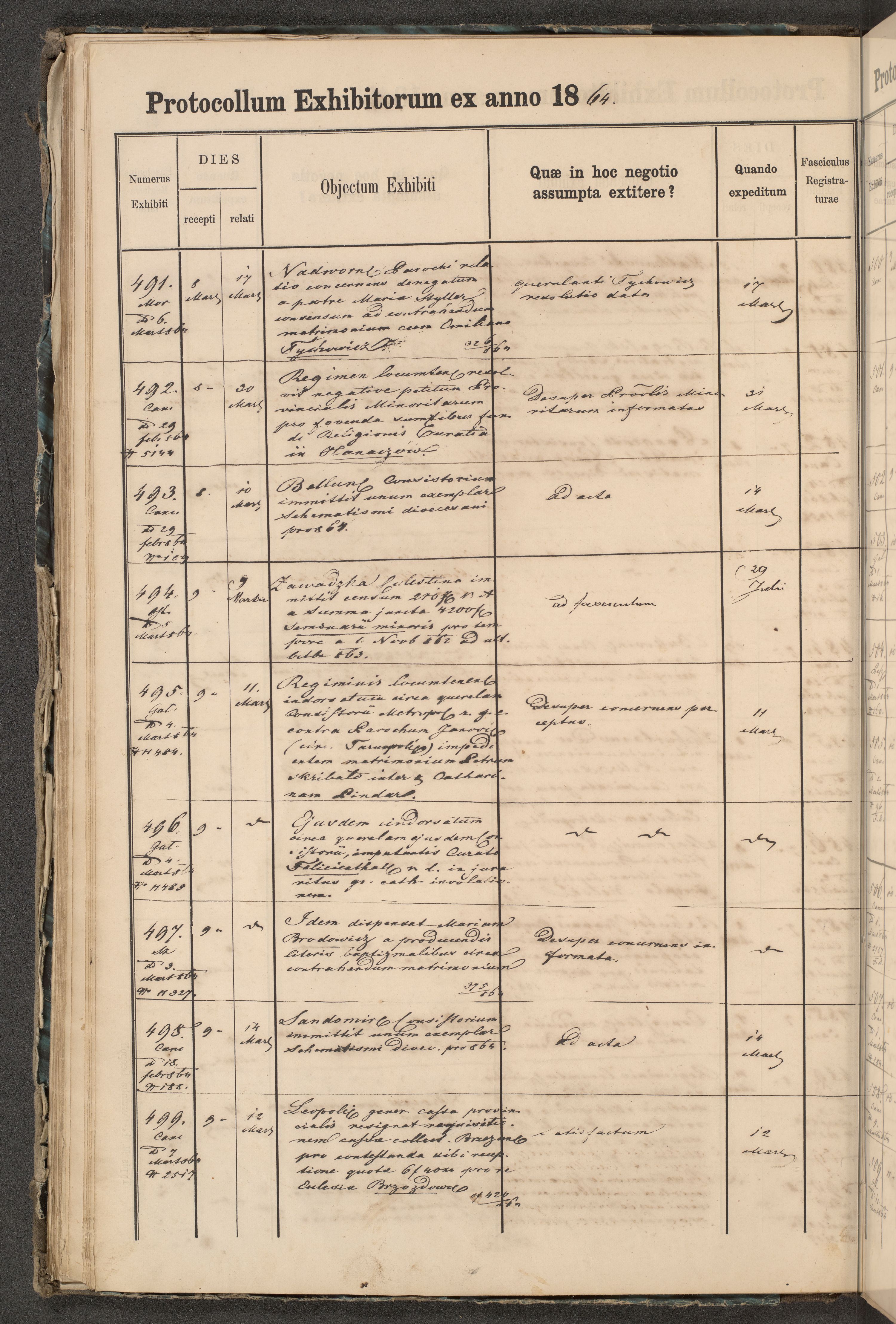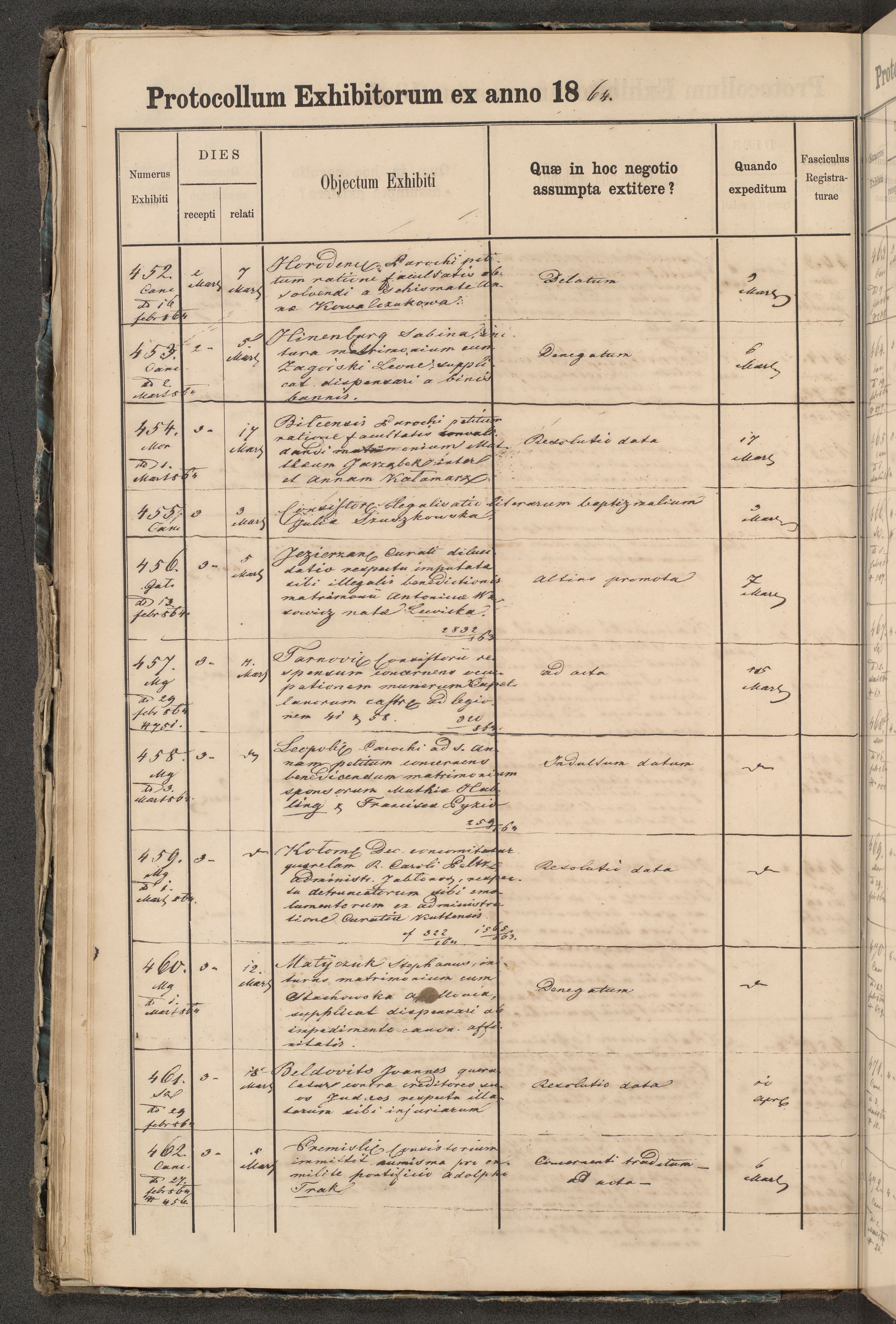 Protocollon exhibitorum in Ecclesiasticis ex anno 1864