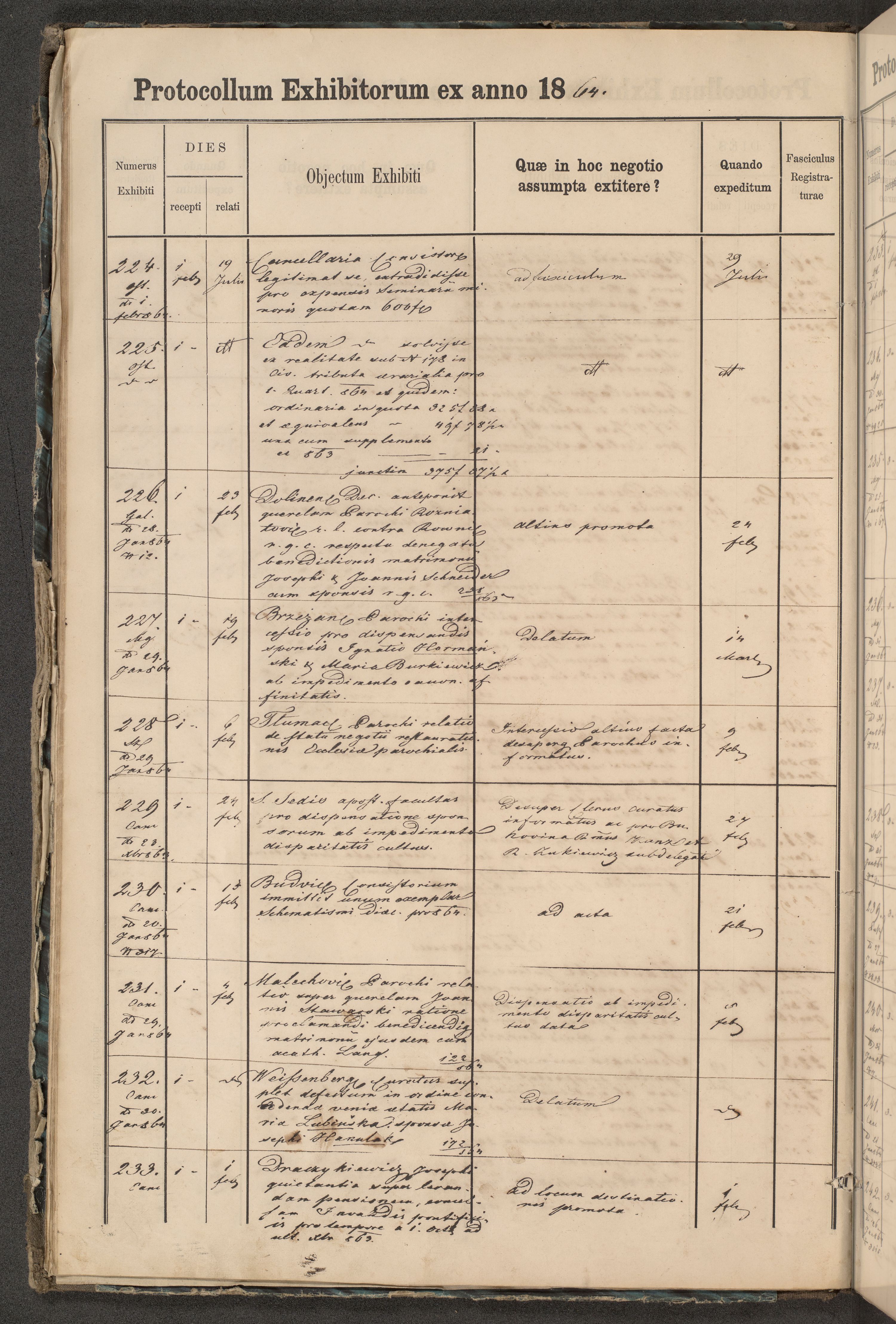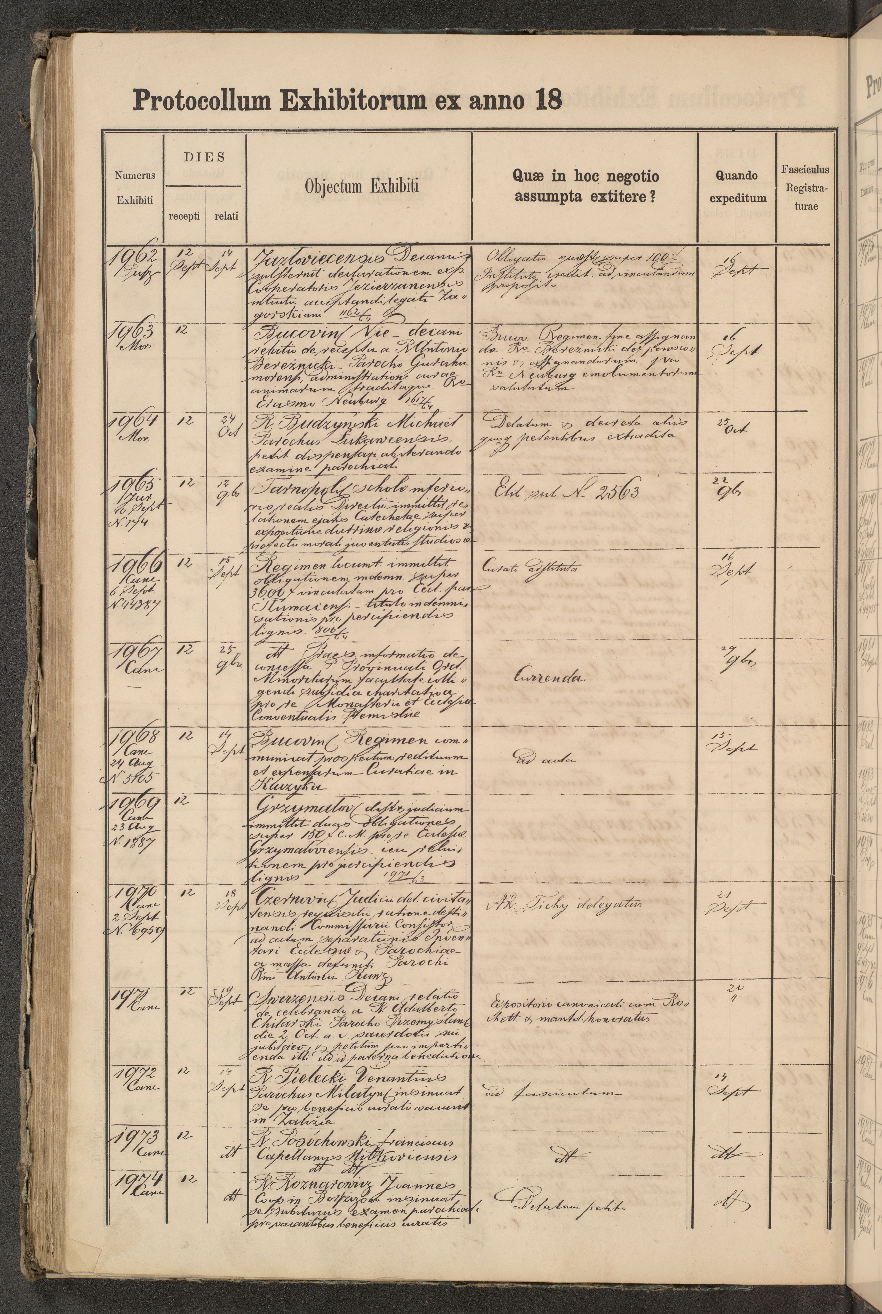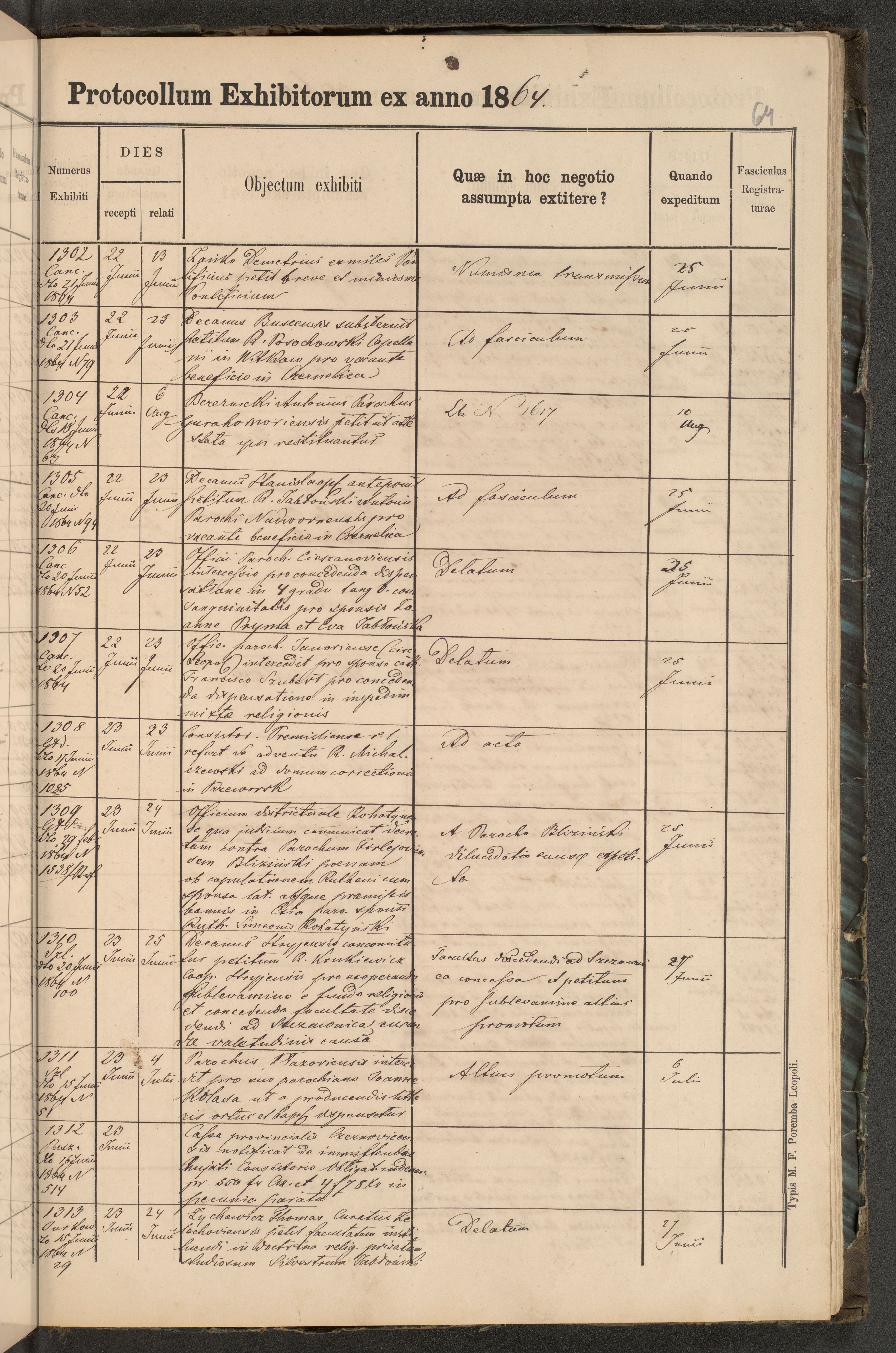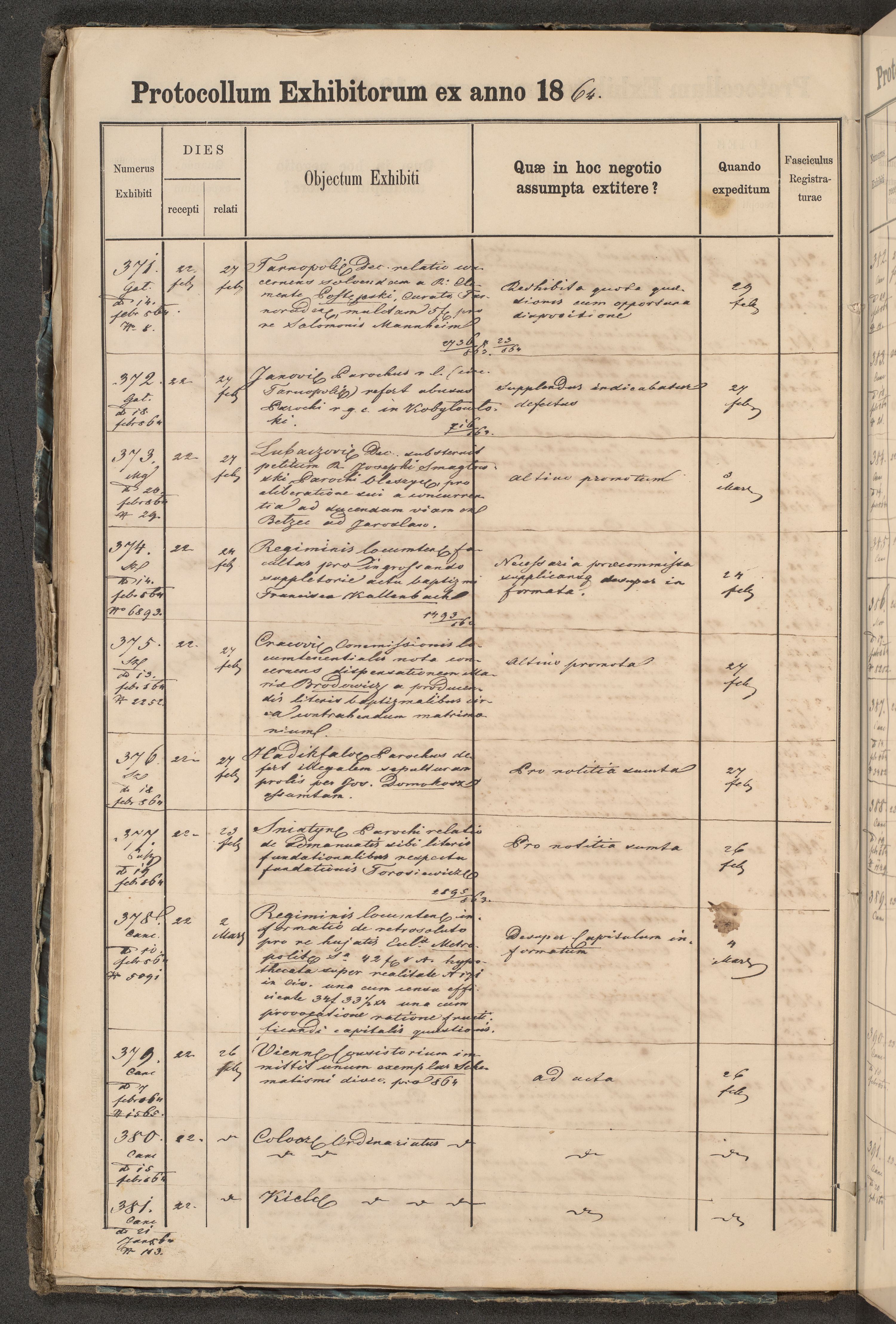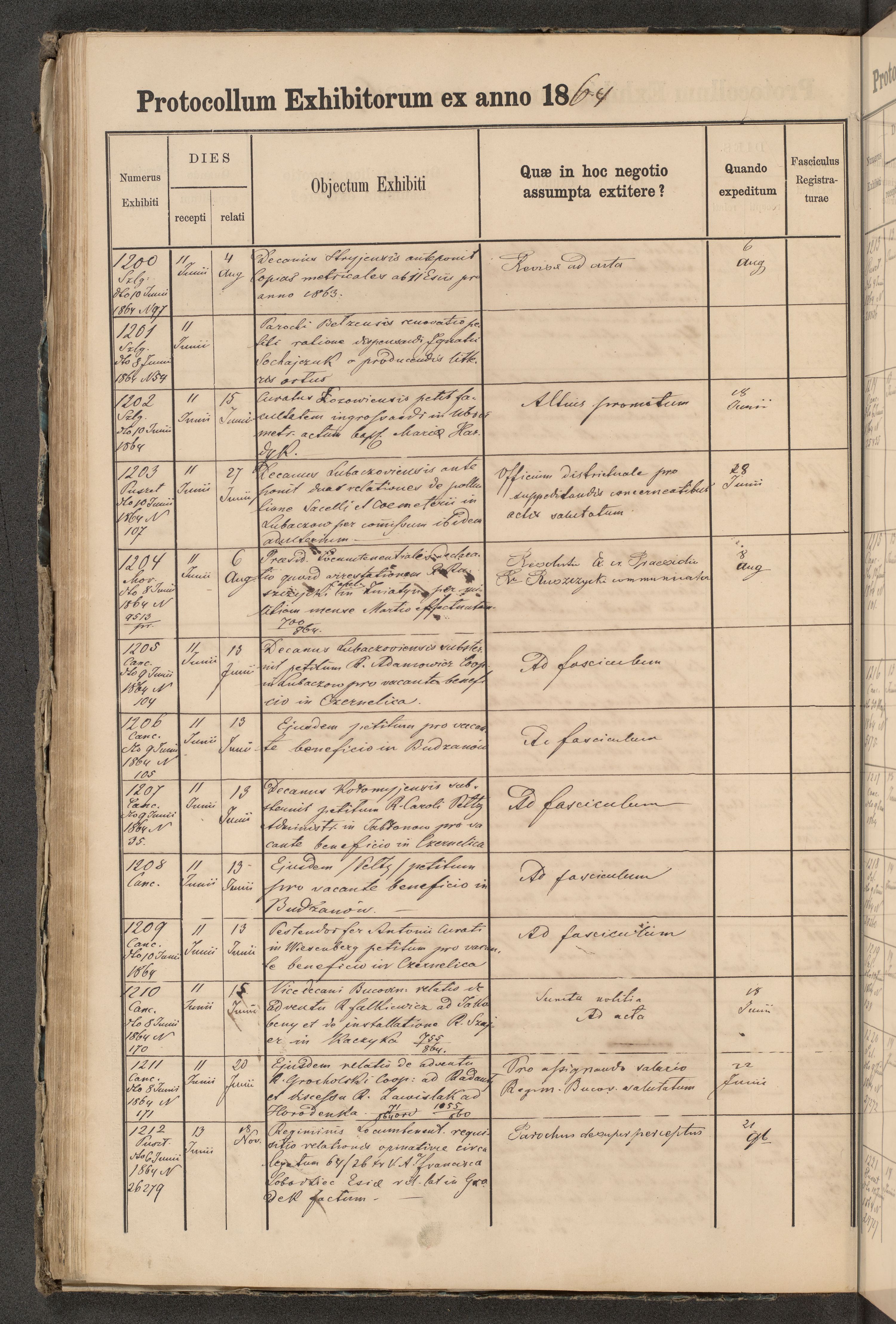 Protocollon exhibitorum in Ecclesiasticis ex anno 1864