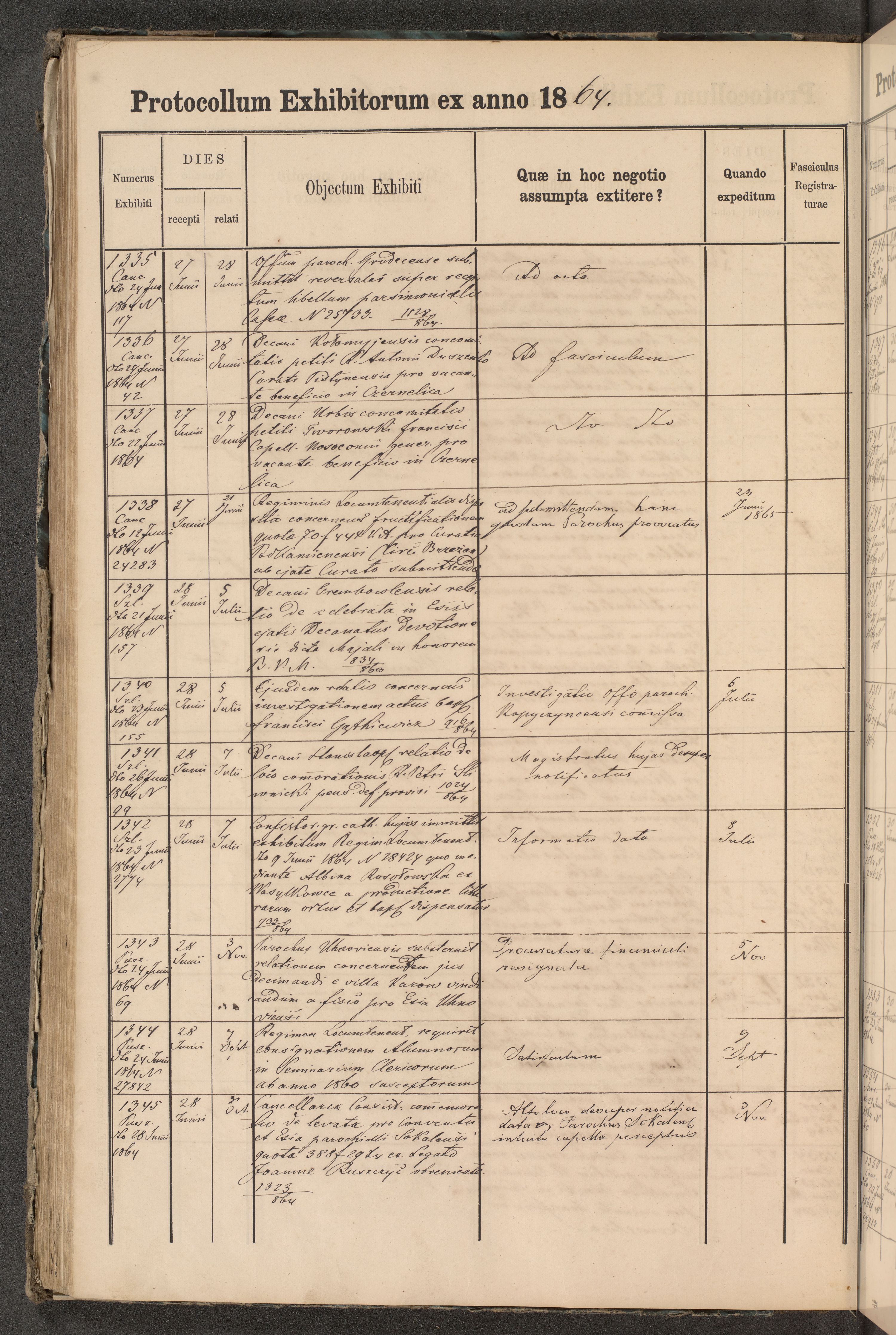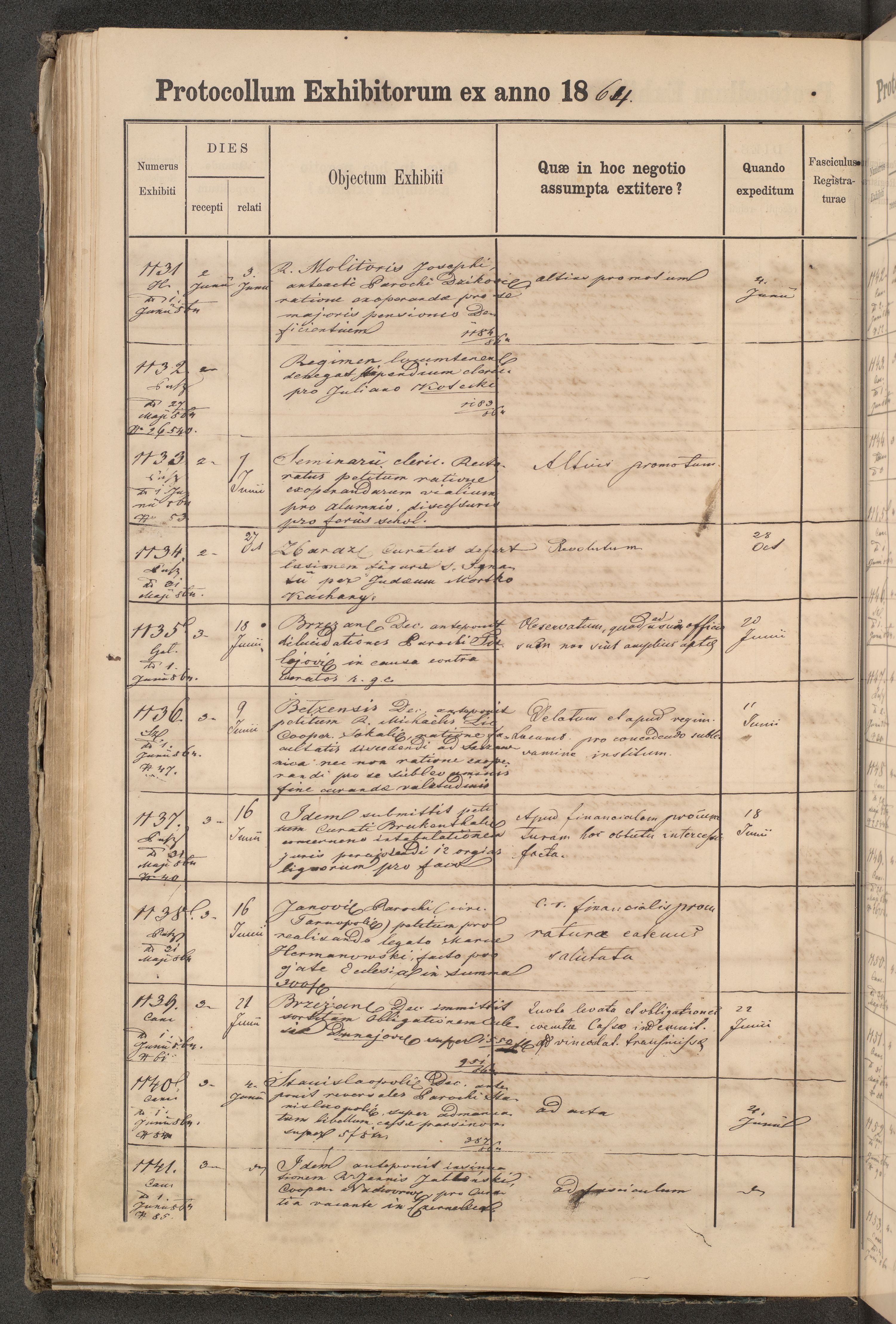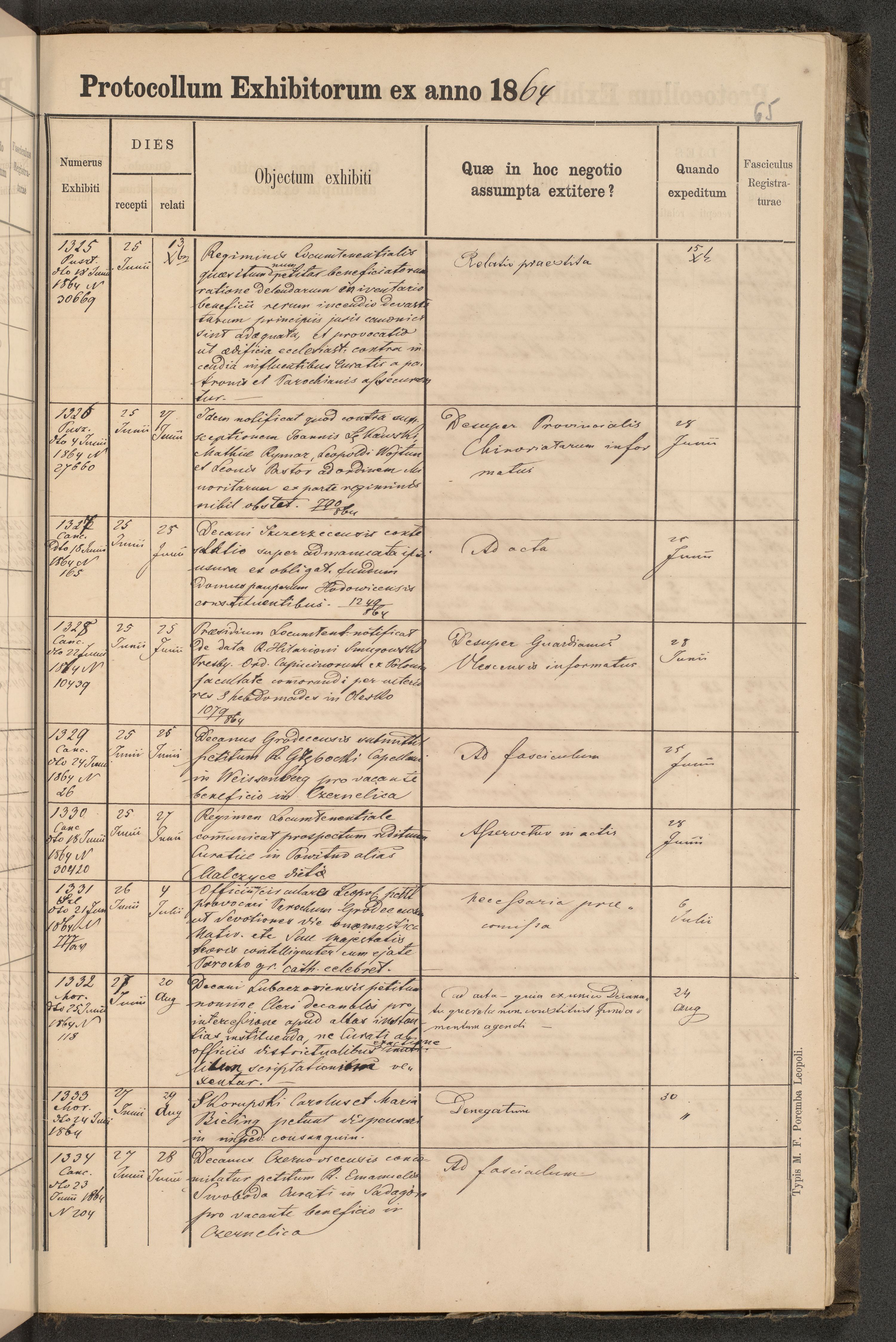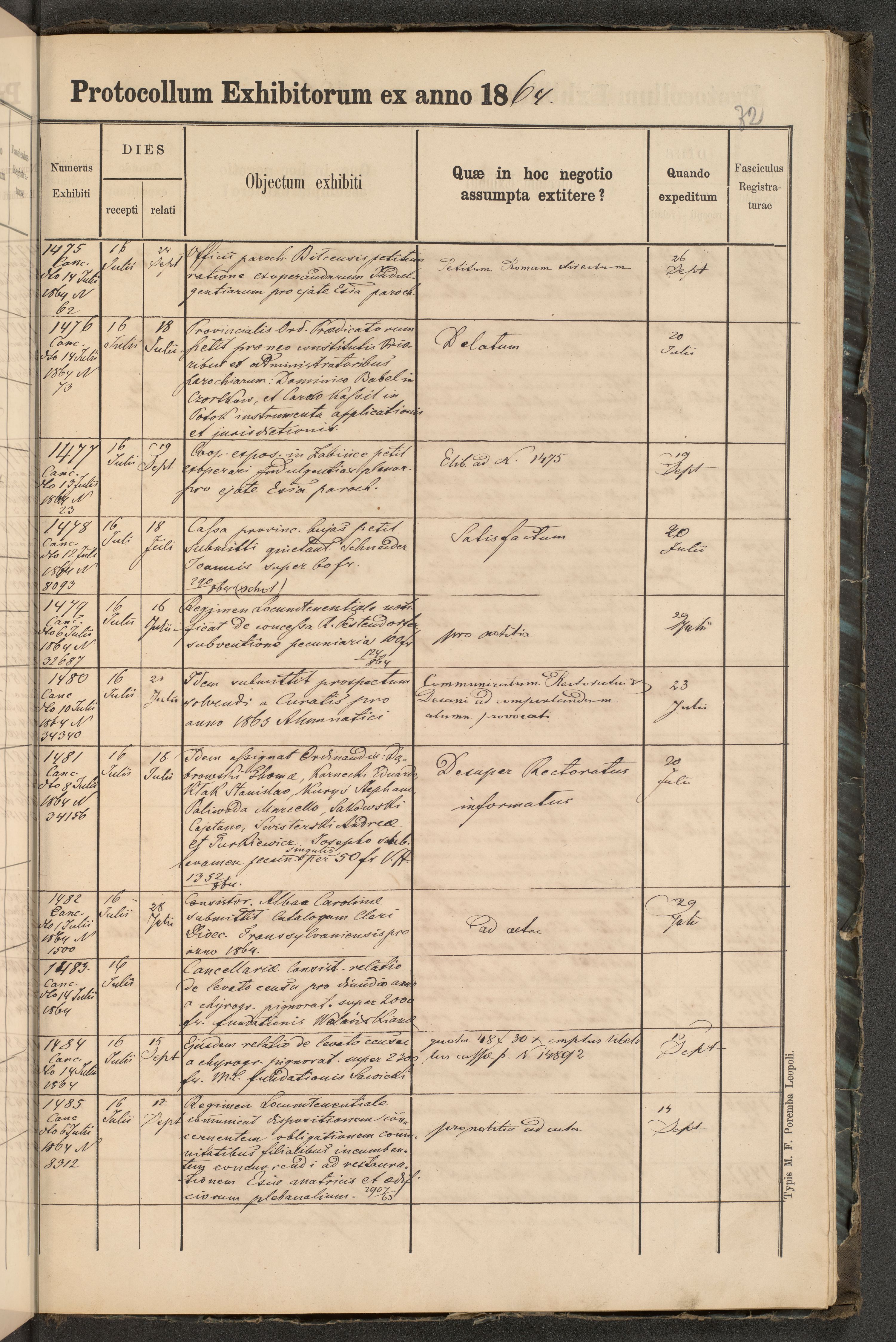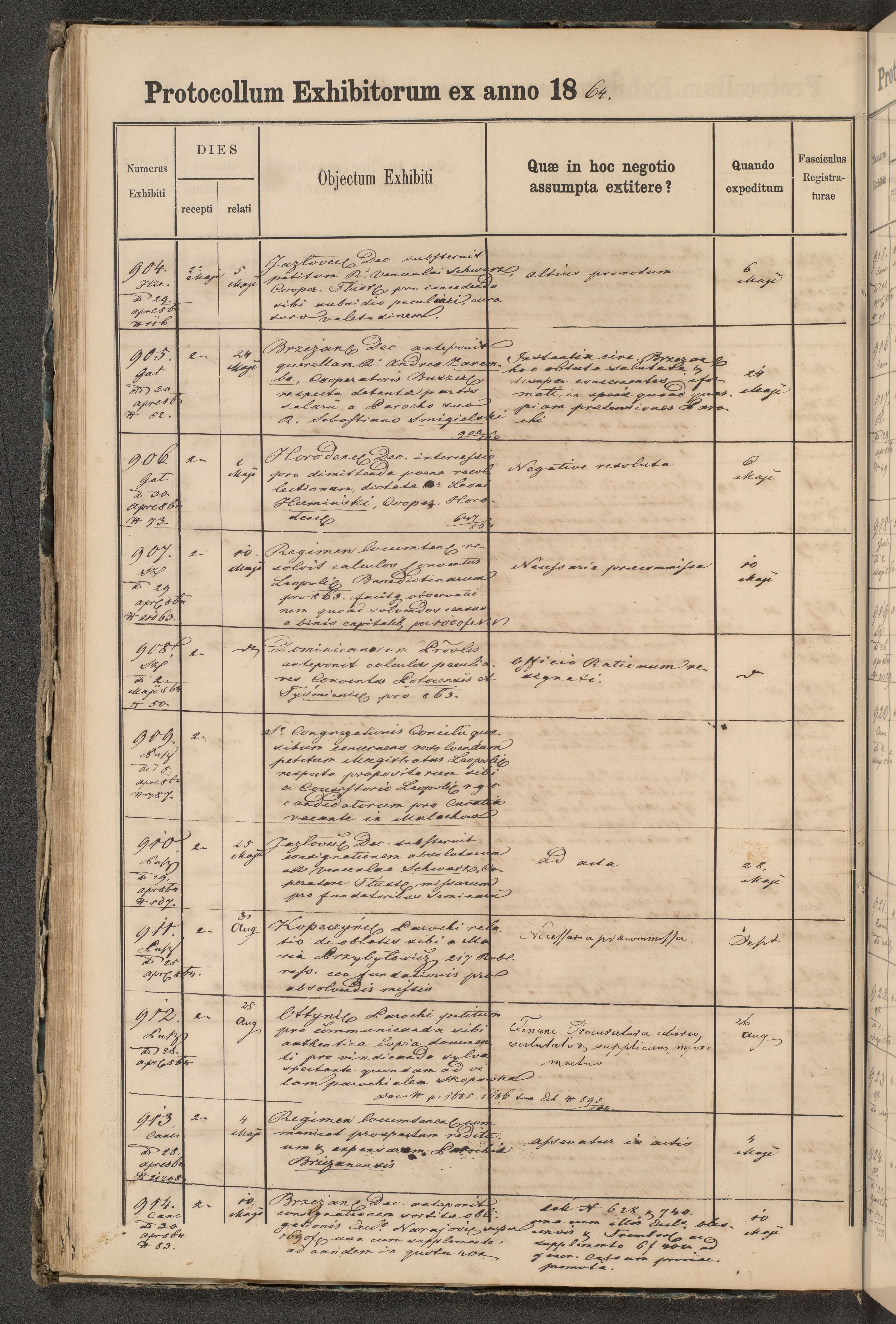 Protocollon exhibitorum in Ecclesiasticis ex anno 1864