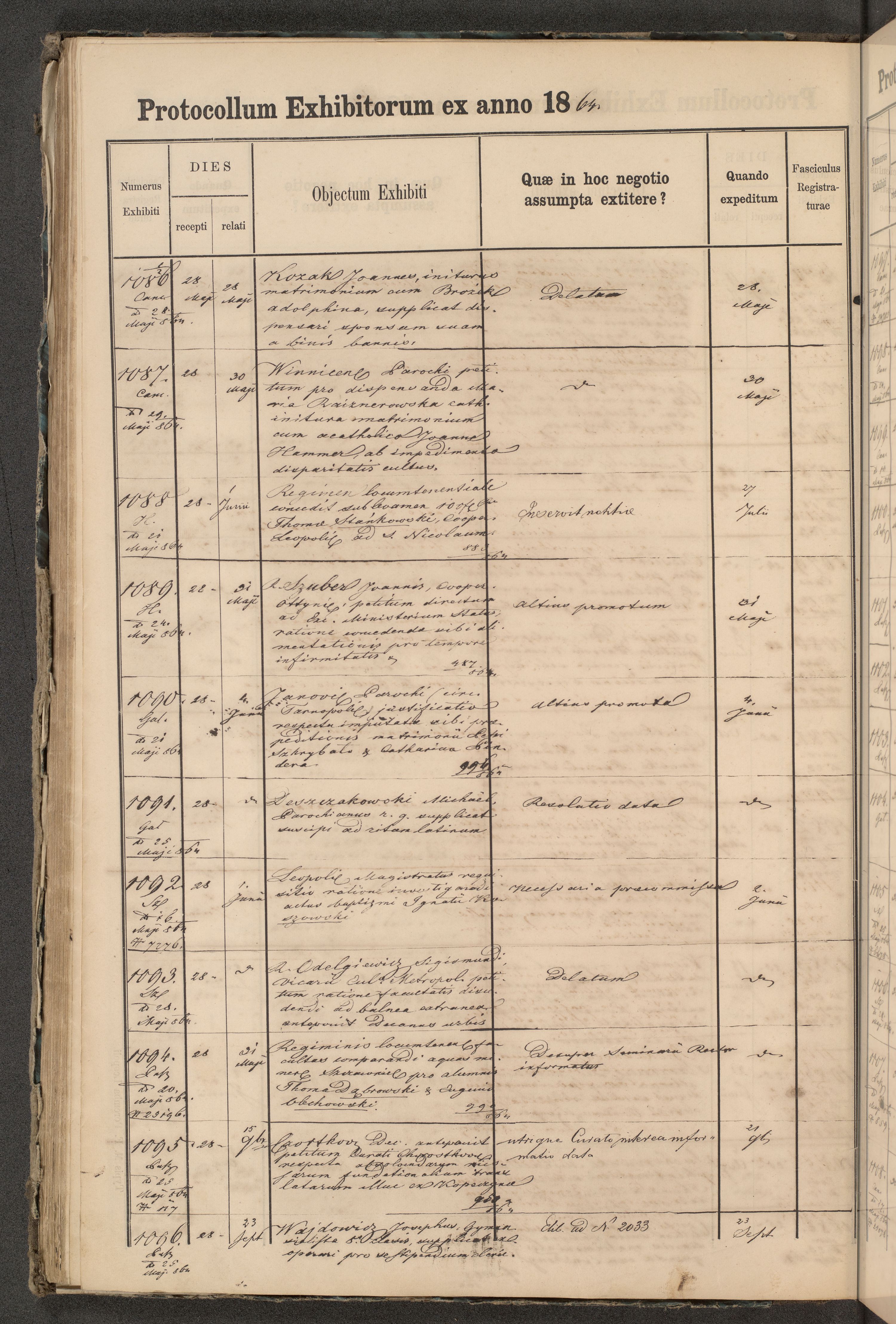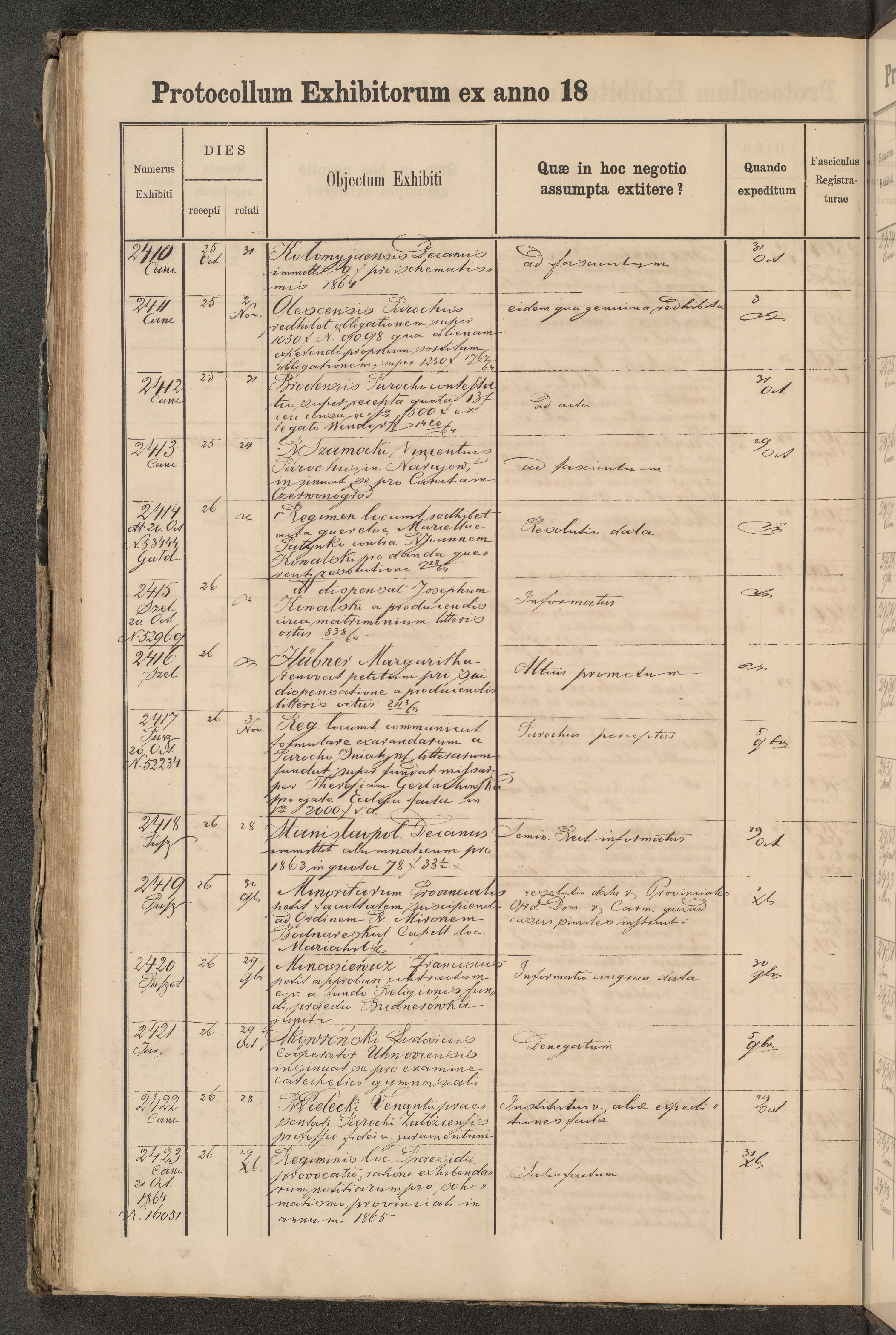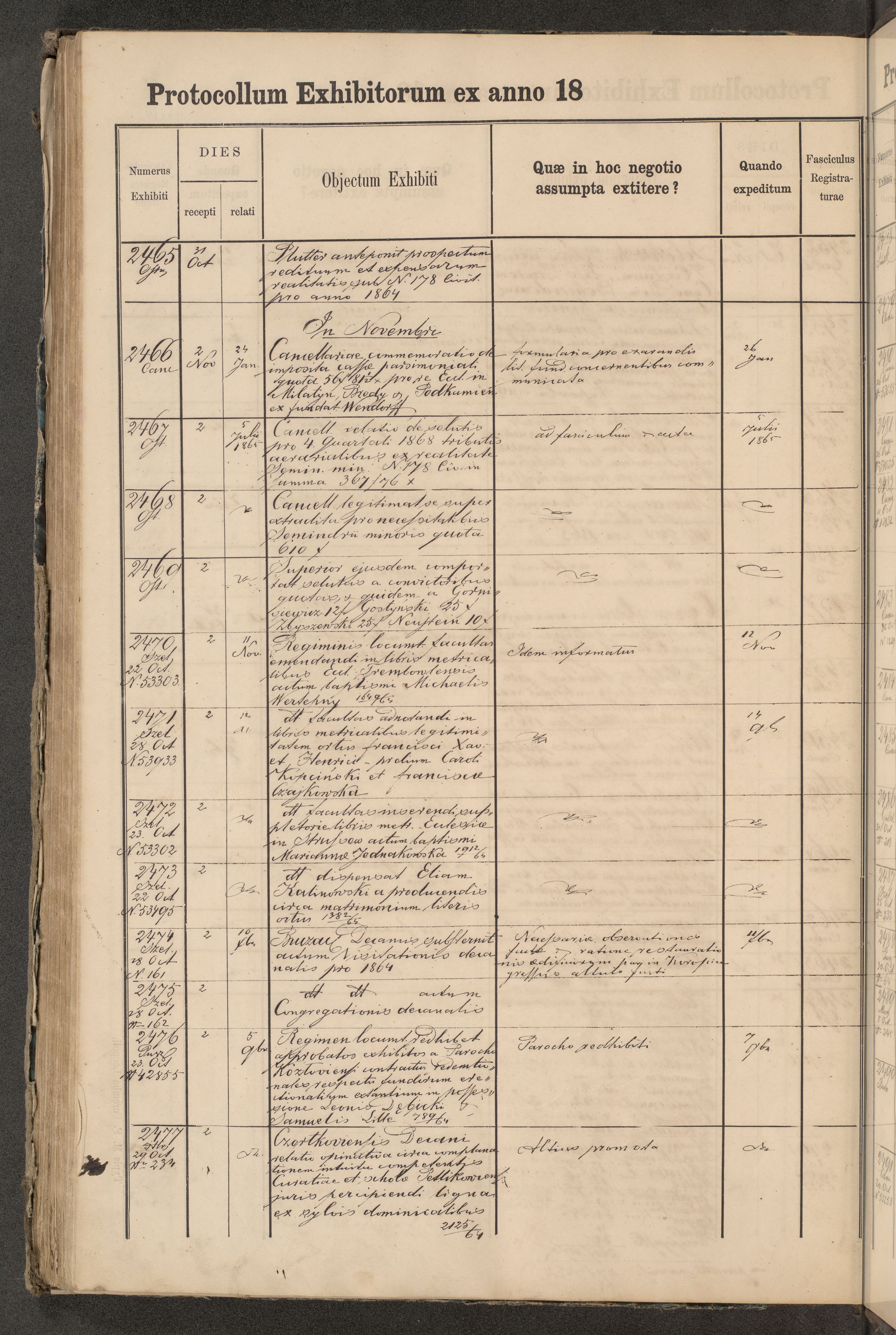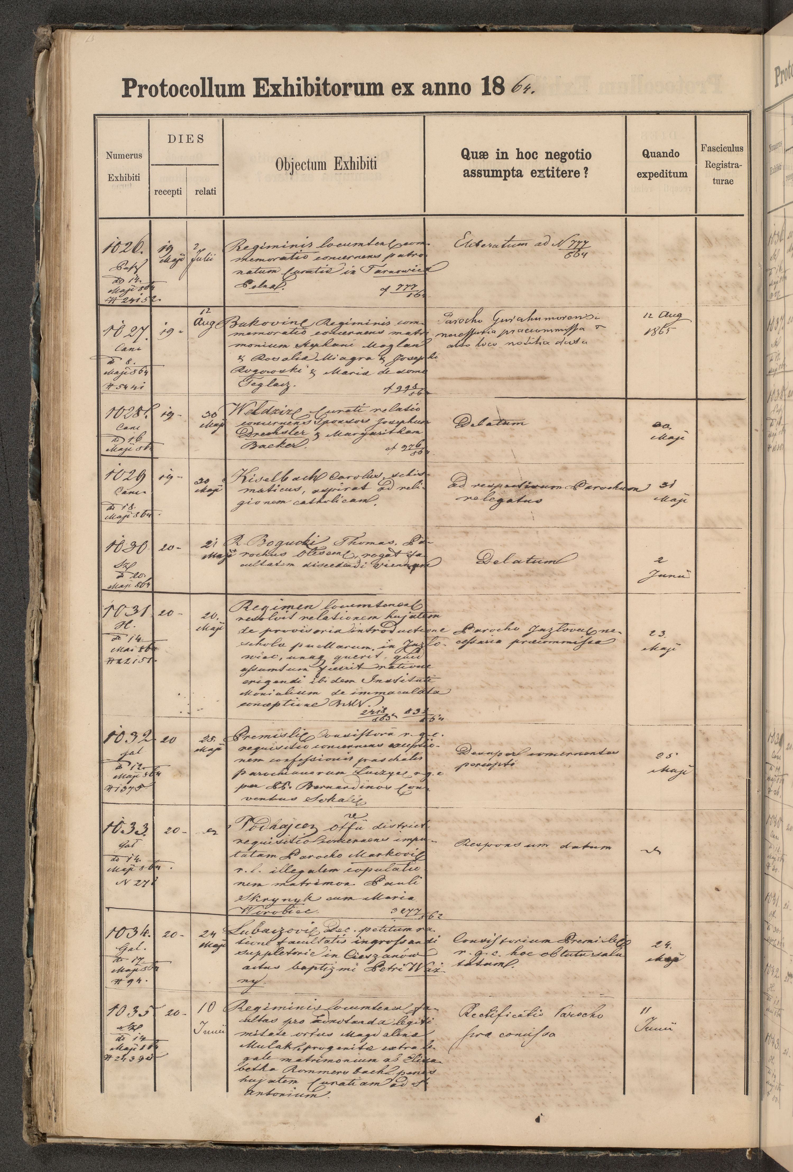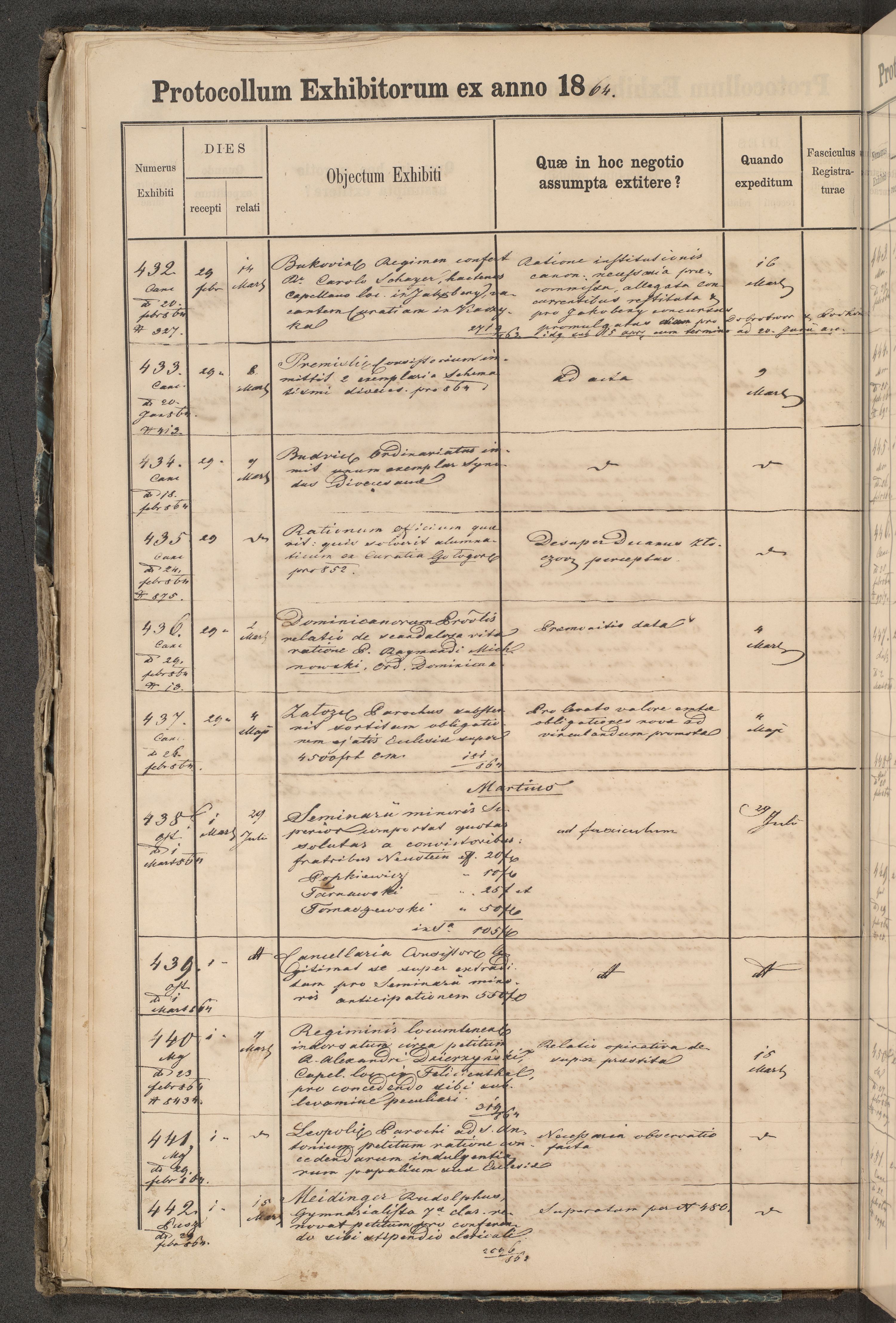 Protocollon exhibitorum in Ecclesiasticis ex anno 1864