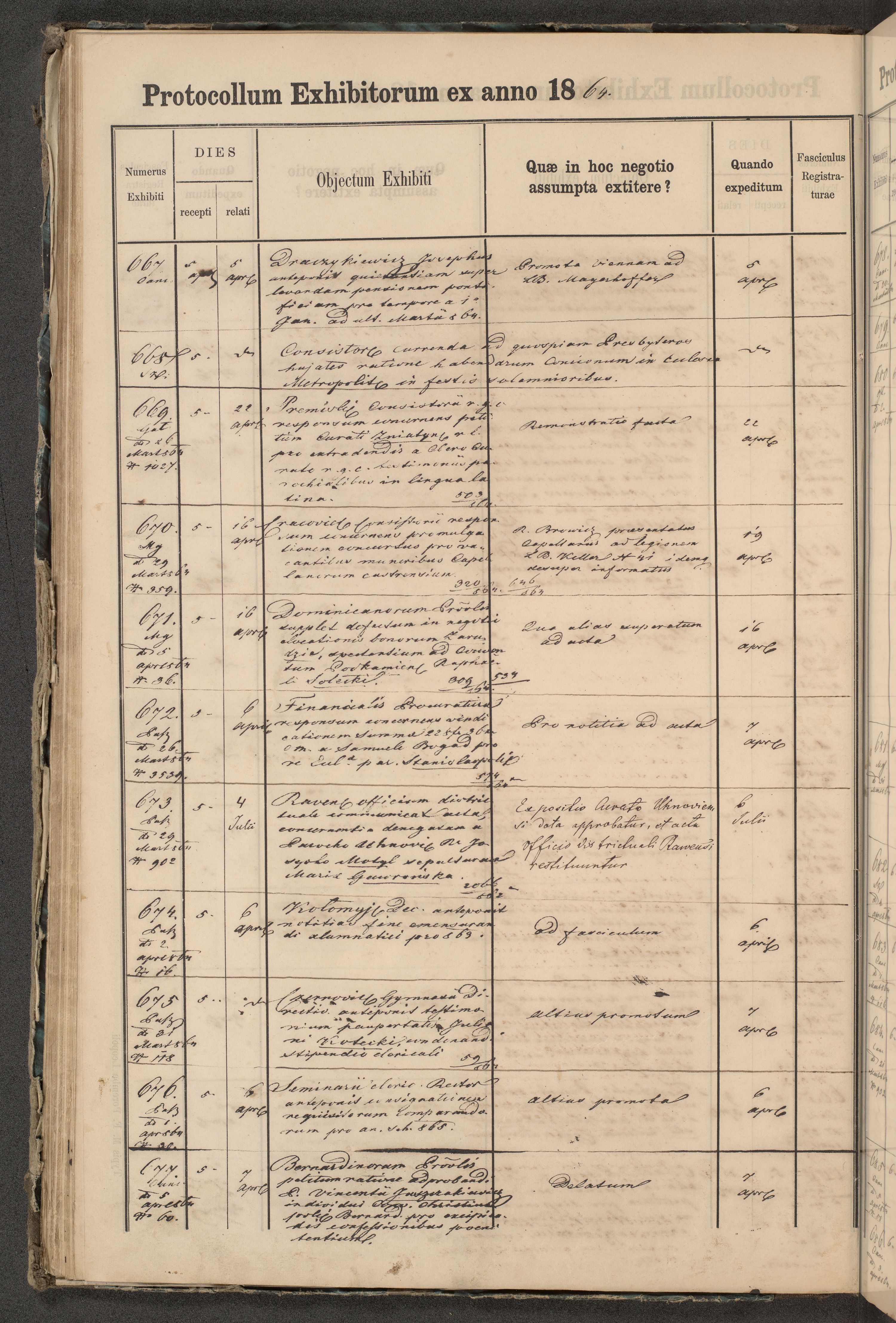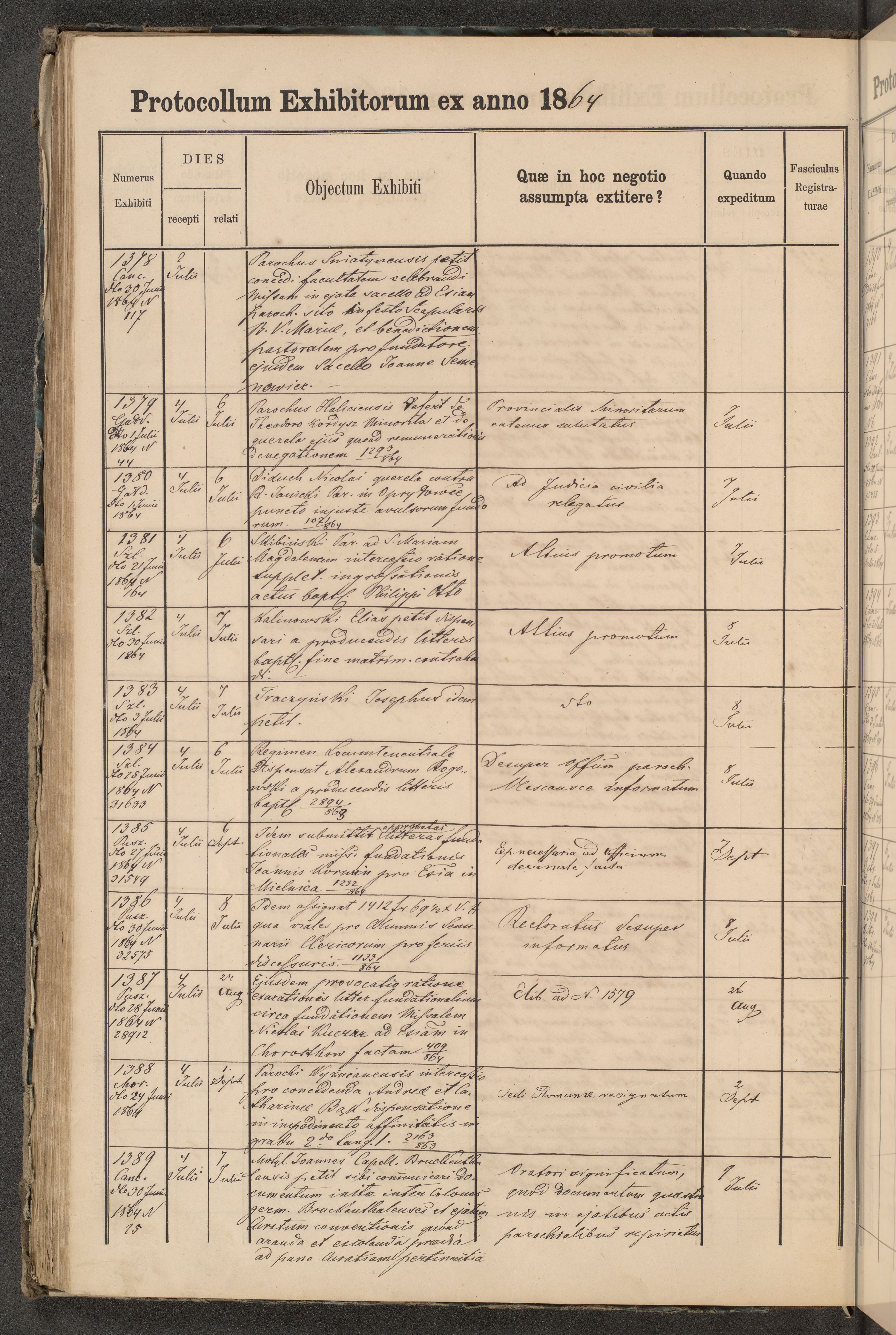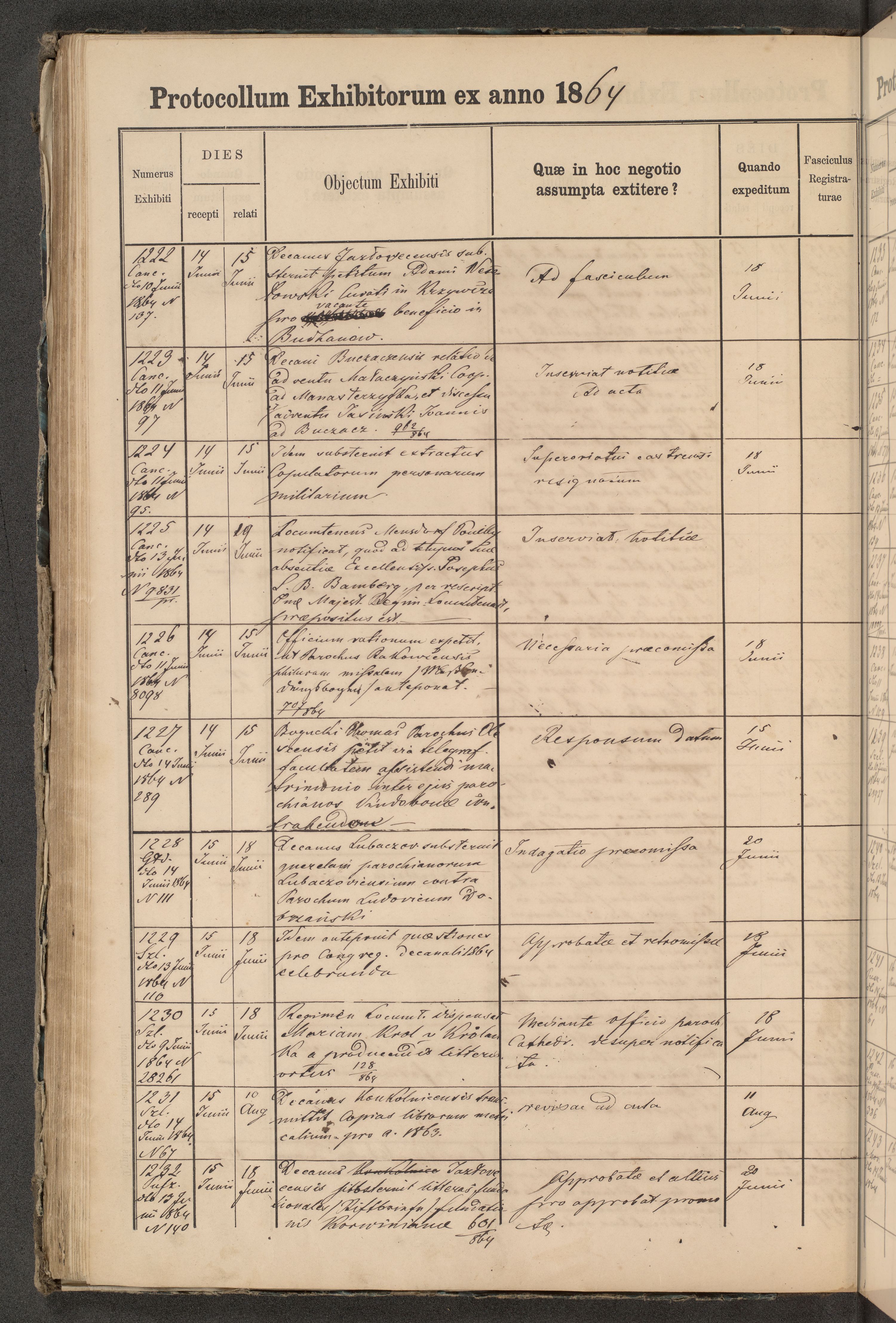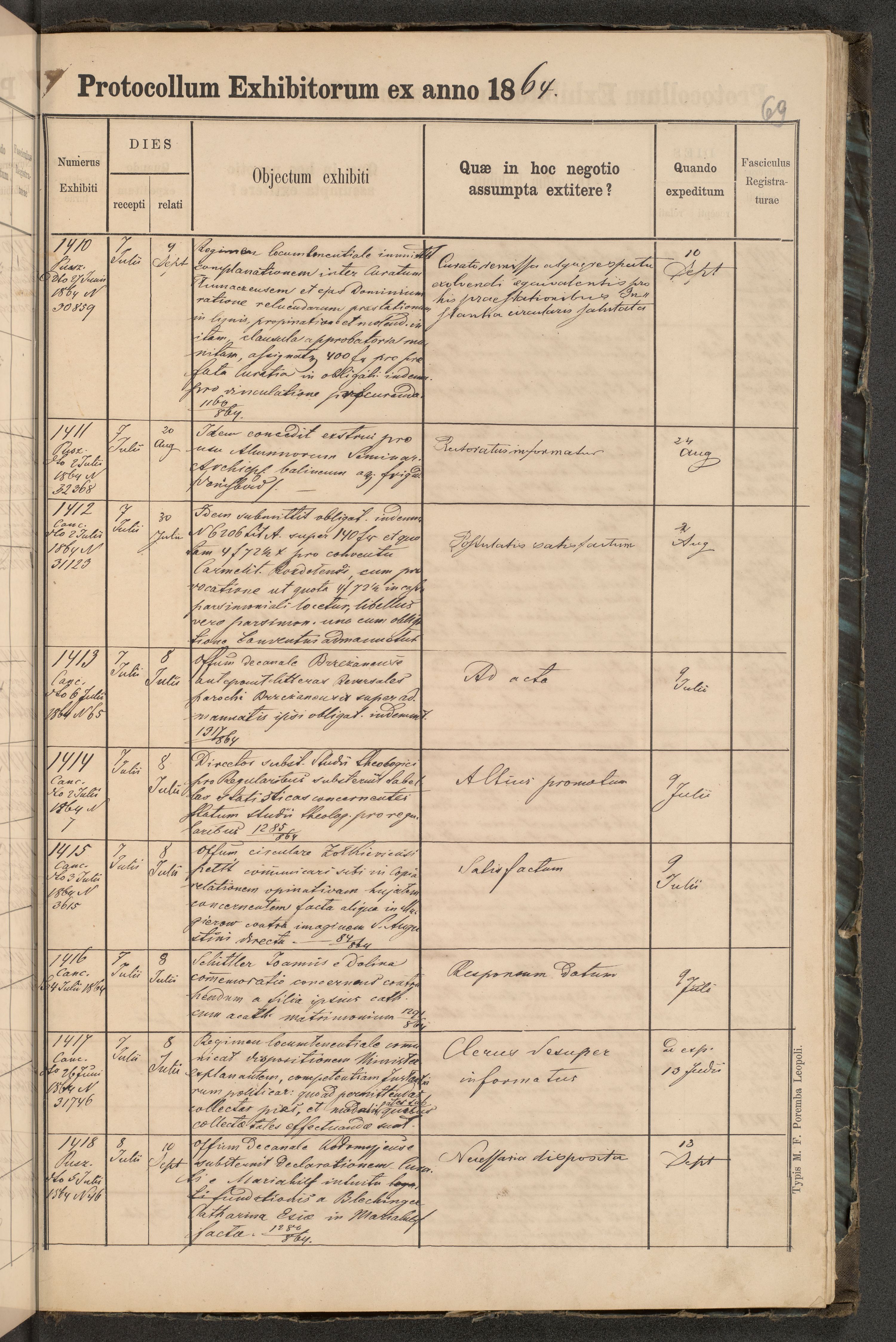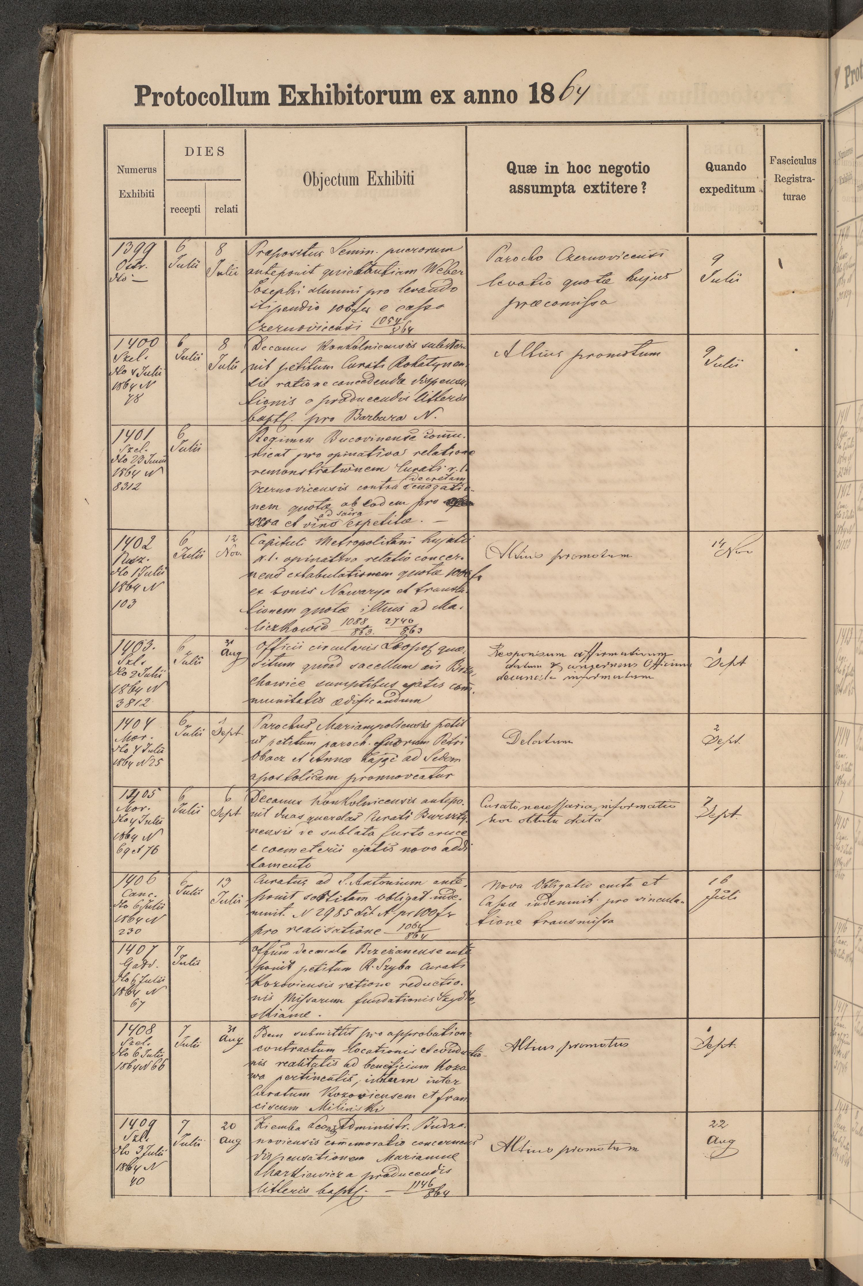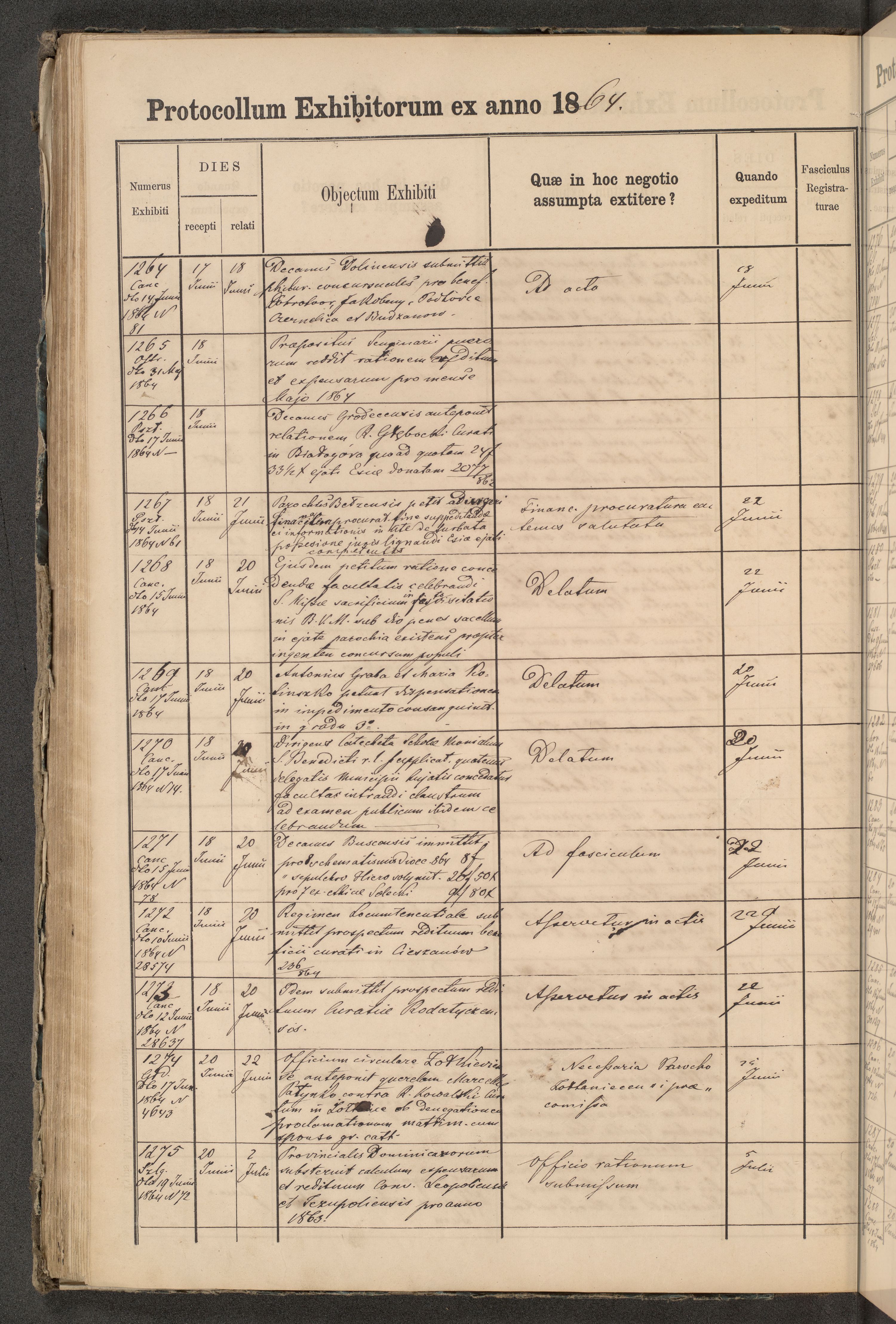Protocollon exhibitorum in Ecclesiasticis ex anno 1864