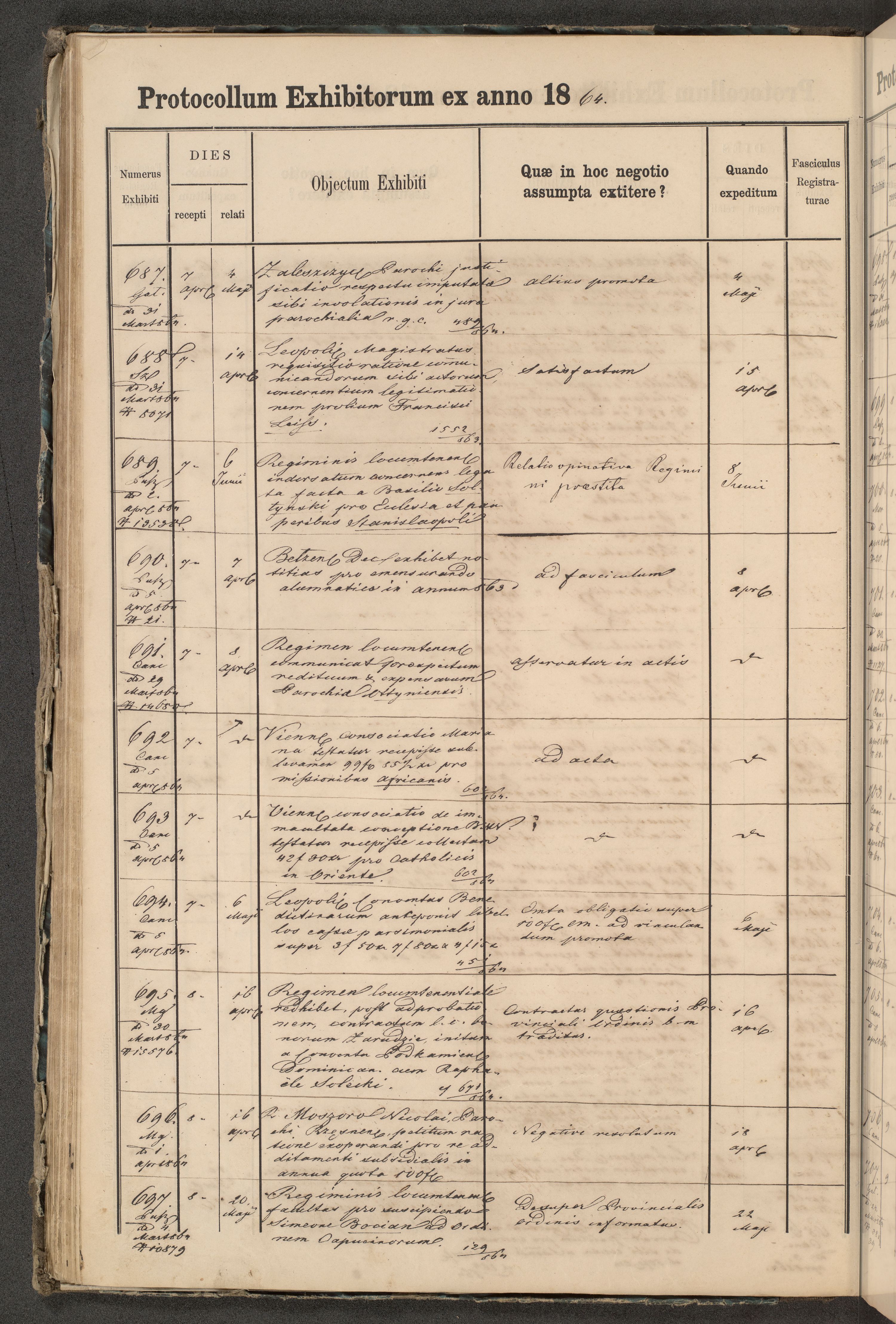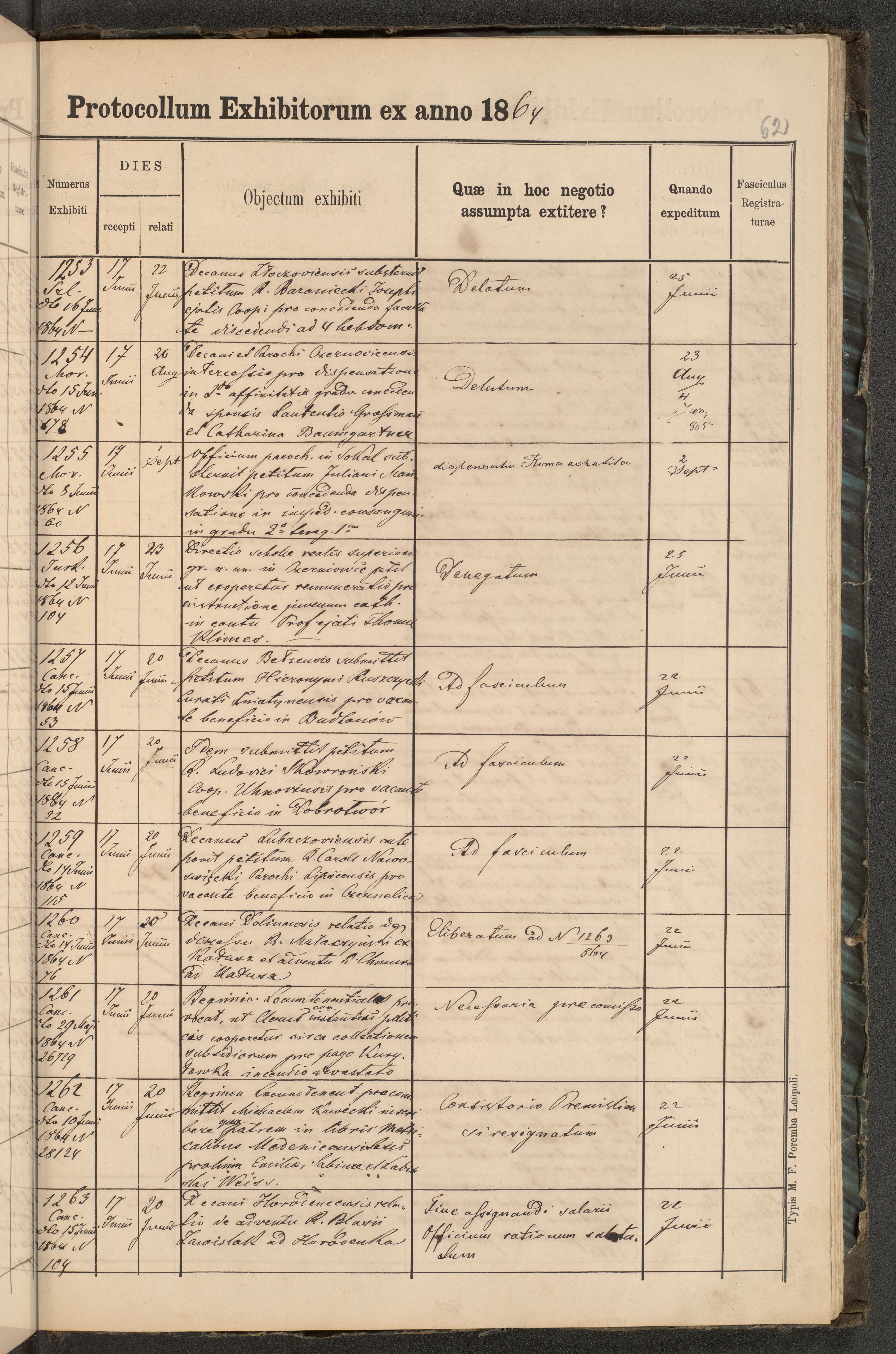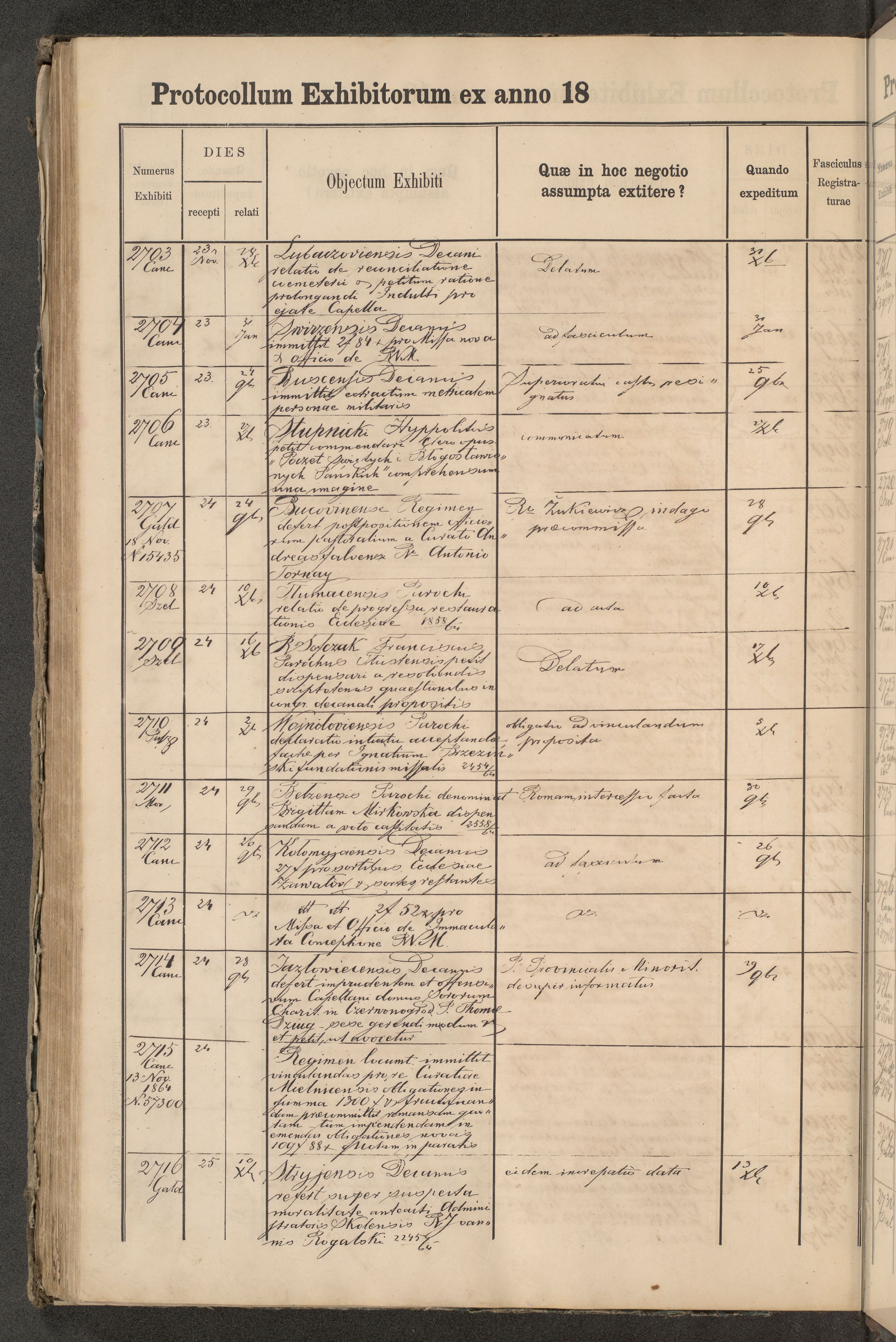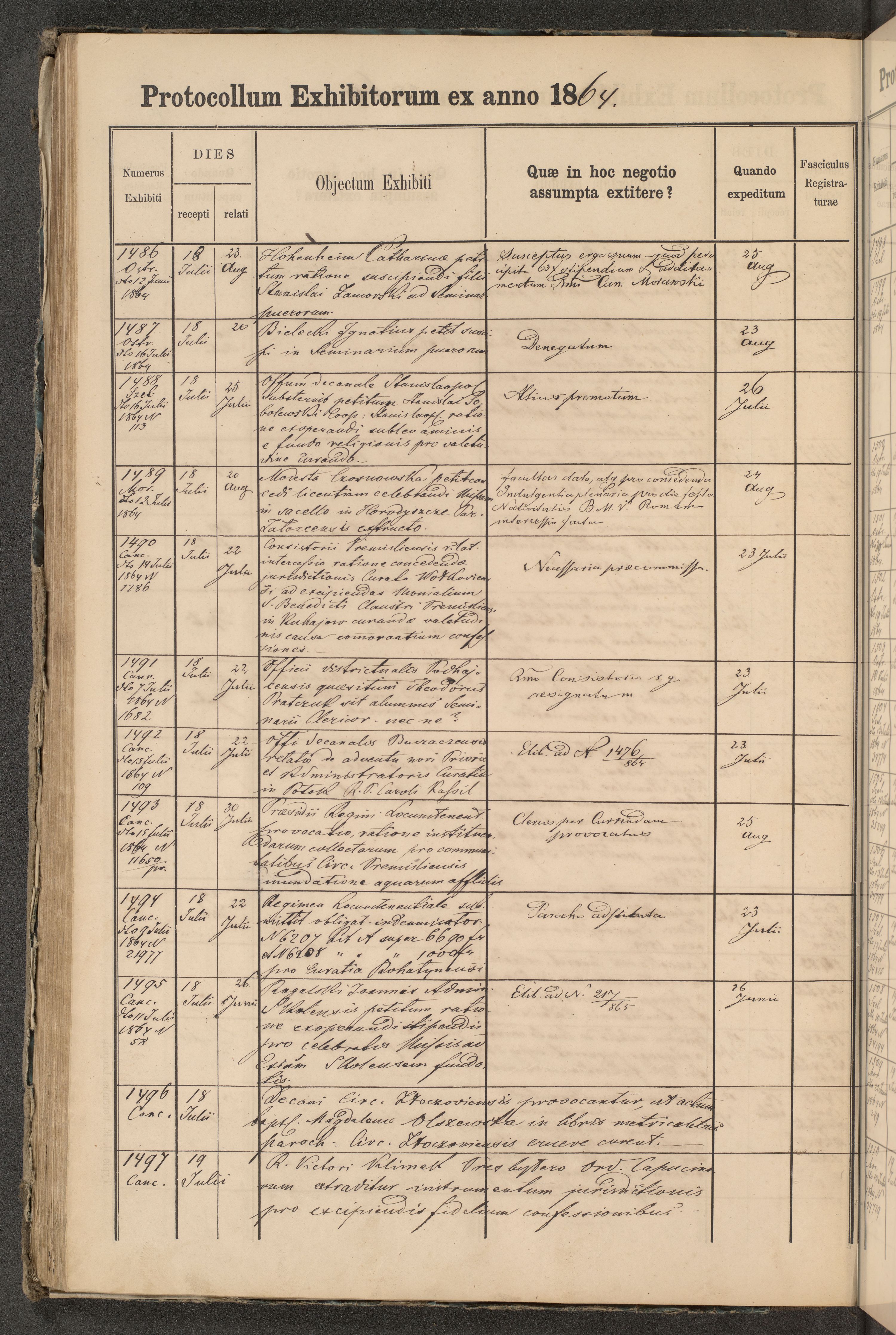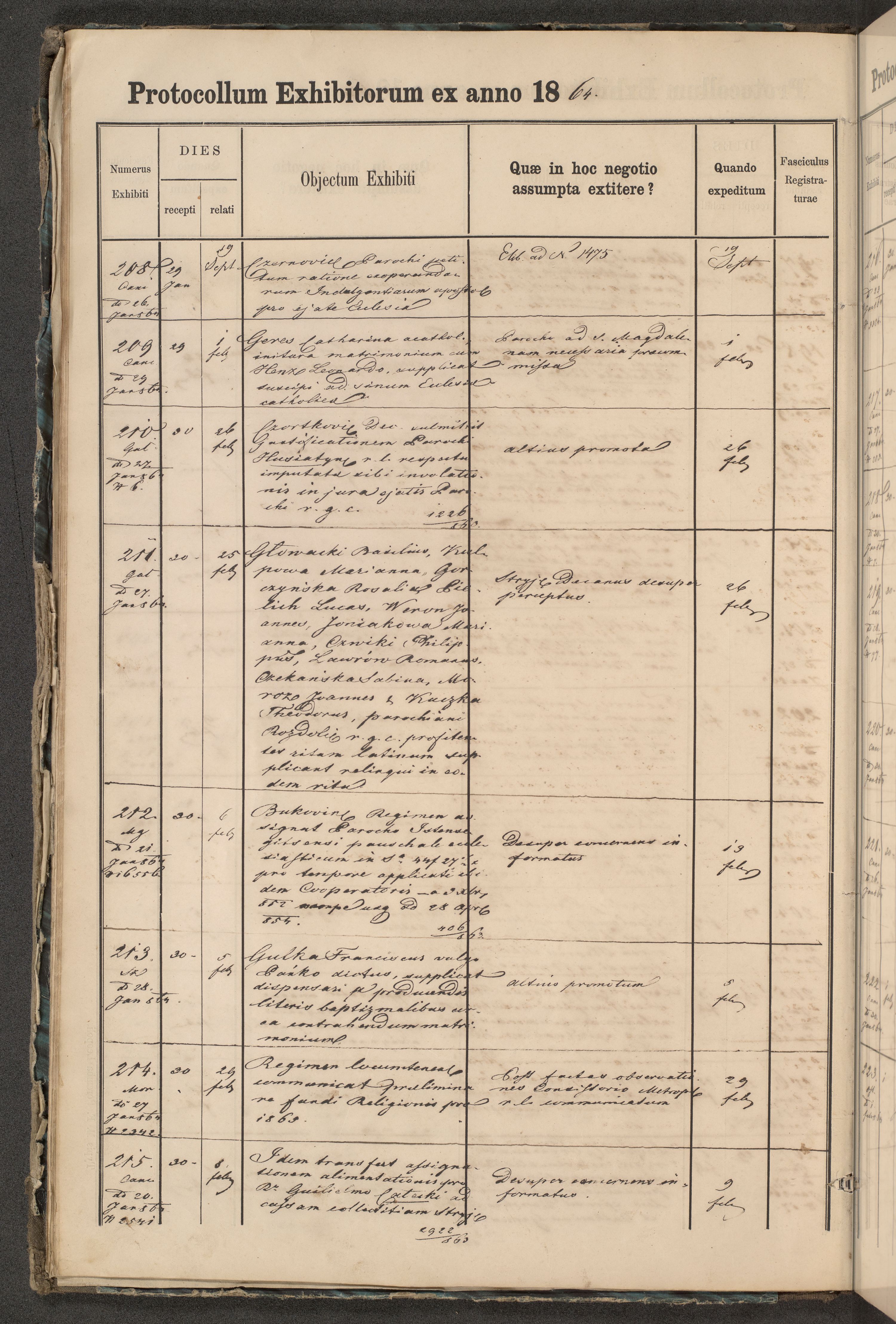 Protocollon exhibitorum in Ecclesiasticis ex anno 1864