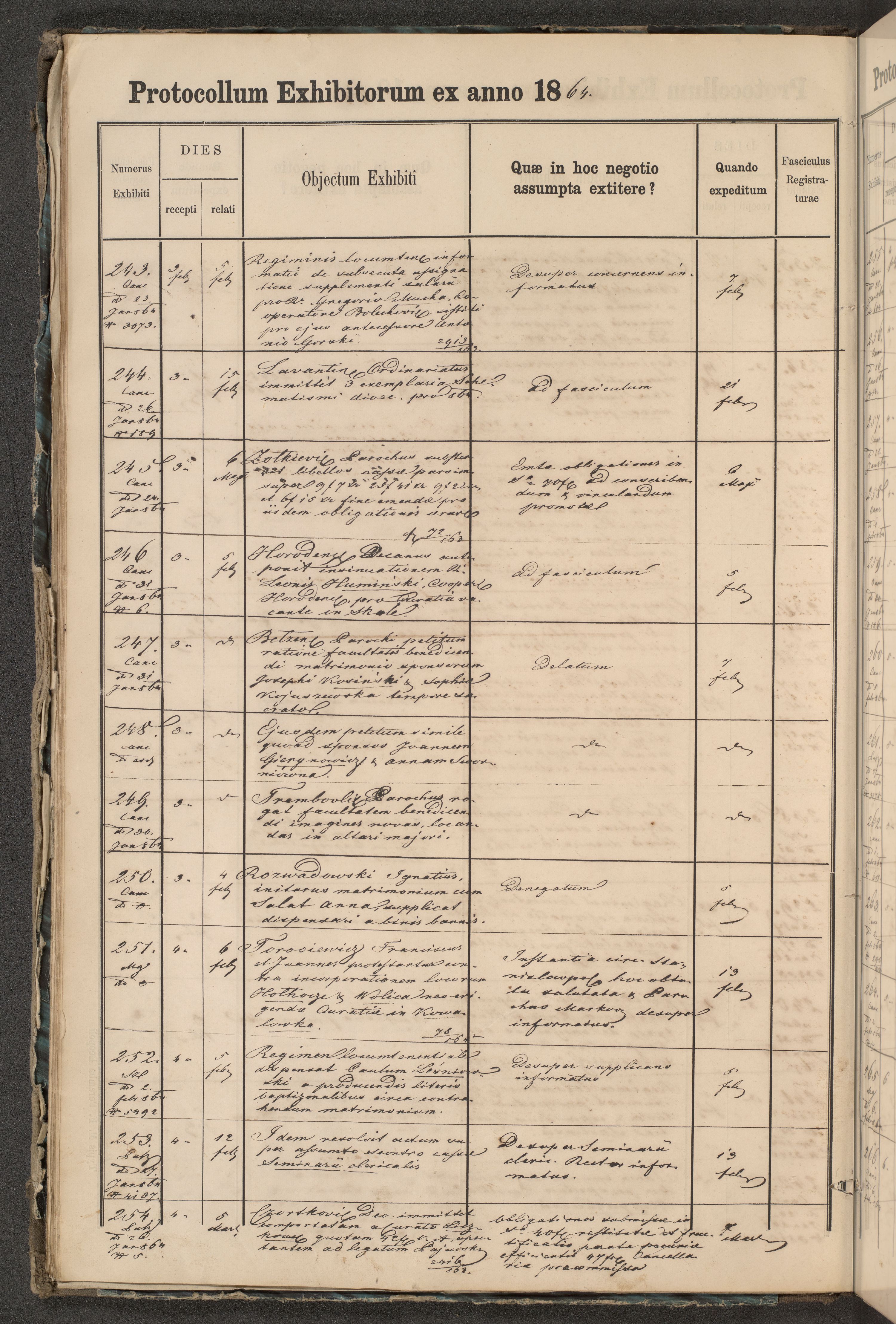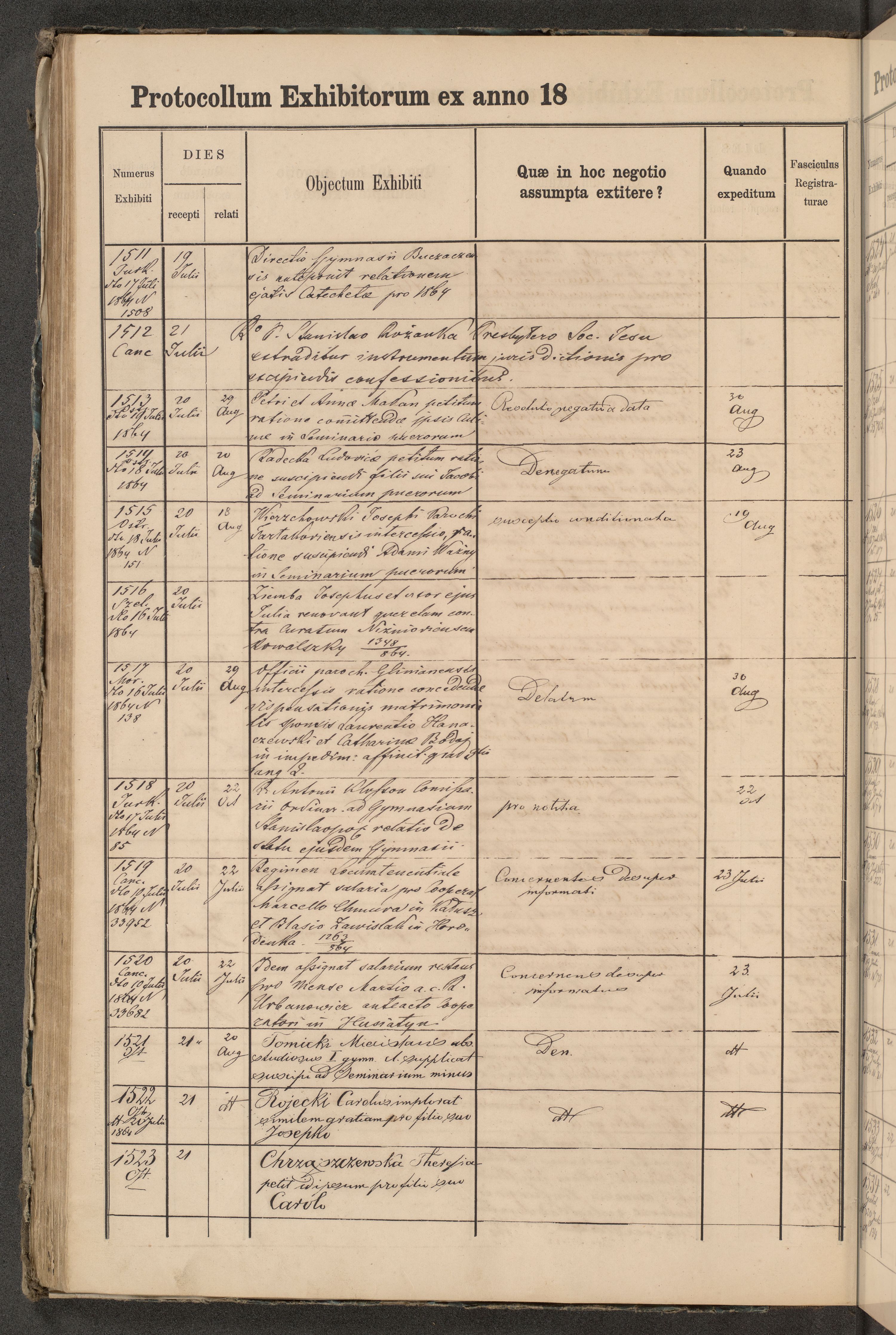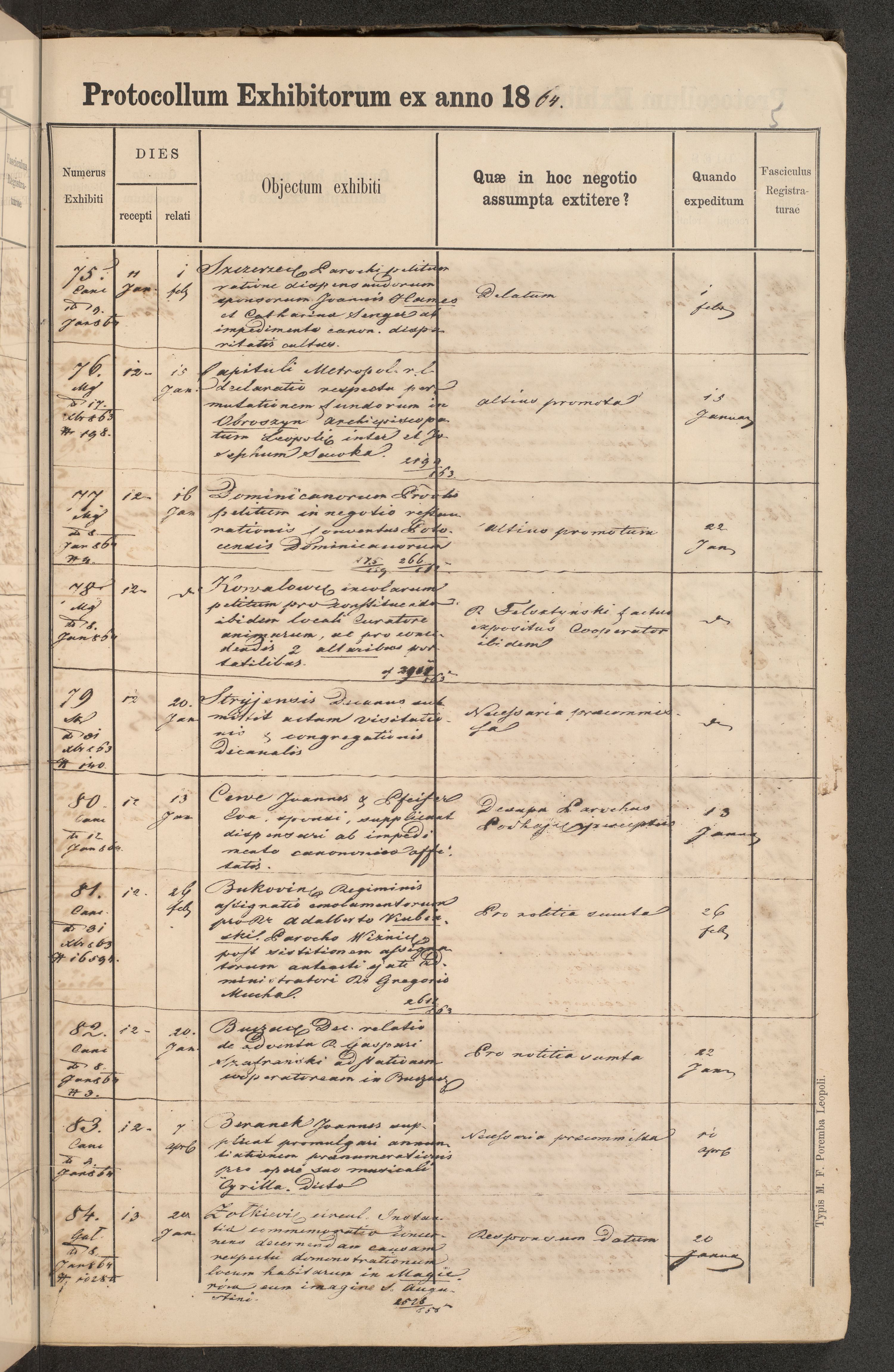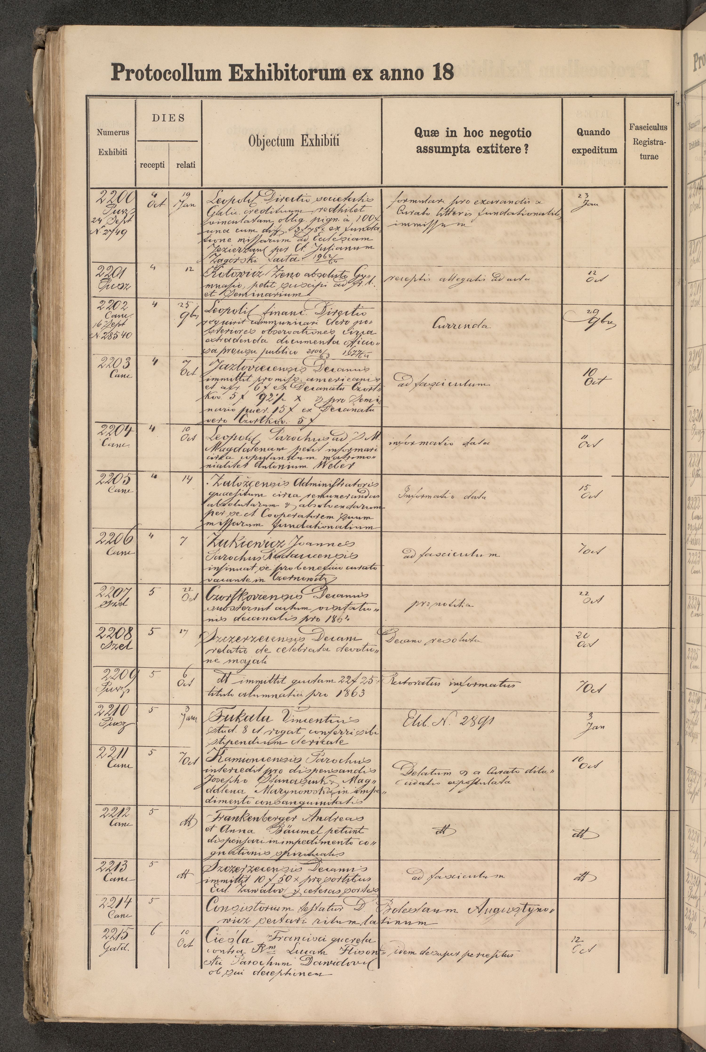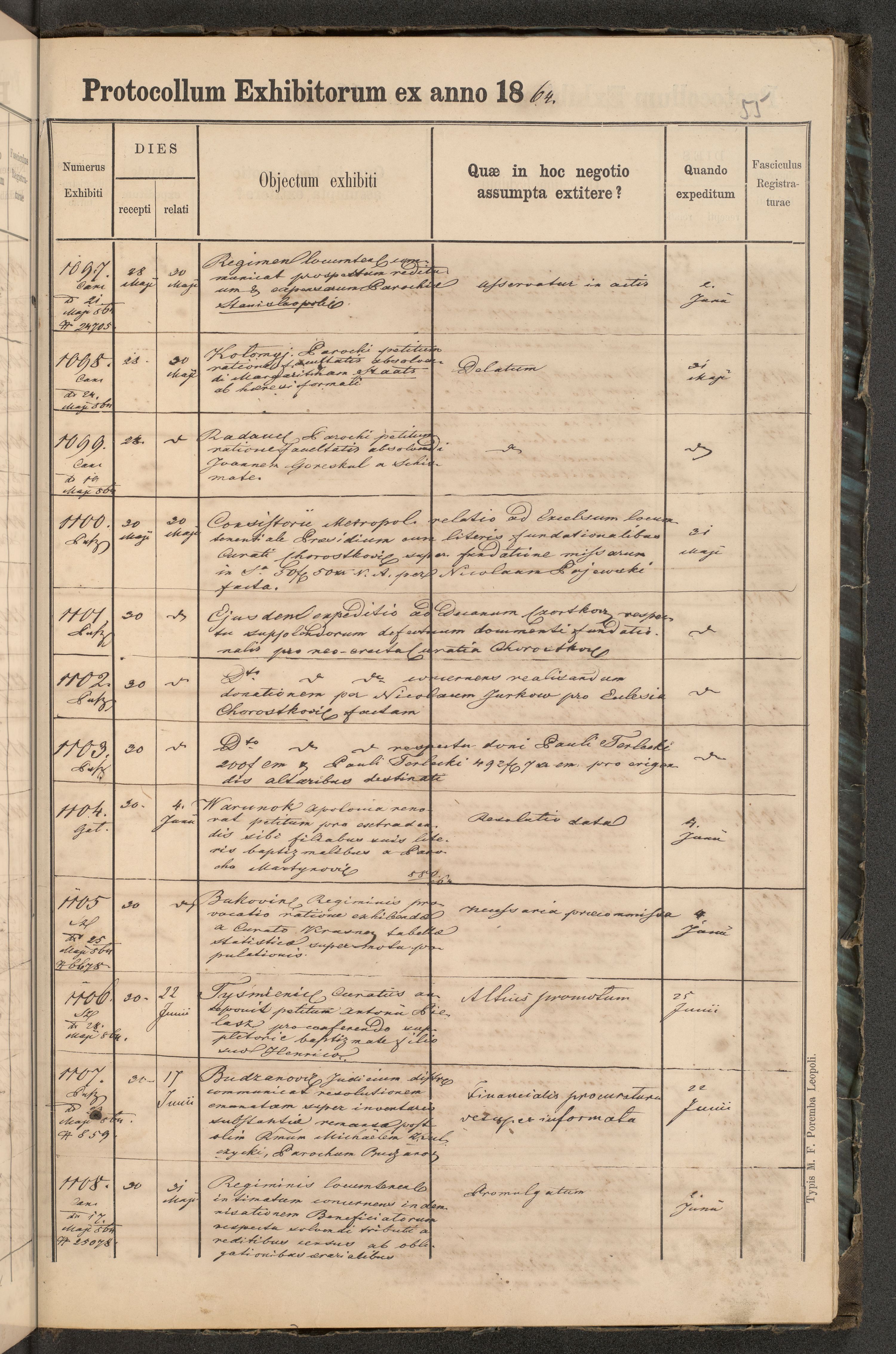 Protocollon exhibitorum in Ecclesiasticis ex anno 1864
