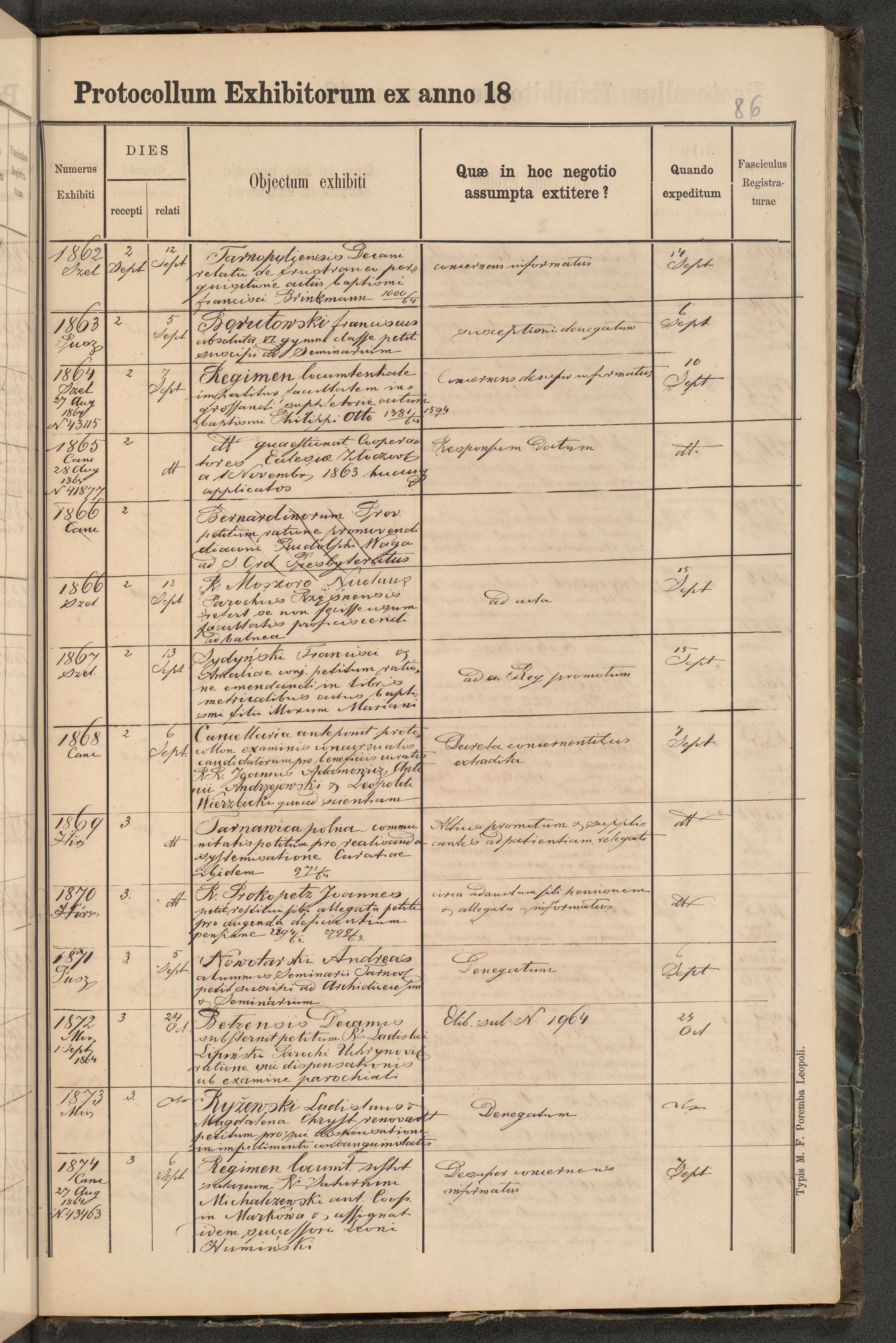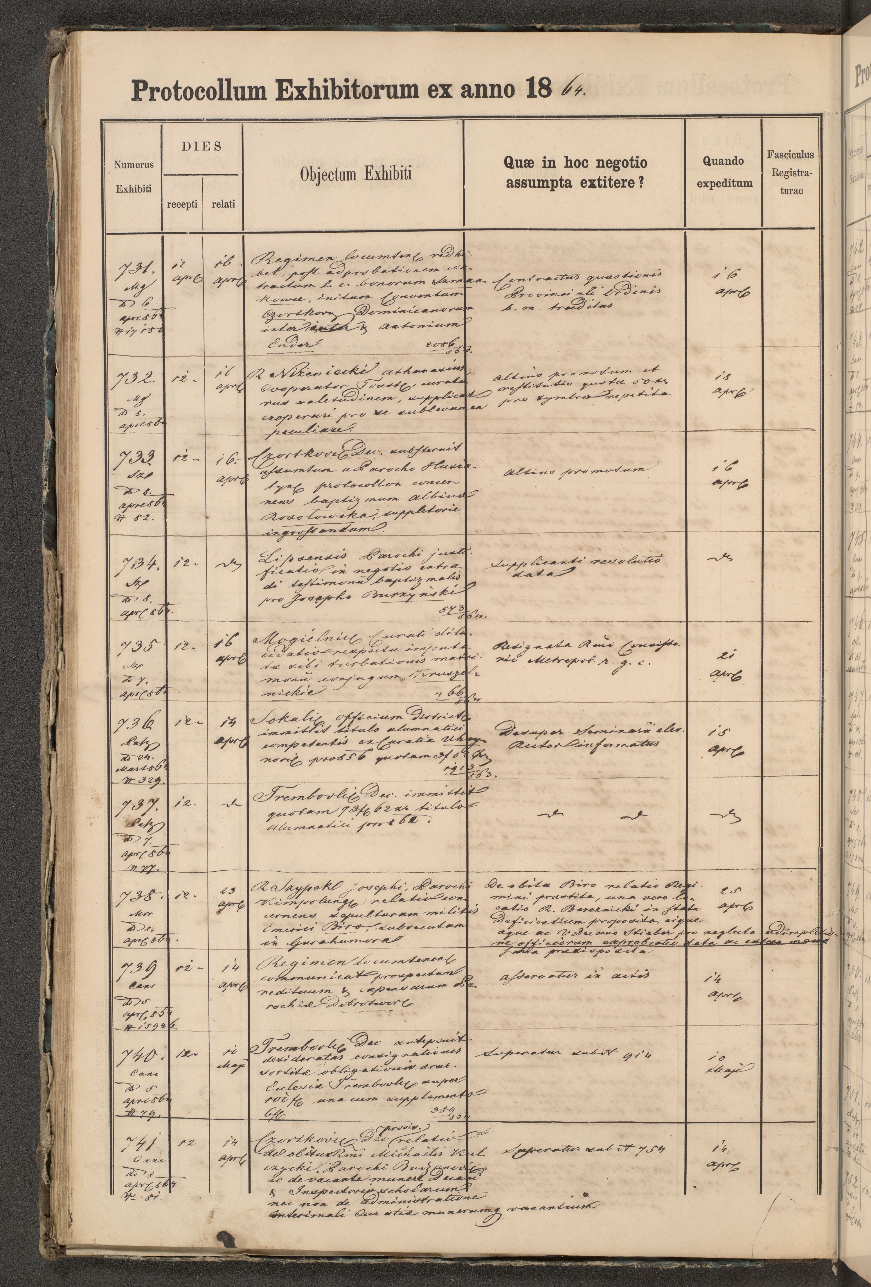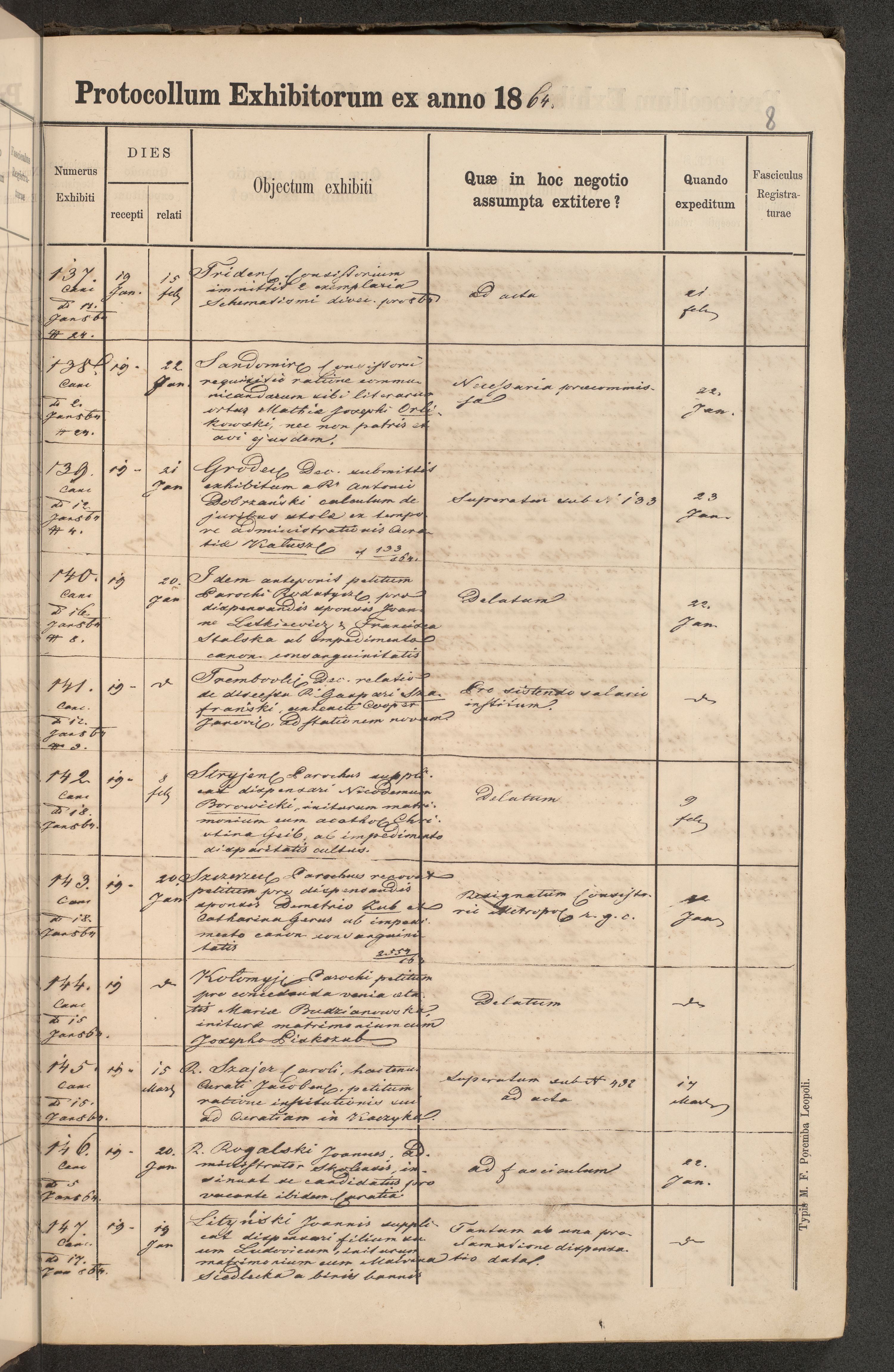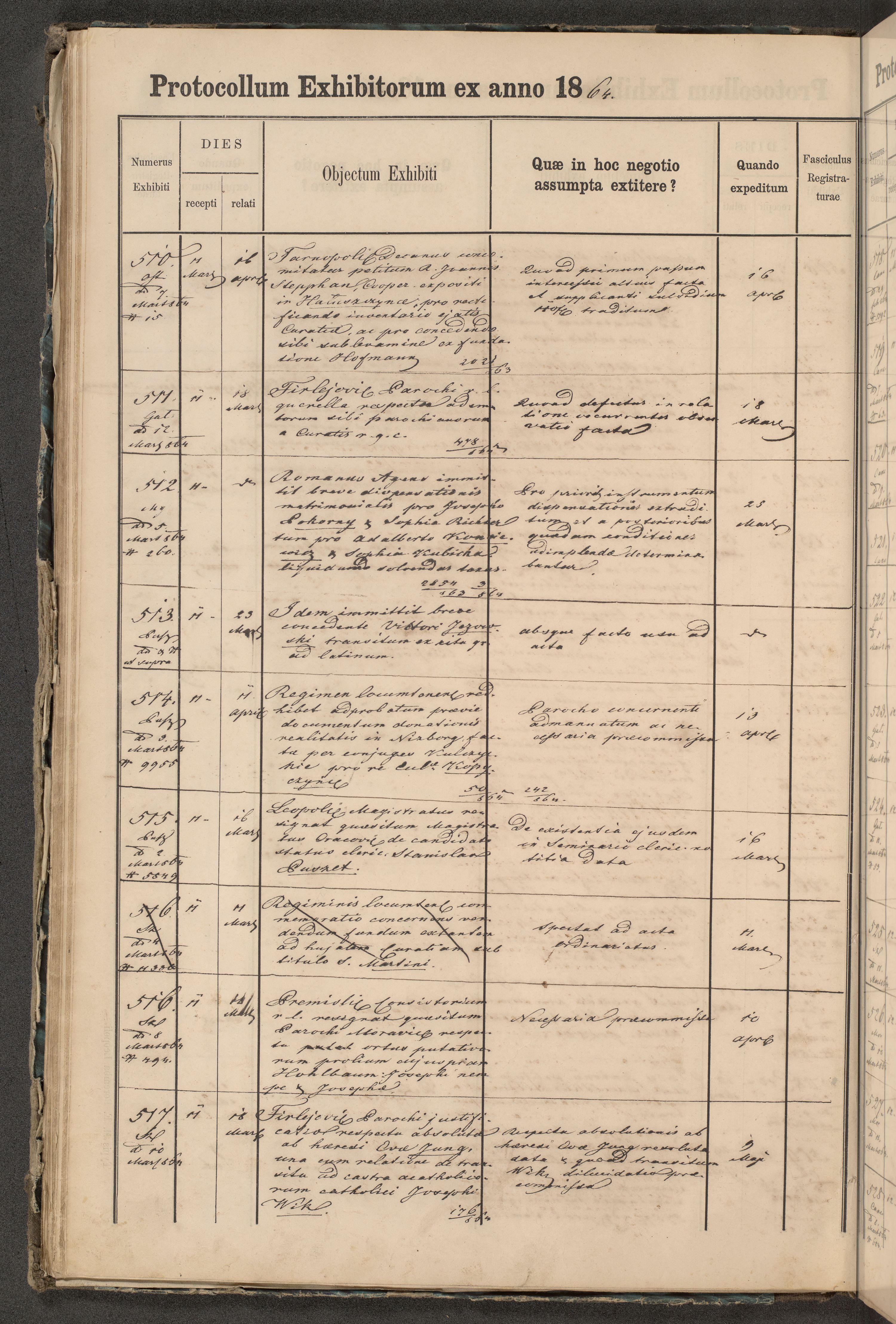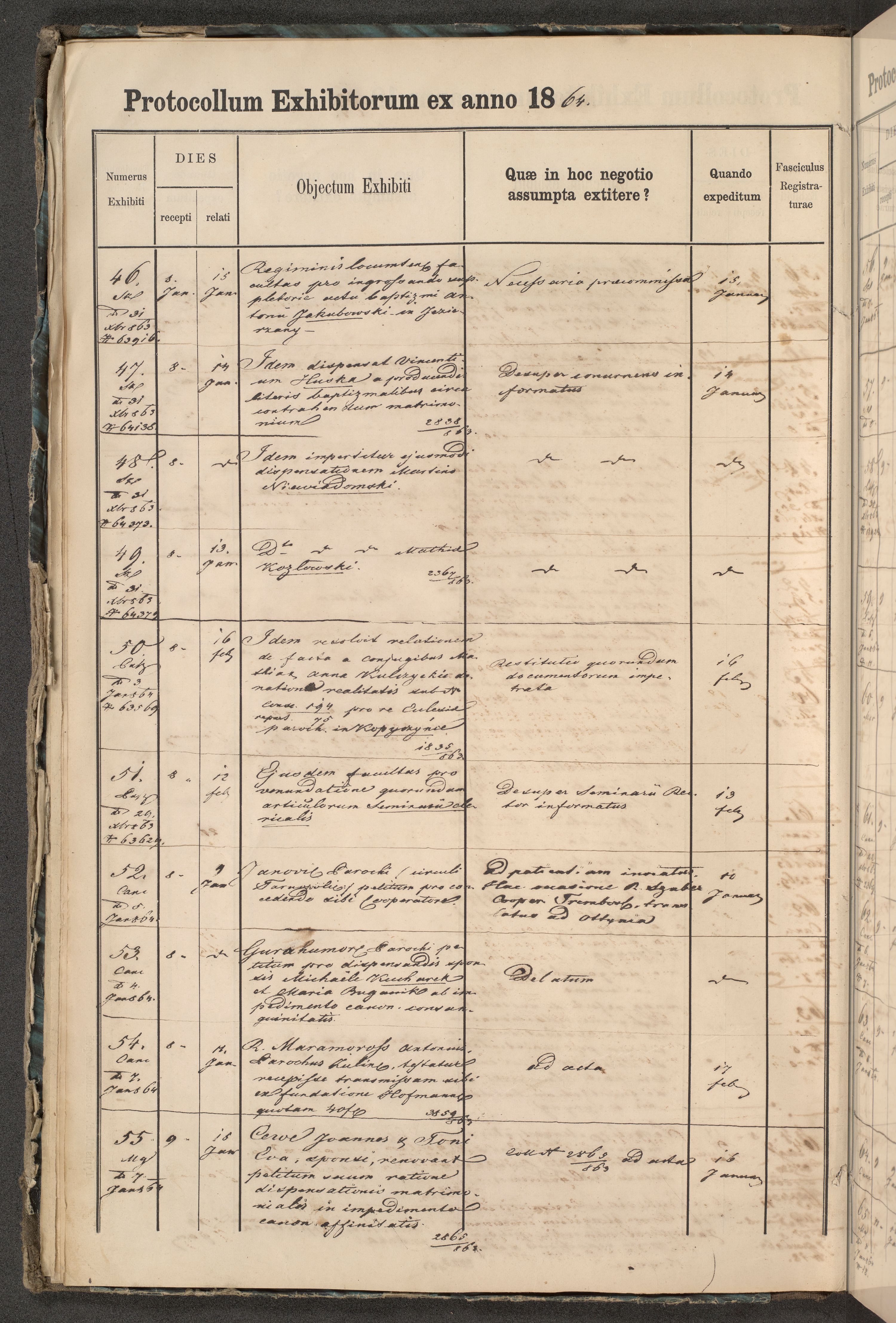 Protocollon exhibitorum in Ecclesiasticis ex anno 1864