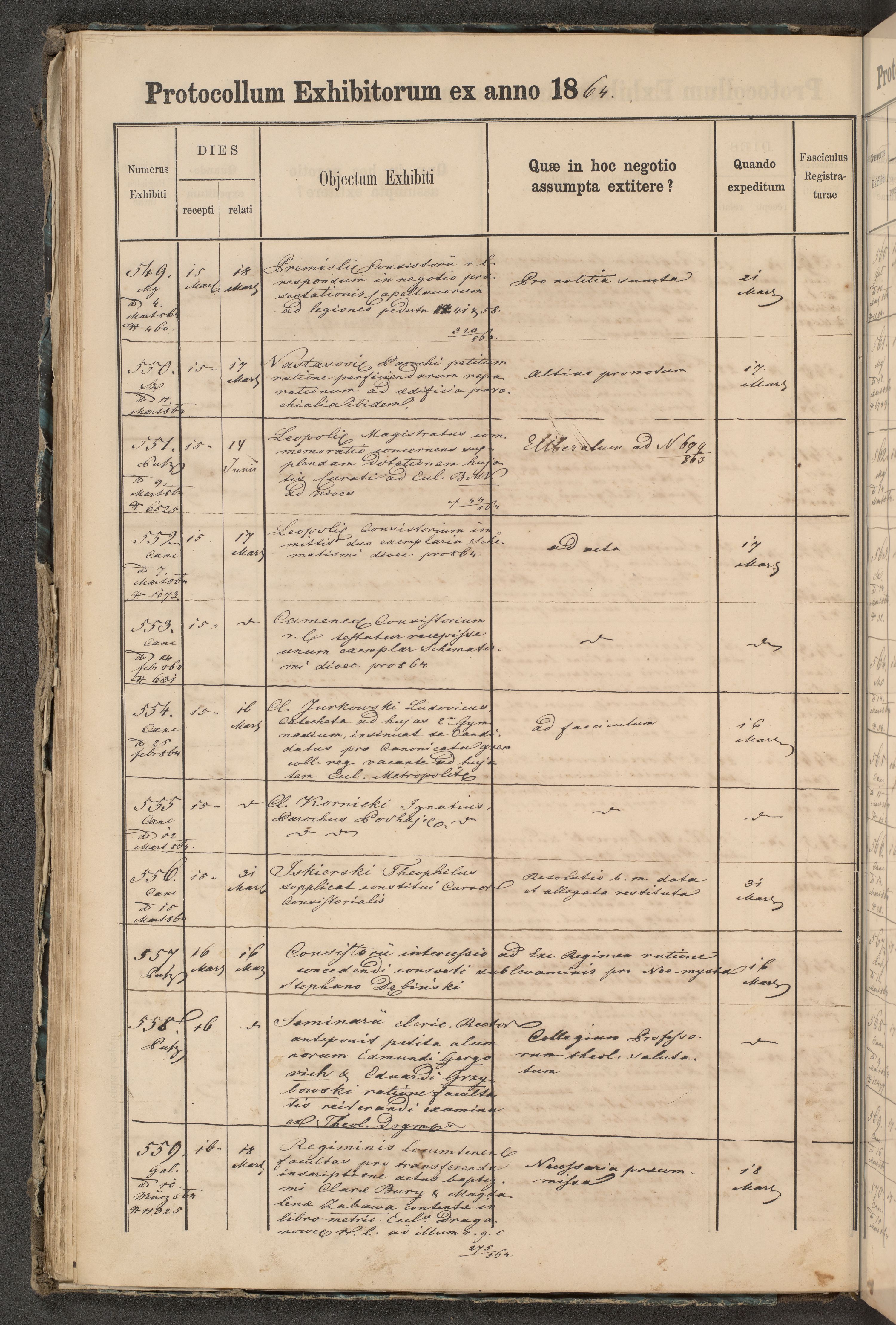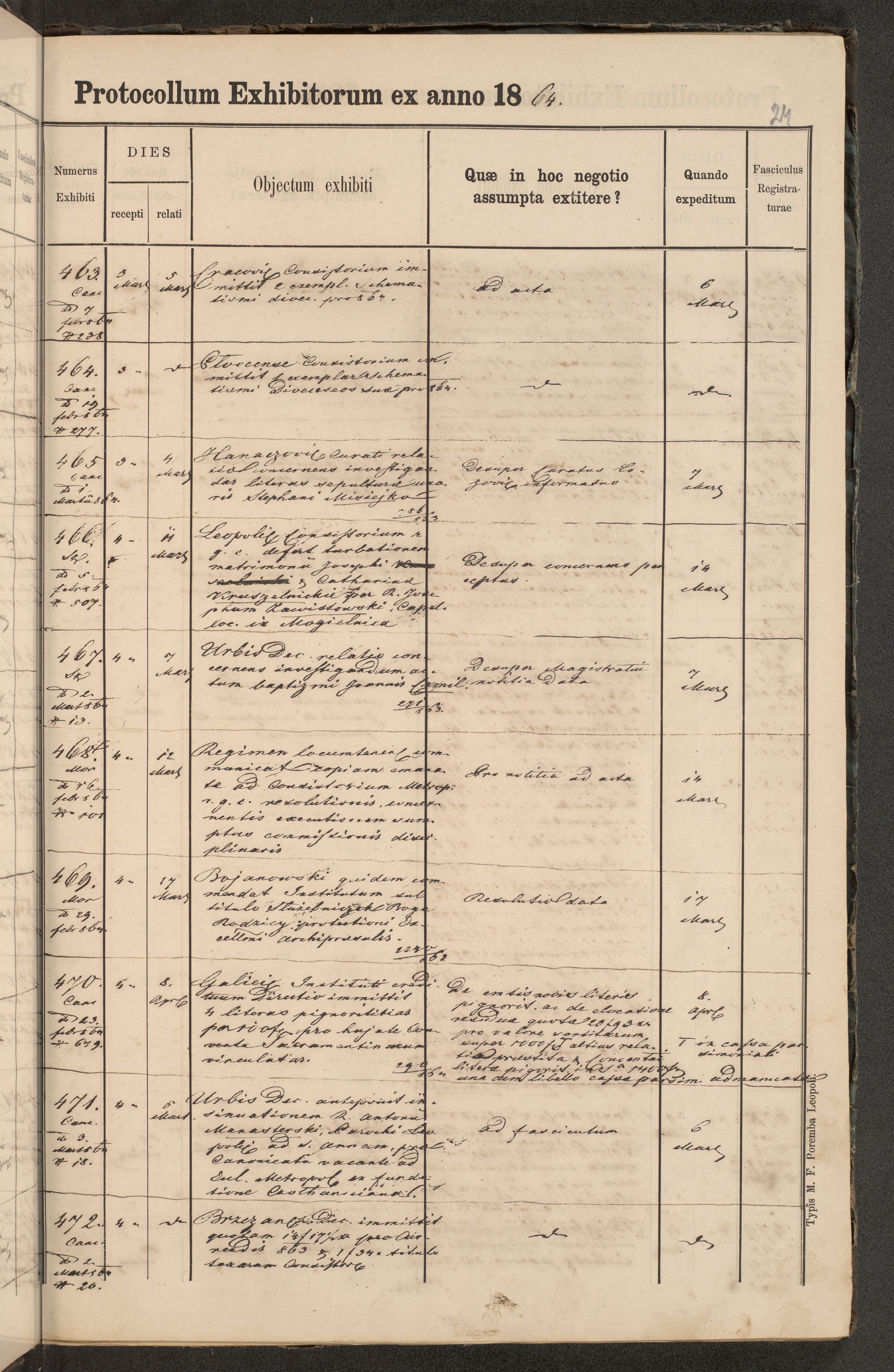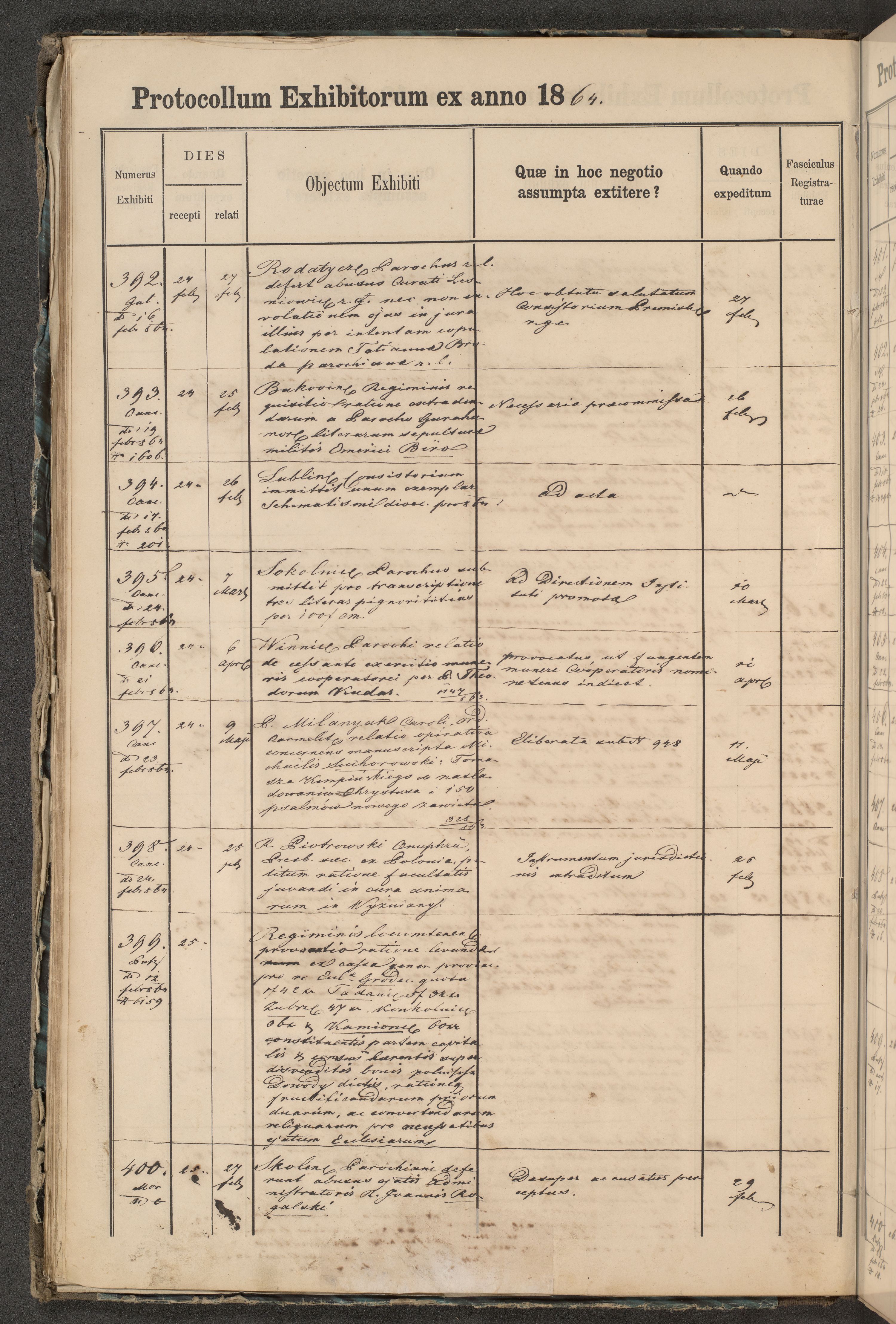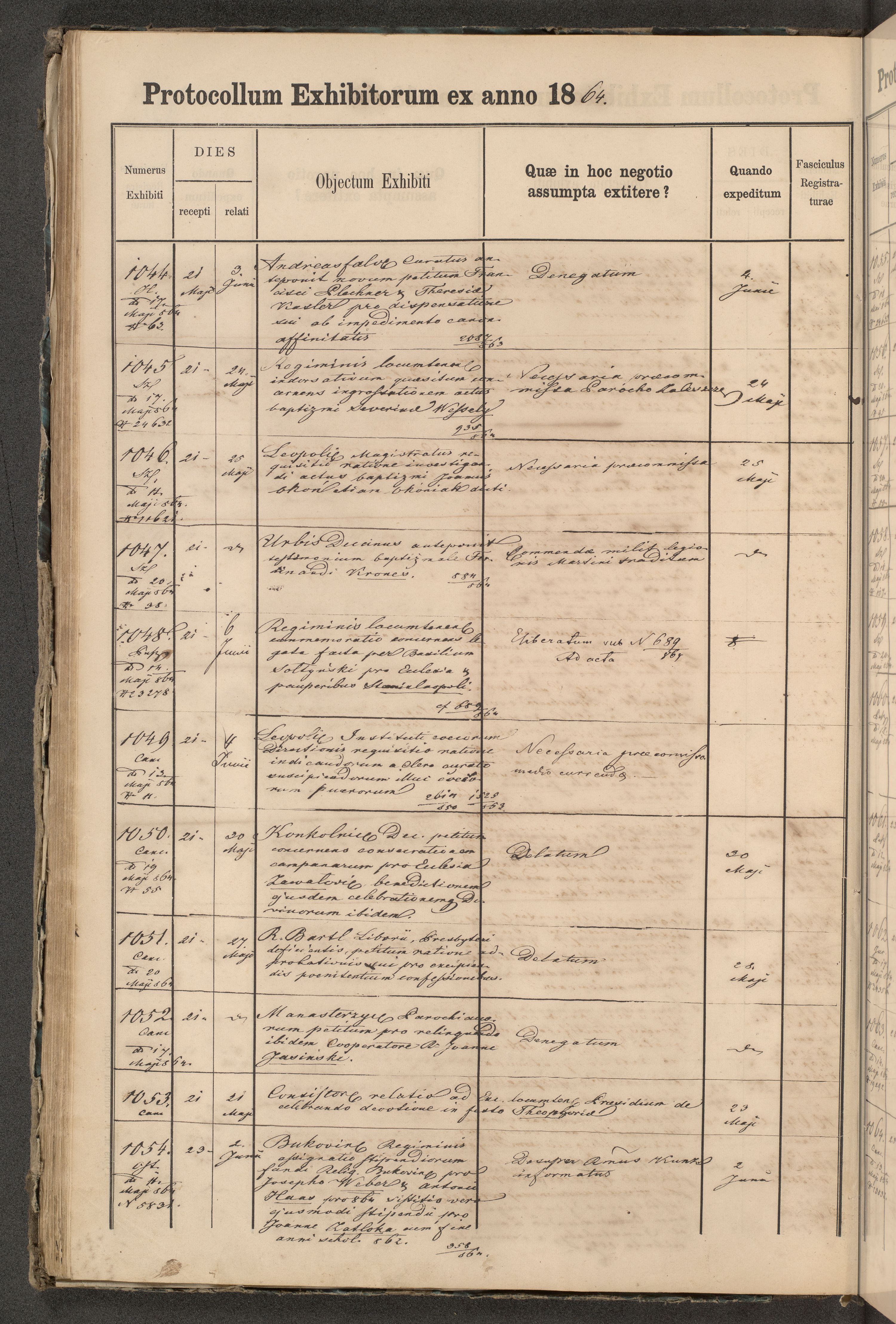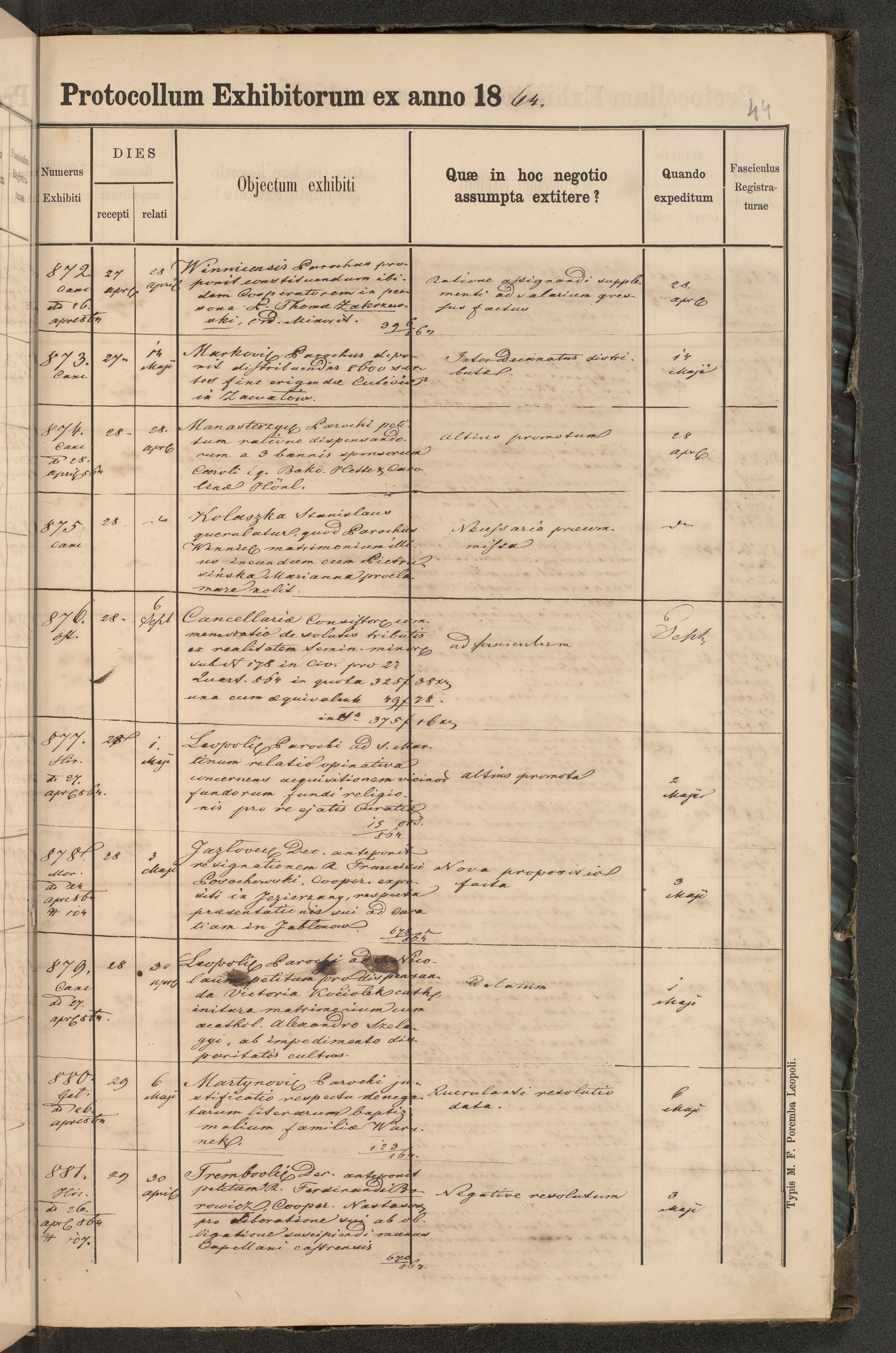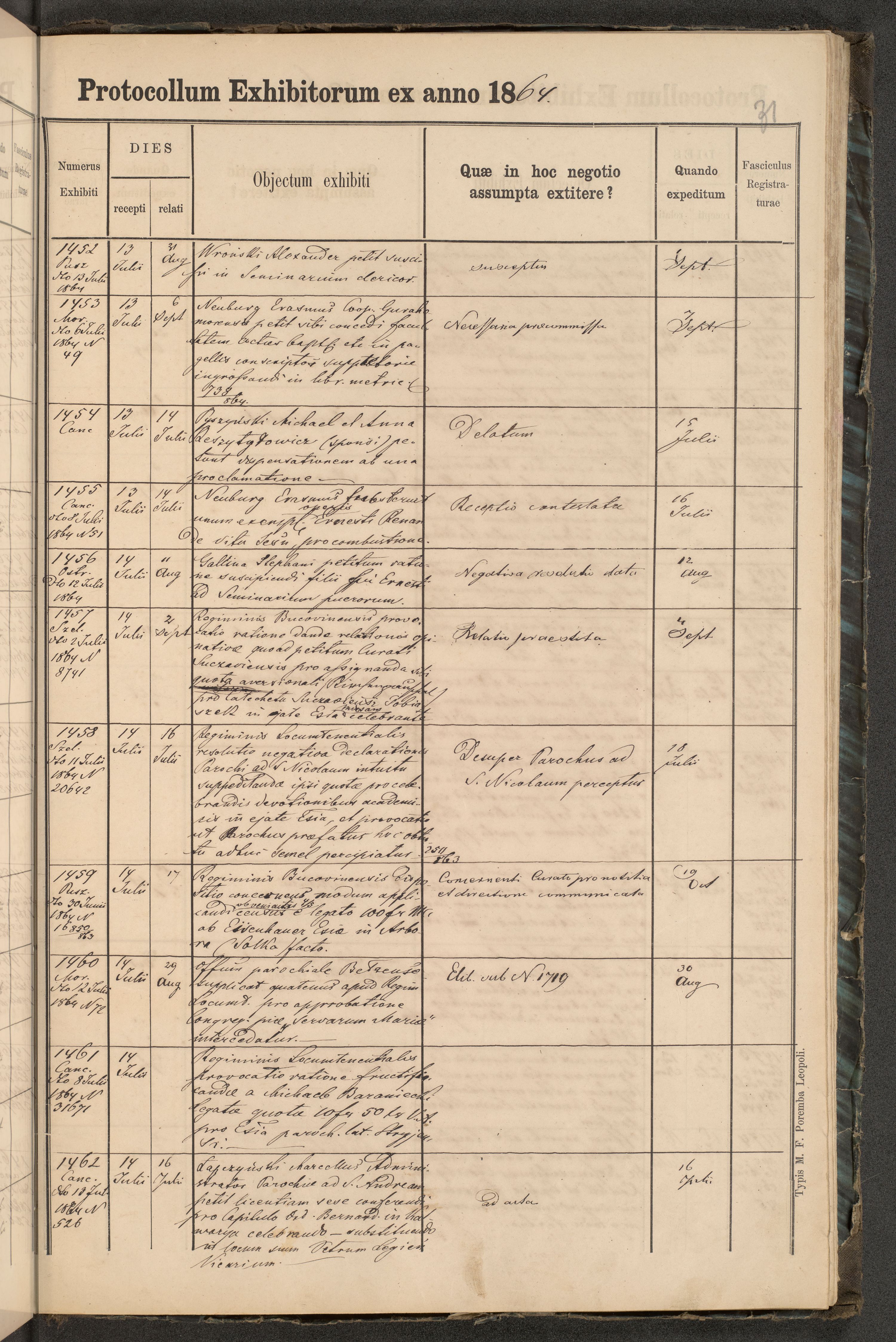 Protocollon exhibitorum in Ecclesiasticis ex anno 1864