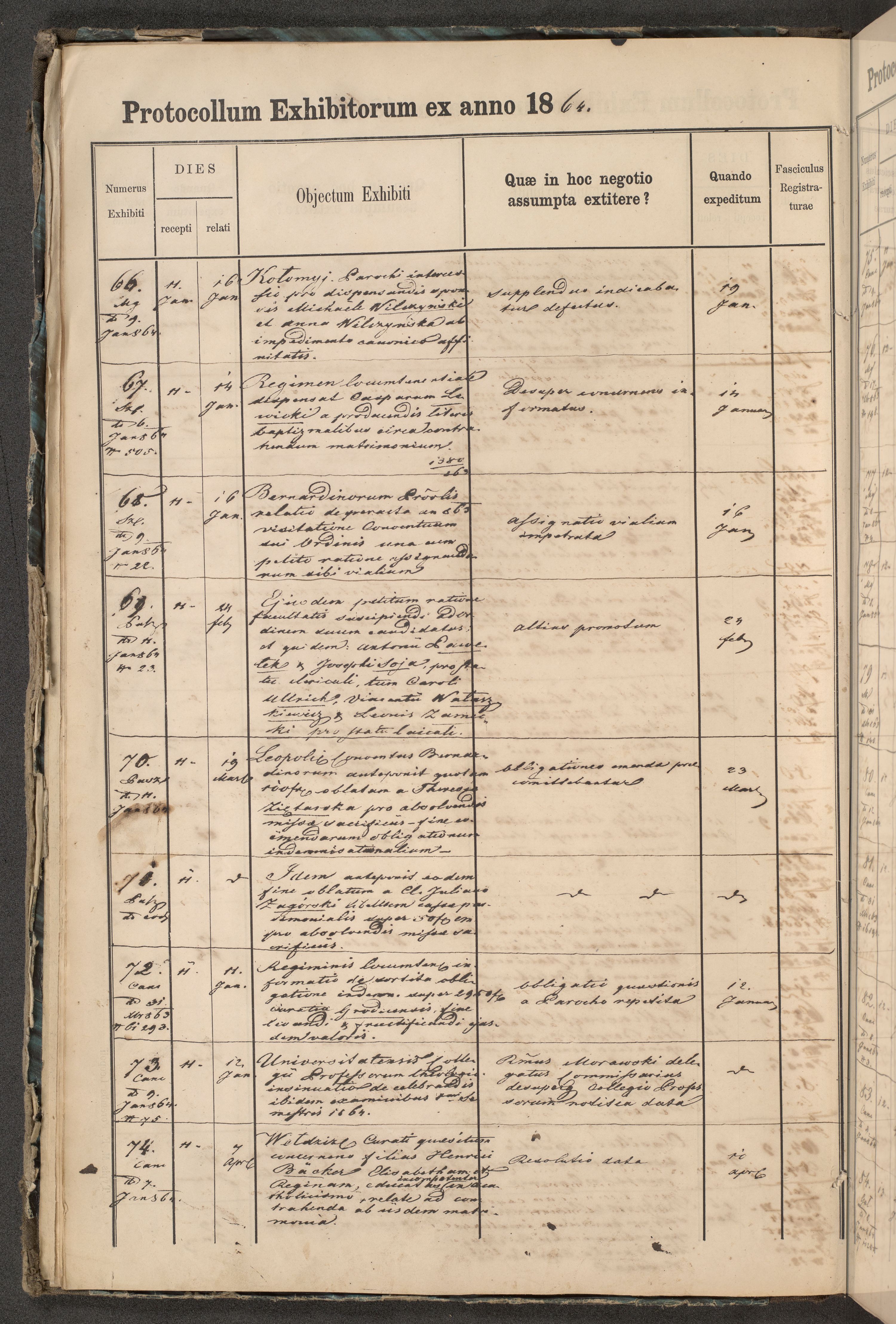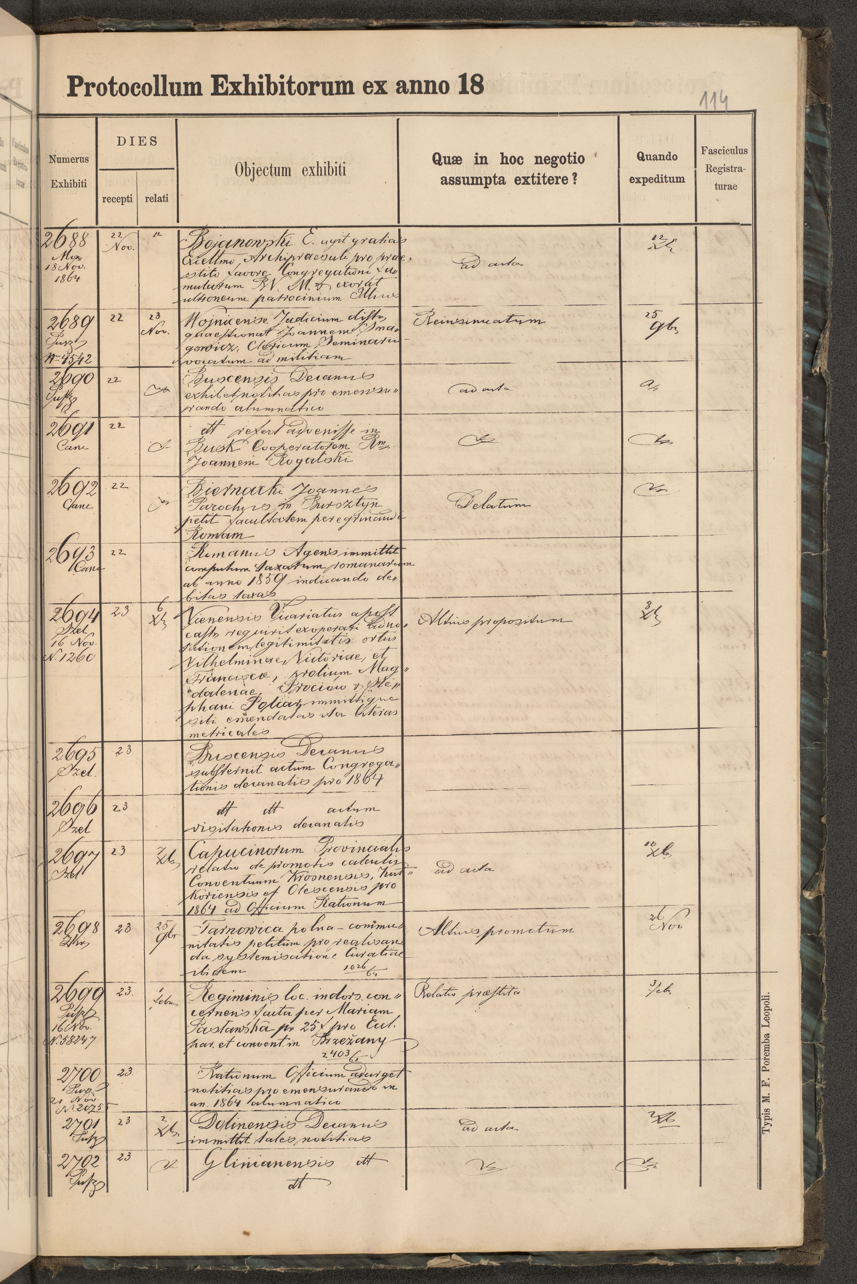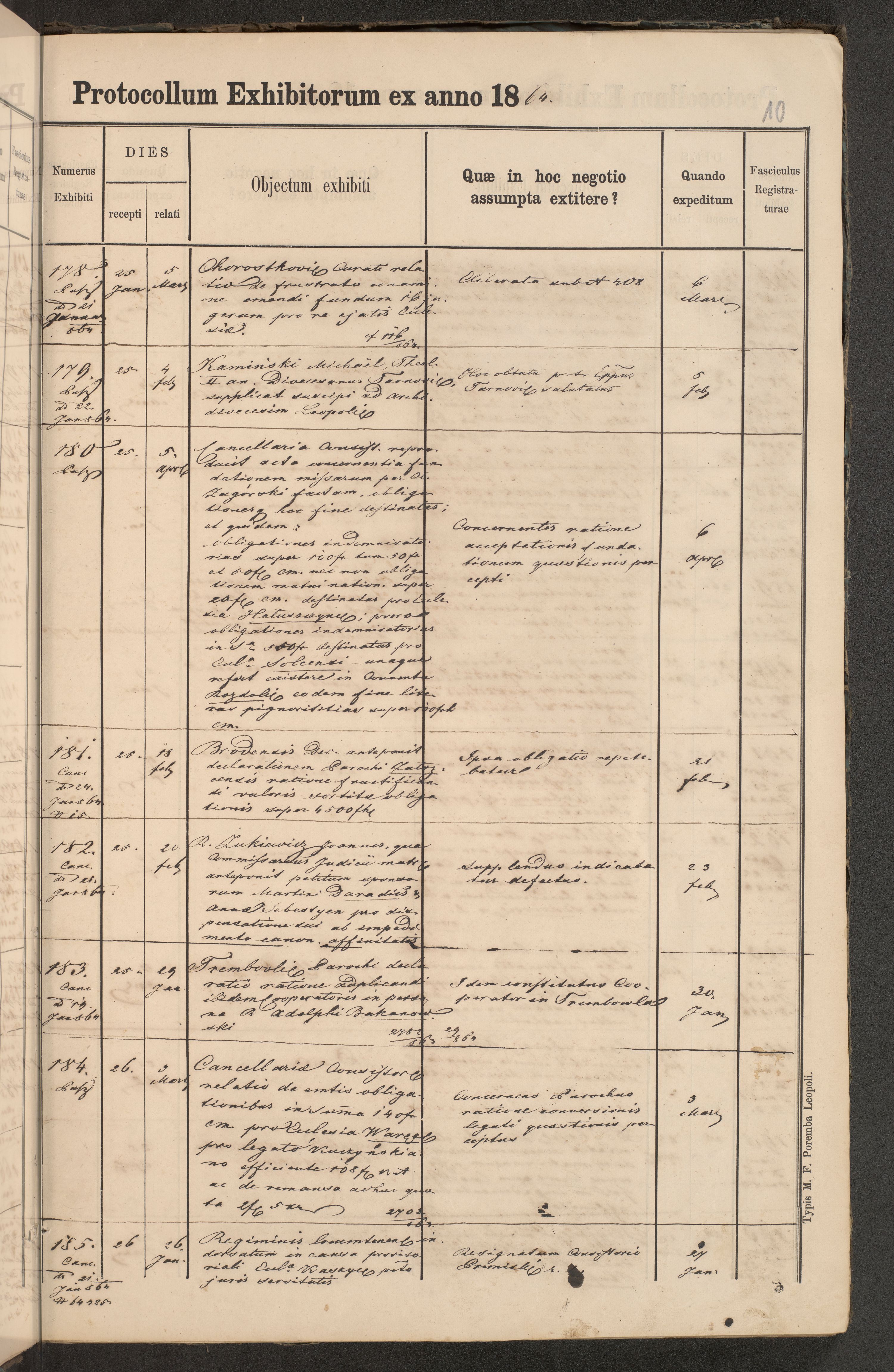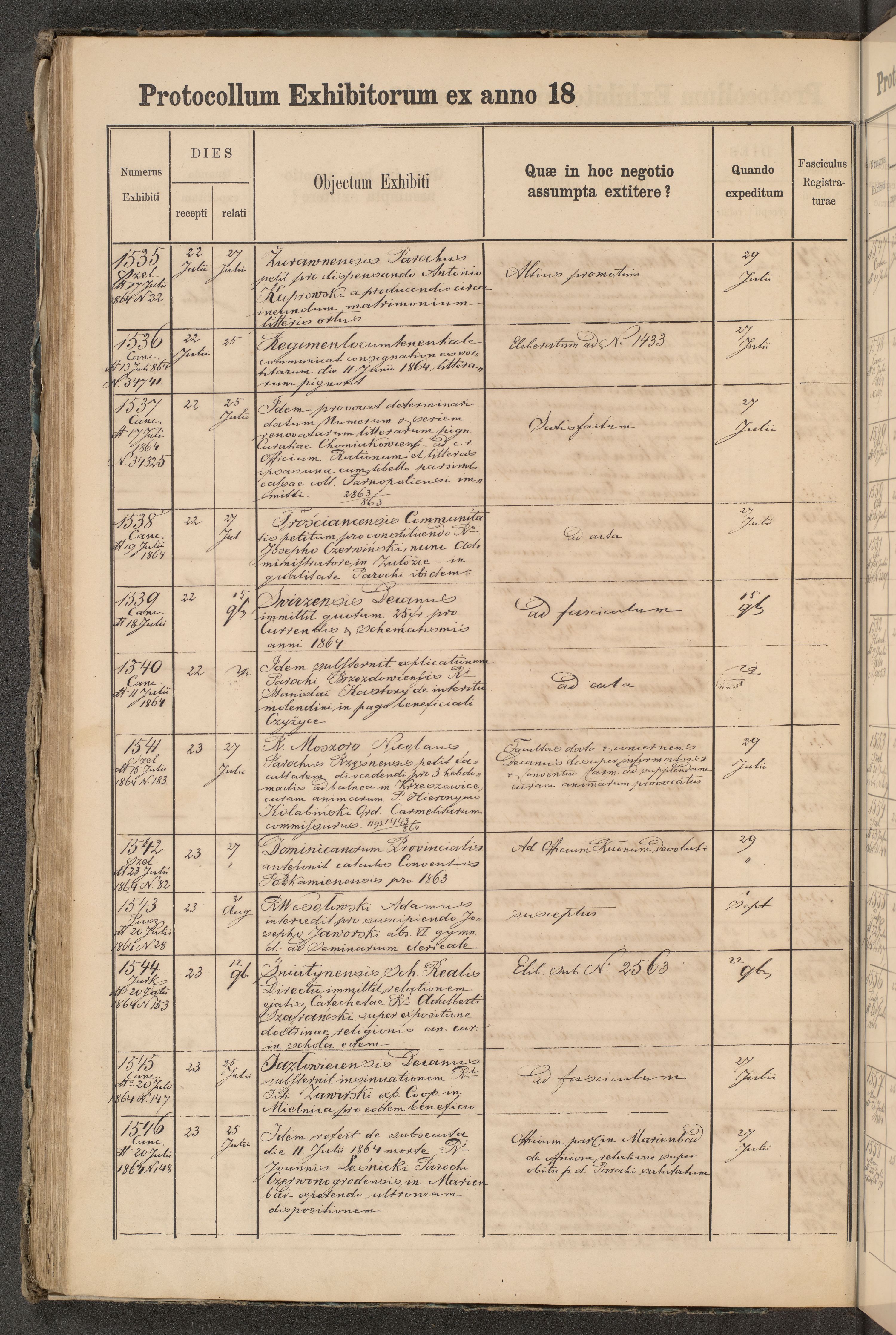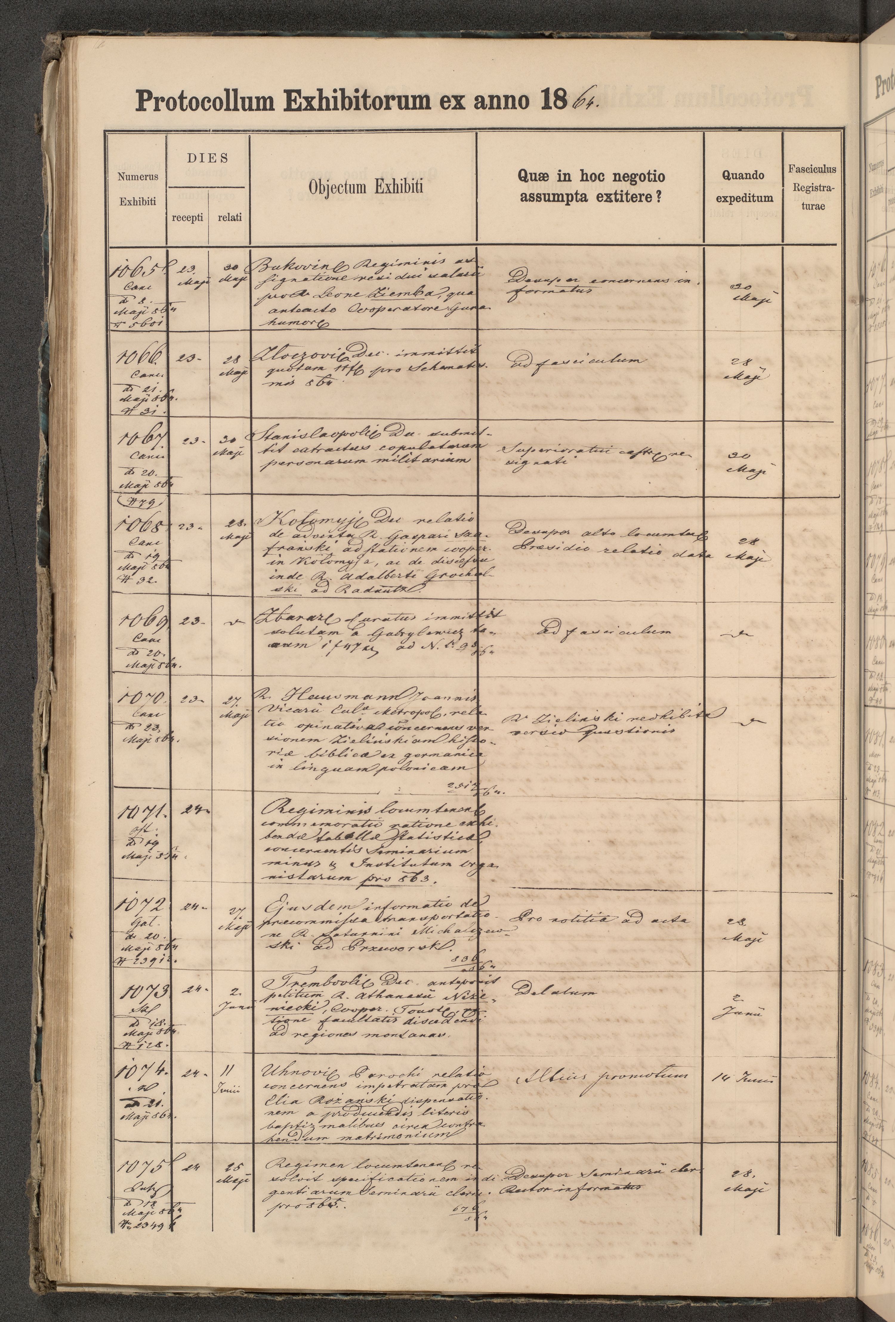 Protocollon exhibitorum in Ecclesiasticis ex anno 1864