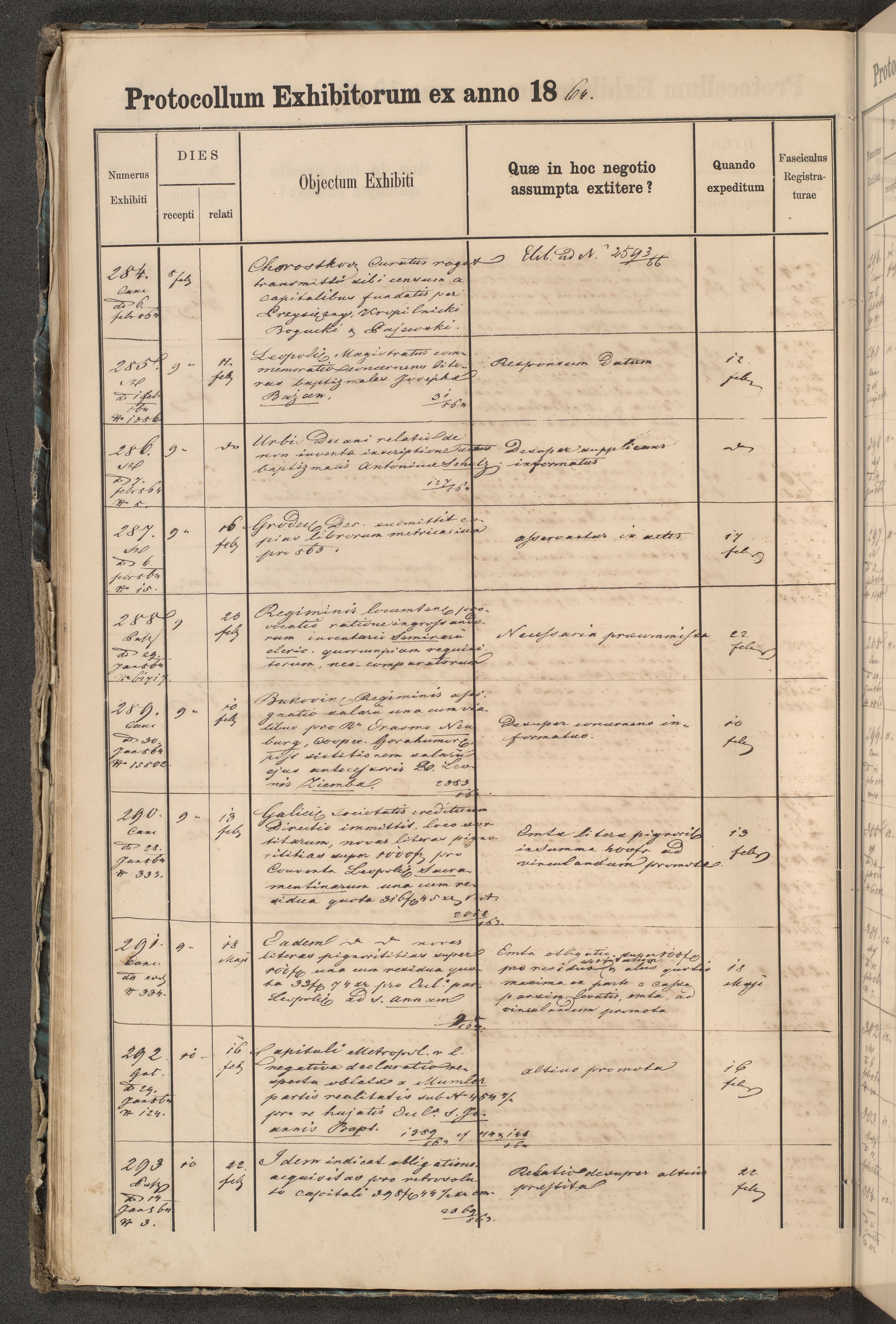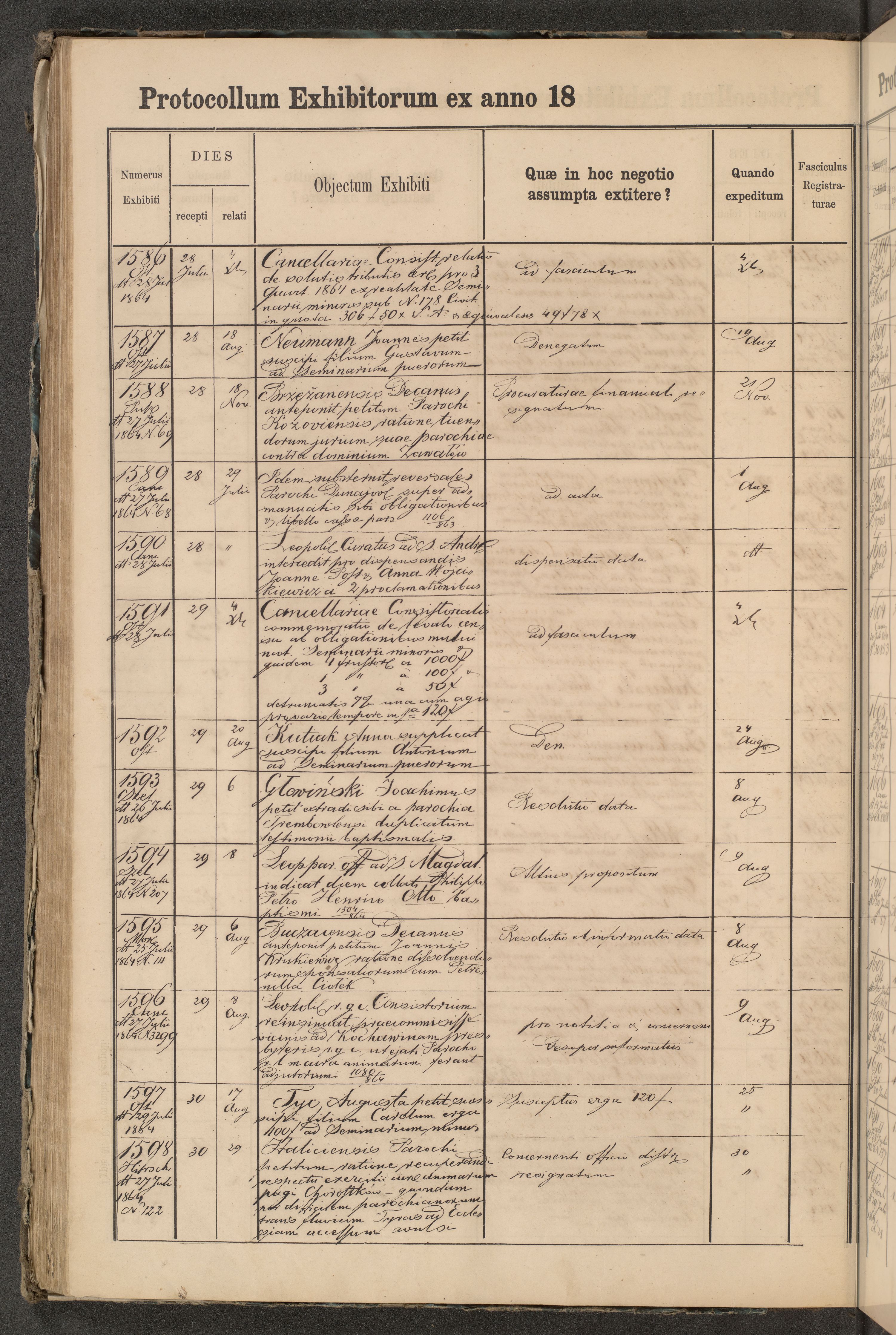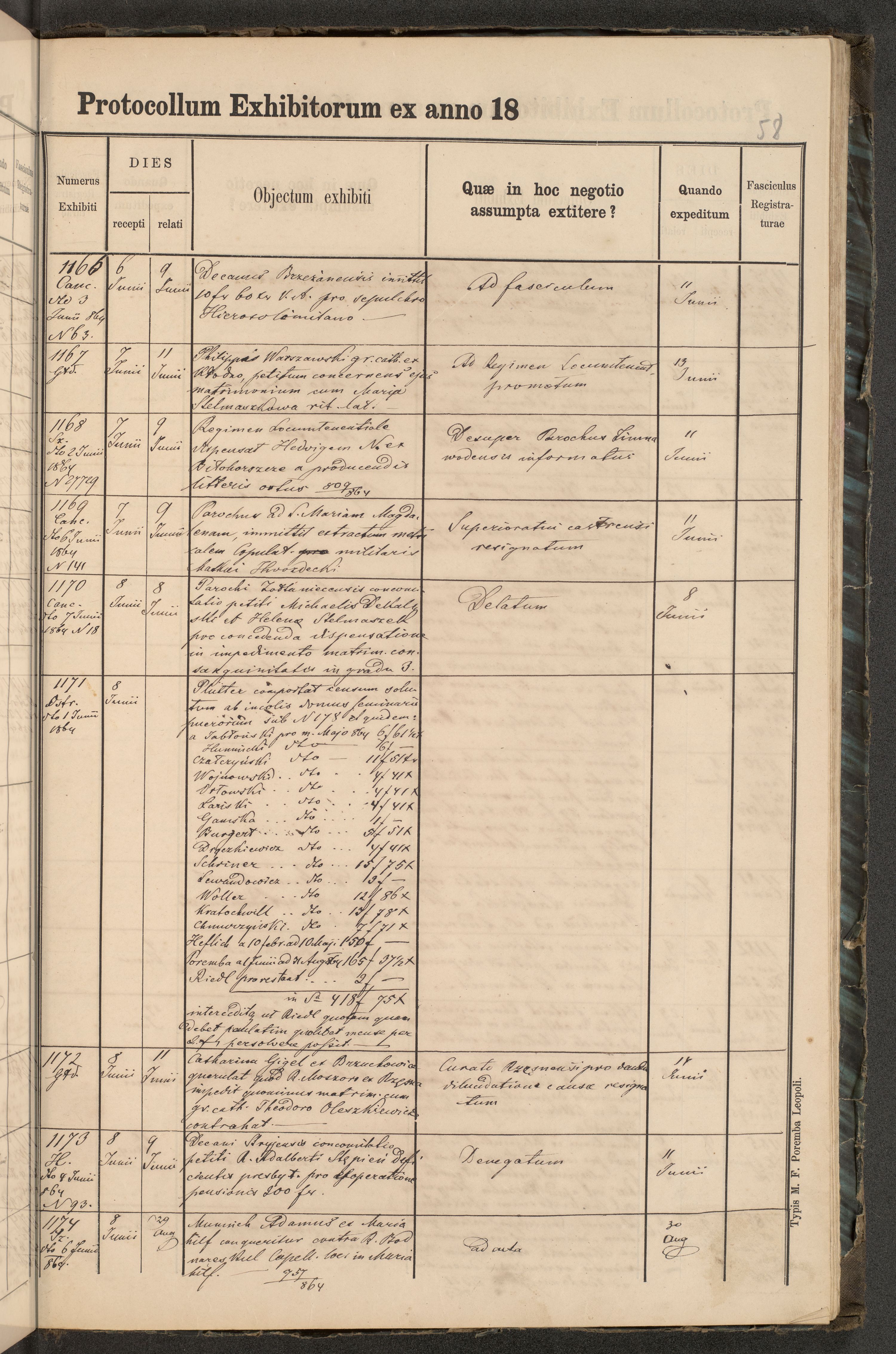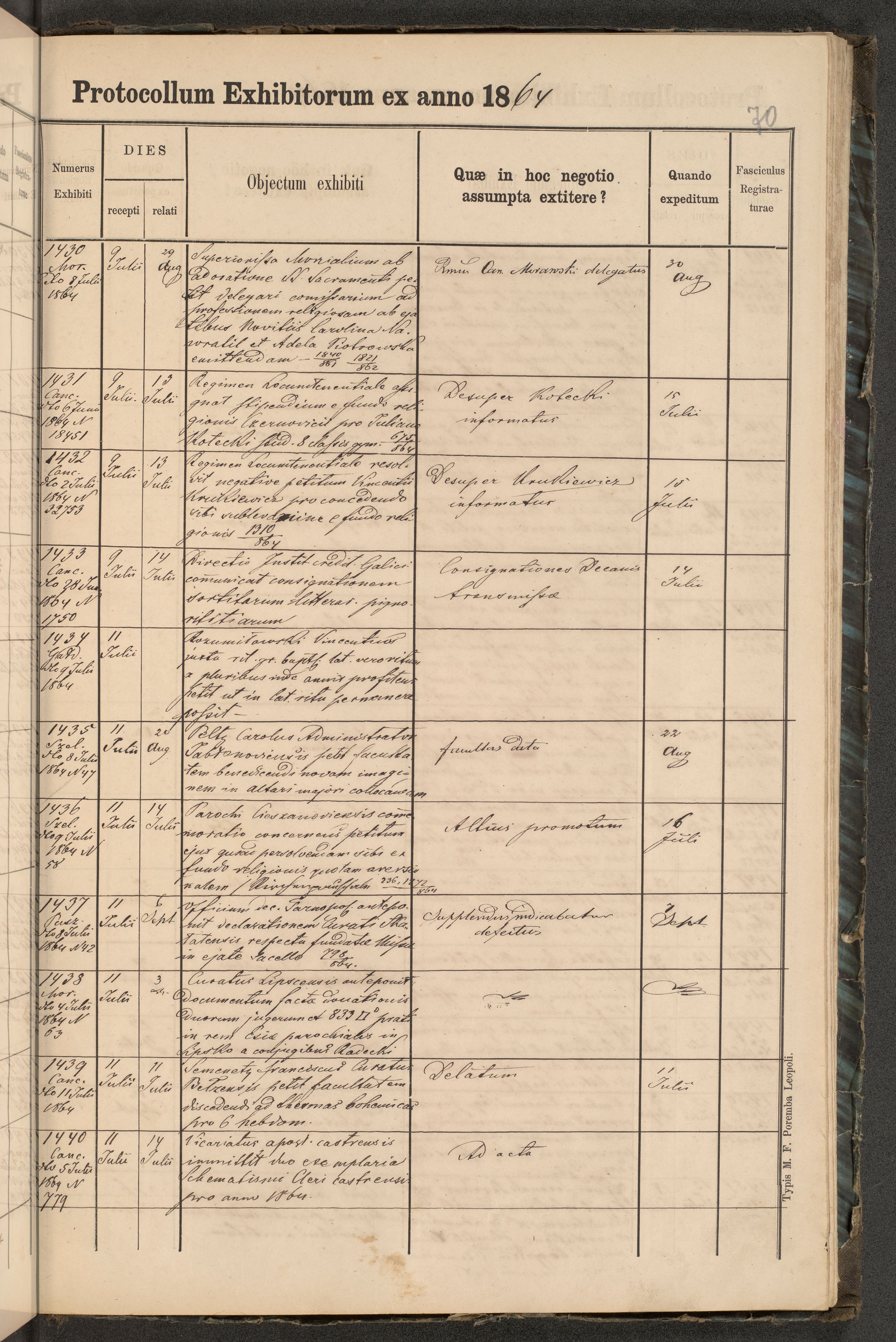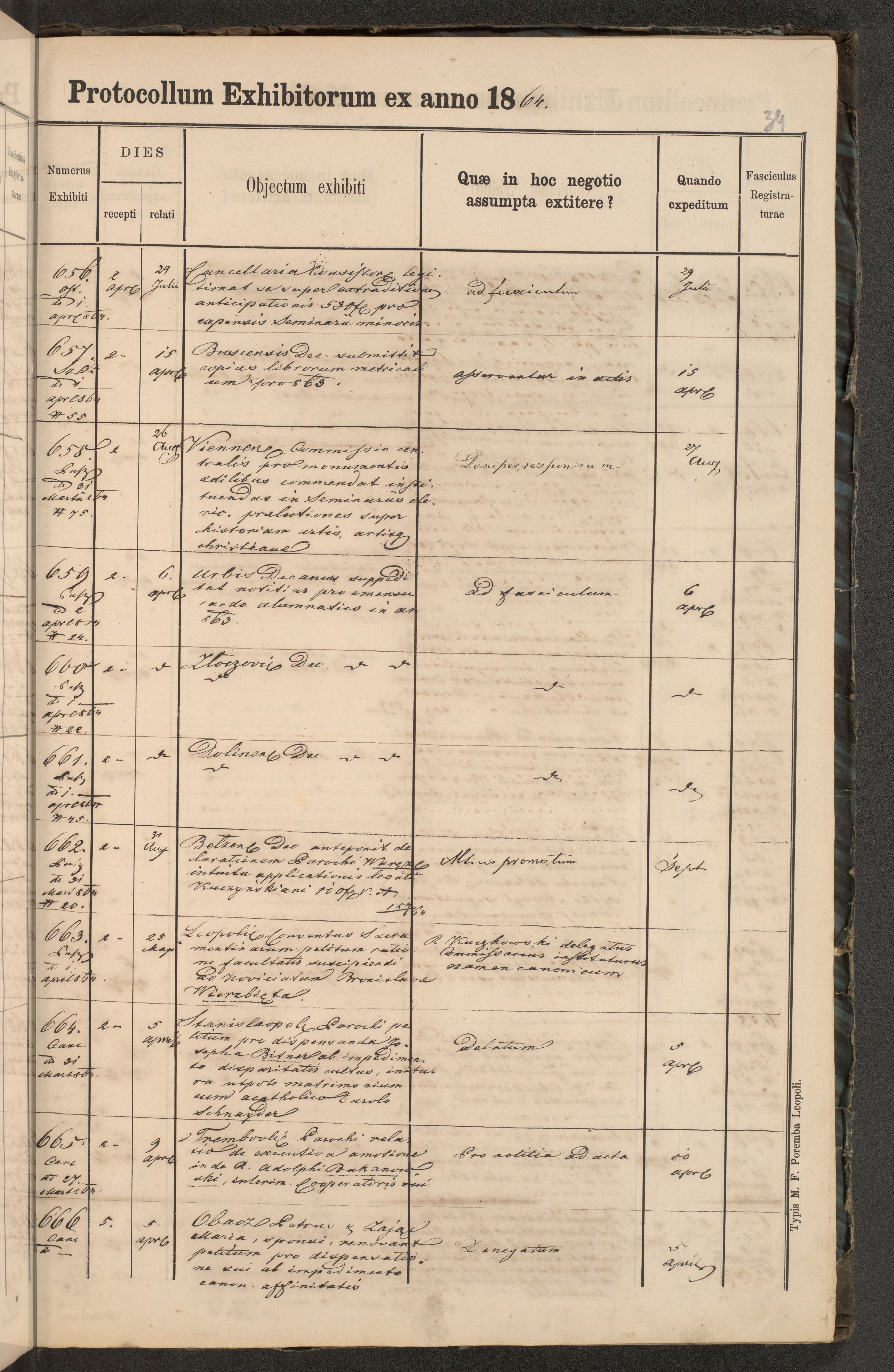 Protocollon exhibitorum in Ecclesiasticis ex anno 1864