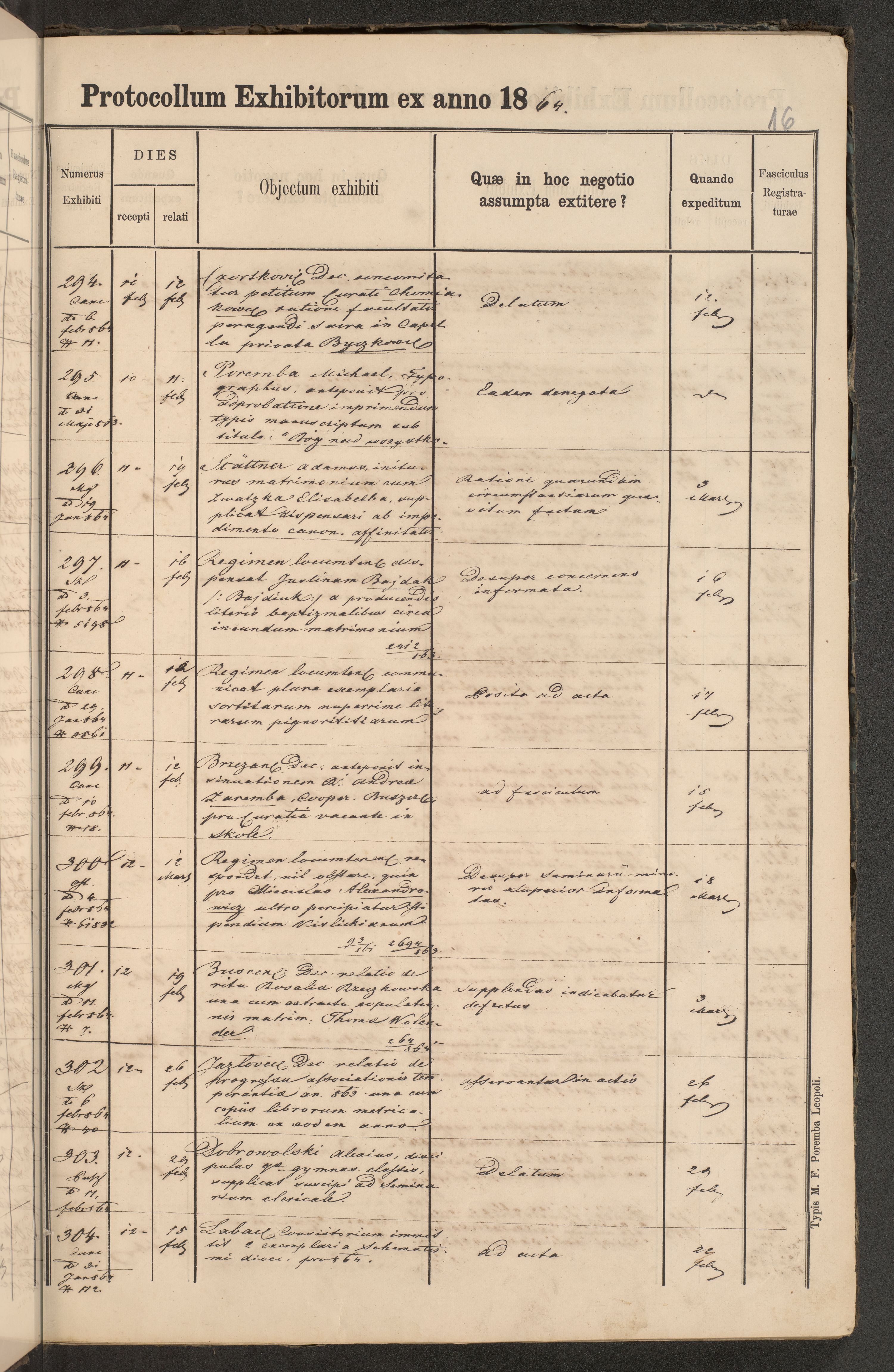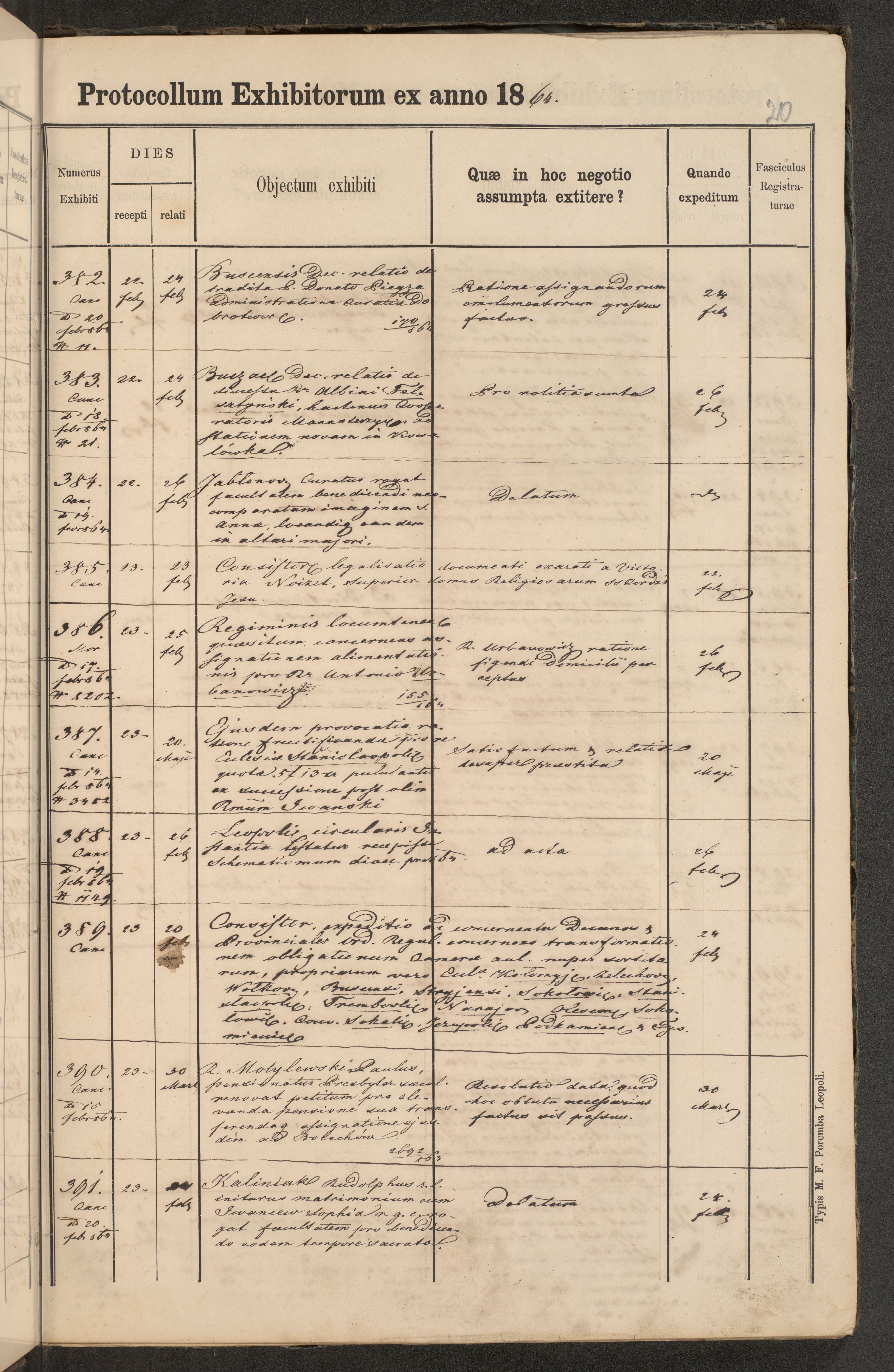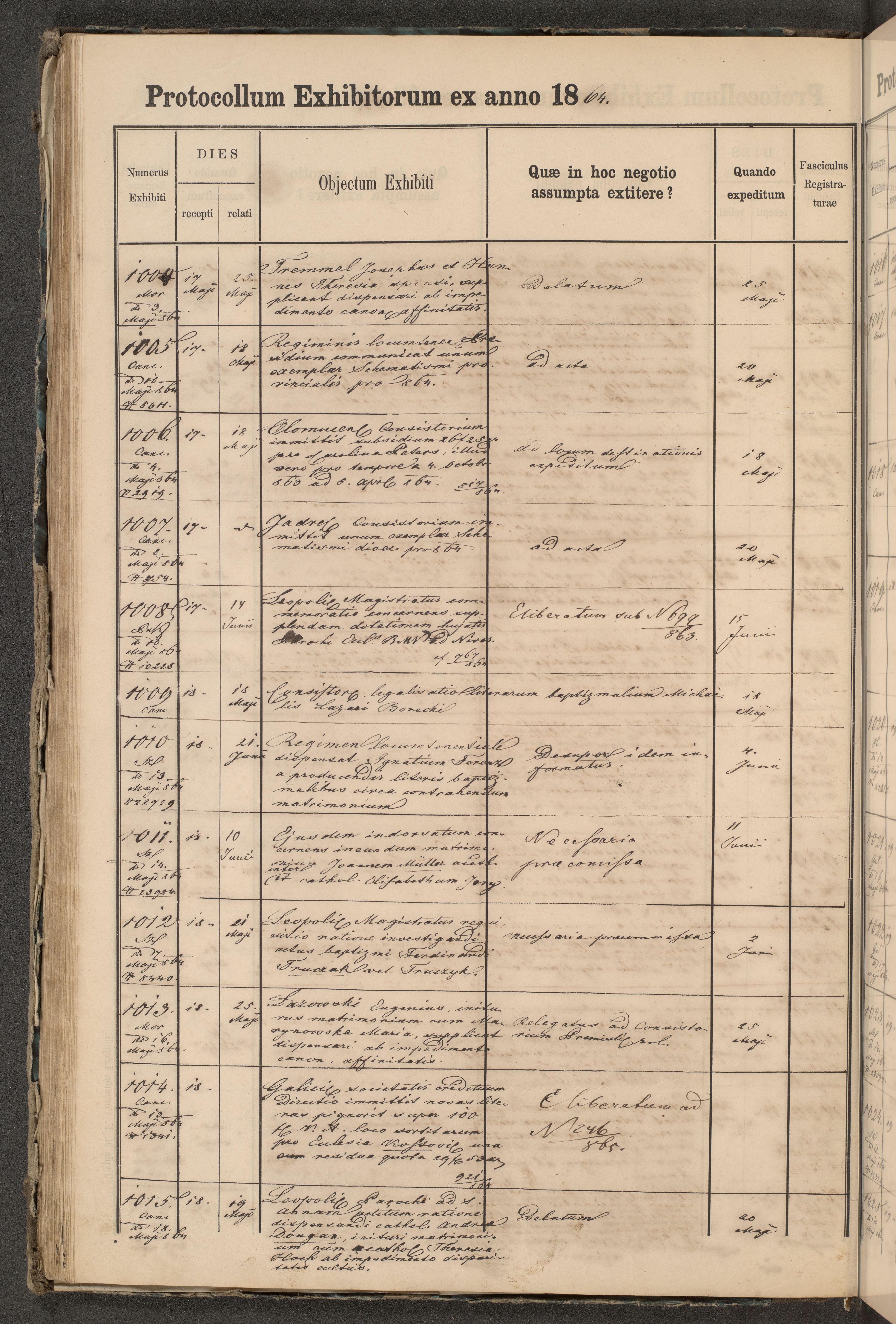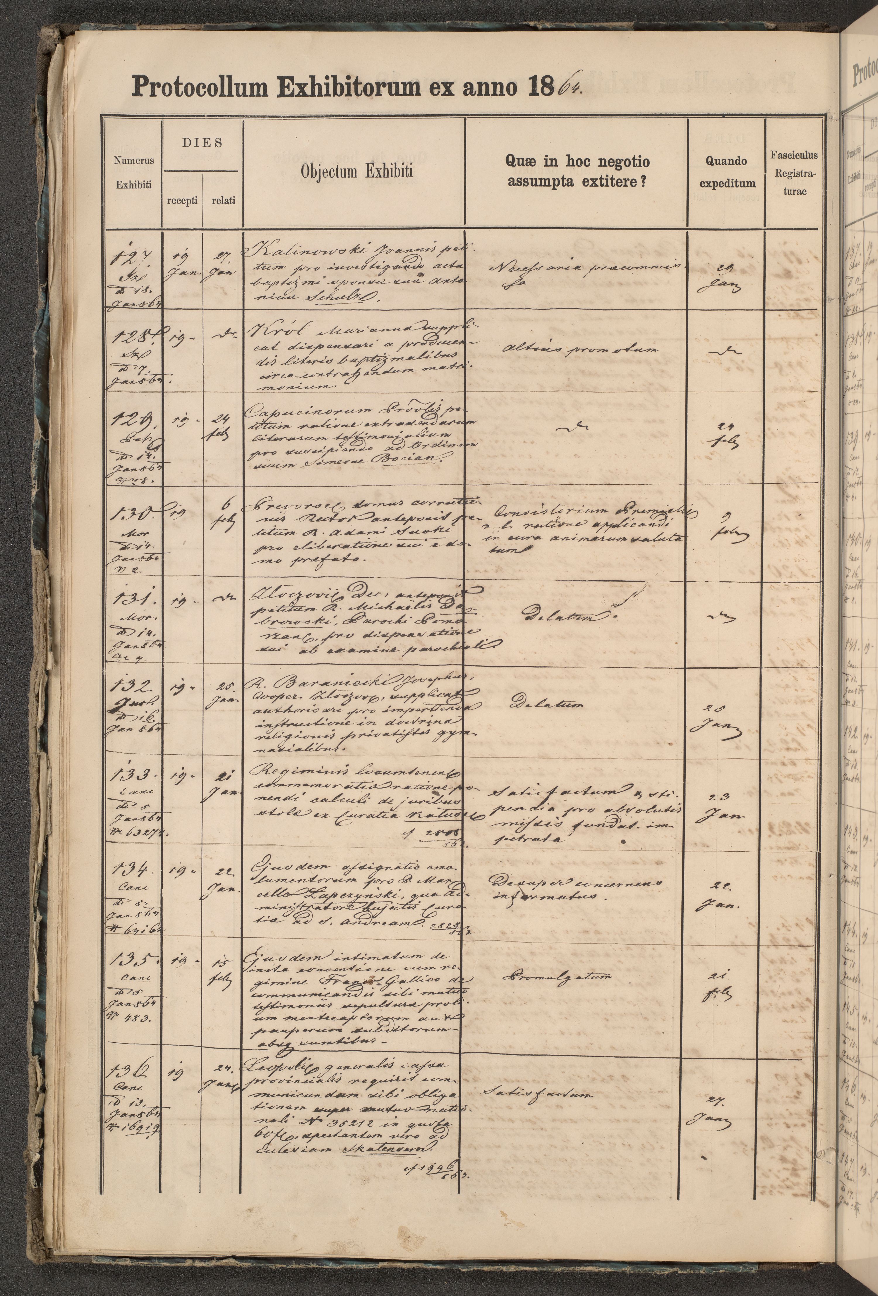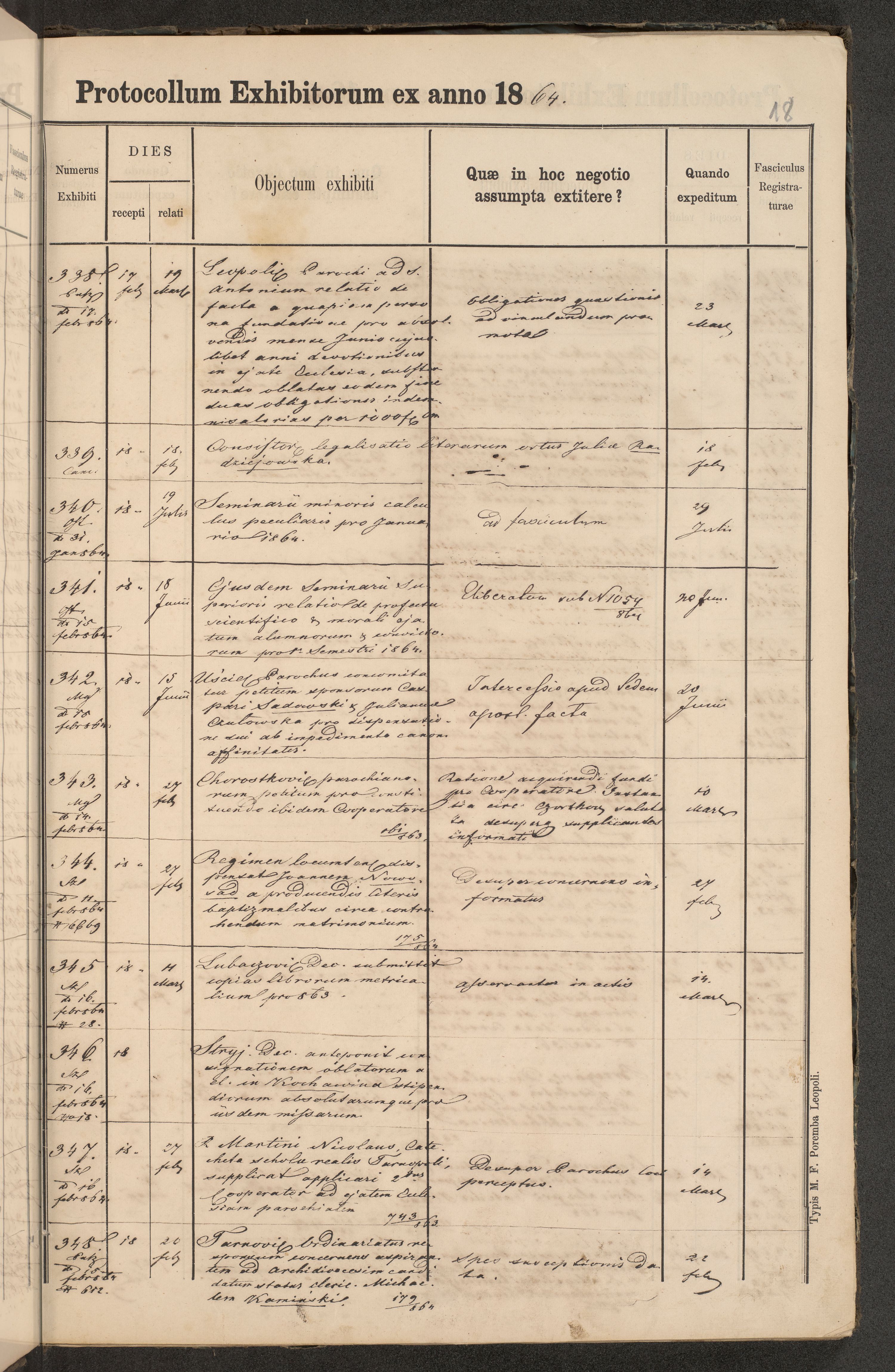 Protocollon exhibitorum in Ecclesiasticis ex anno 1864
