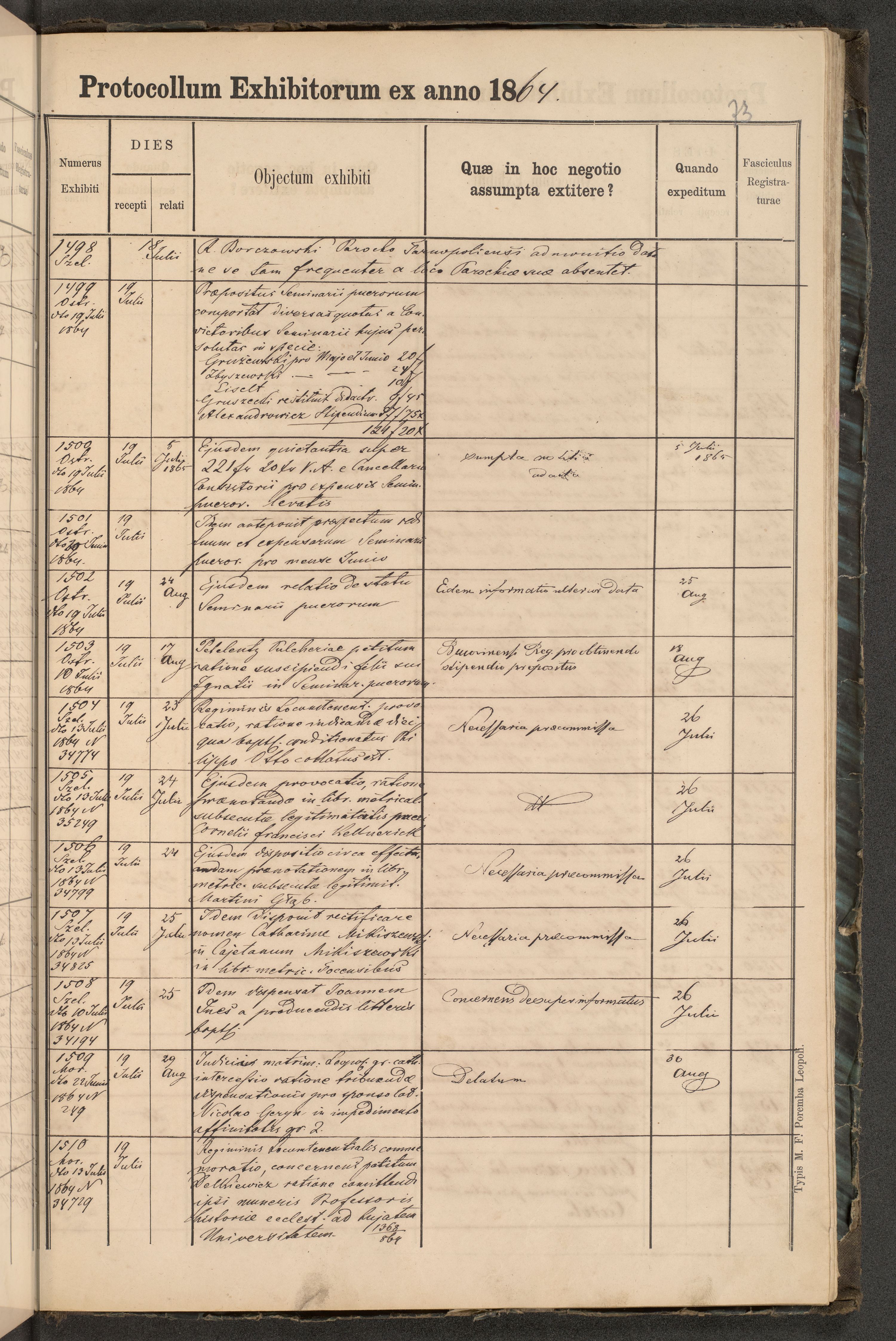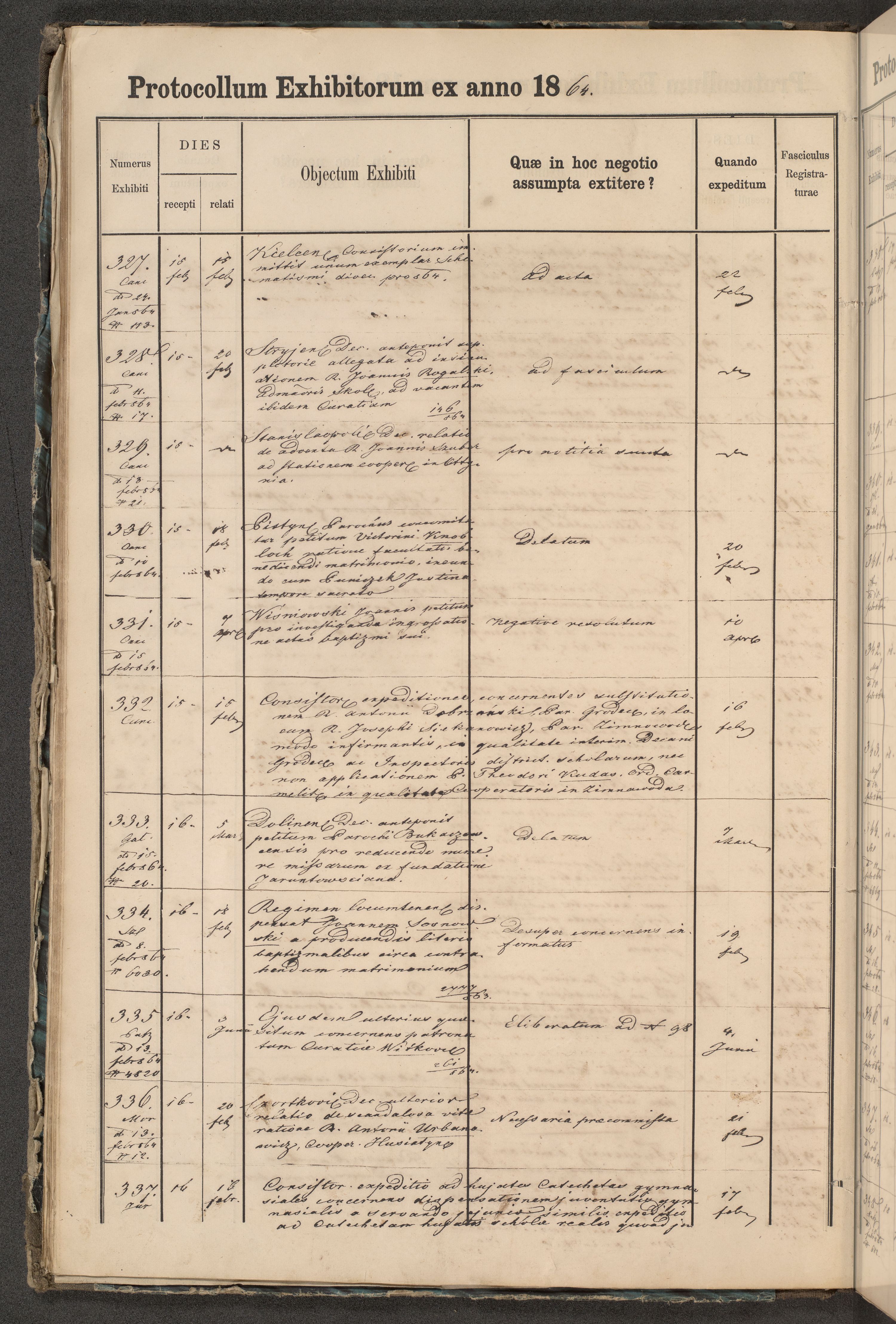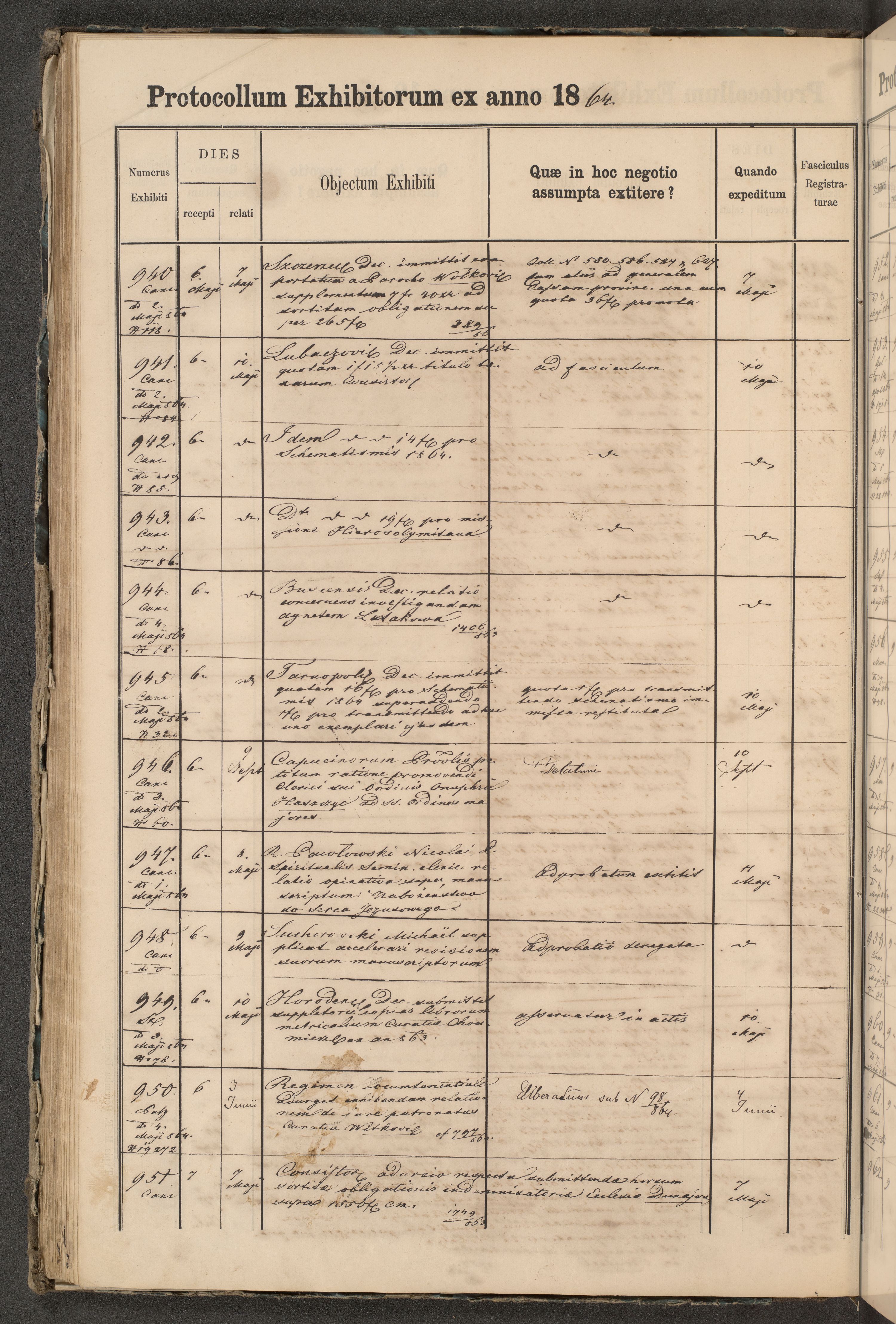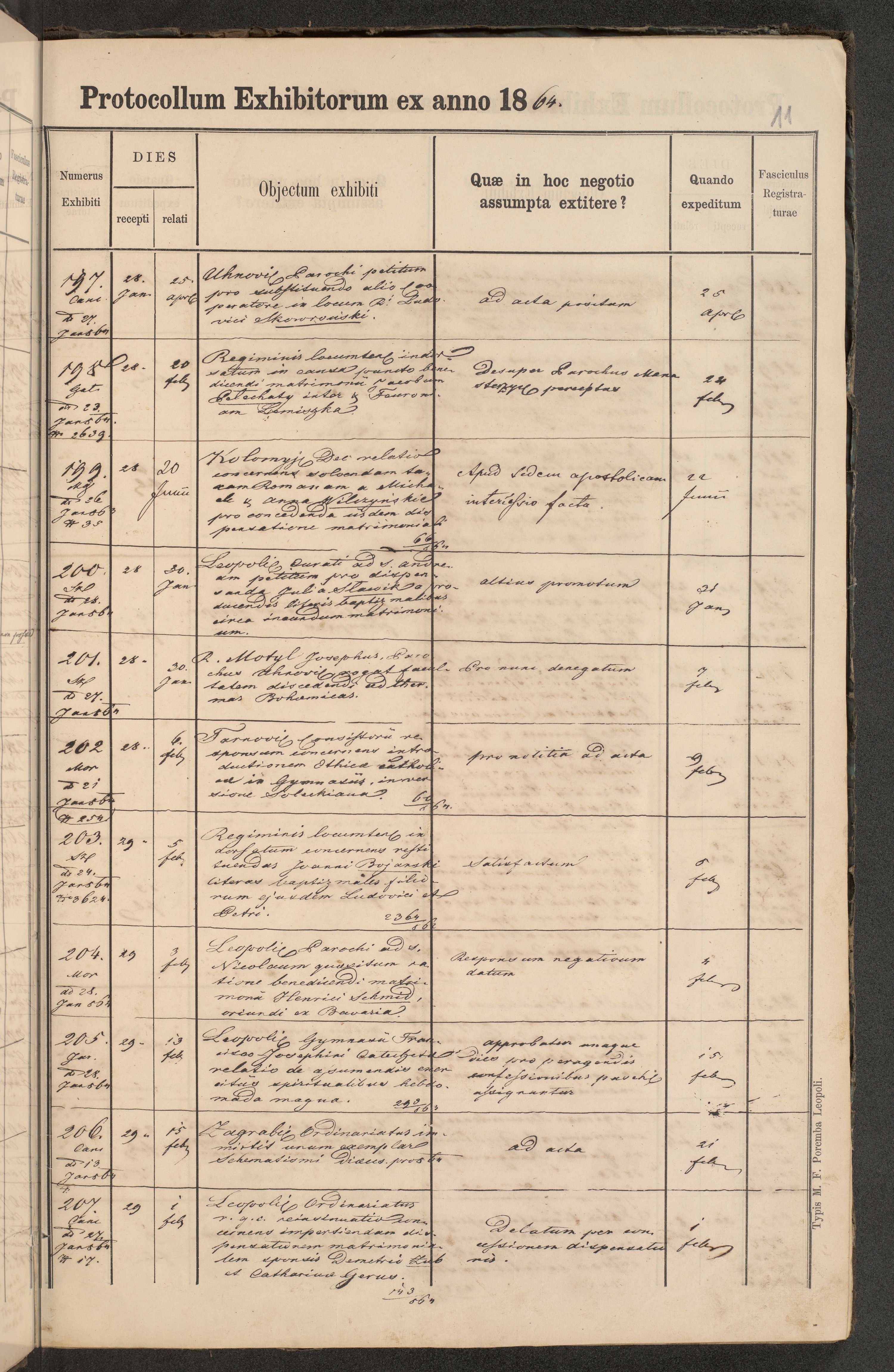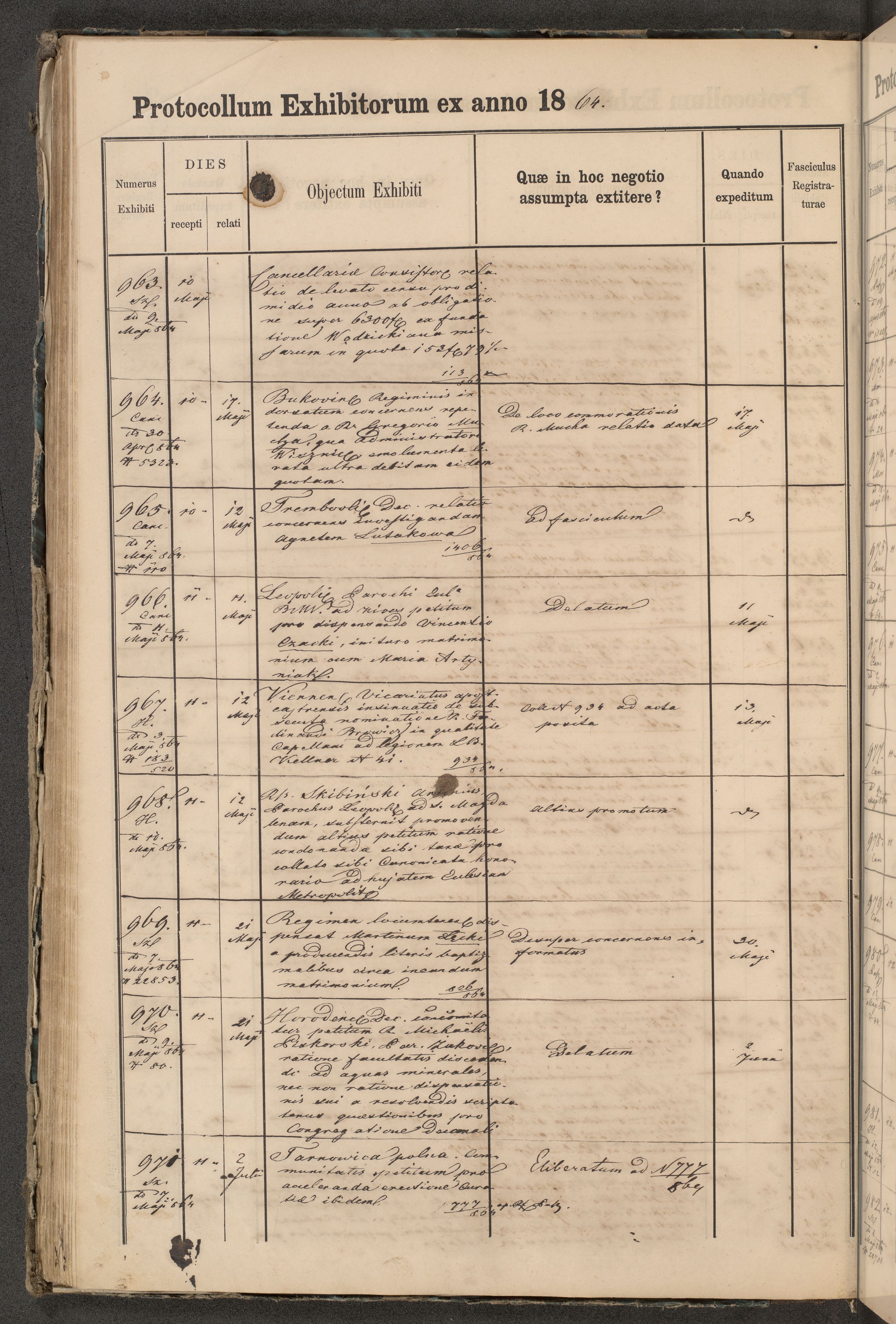Protocollon exhibitorum in Ecclesiasticis ex anno 1864