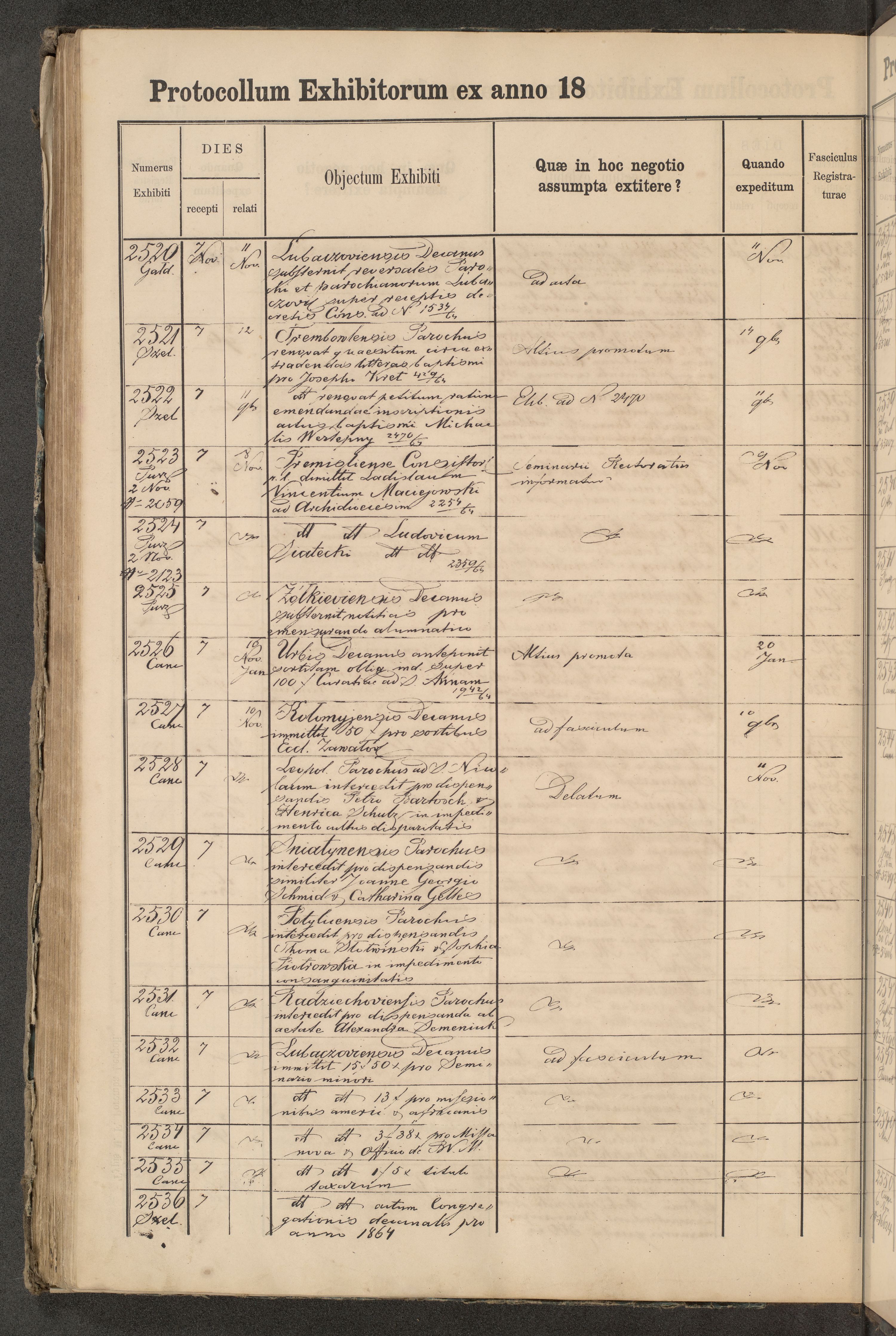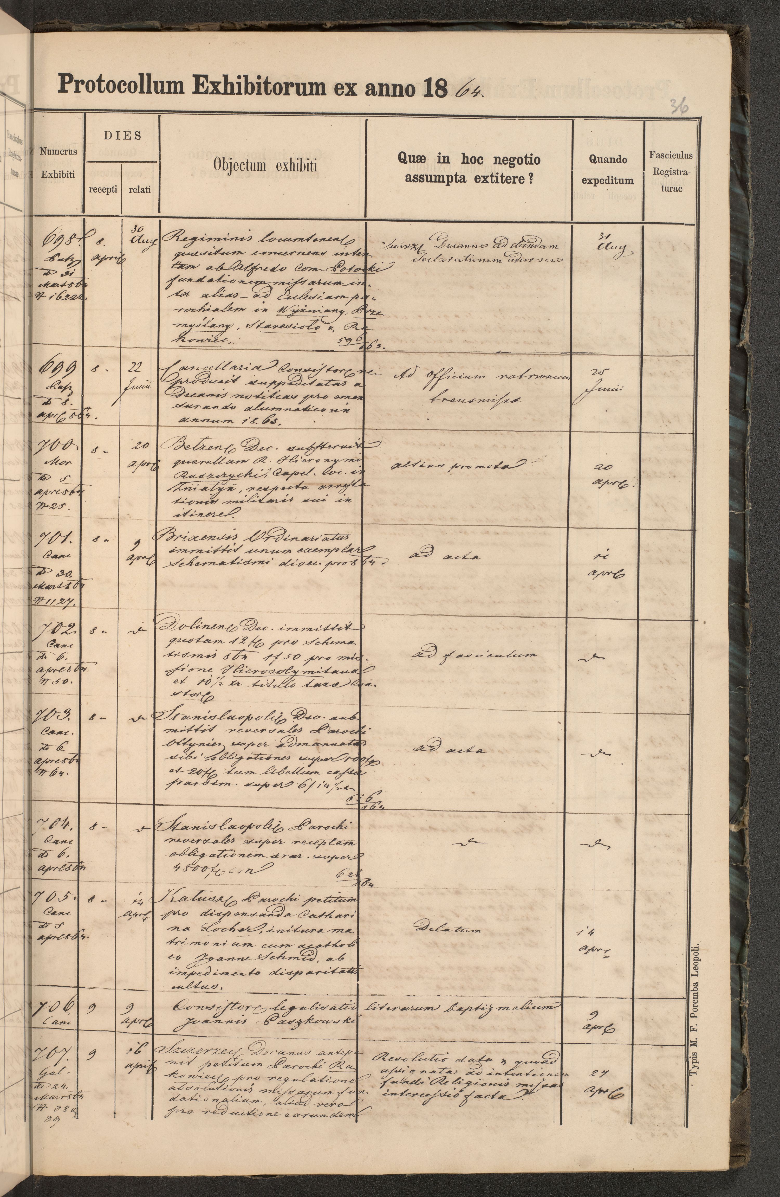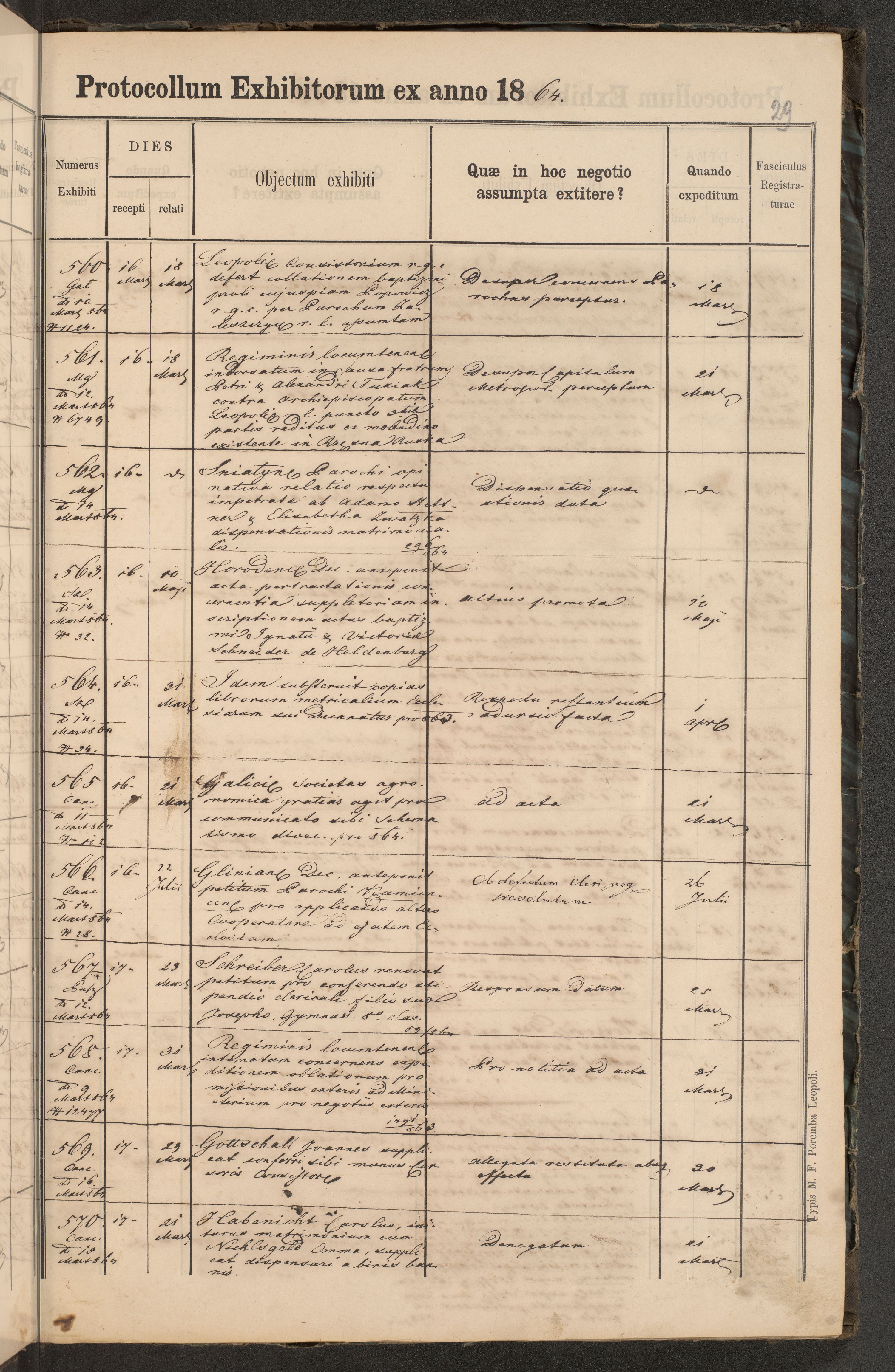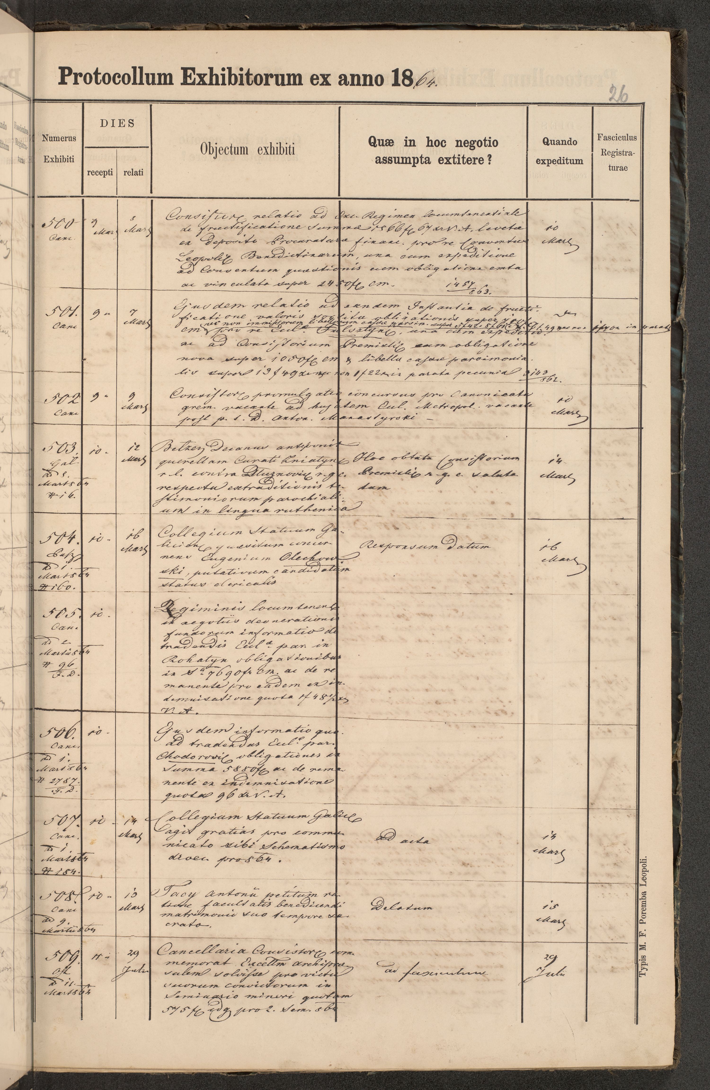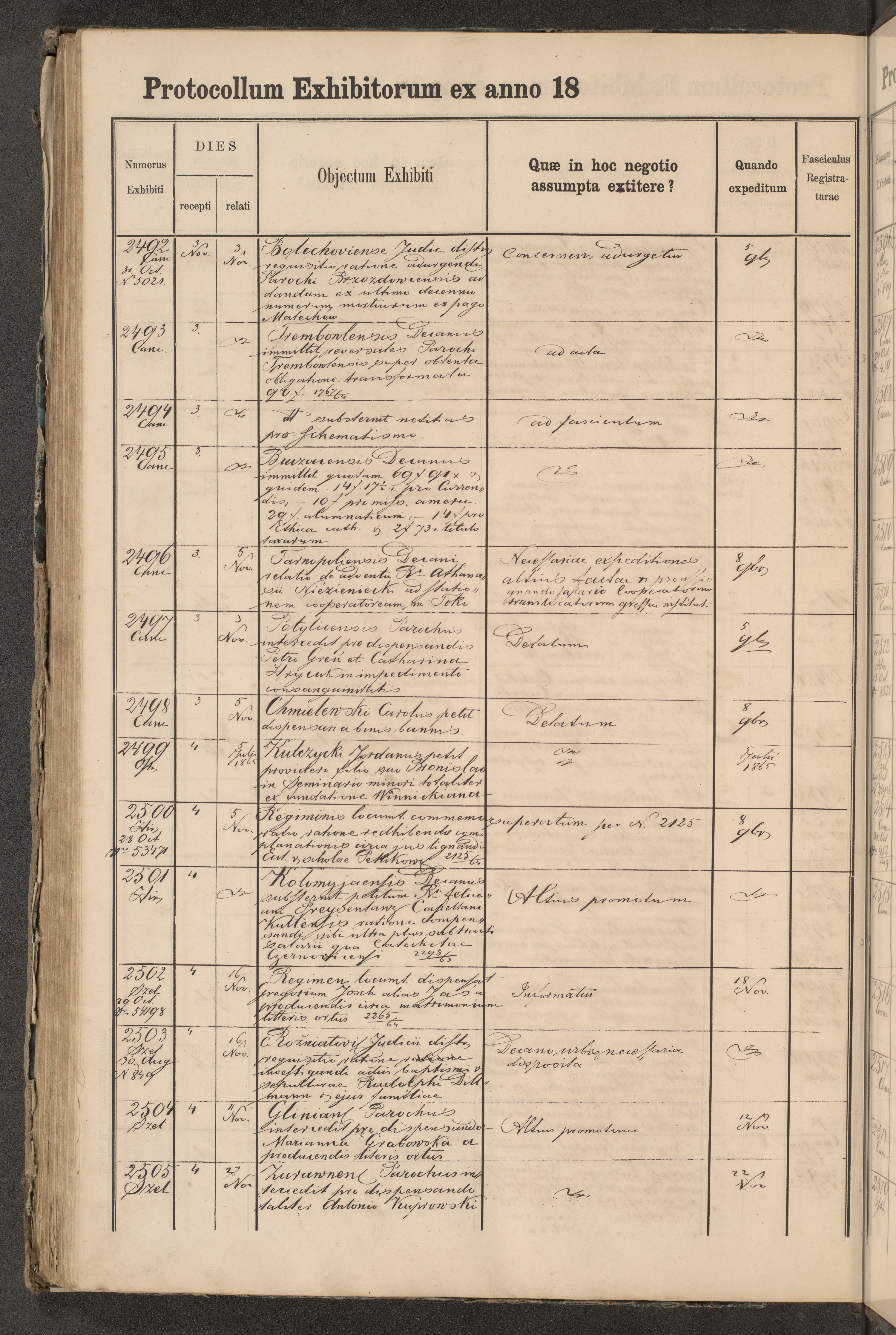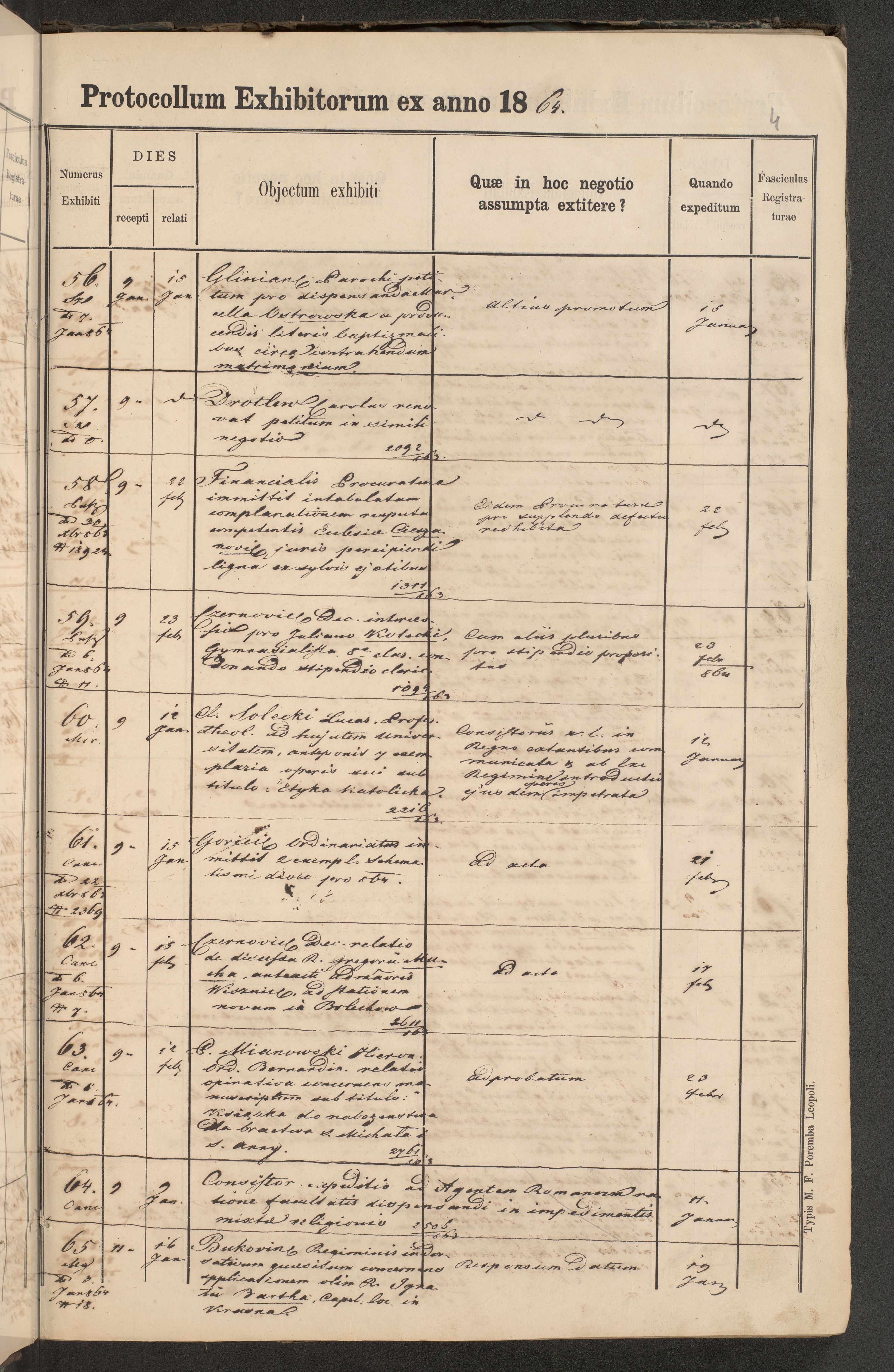Protocollon exhibitorum in Ecclesiasticis ex anno 1864