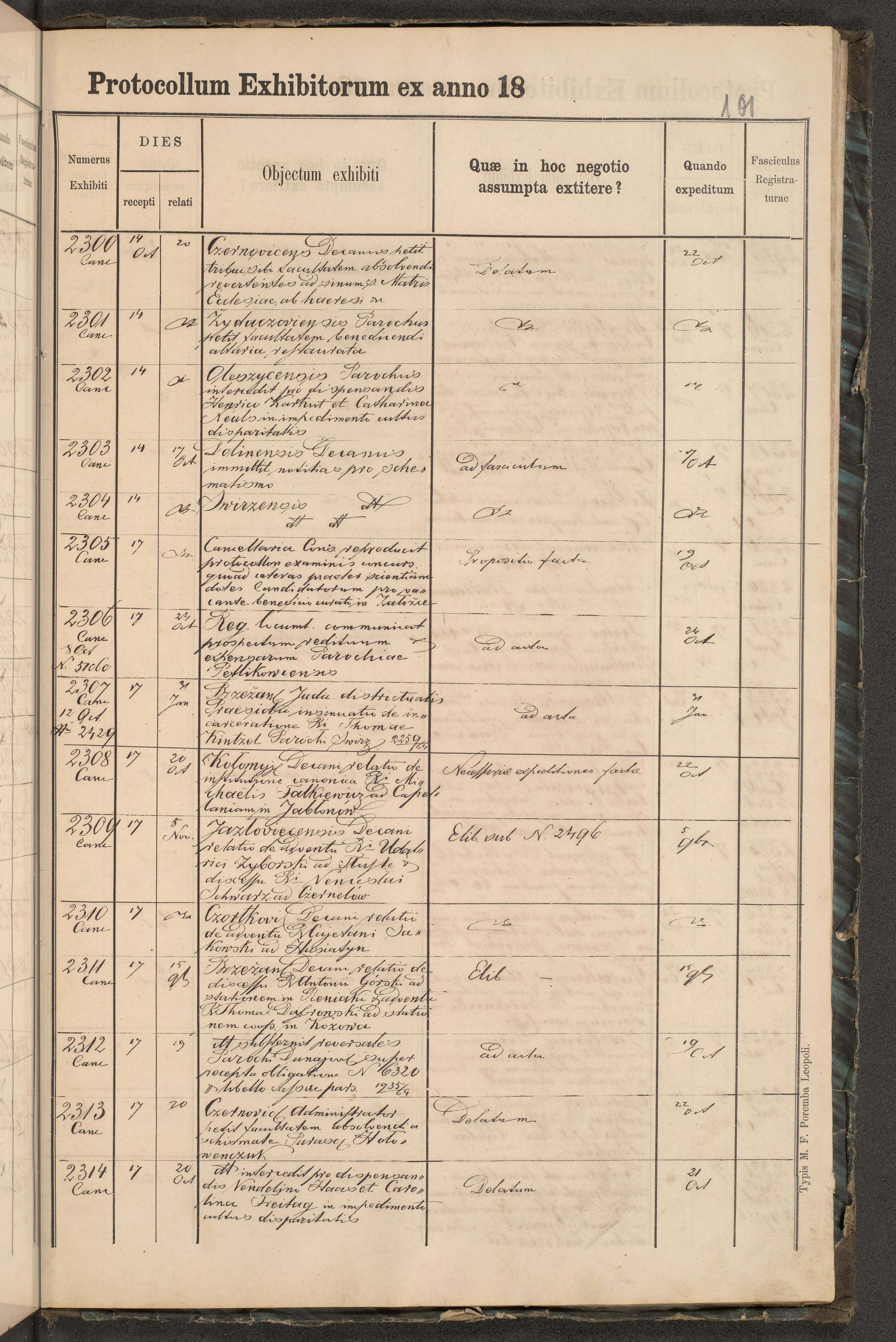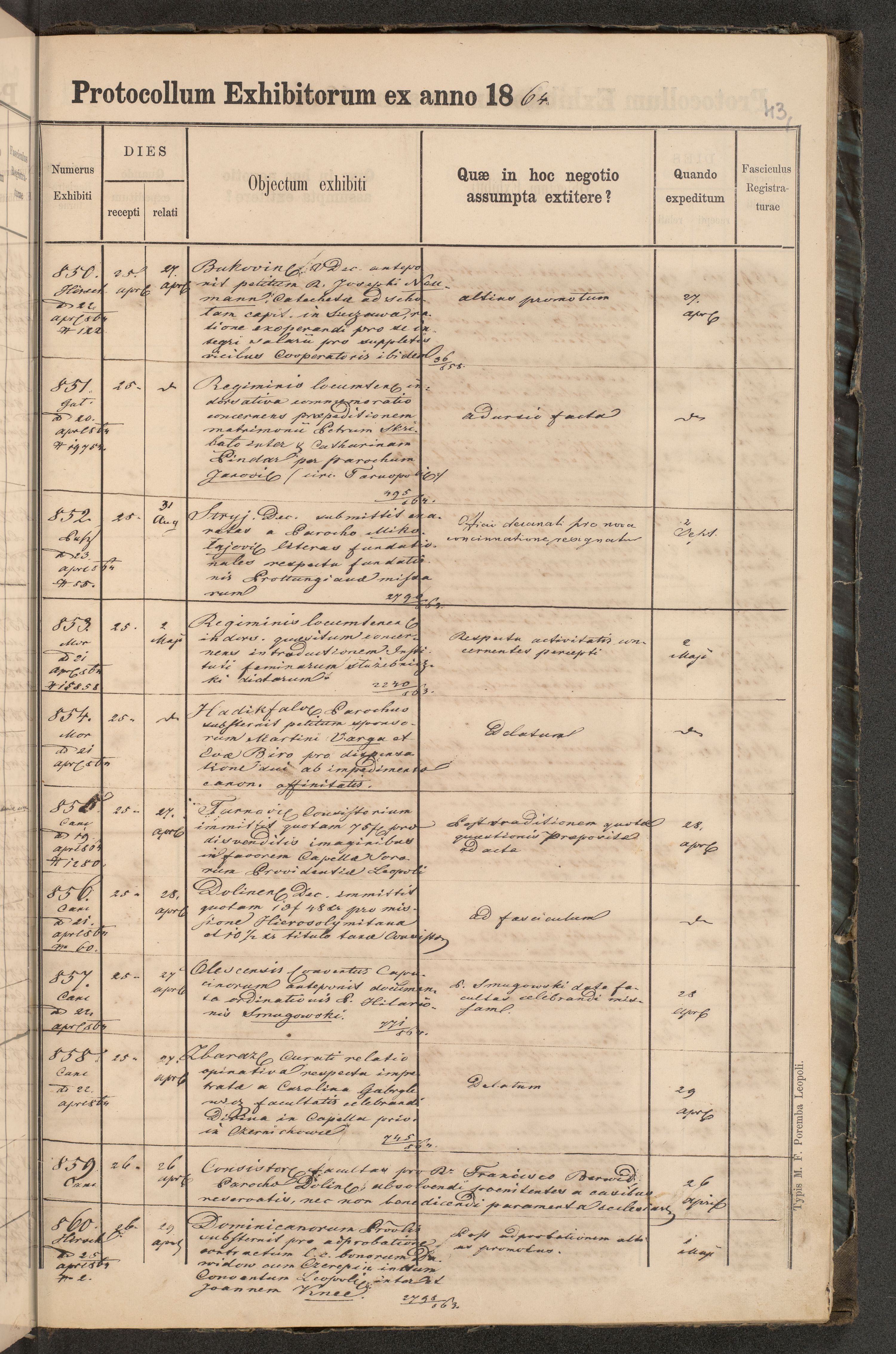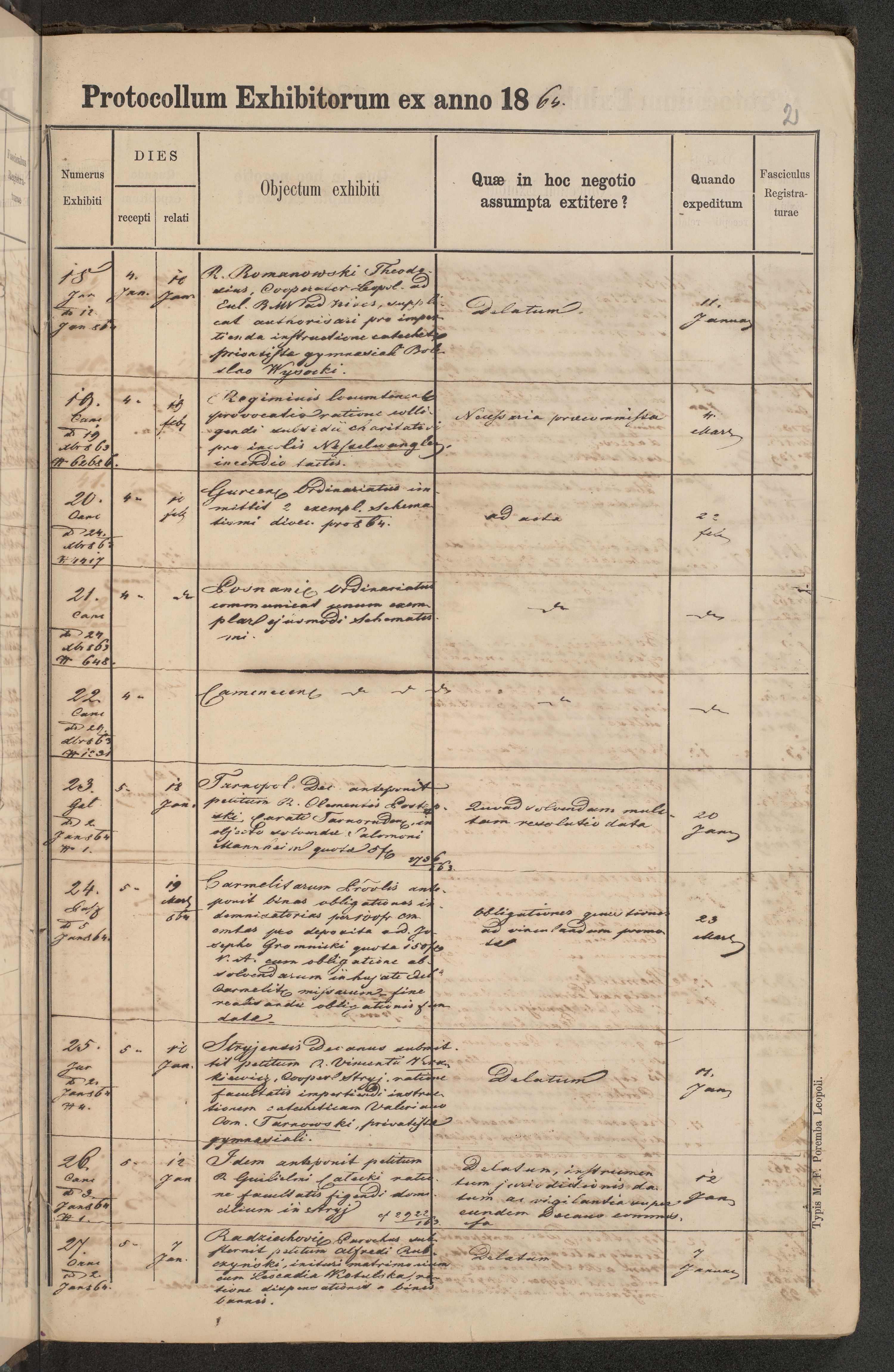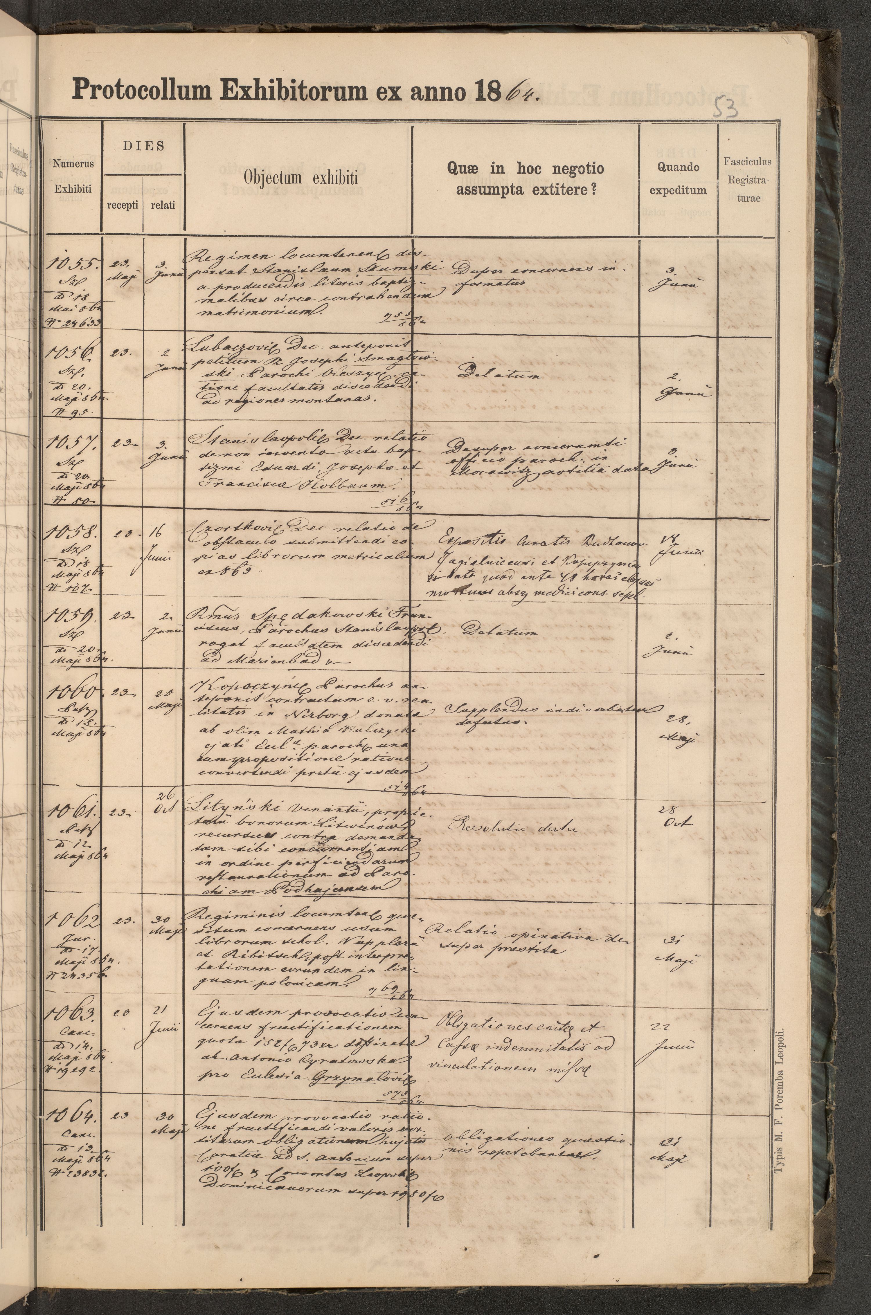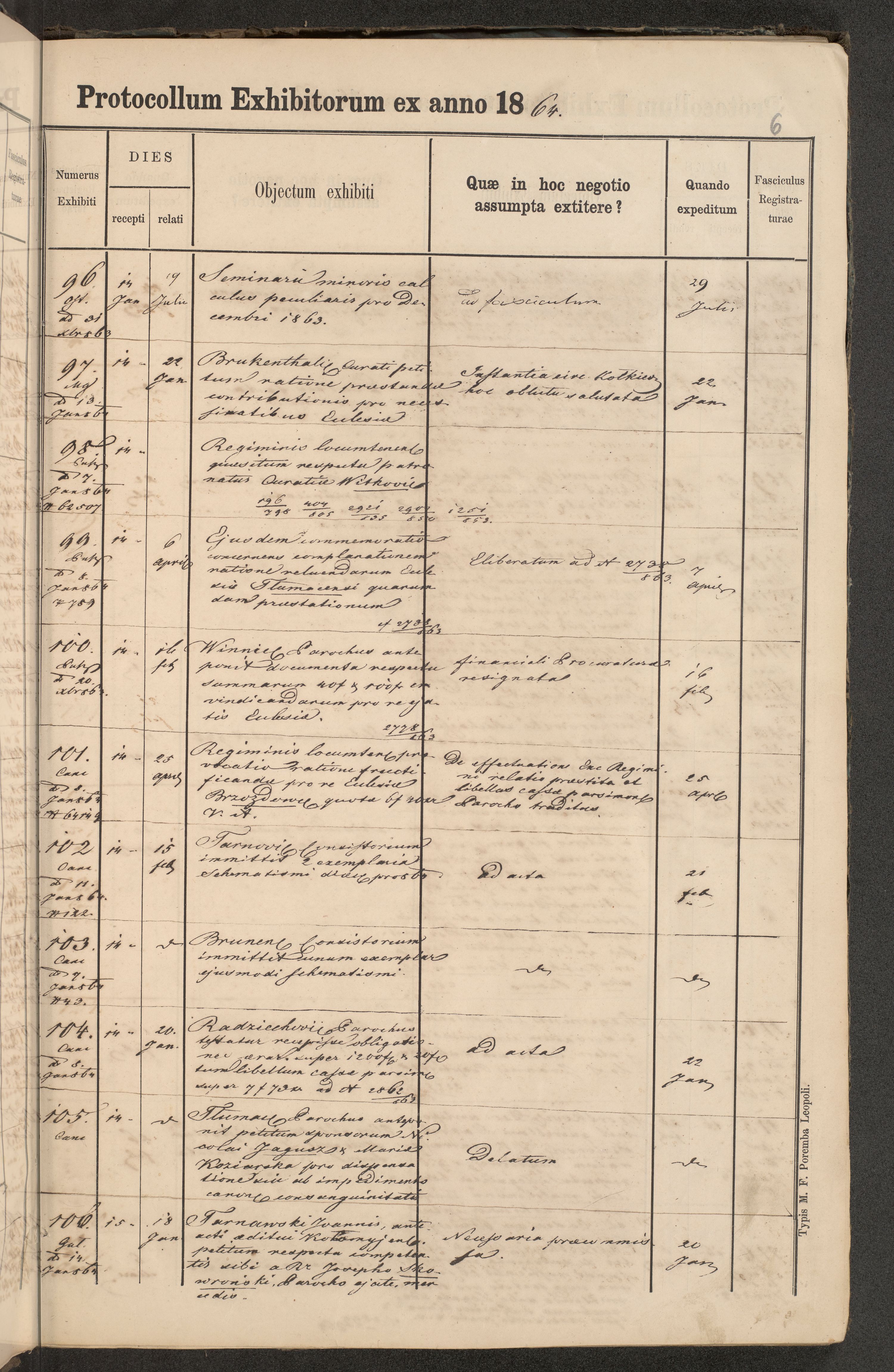 Protocollon exhibitorum in Ecclesiasticis ex anno 1864