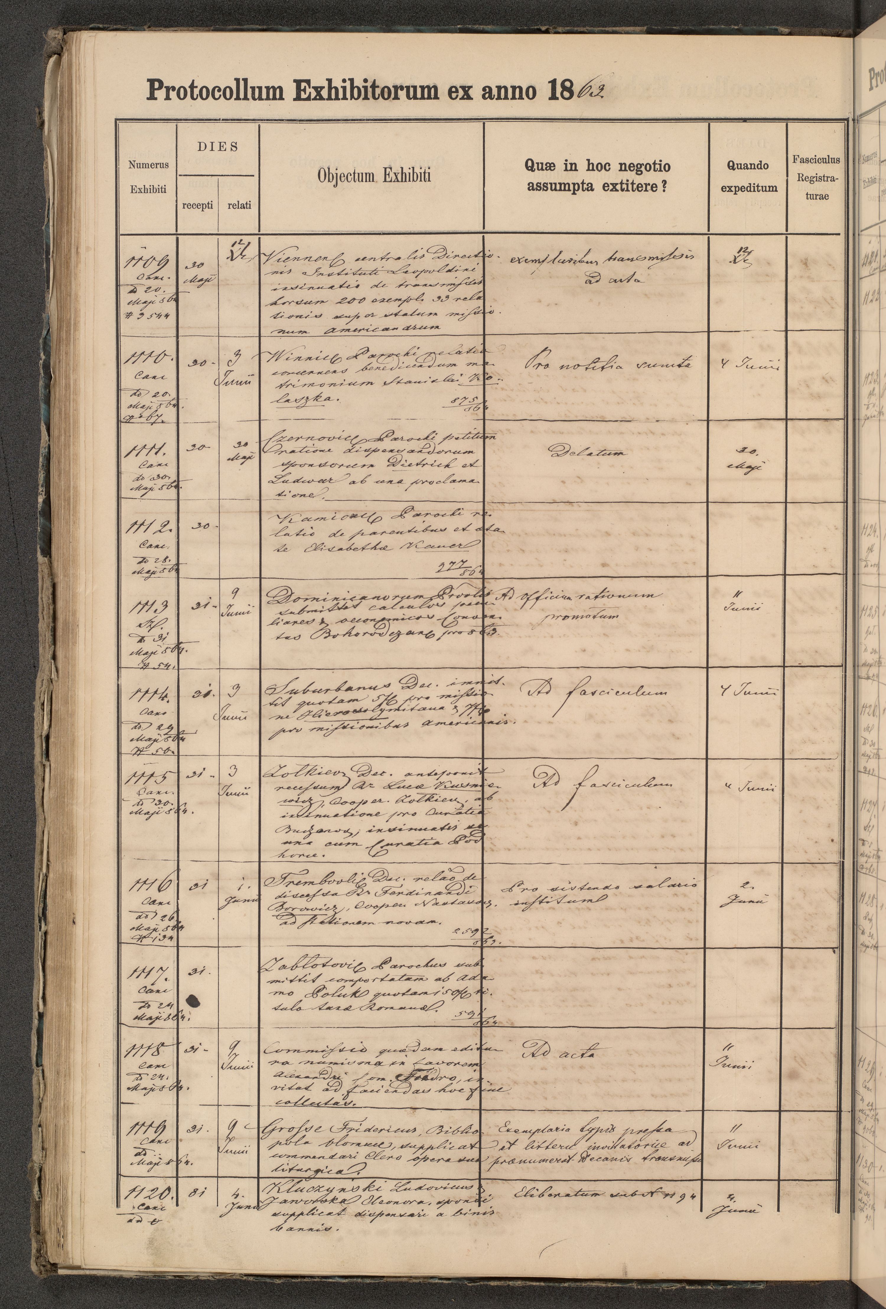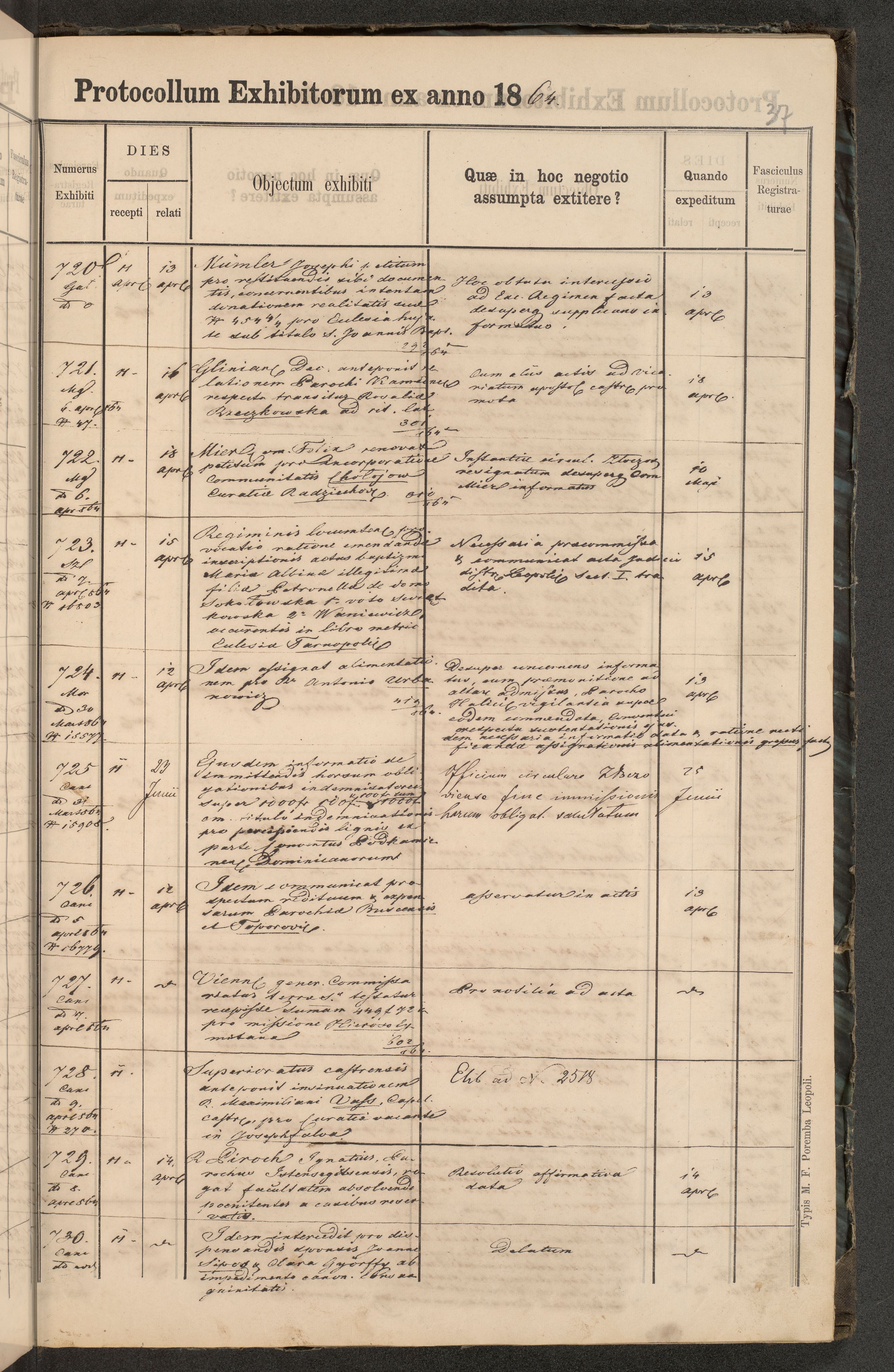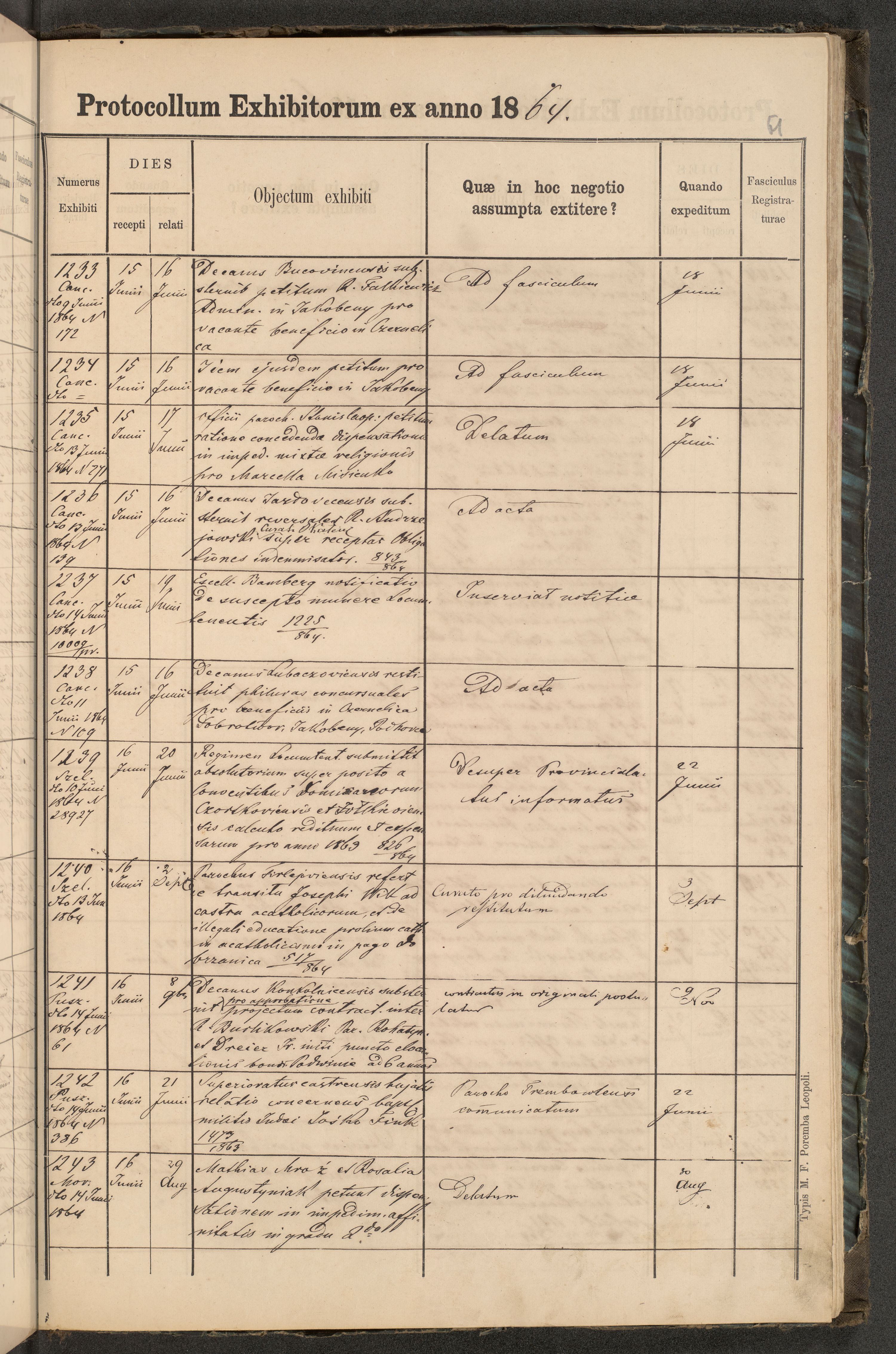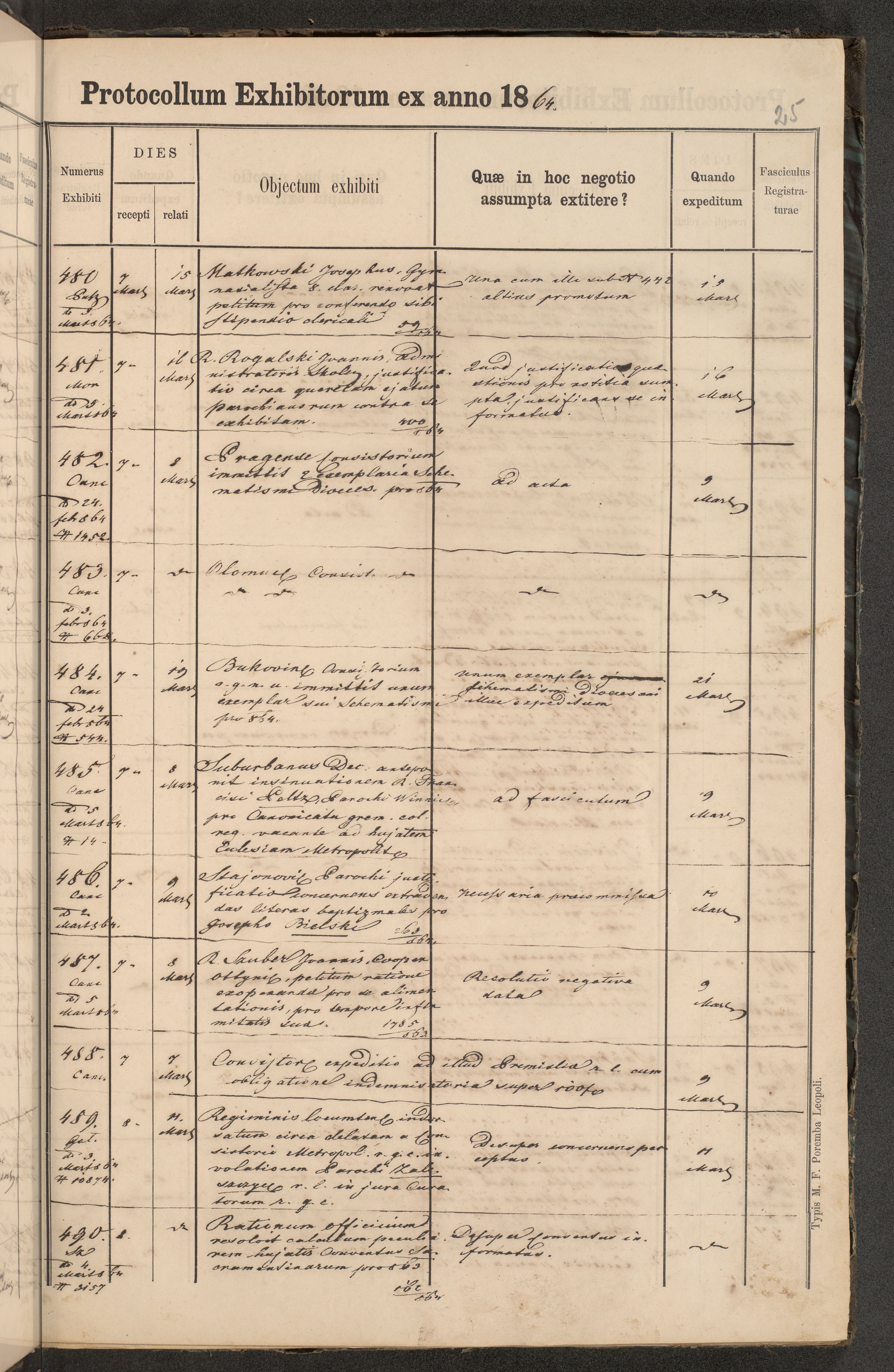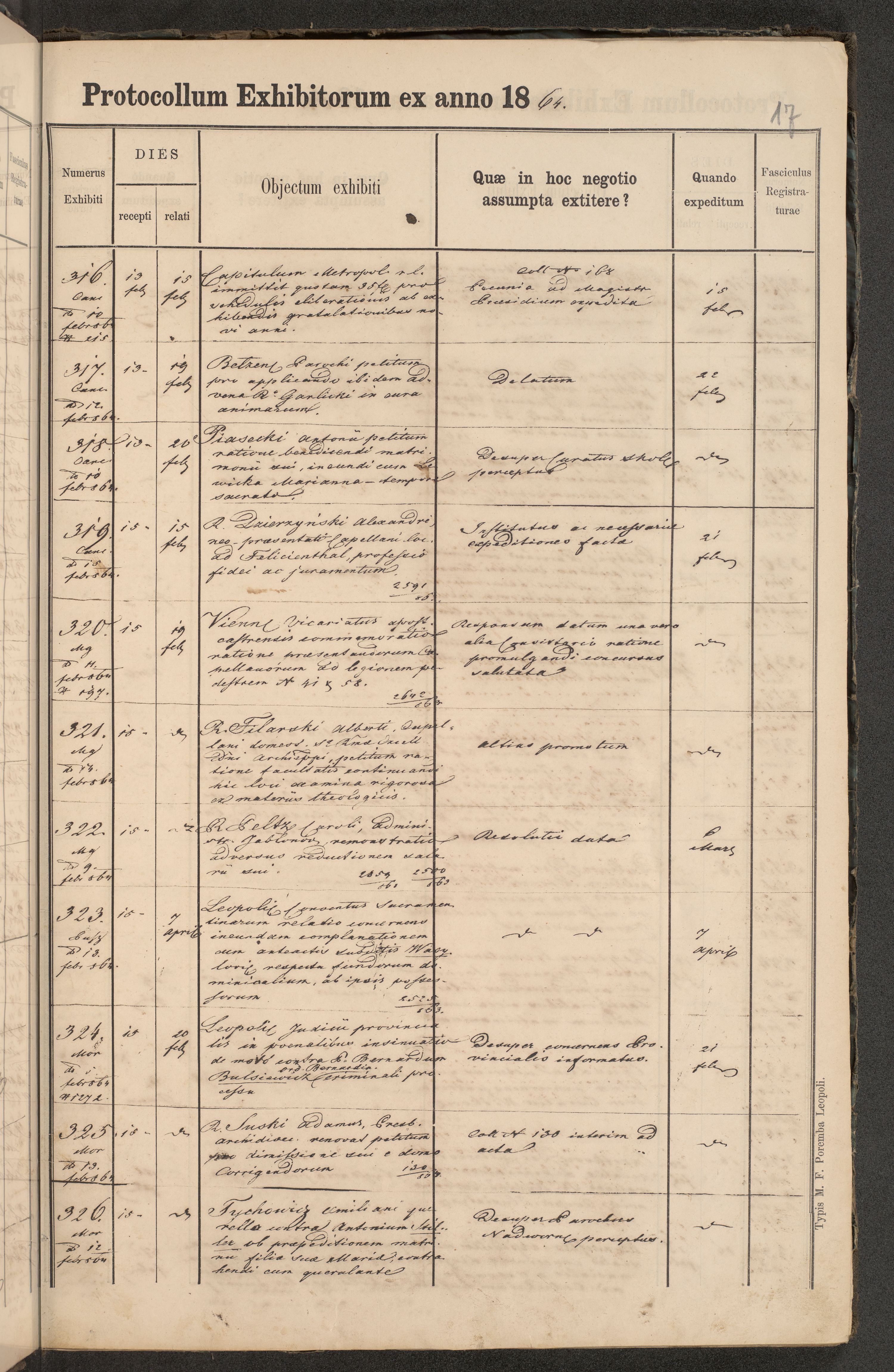Protocollon exhibitorum in Ecclesiasticis ex anno 1864