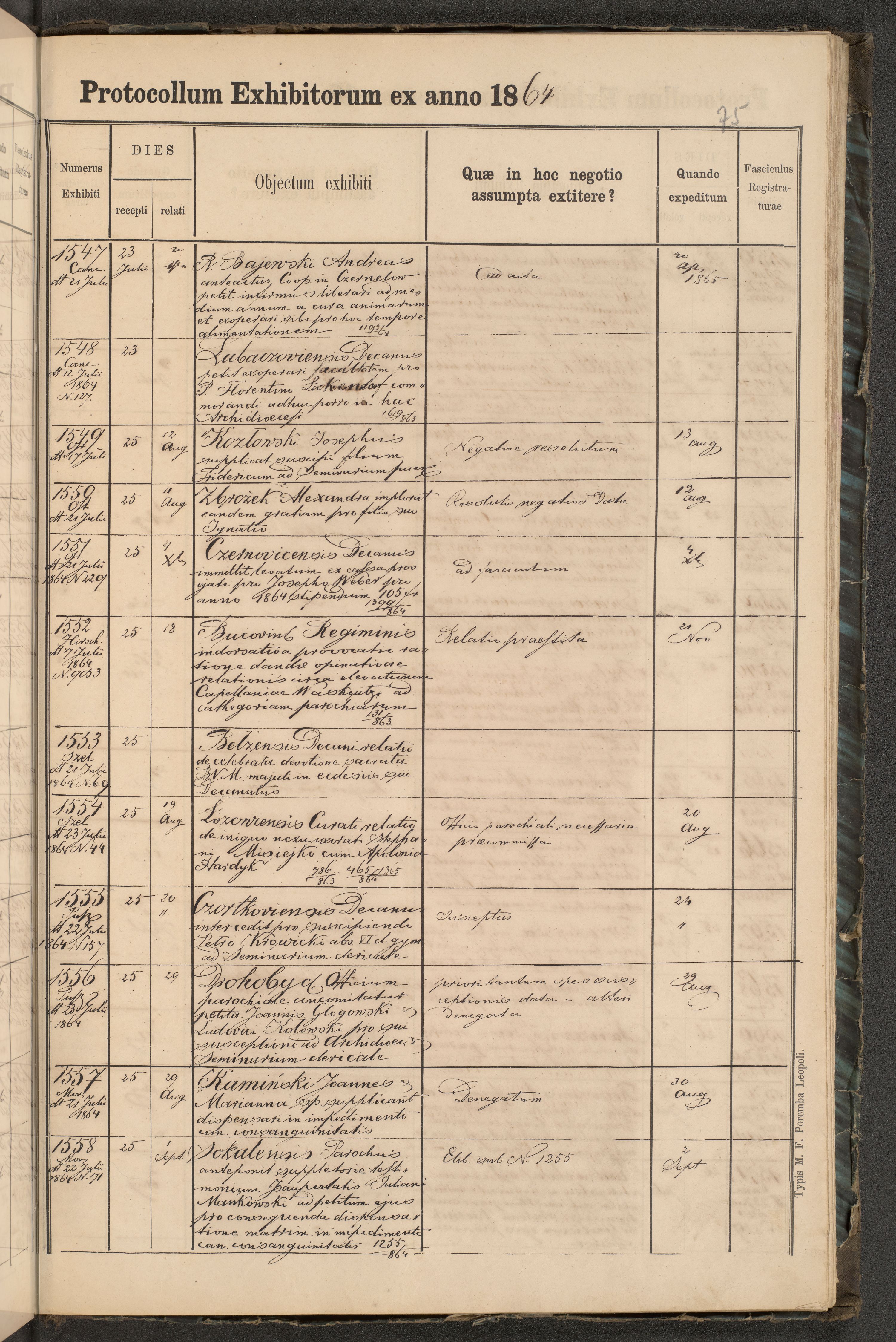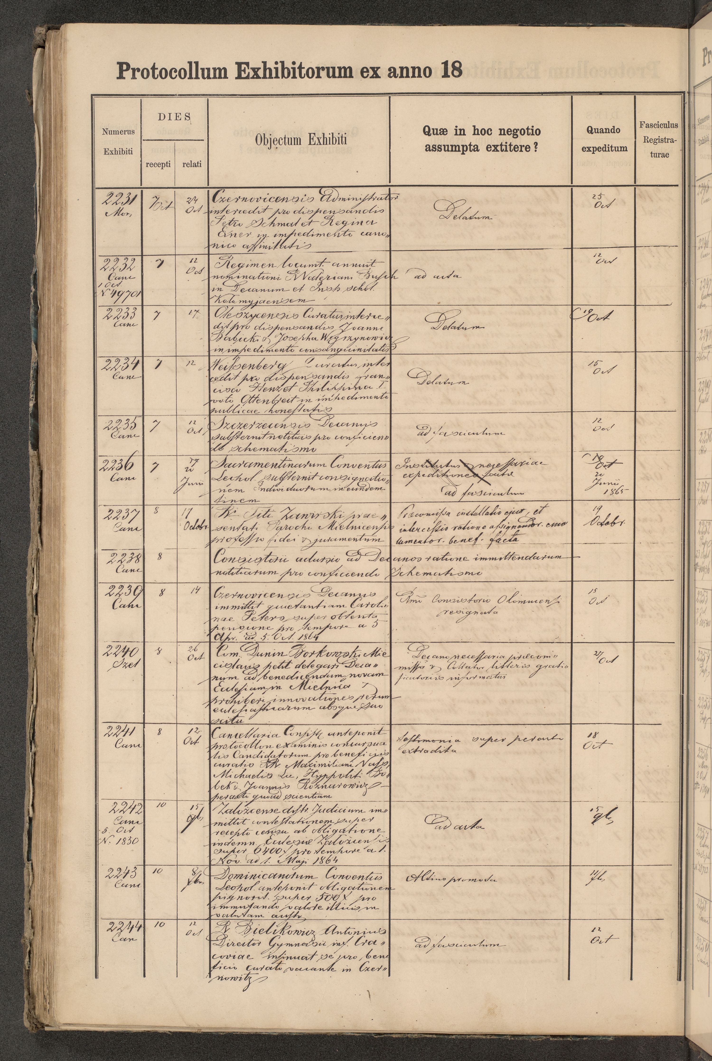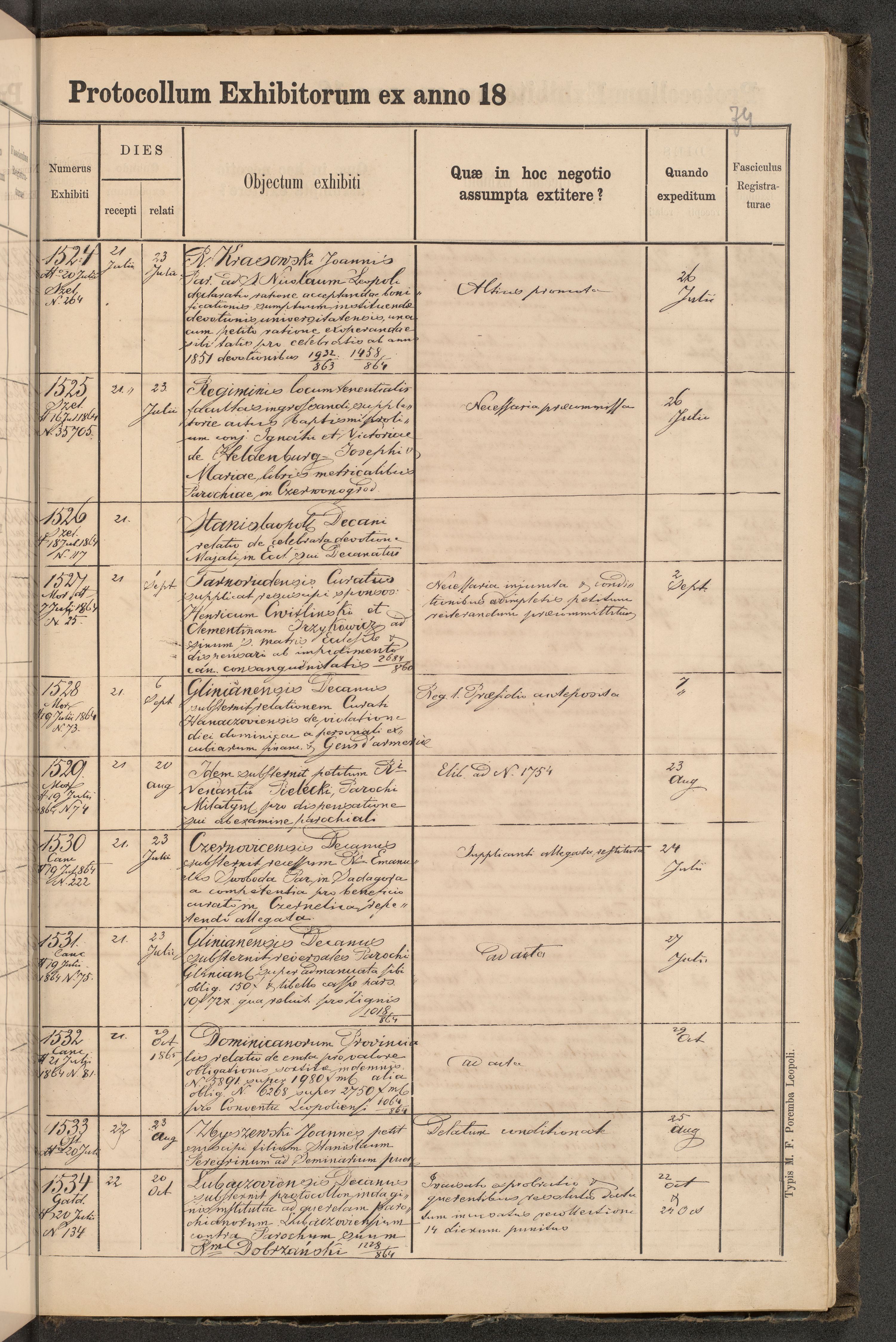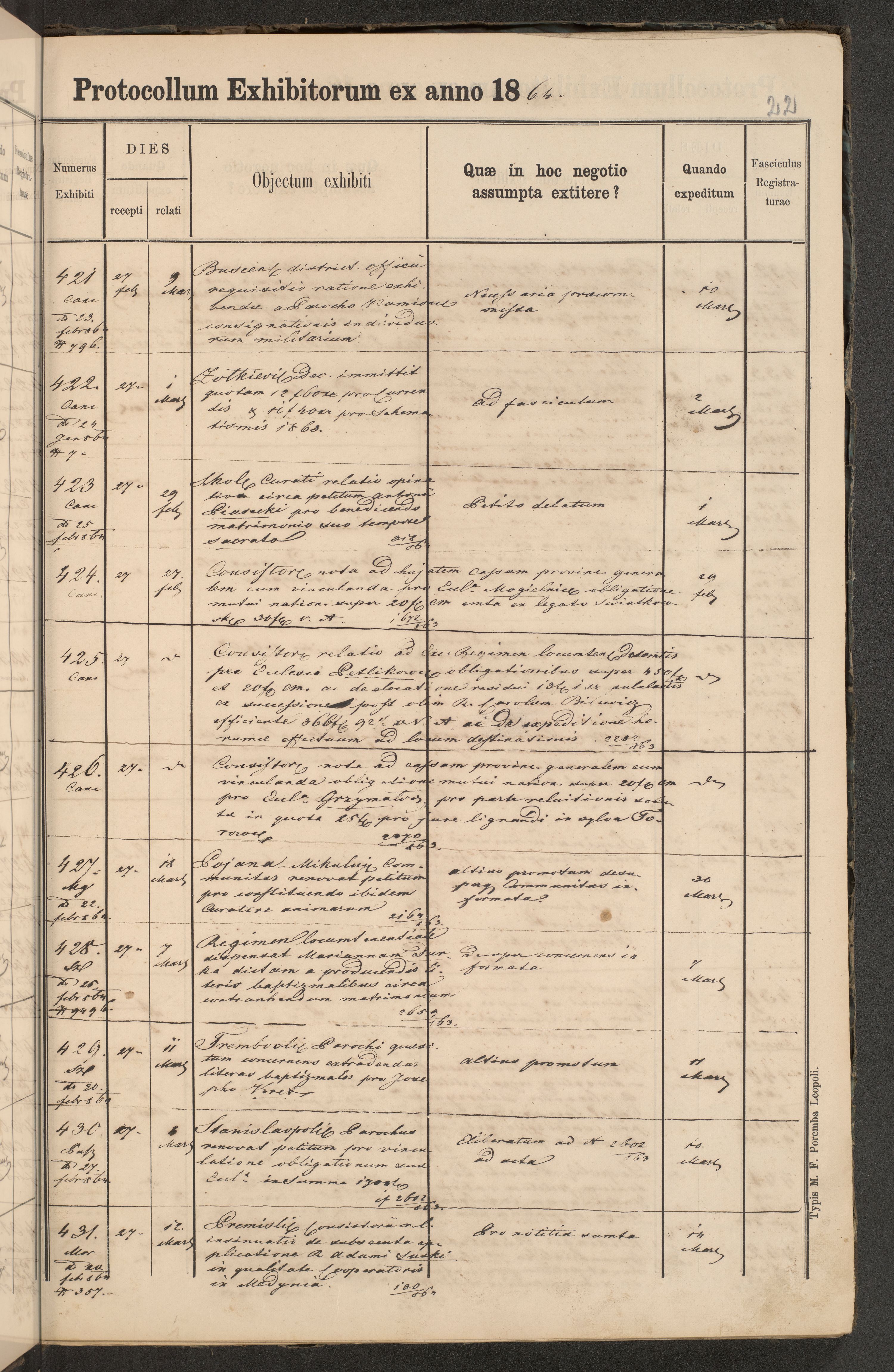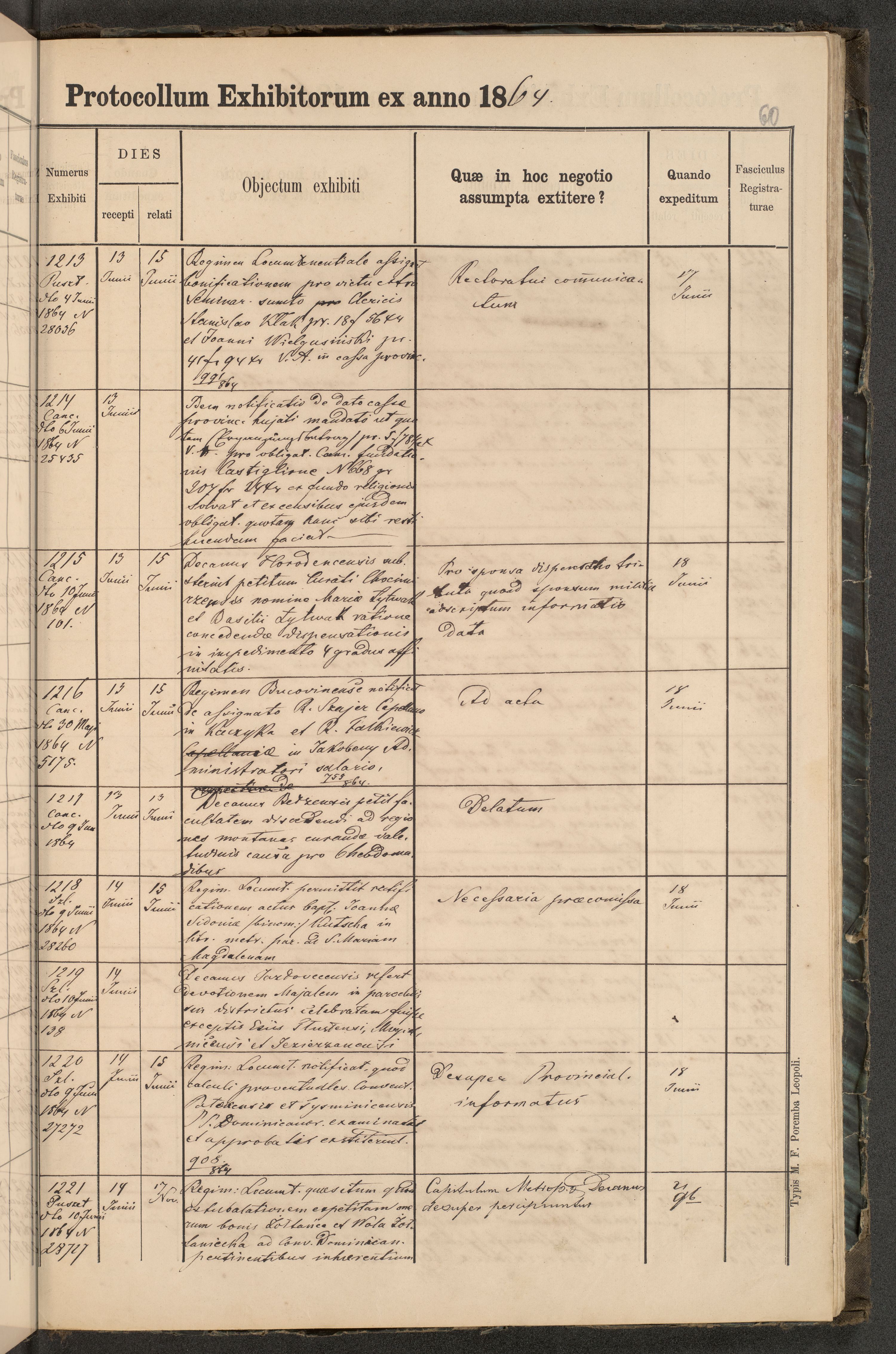 Protocollon exhibitorum in Ecclesiasticis ex anno 1864
